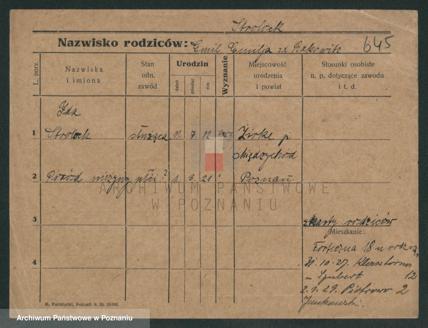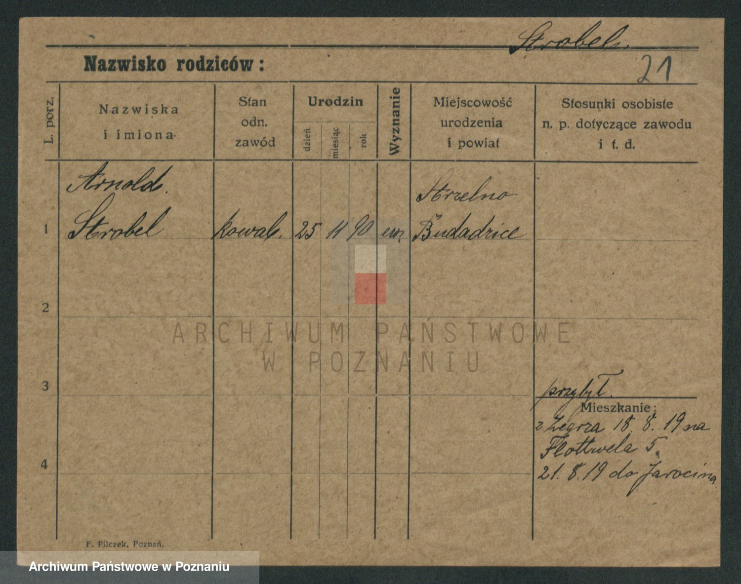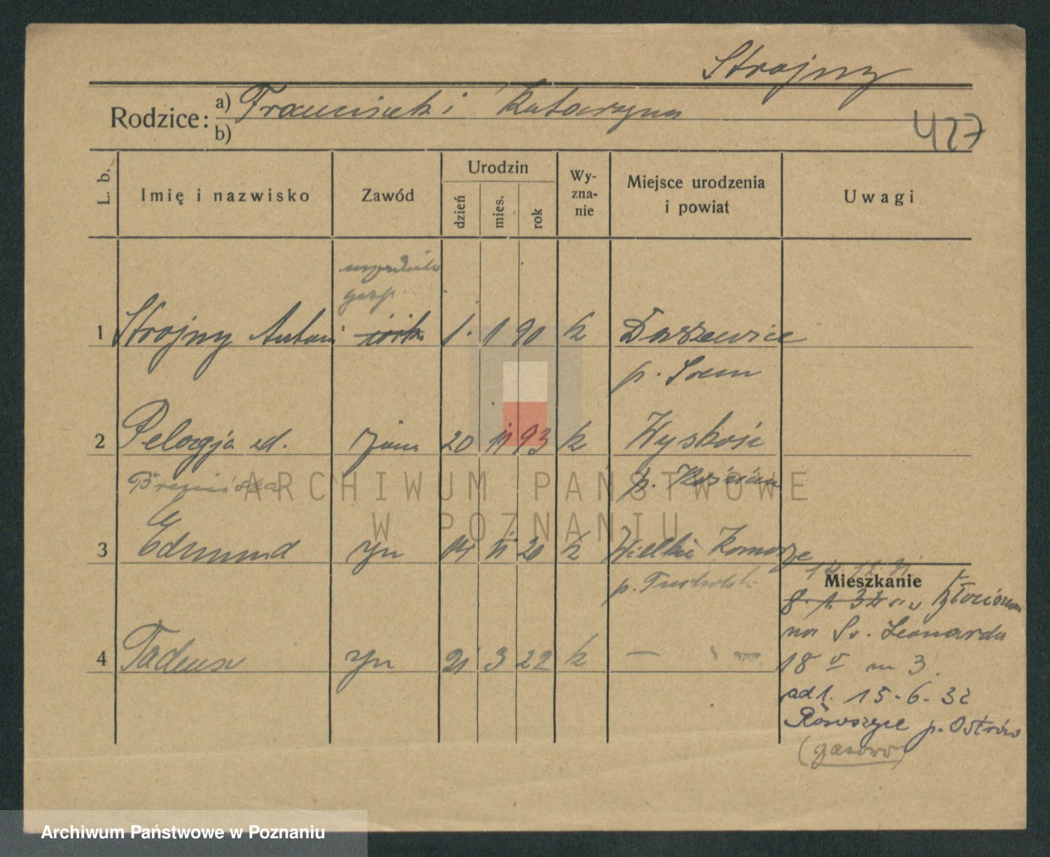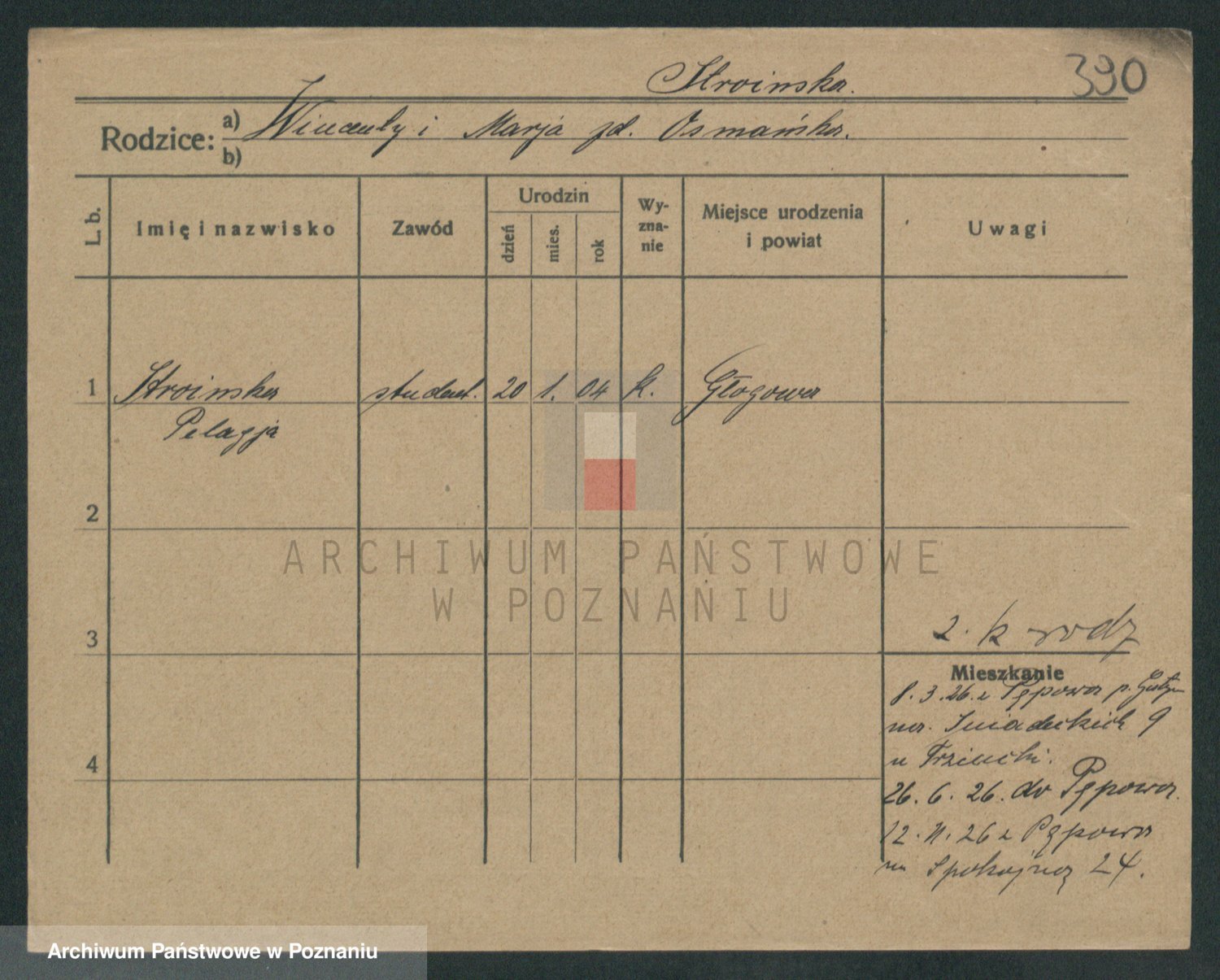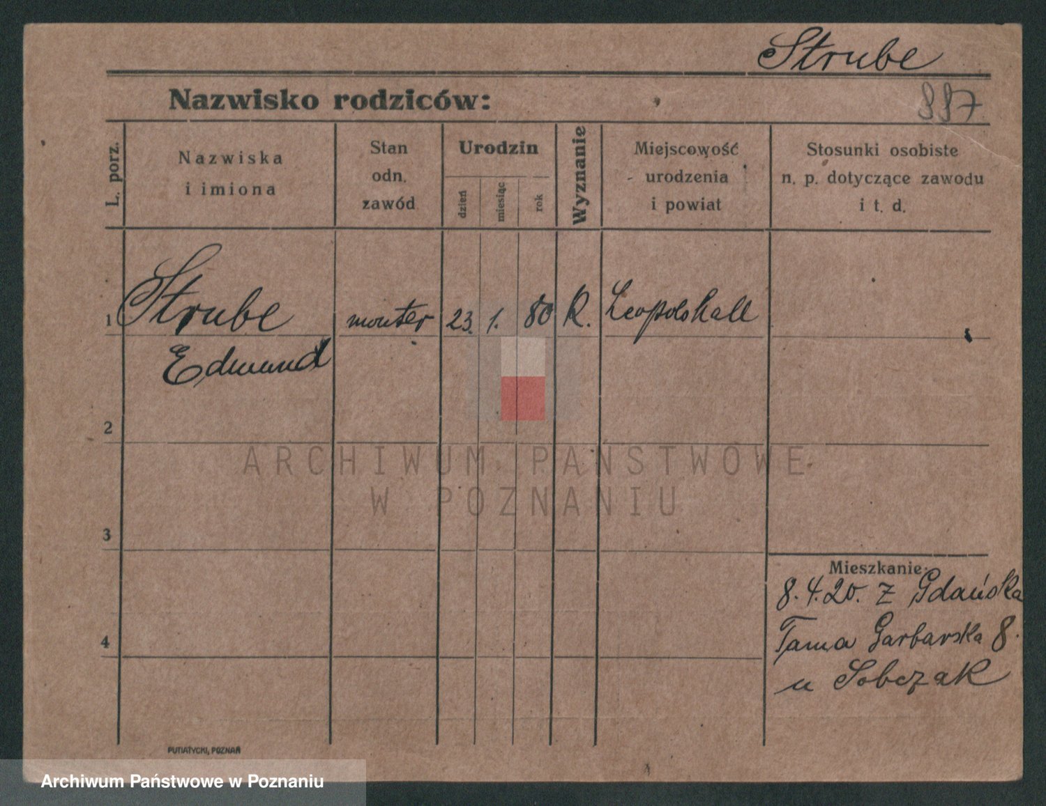 Podgląd karty osobowej dostępny jest po kliknięciu na nazwisko lub ikonkę karty. Można dokonywać powiększenia (ikony na górze) lub przechodzić między kolejnymi skanami (strzałki po bokach).