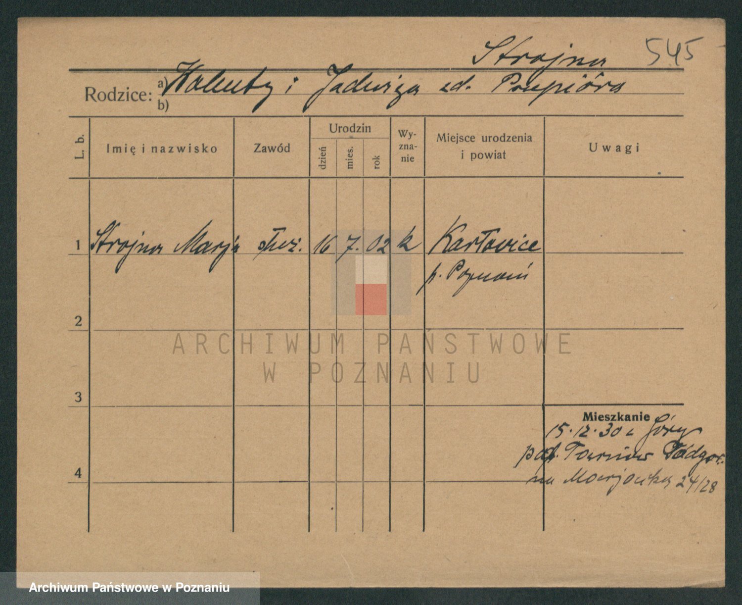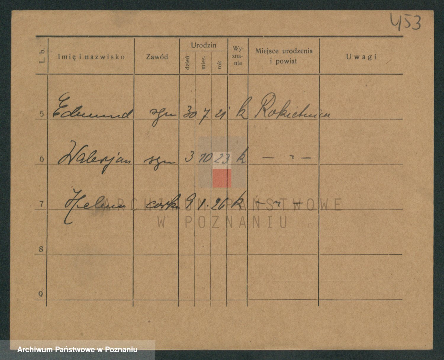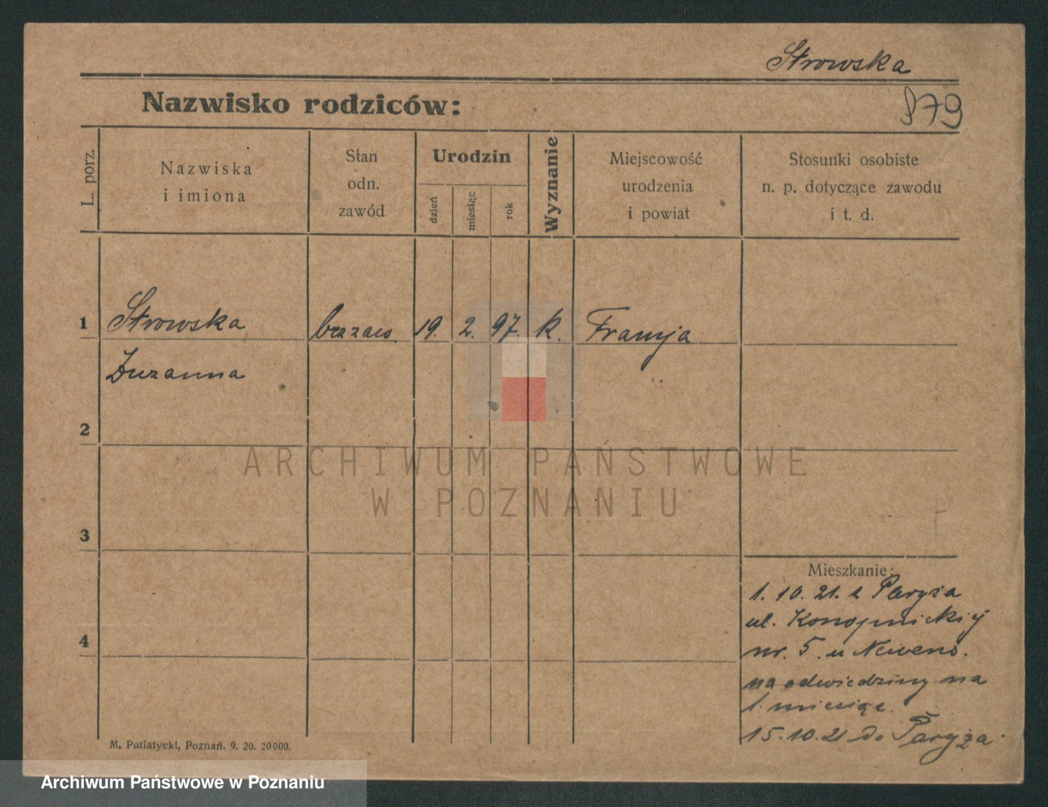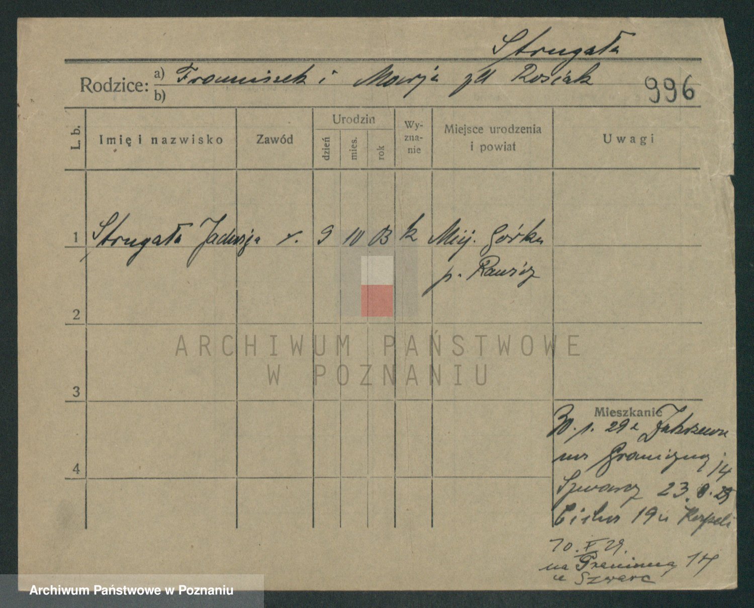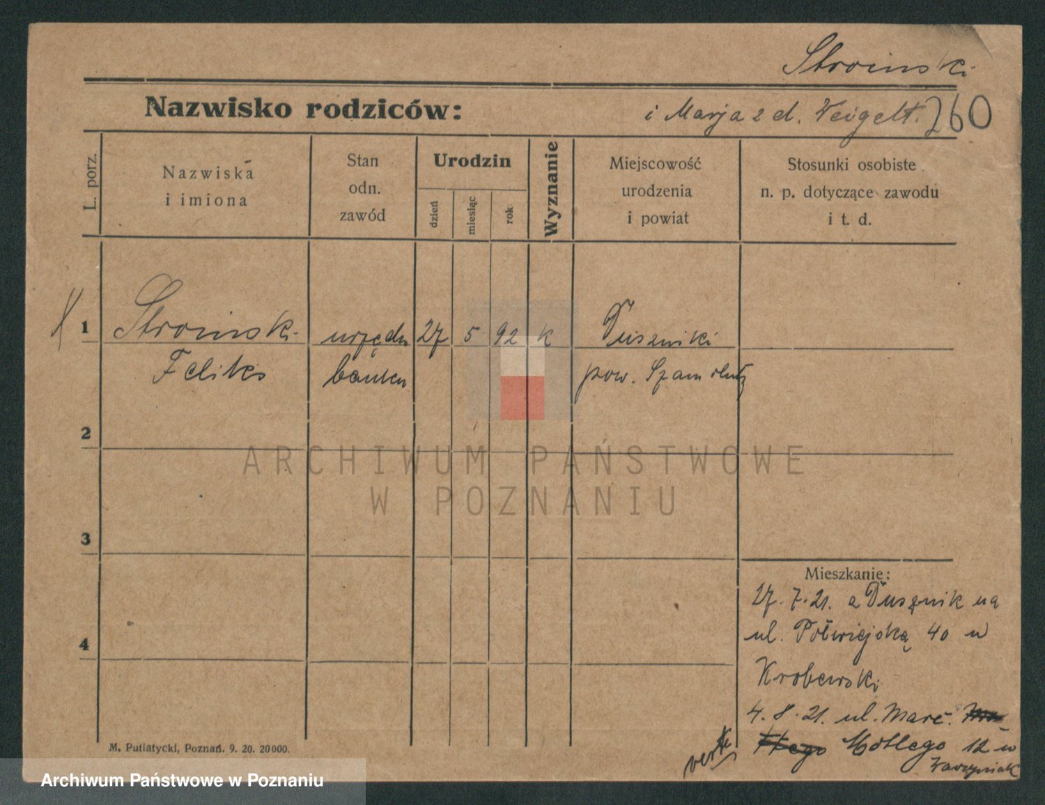 Podgląd karty osobowej dostępny jest po kliknięciu na nazwisko lub ikonkę karty. Można dokonywać powiększenia (ikony na górze) lub przechodzić między kolejnymi skanami (strzałki po bokach).