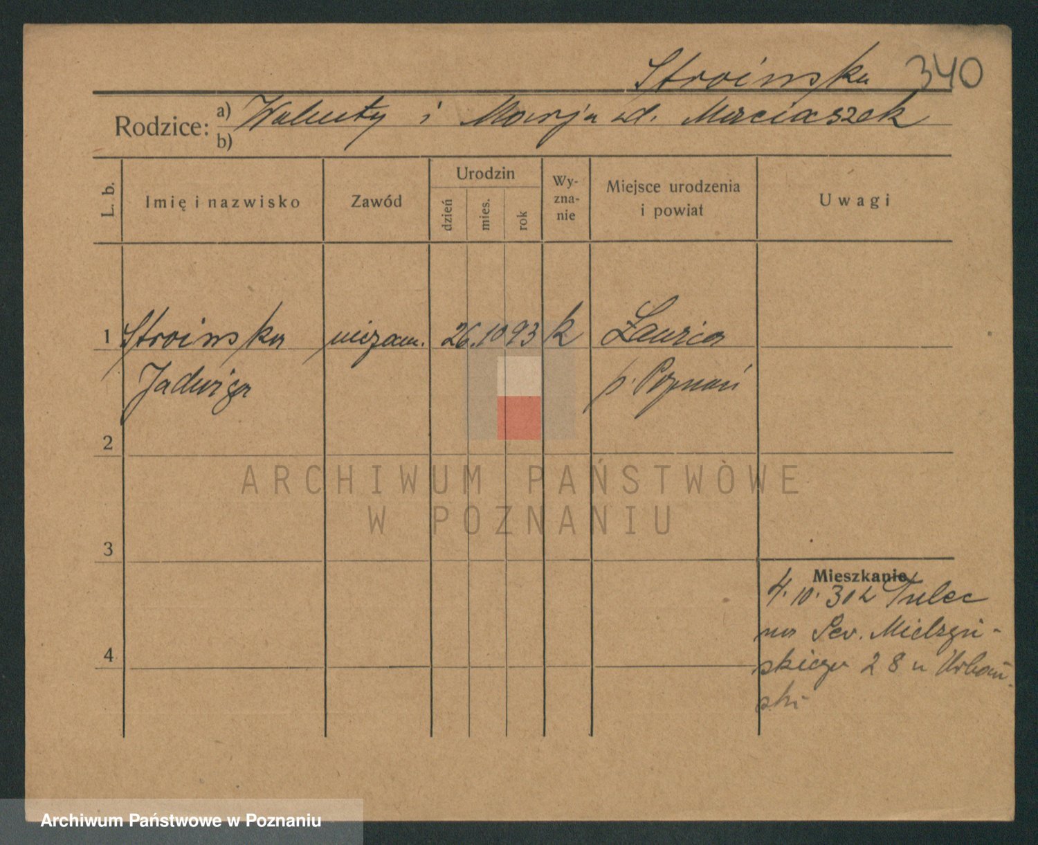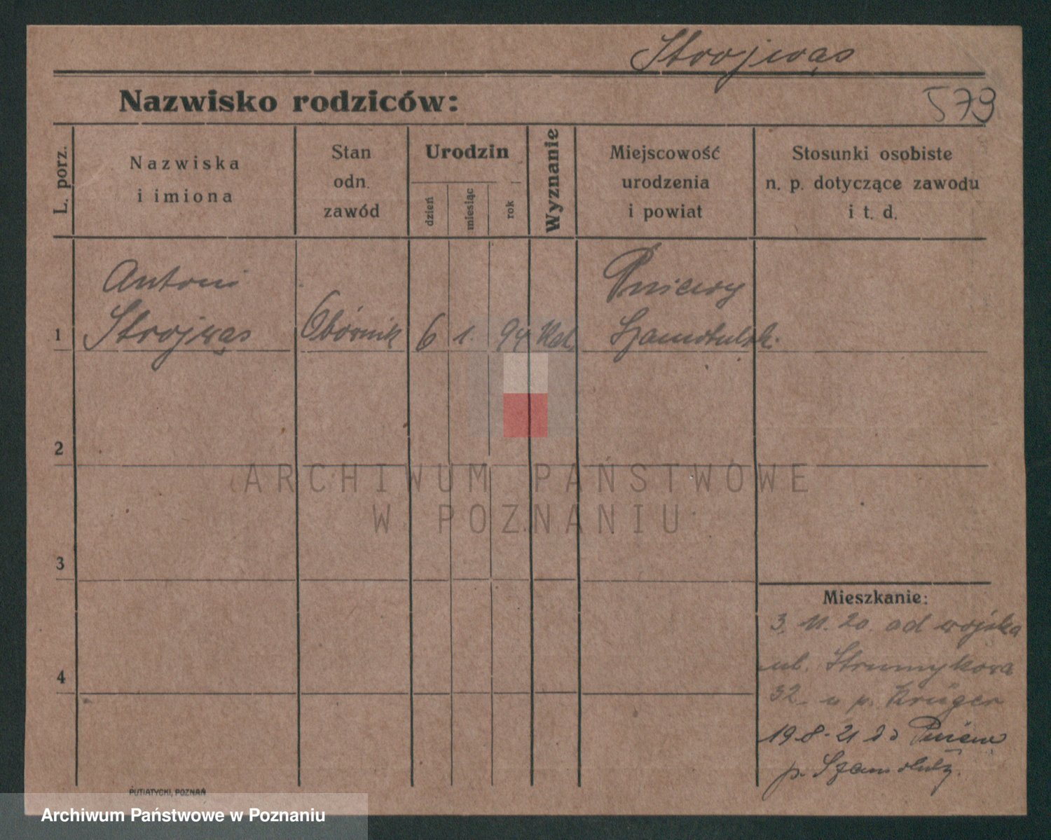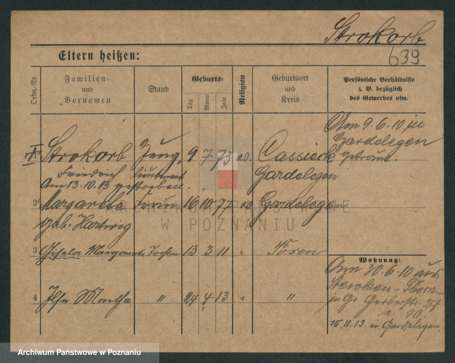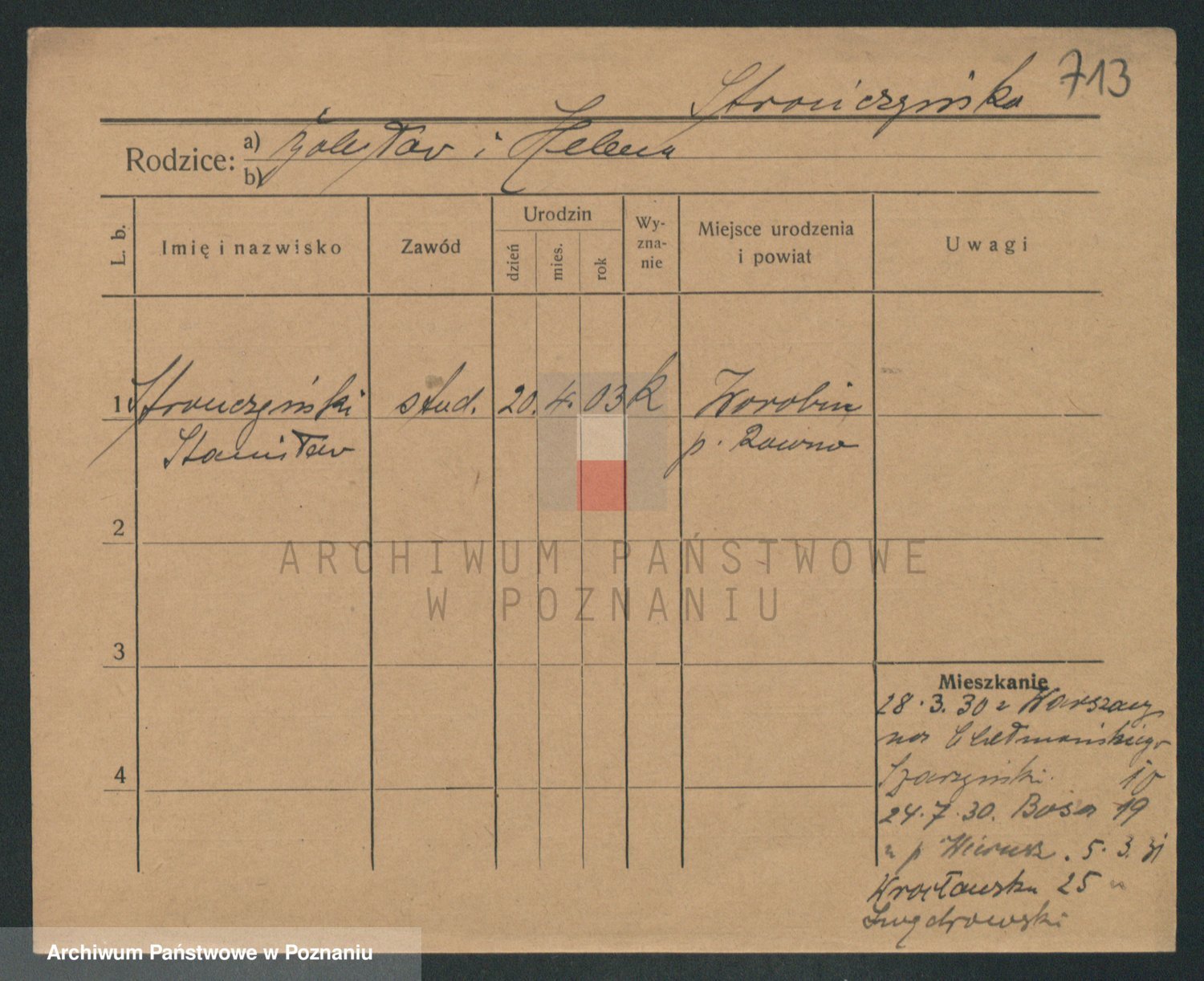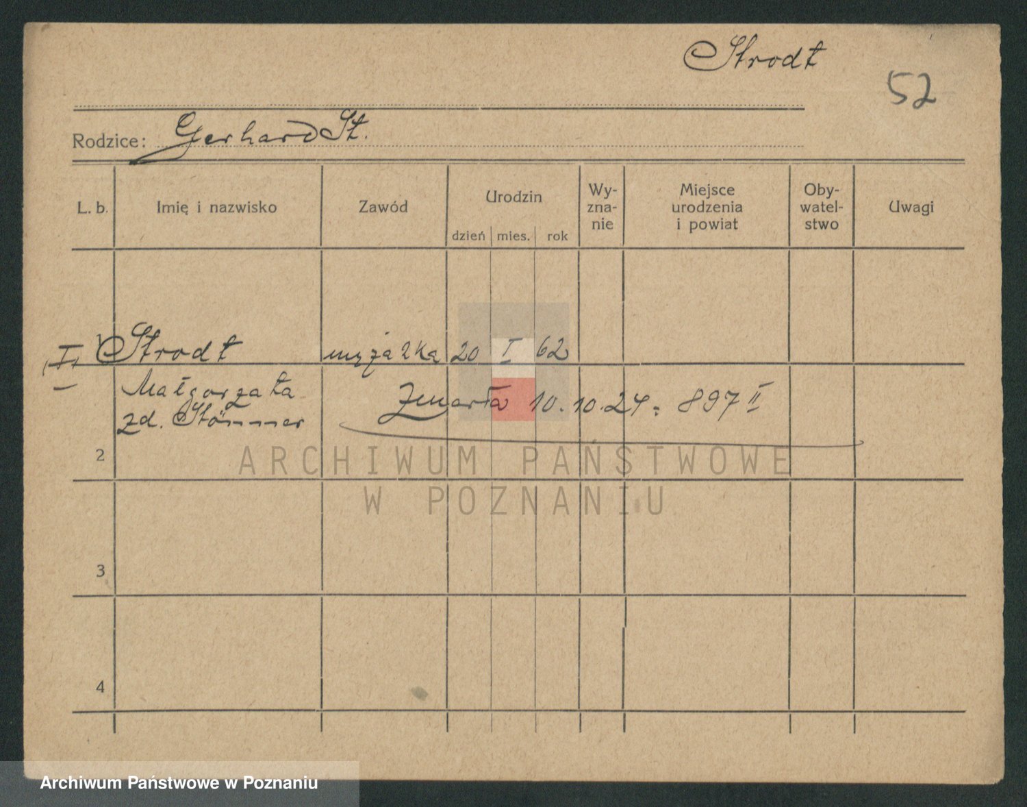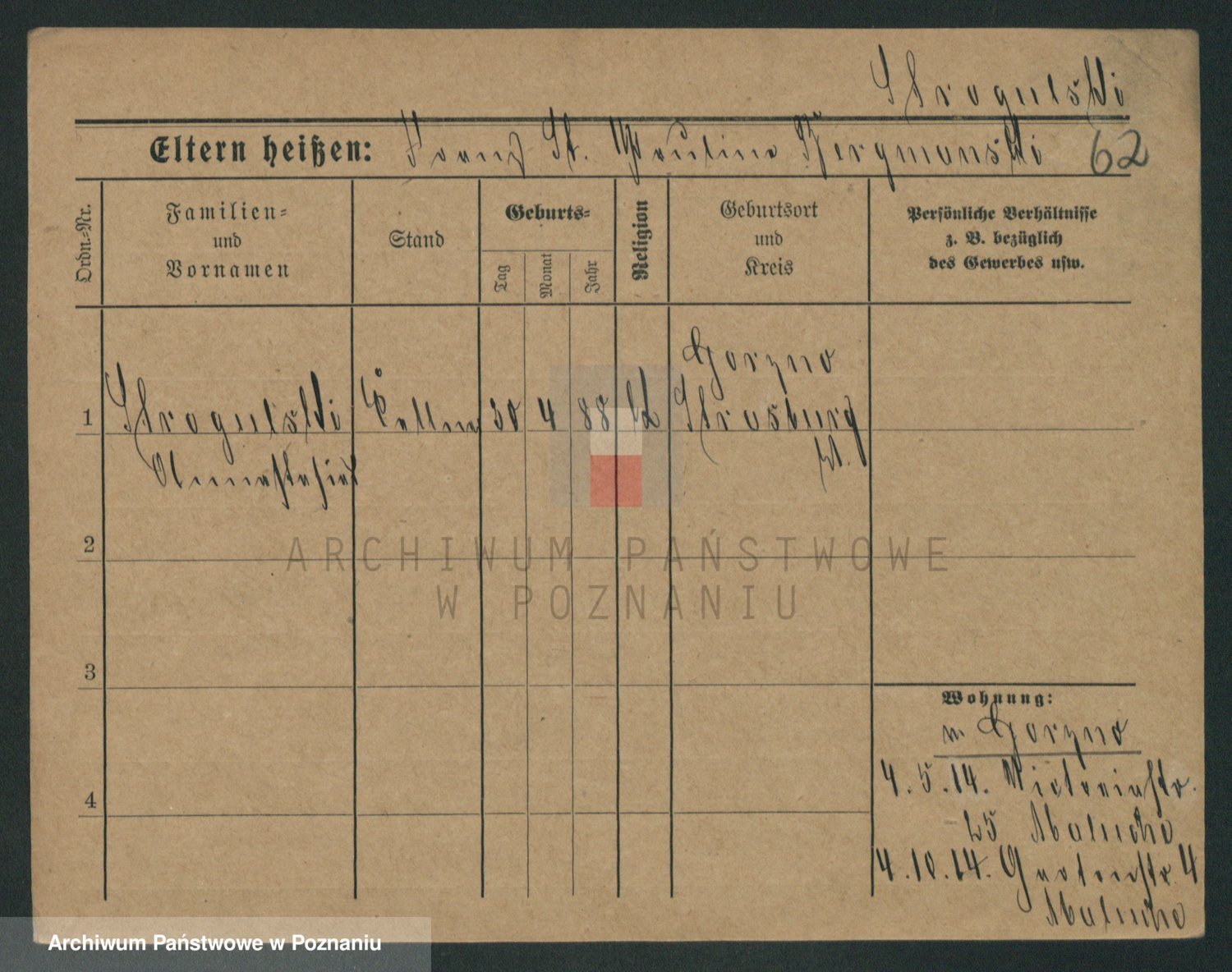 Podgląd karty osobowej dostępny jest po kliknięciu na nazwisko lub ikonkę karty. Można dokonywać powiększenia (ikony na górze) lub przechodzić między kolejnymi skanami (strzałki po bokach).