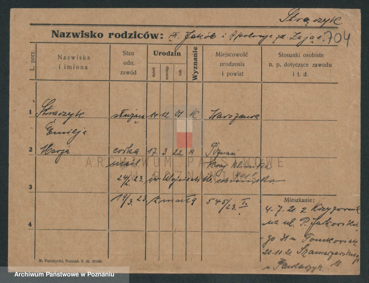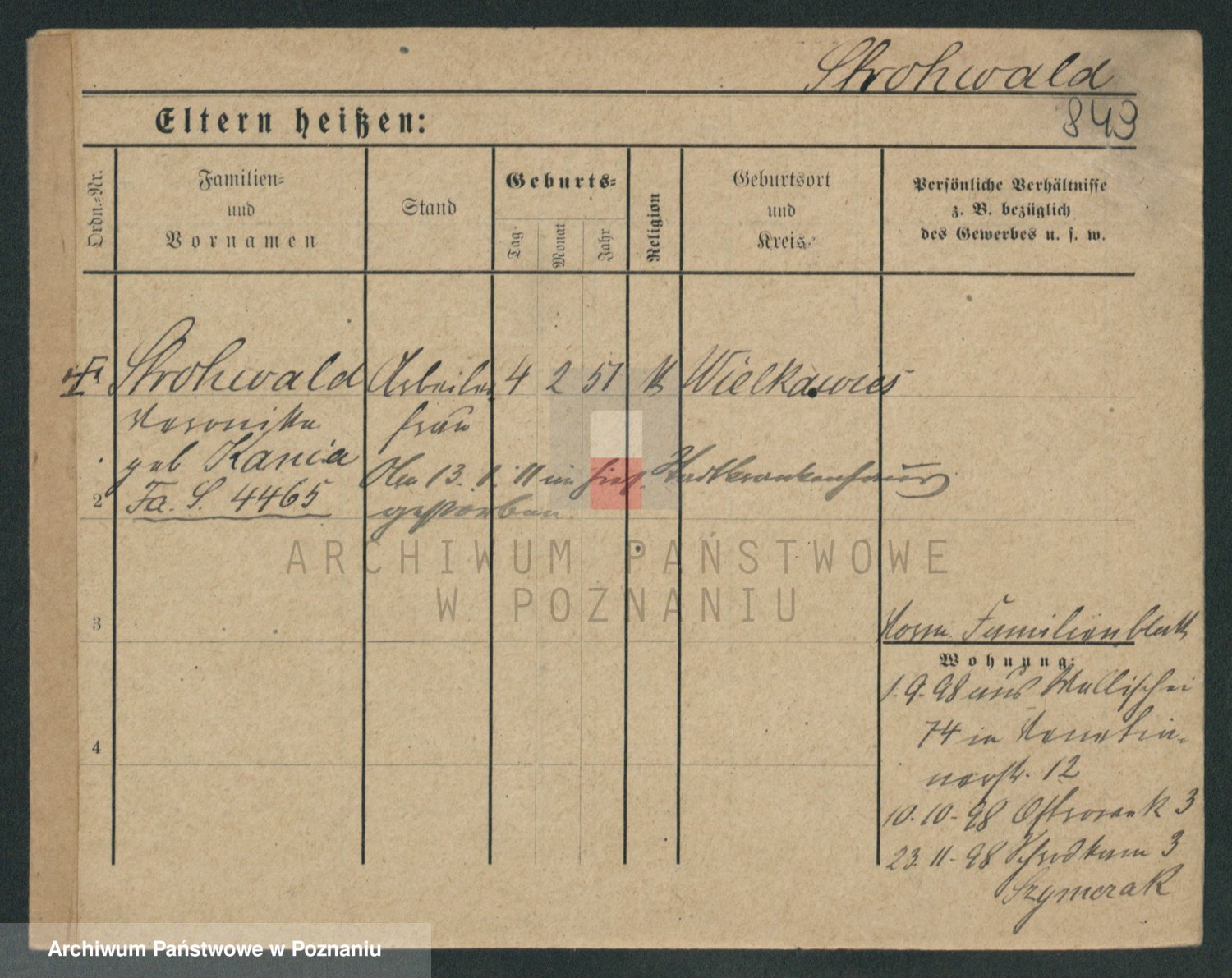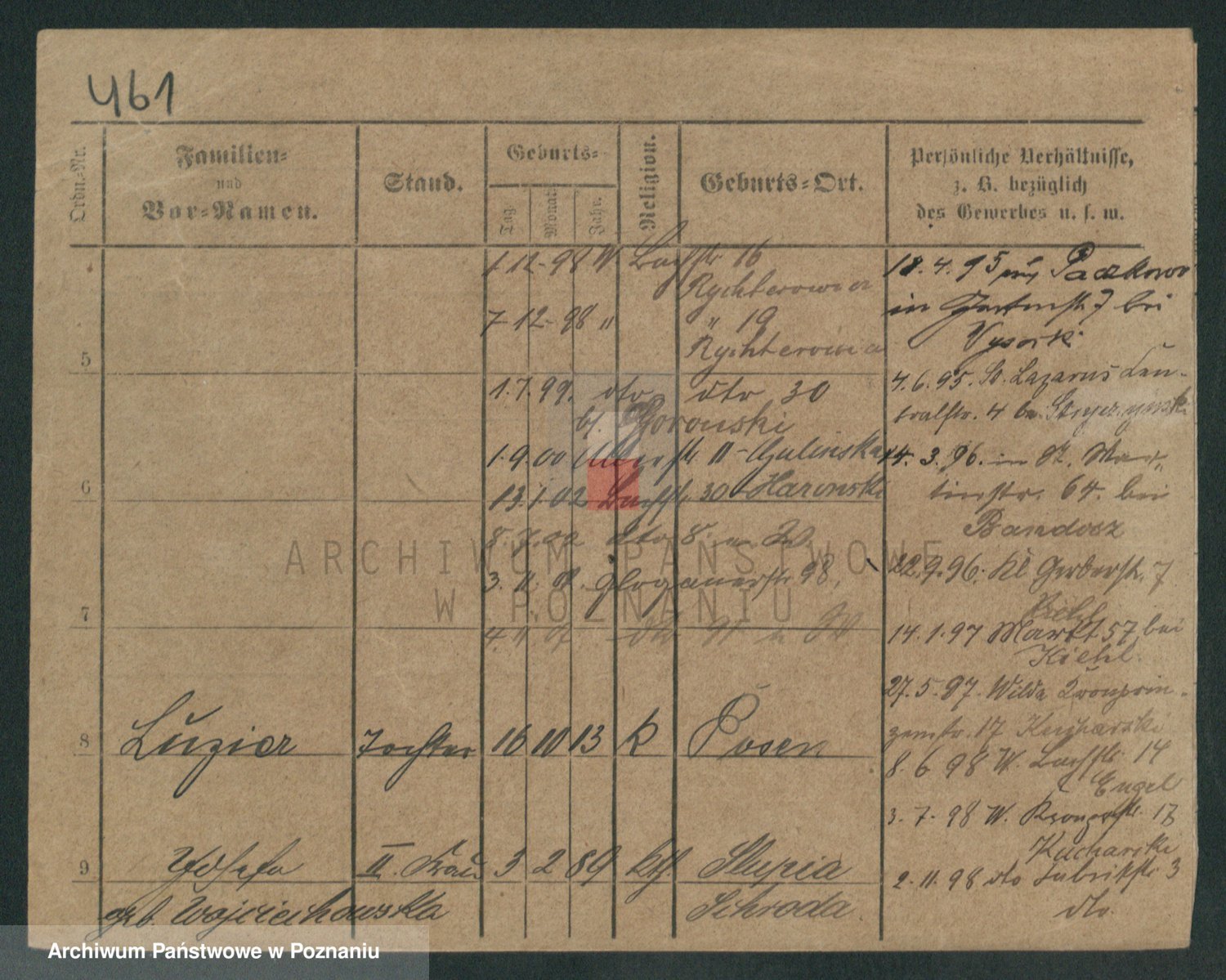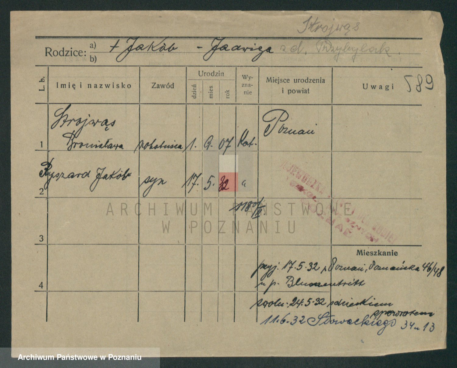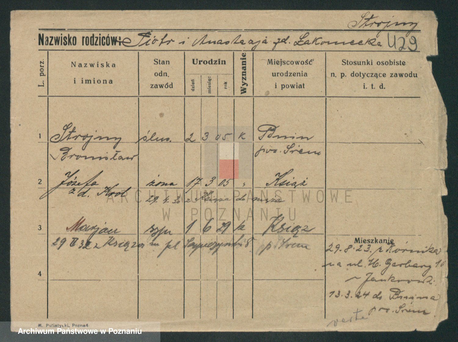 Podgląd karty osobowej dostępny jest po kliknięciu na nazwisko lub ikonkę karty. Można dokonywać powiększenia (ikony na górze) lub przechodzić między kolejnymi skanami (strzałki po bokach).