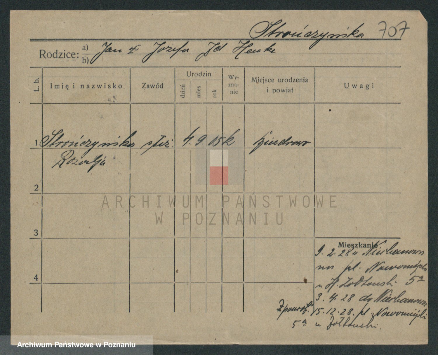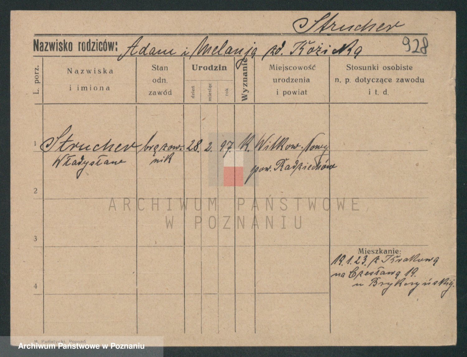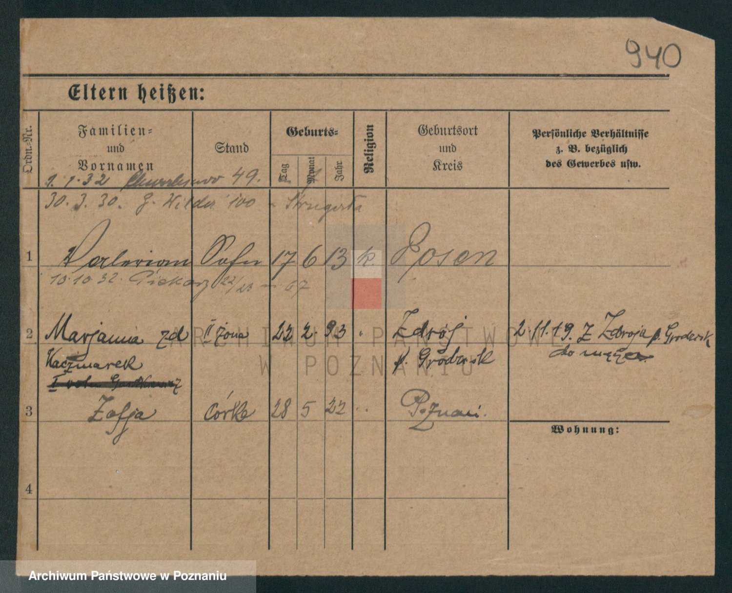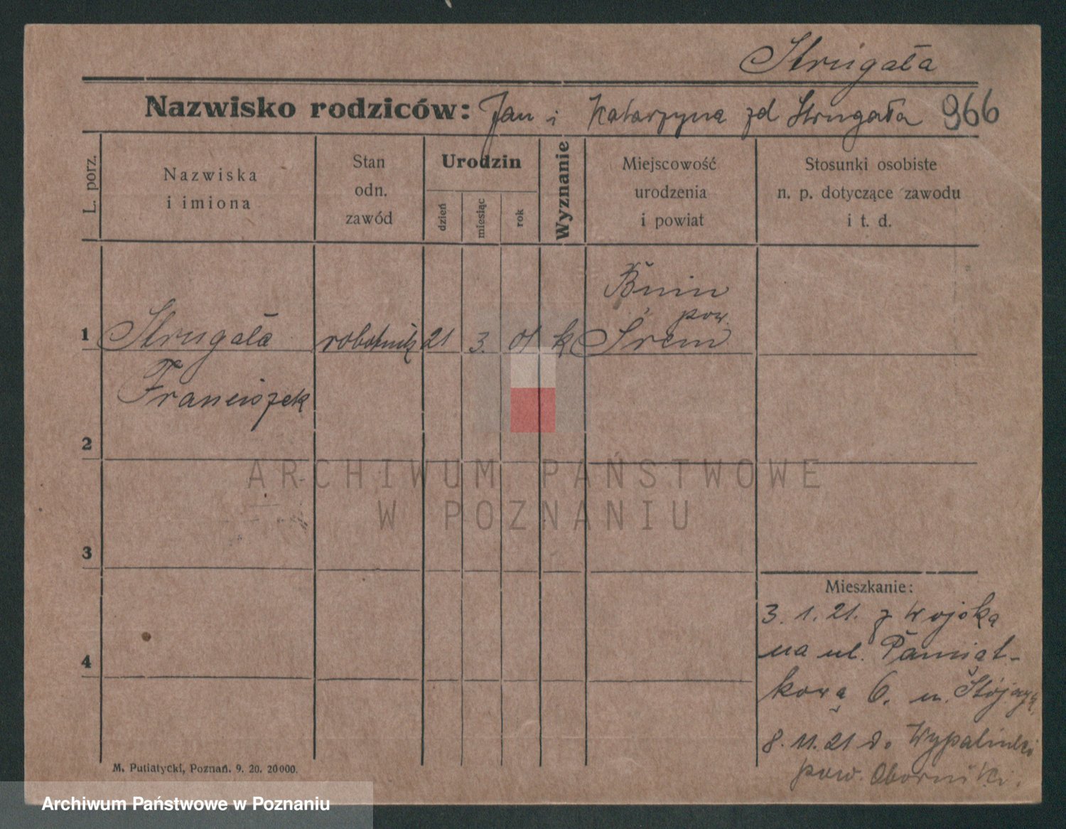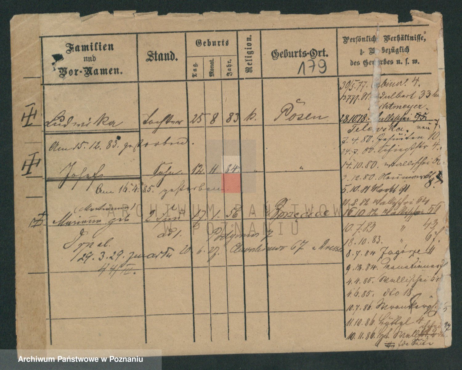Podgląd karty osobowej dostępny jest po kliknięciu na nazwisko lub ikonkę karty. Można dokonywać powiększenia (ikony na górze) lub przechodzić między kolejnymi skanami (strzałki po bokach).