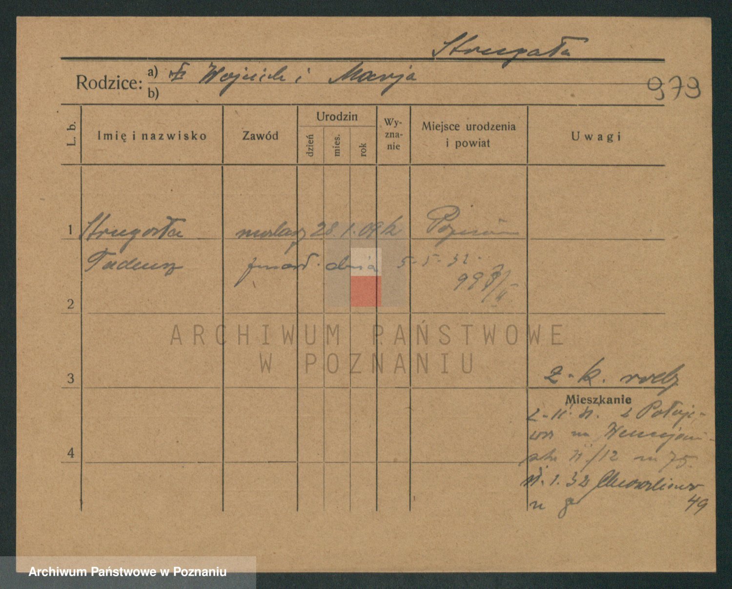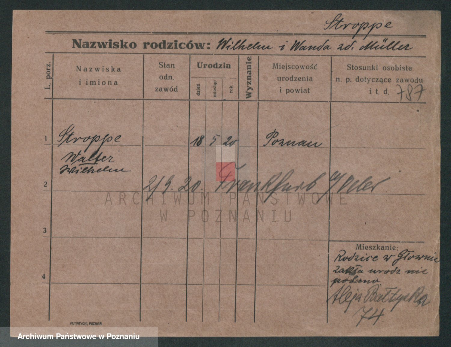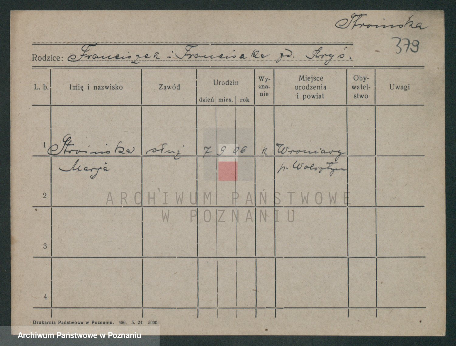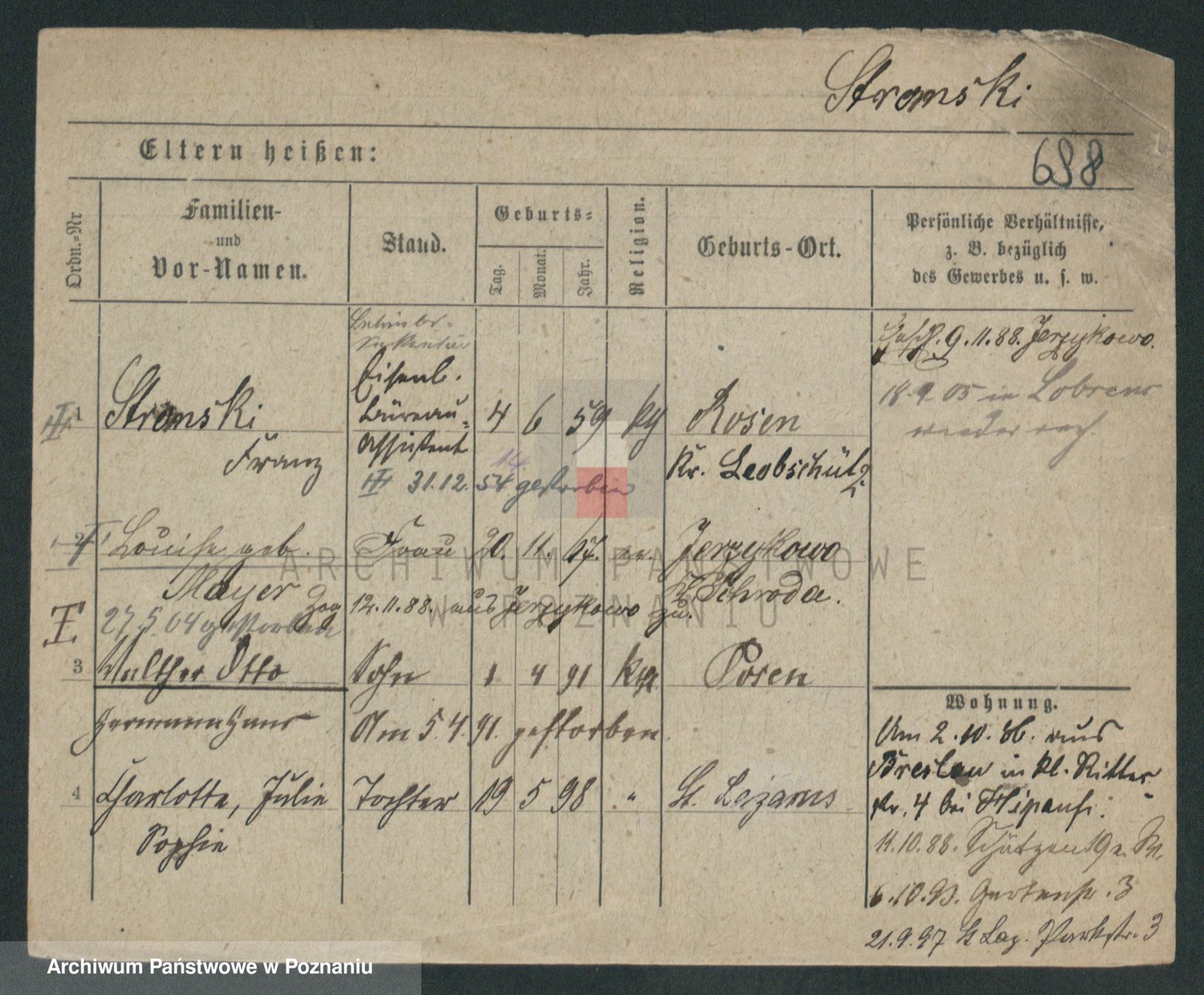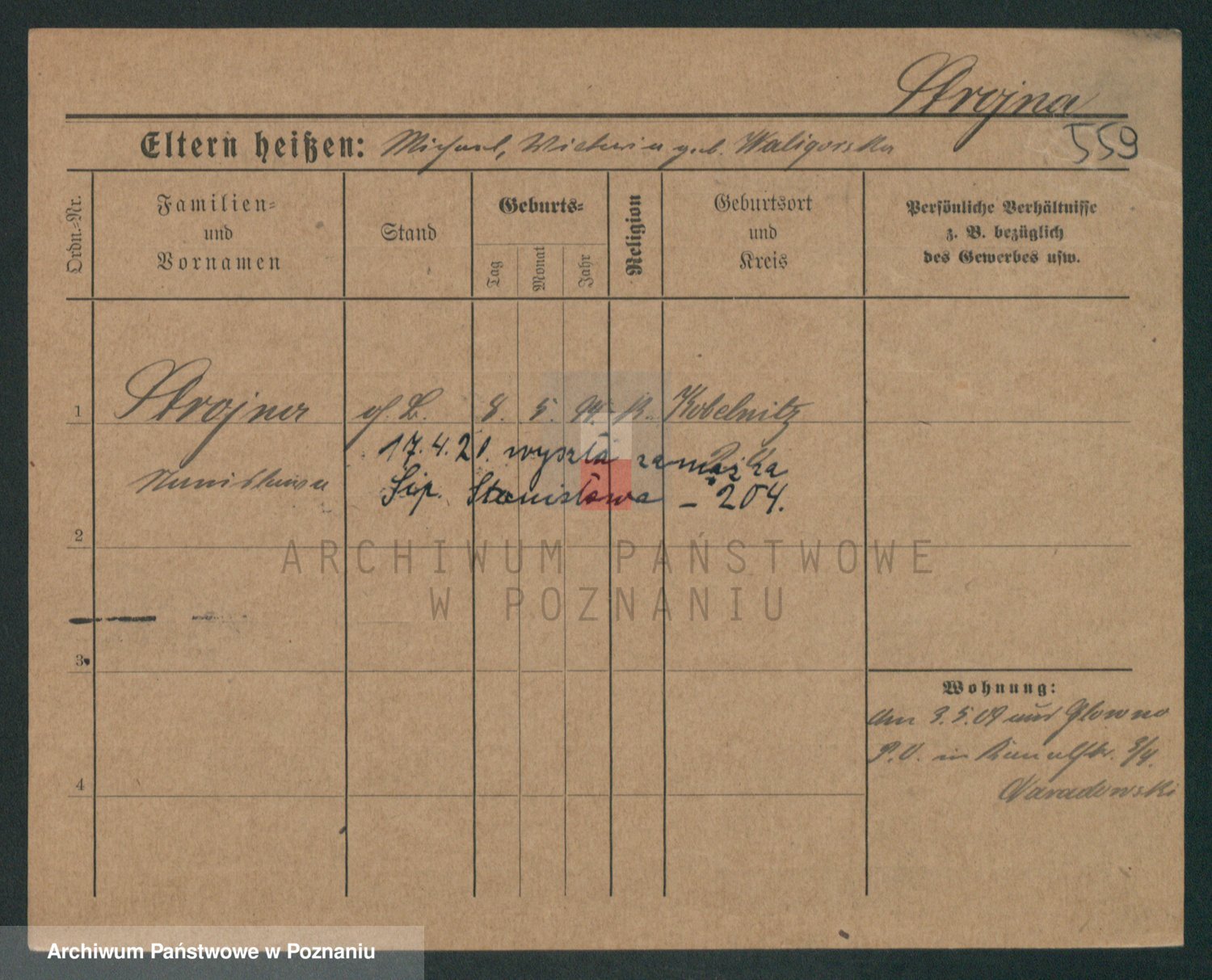 Podgląd karty osobowej dostępny jest po kliknięciu na nazwisko lub ikonkę karty. Można dokonywać powiększenia (ikony na górze) lub przechodzić między kolejnymi skanami (strzałki po bokach).