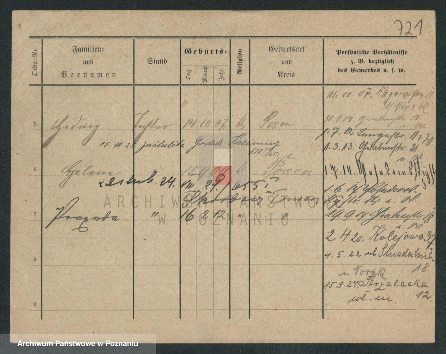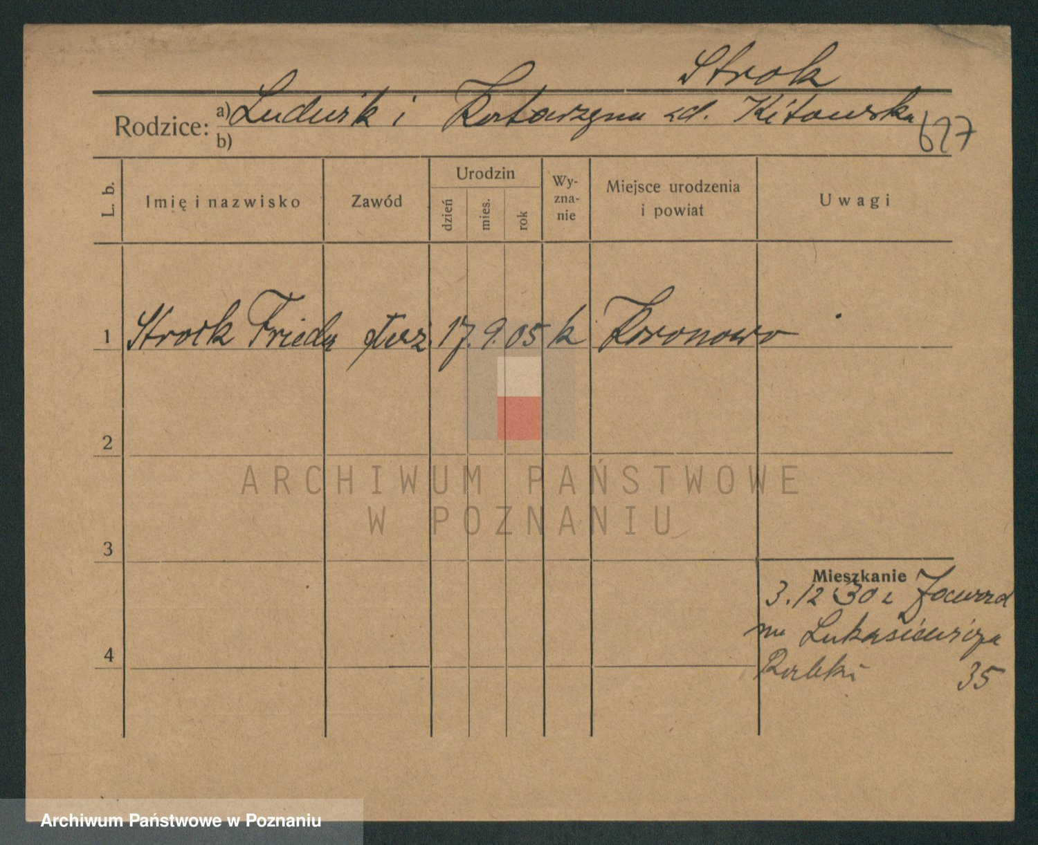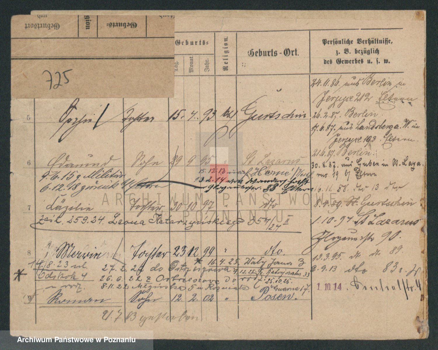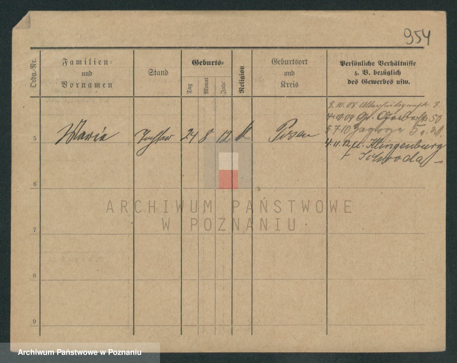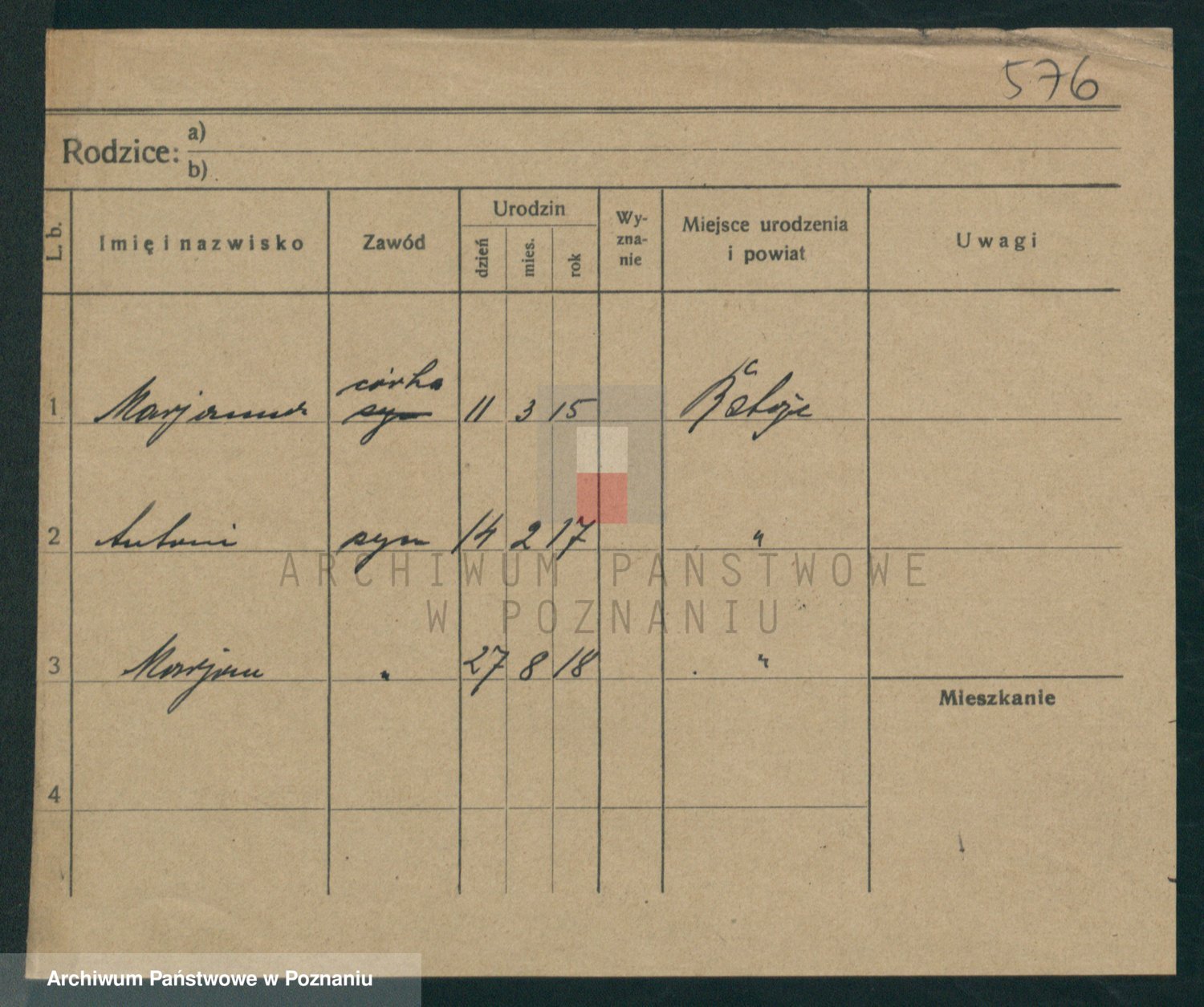 Podgląd karty osobowej dostępny jest po kliknięciu na nazwisko lub ikonkę karty. Można dokonywać powiększenia (ikony na górze) lub przechodzić między kolejnymi skanami (strzałki po bokach).