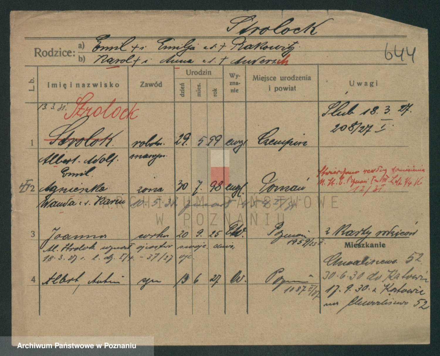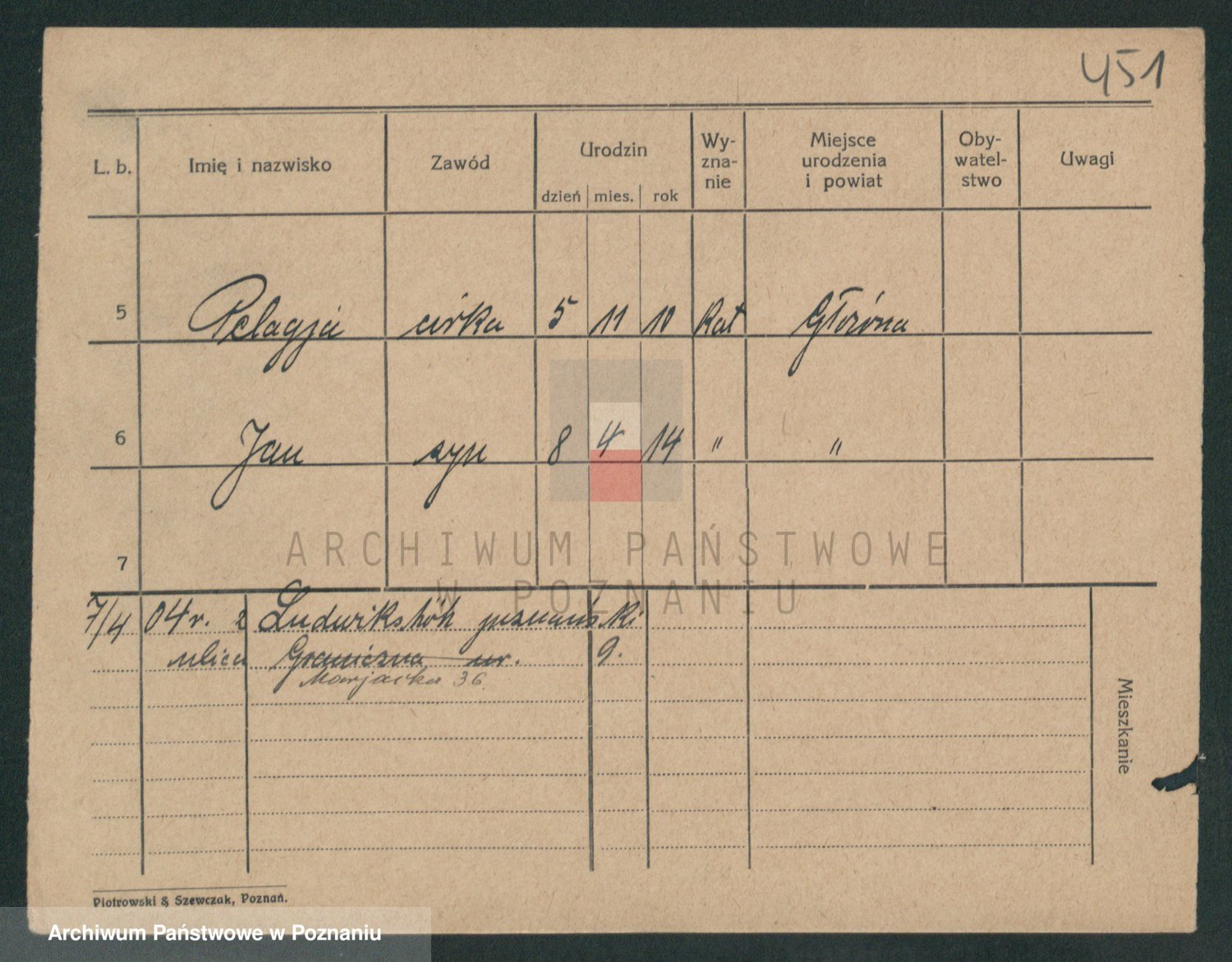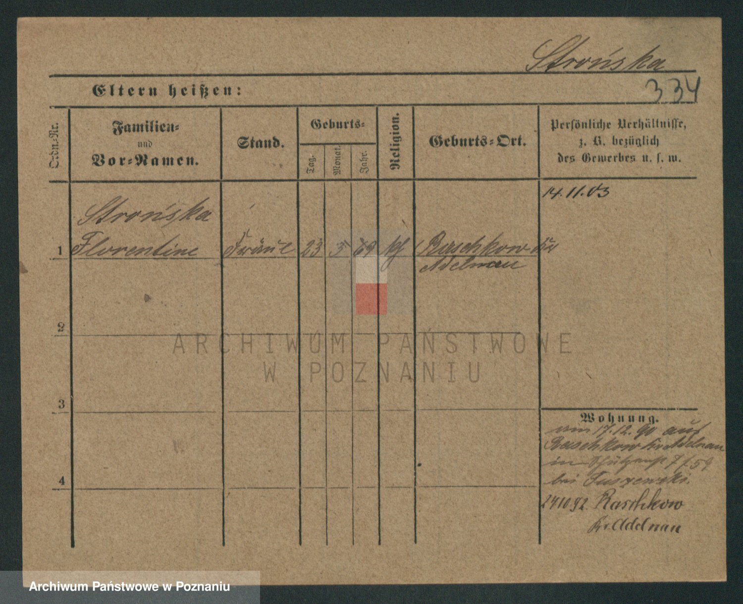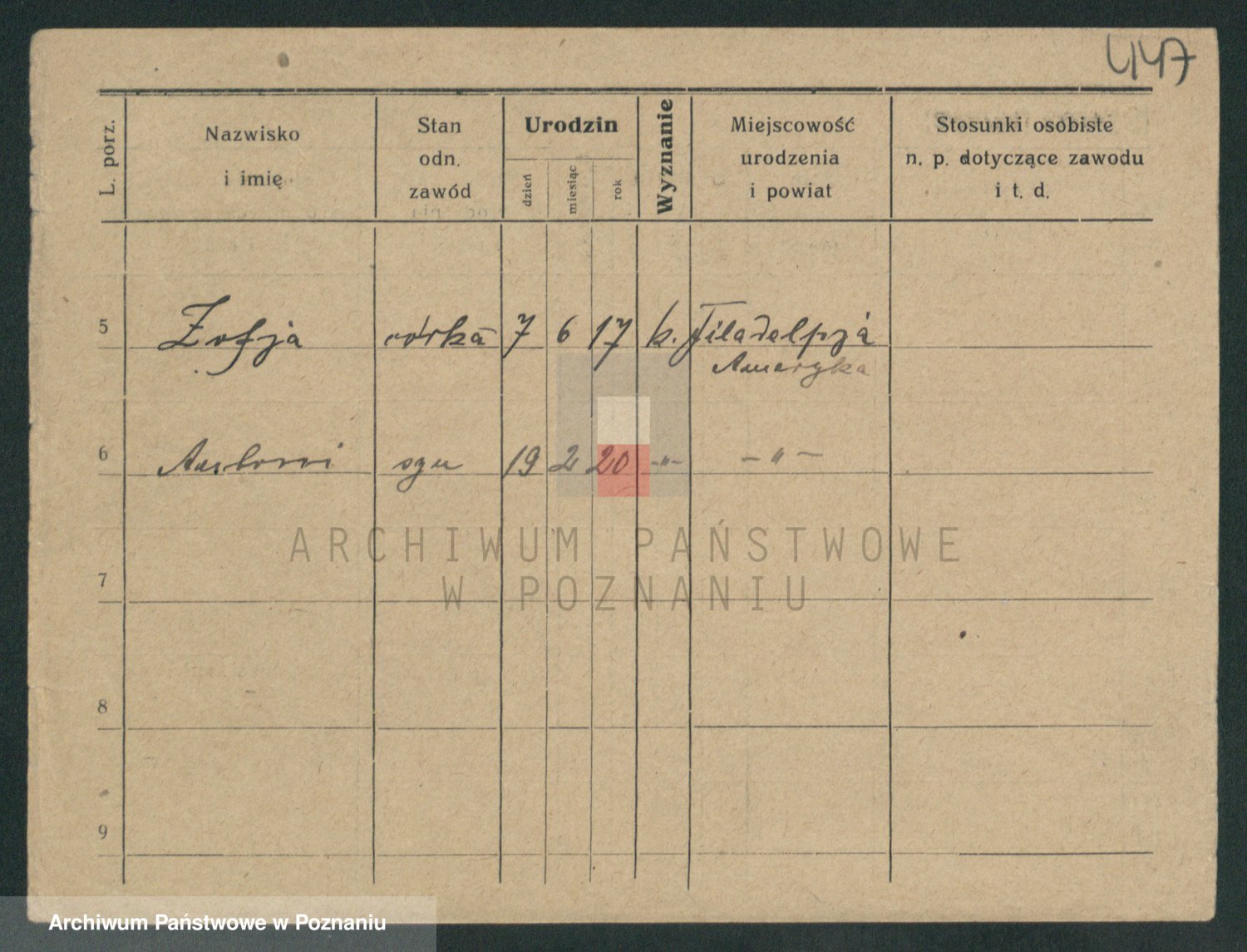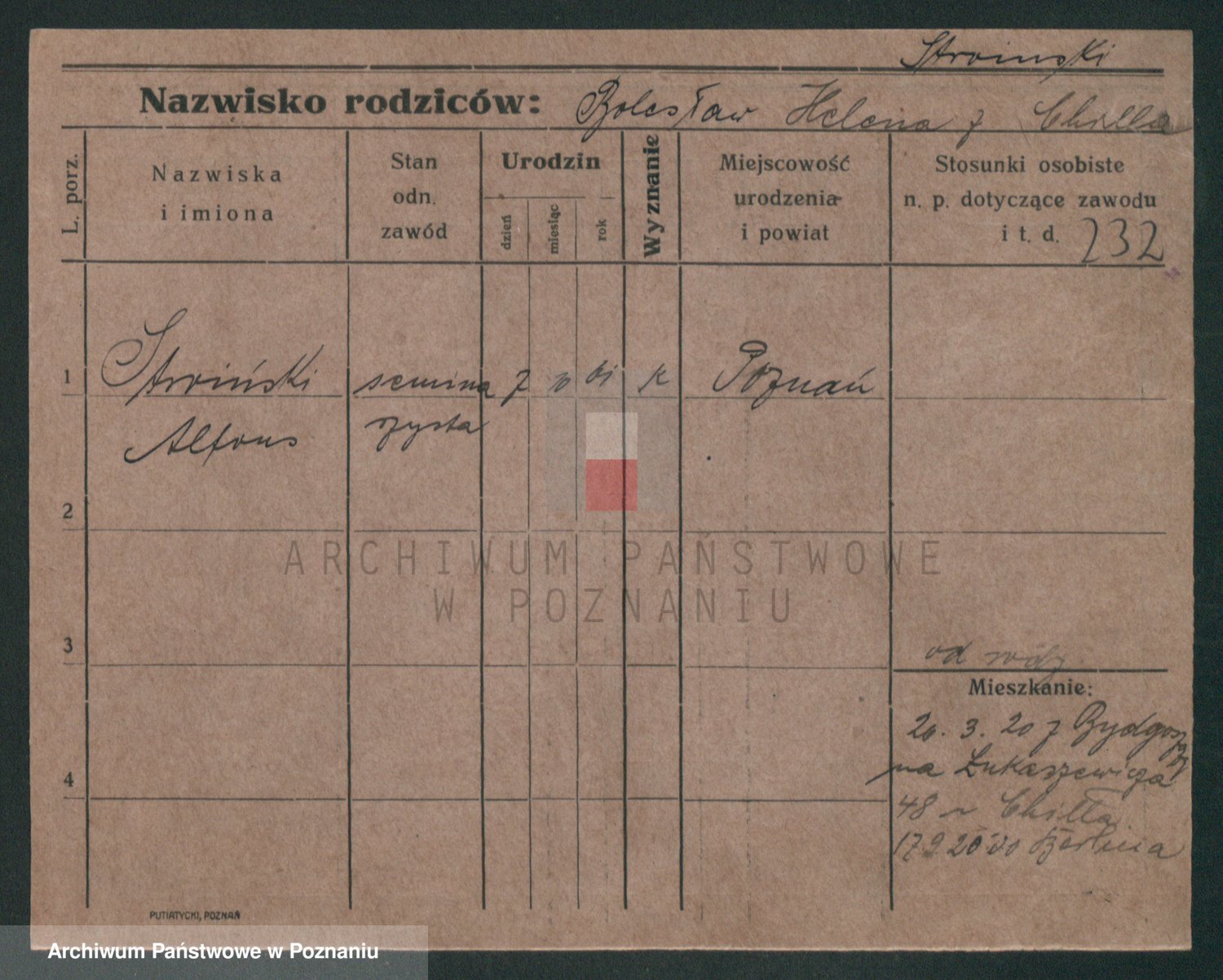 Podgląd karty osobowej dostępny jest po kliknięciu na nazwisko lub ikonkę karty. Można dokonywać powiększenia (ikony na górze) lub przechodzić między kolejnymi skanami (strzałki po bokach).