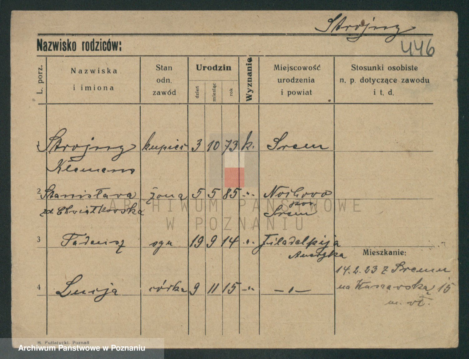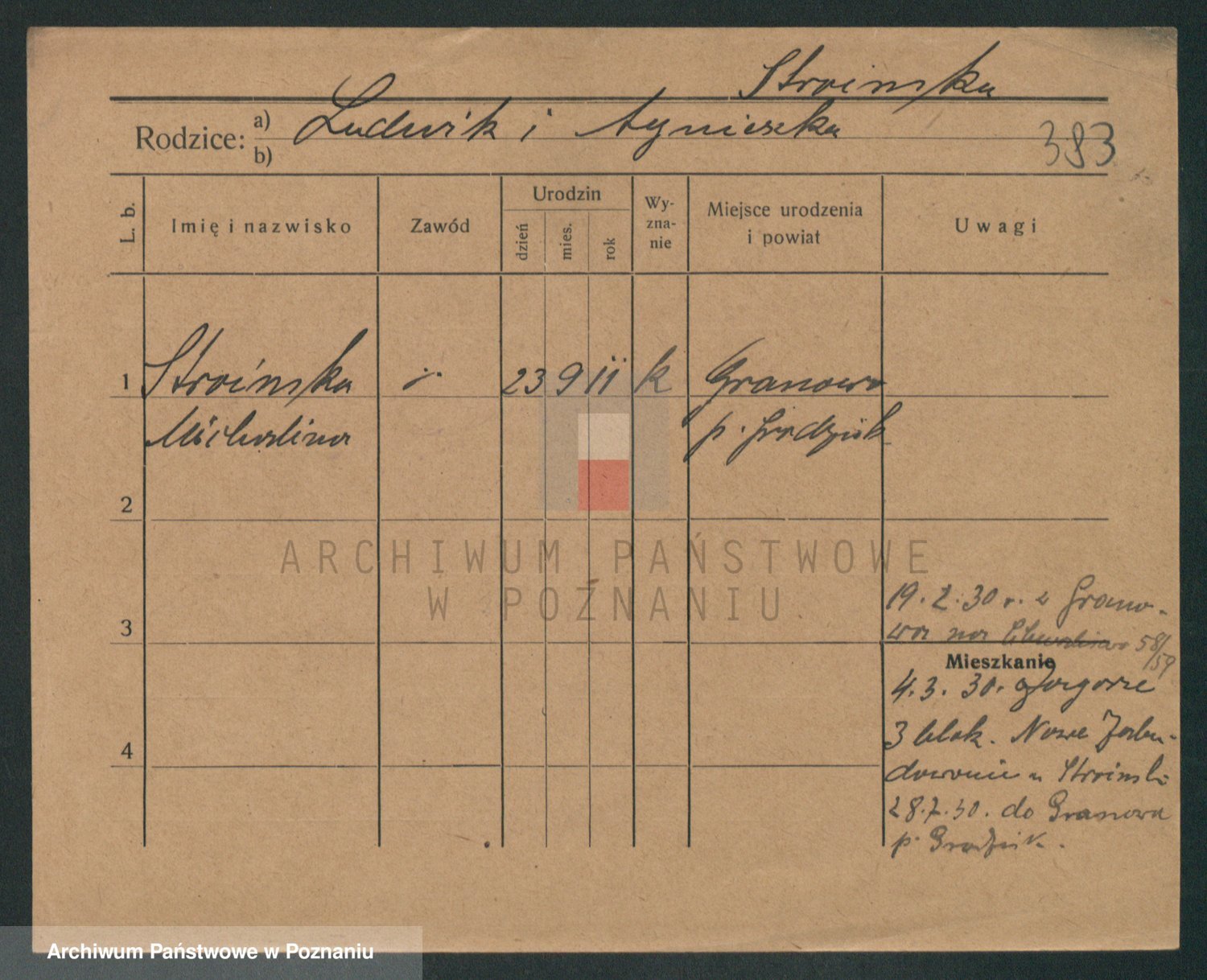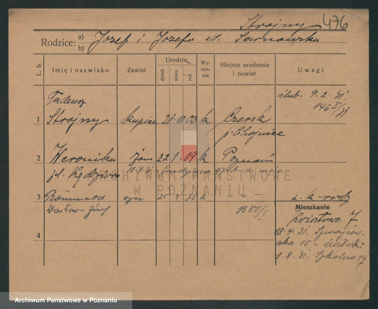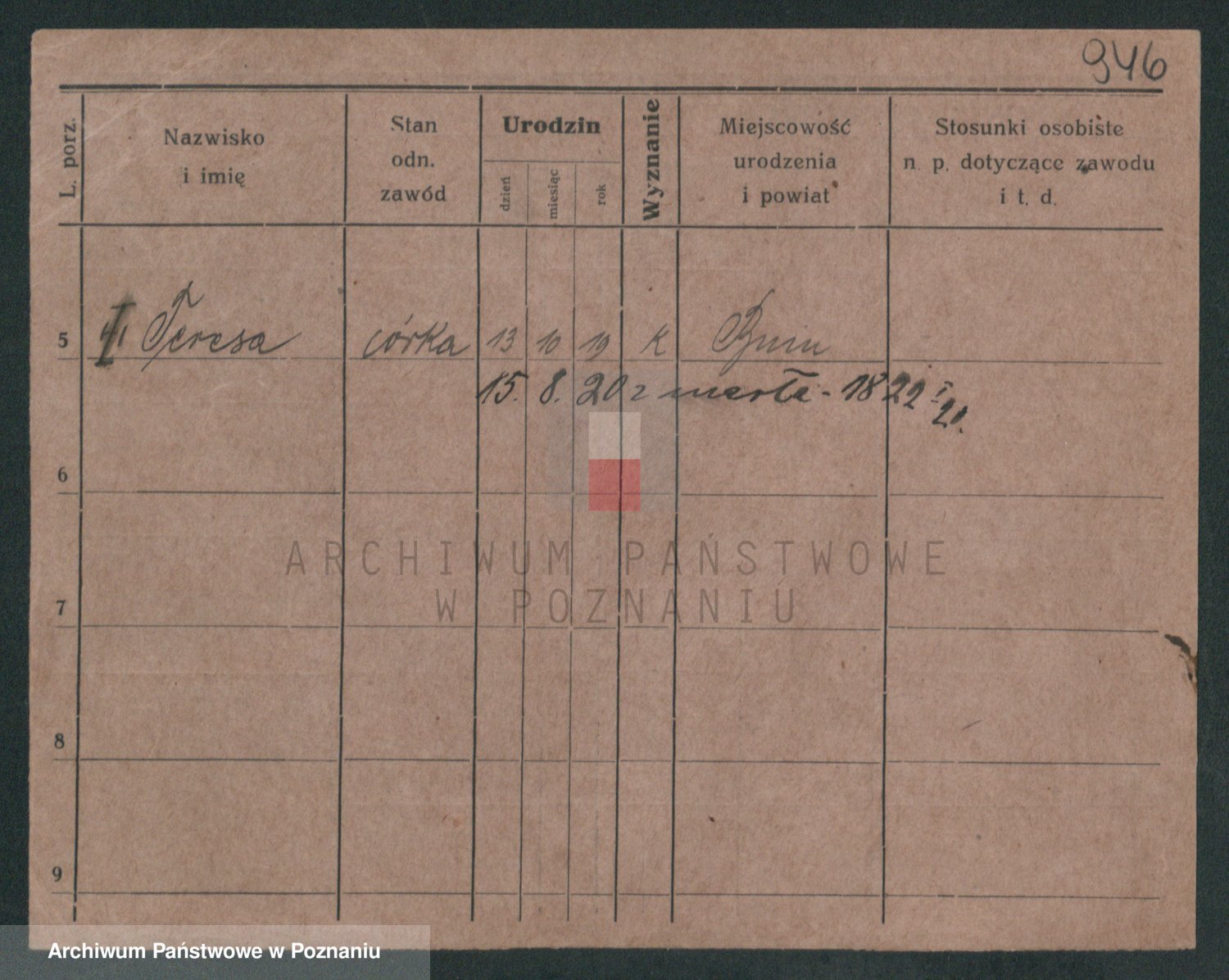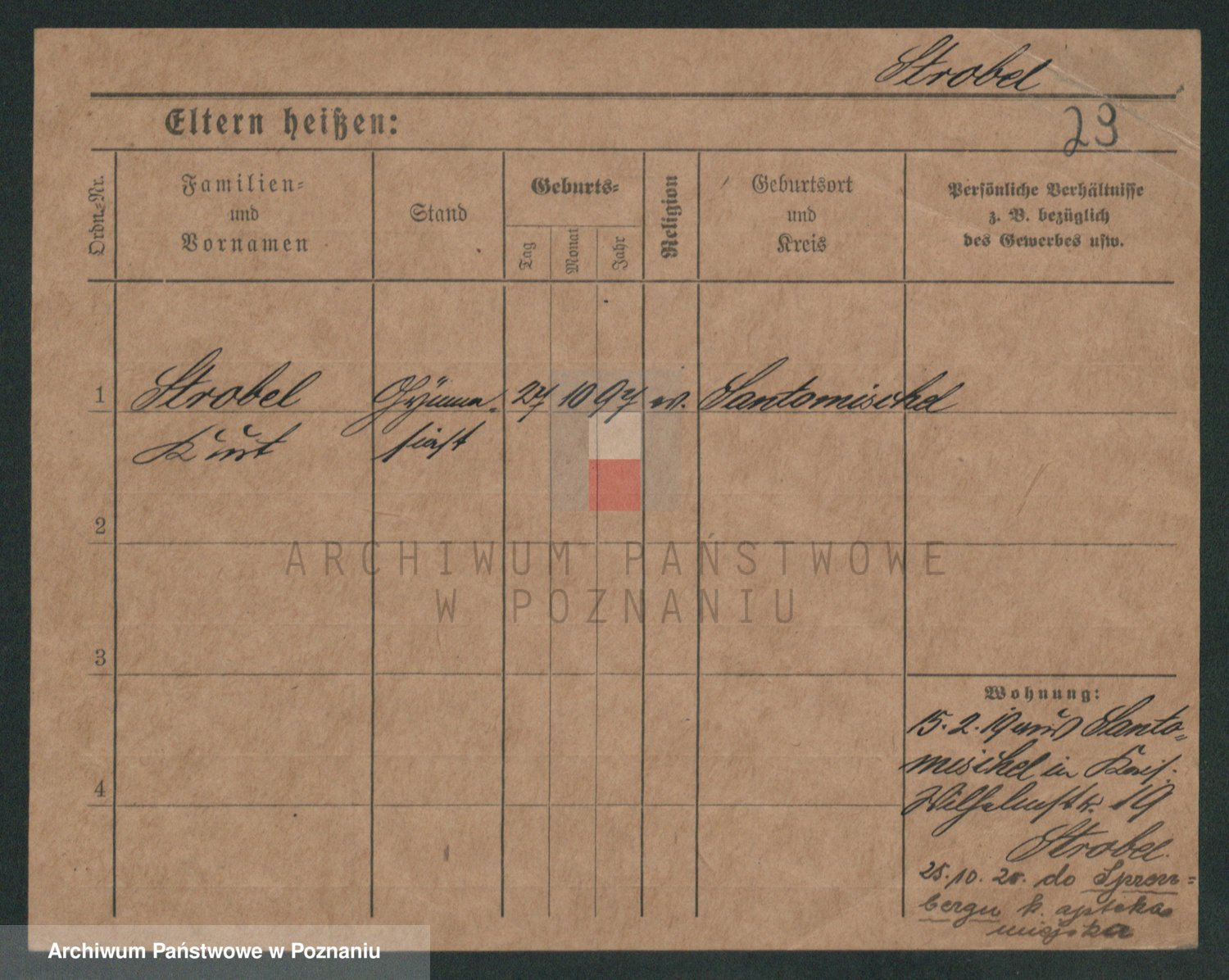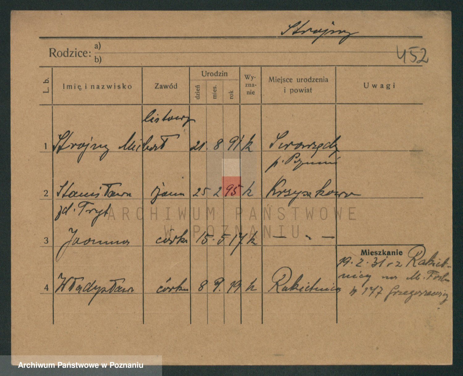 Podgląd karty osobowej dostępny jest po kliknięciu na nazwisko lub ikonkę karty. Można dokonywać powiększenia (ikony na górze) lub przechodzić między kolejnymi skanami (strzałki po bokach).