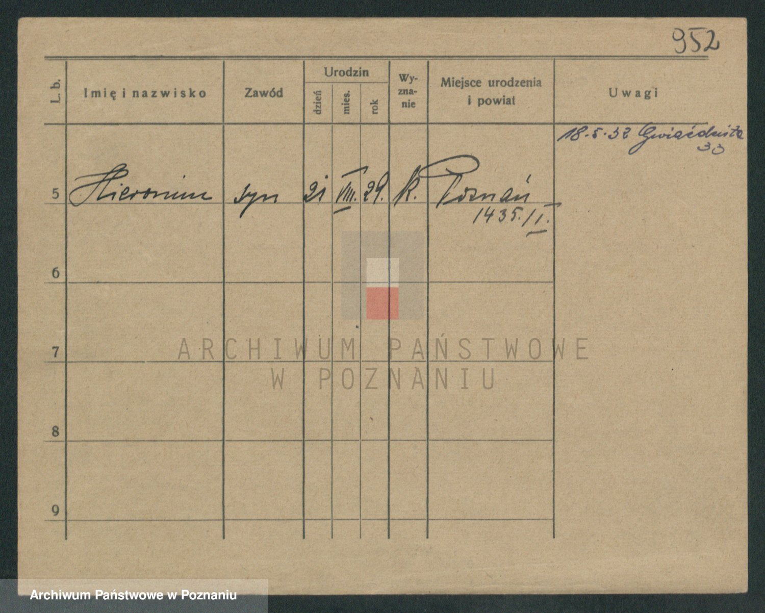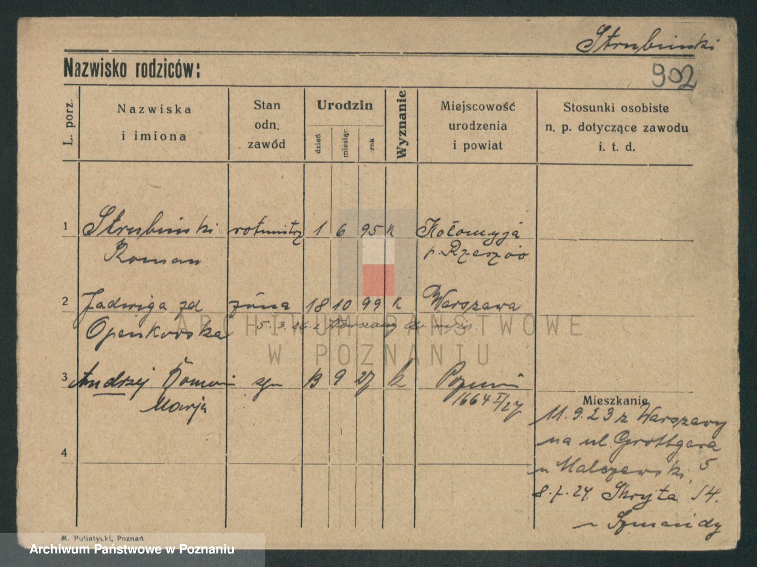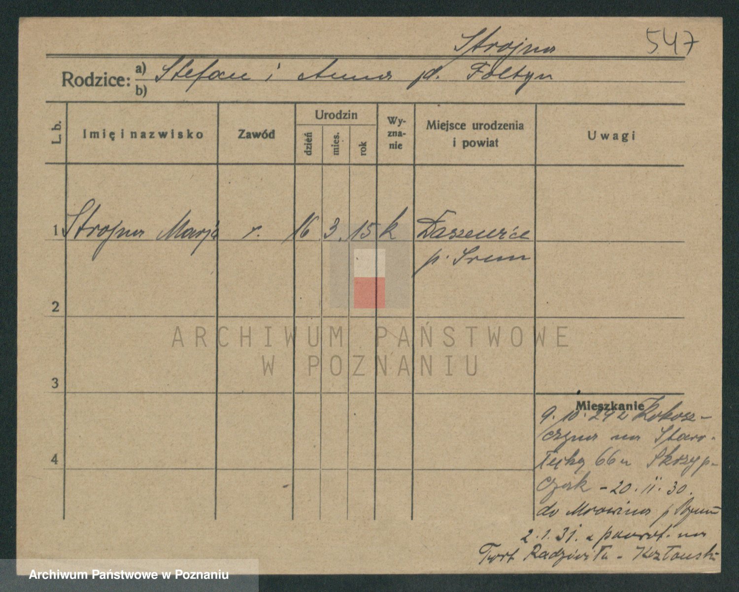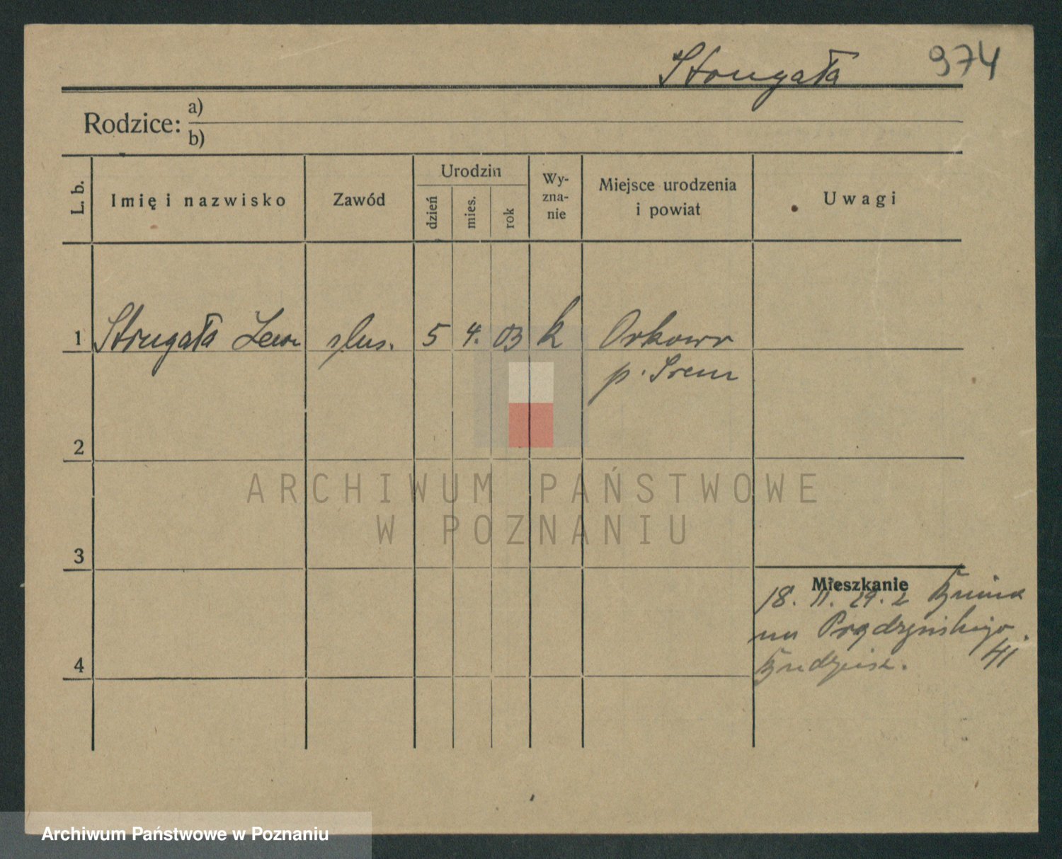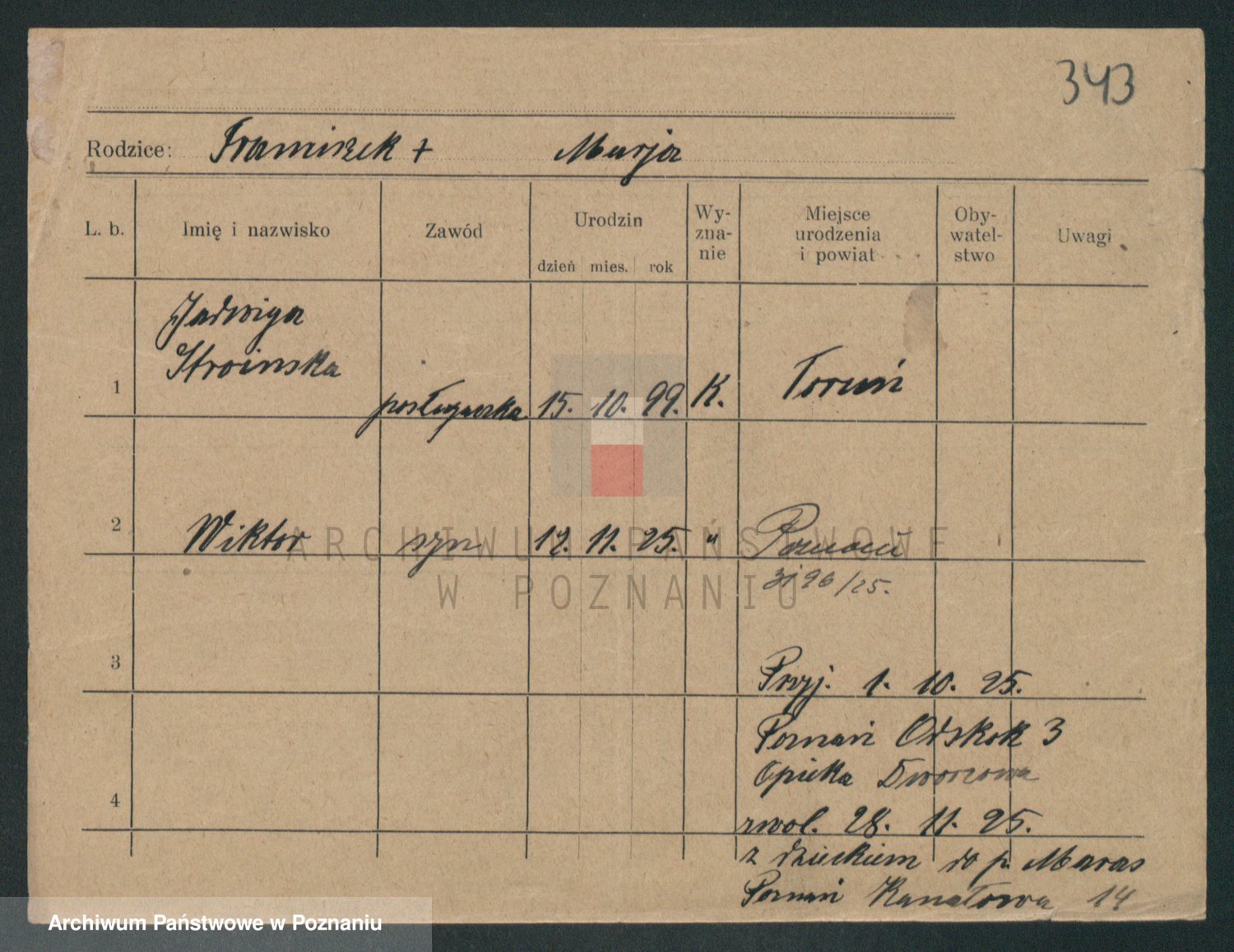 Podgląd karty osobowej dostępny jest po kliknięciu na nazwisko lub ikonkę karty. Można dokonywać powiększenia (ikony na górze) lub przechodzić między kolejnymi skanami (strzałki po bokach).