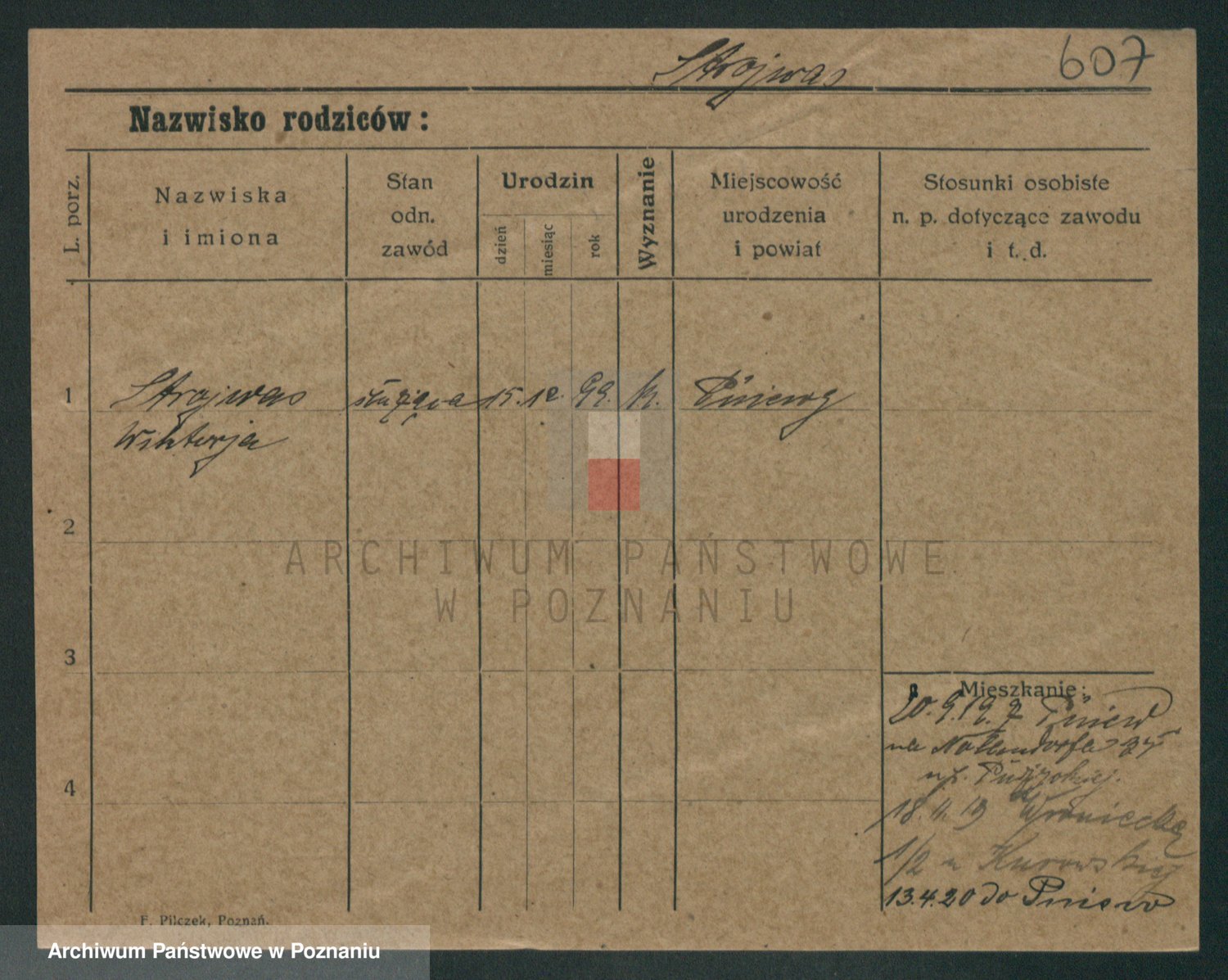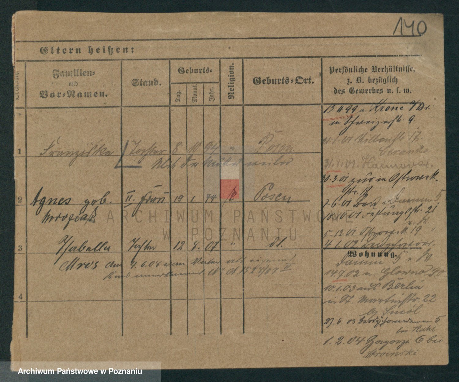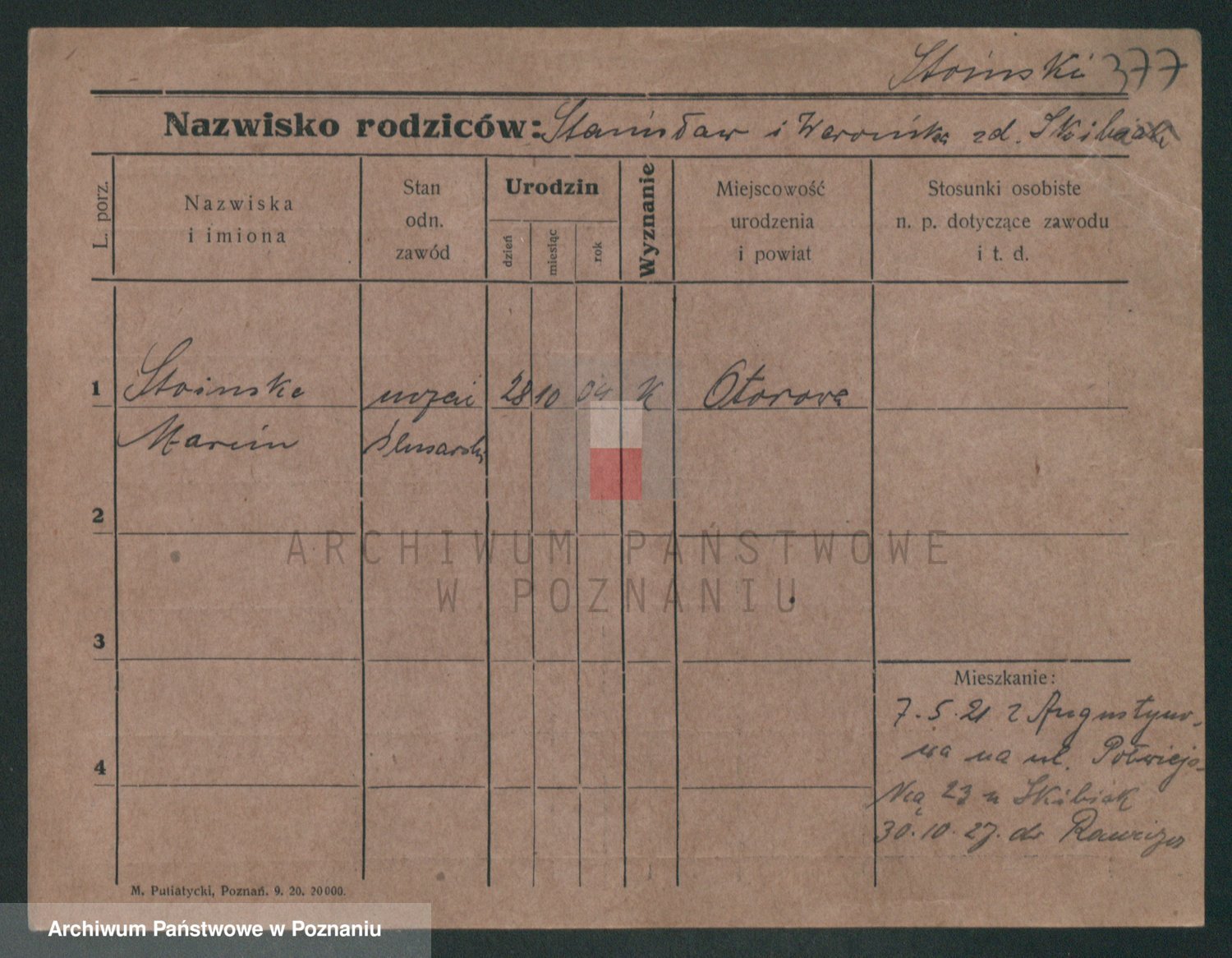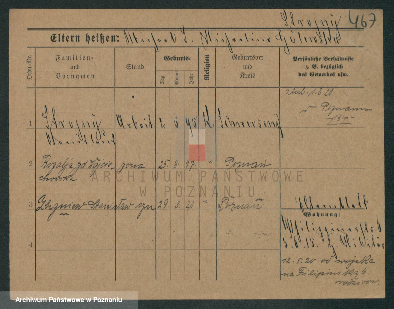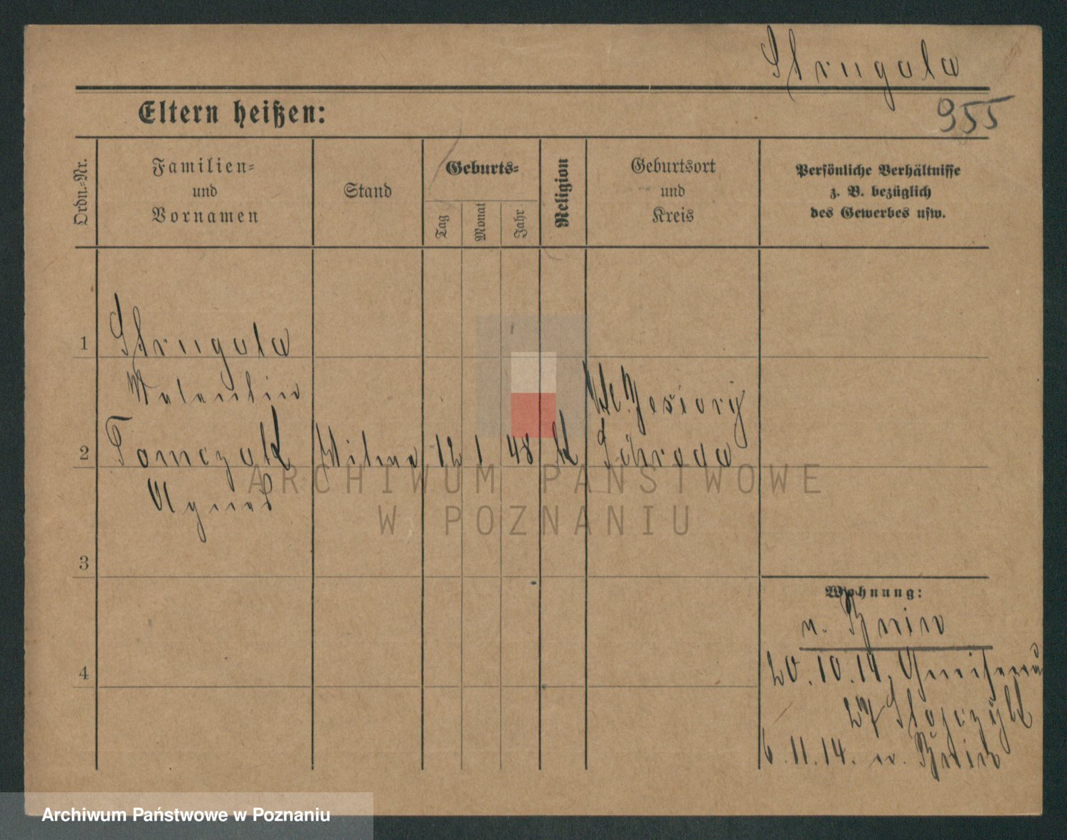 Podgląd karty osobowej dostępny jest po kliknięciu na nazwisko lub ikonkę karty. Można dokonywać powiększenia (ikony na górze) lub przechodzić między kolejnymi skanami (strzałki po bokach).