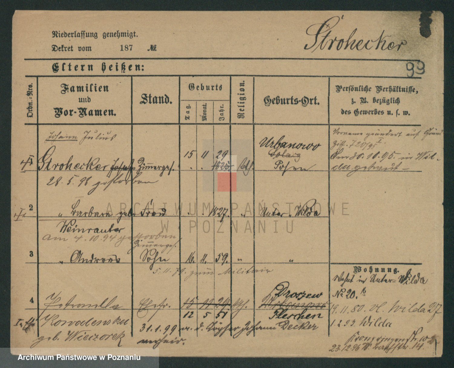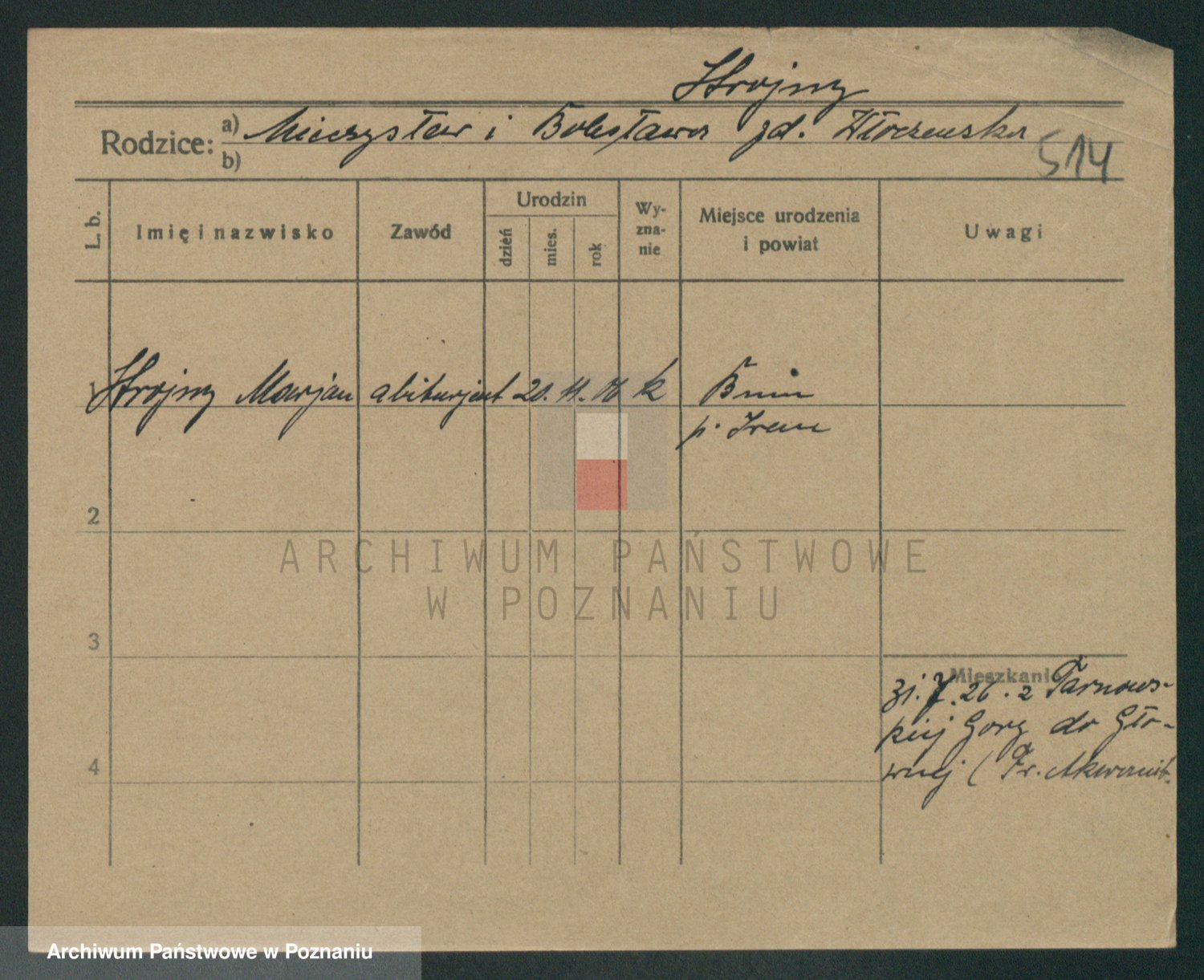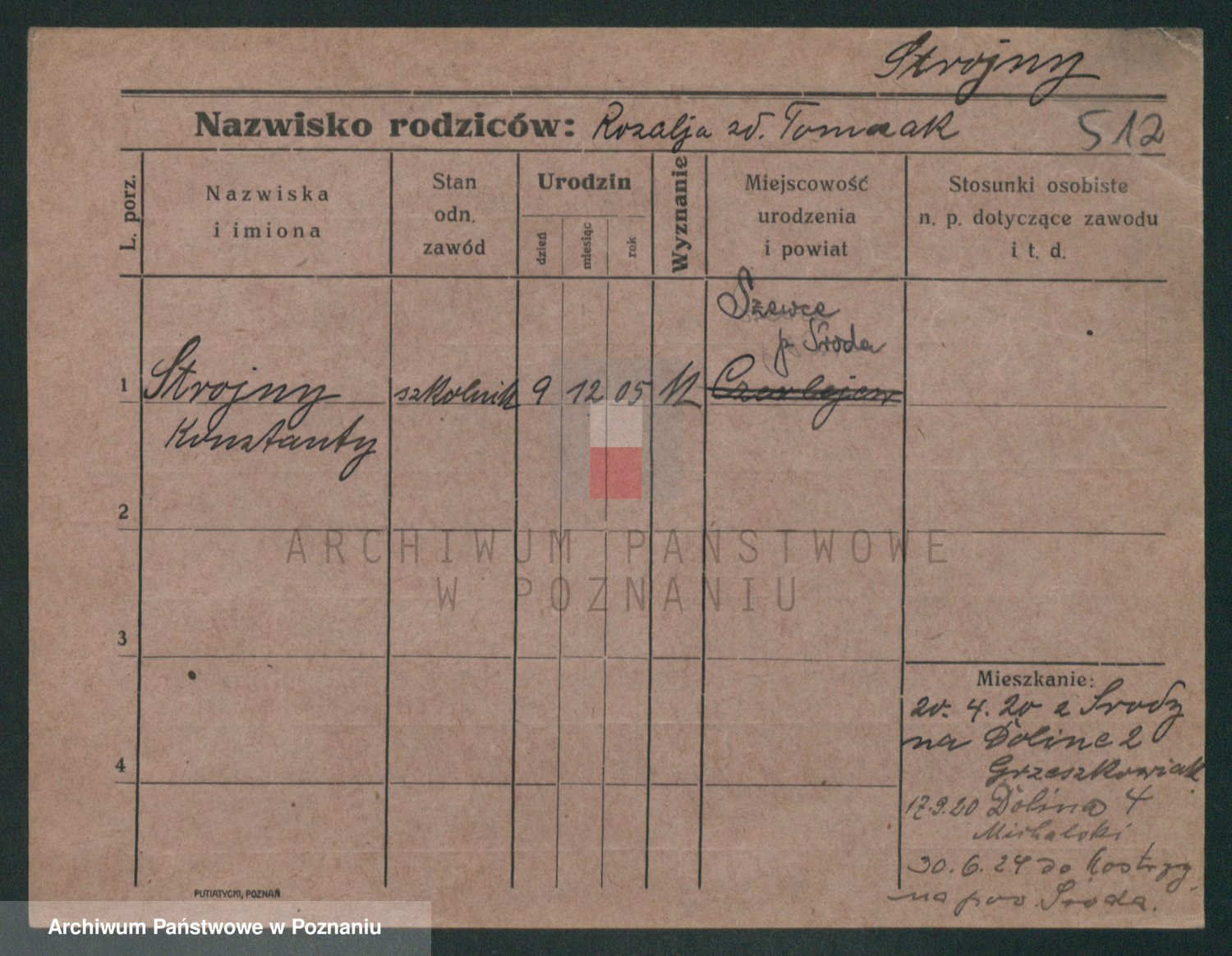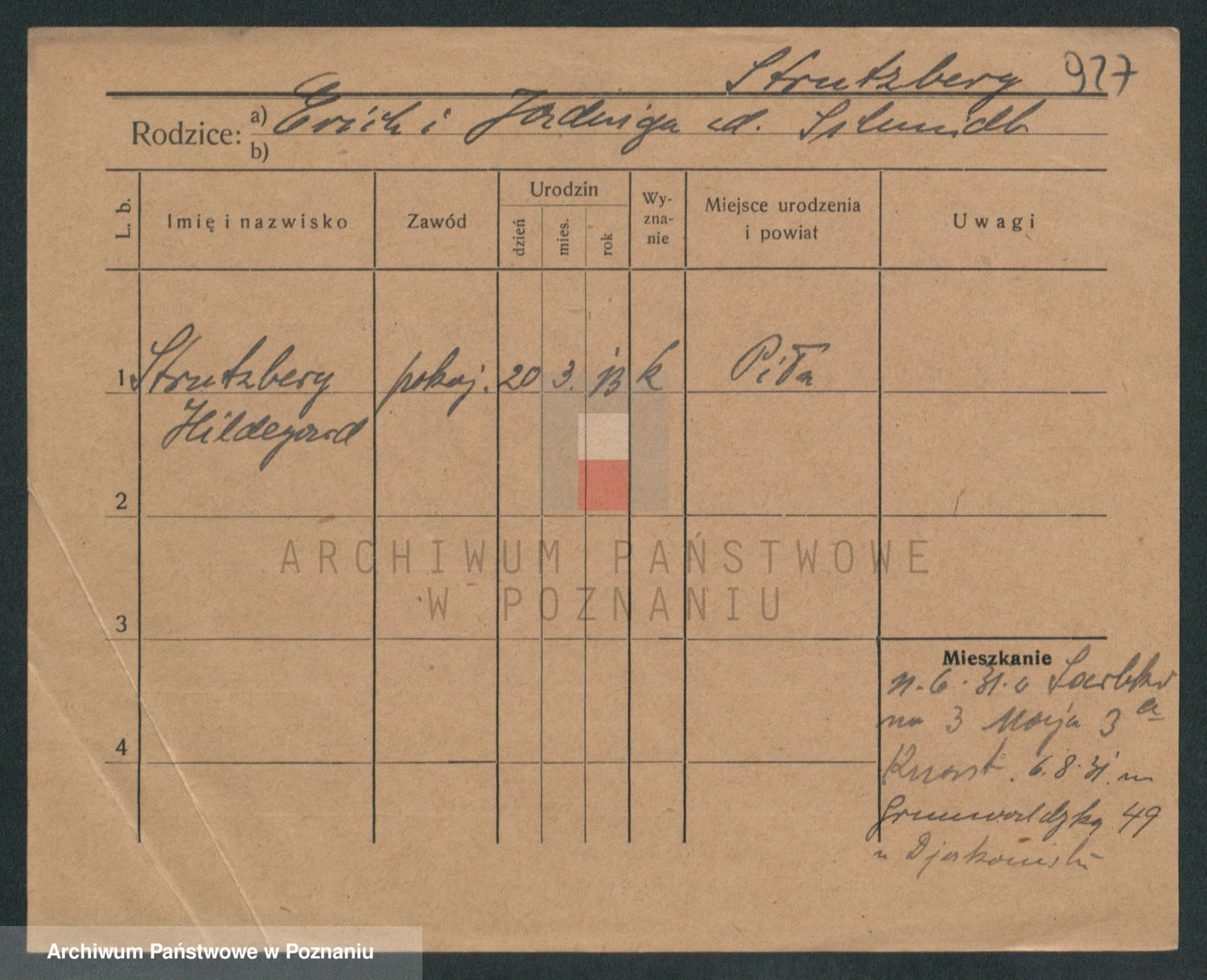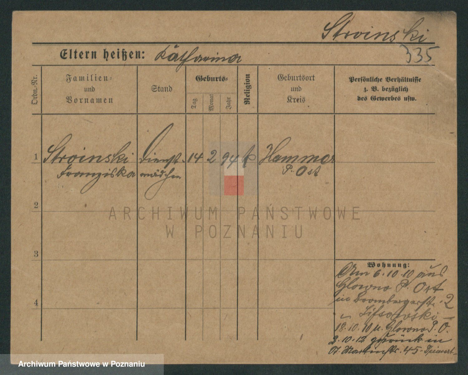 Podgląd karty osobowej dostępny jest po kliknięciu na nazwisko lub ikonkę karty. Można dokonywać powiększenia (ikony na górze) lub przechodzić między kolejnymi skanami (strzałki po bokach).