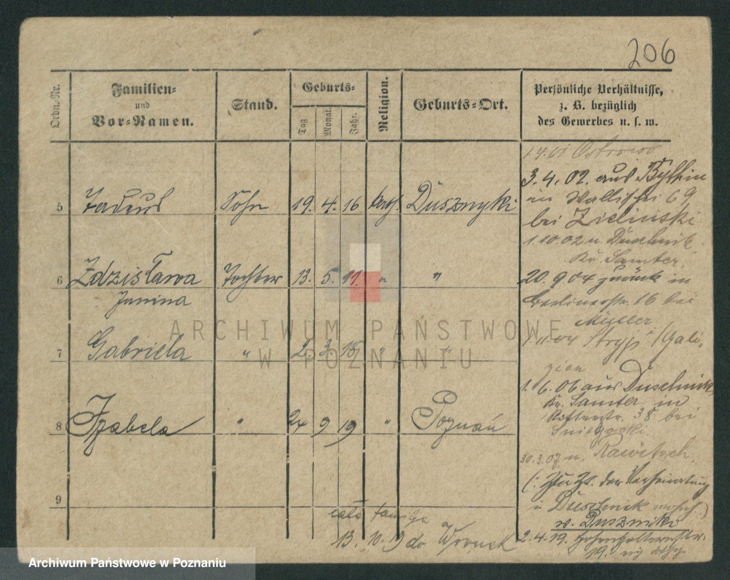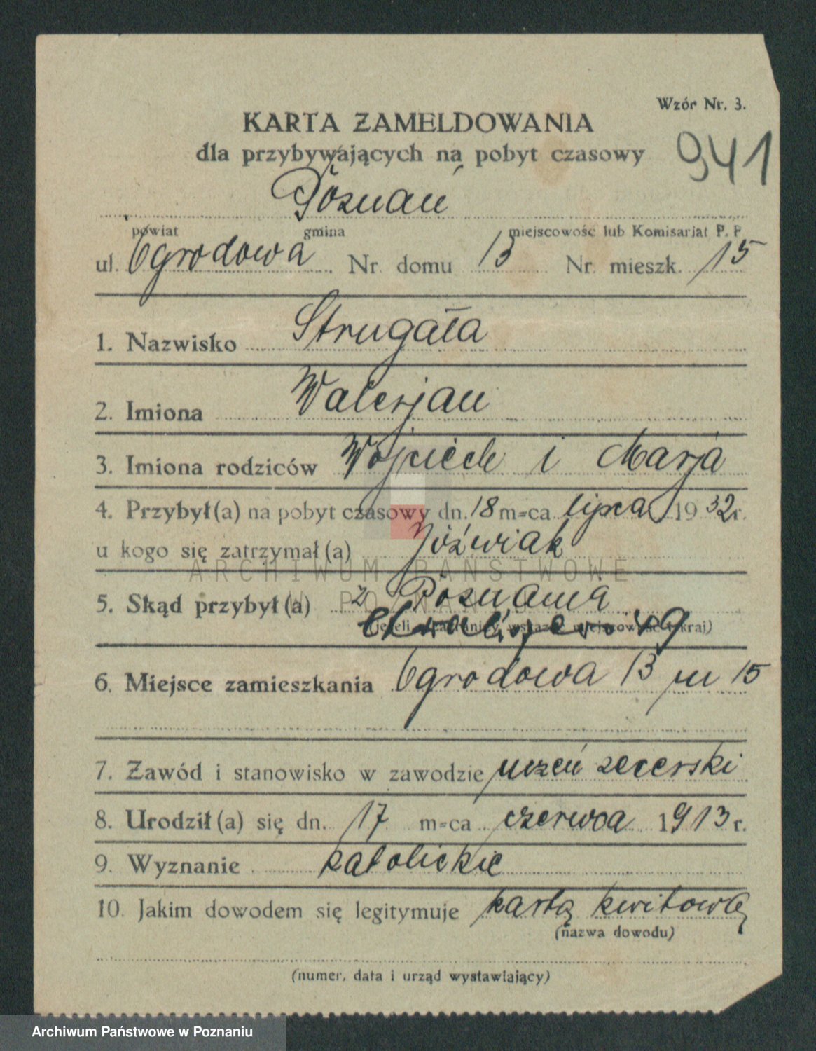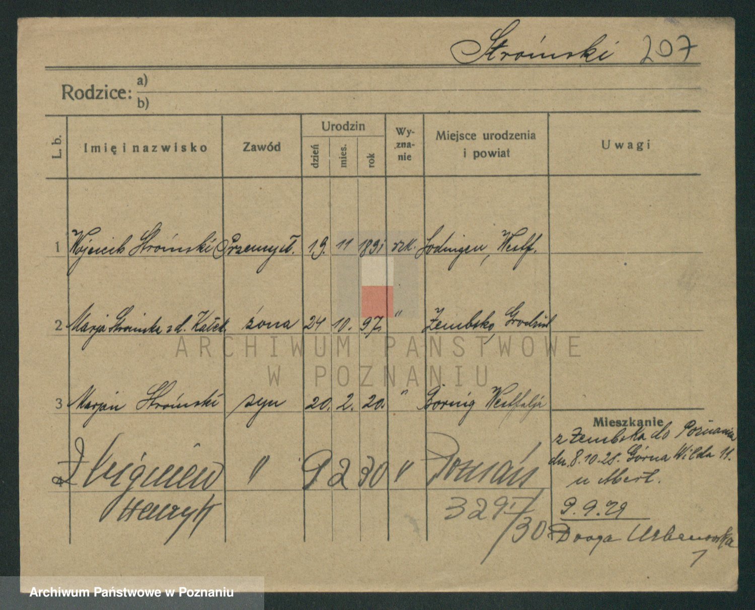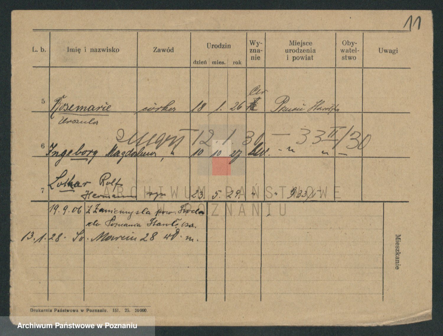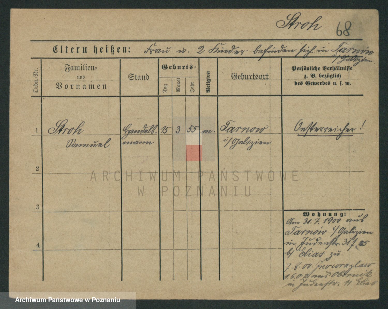 Podgląd karty osobowej dostępny jest po kliknięciu na nazwisko lub ikonkę karty. Można dokonywać powiększenia (ikony na górze) lub przechodzić między kolejnymi skanami (strzałki po bokach).
