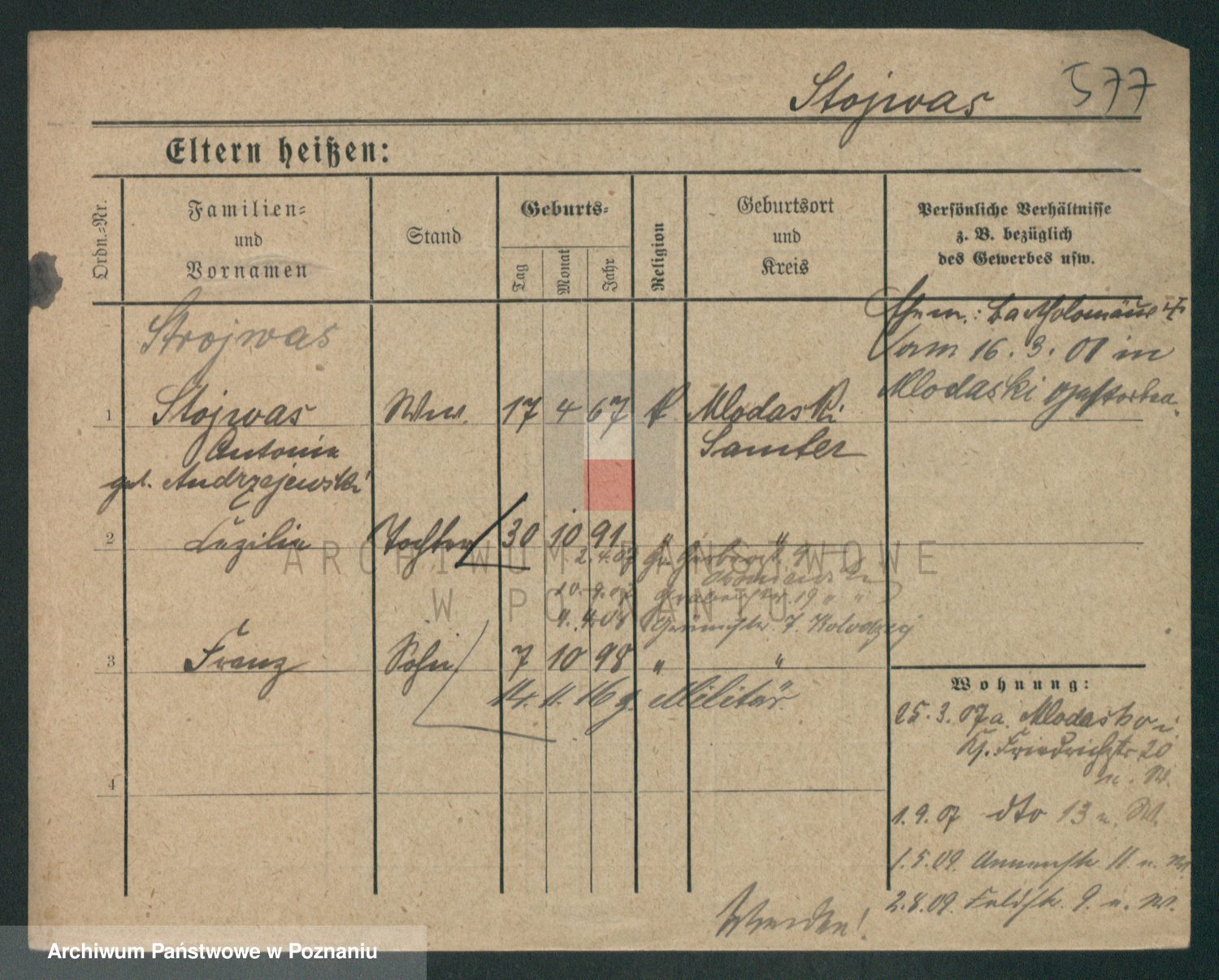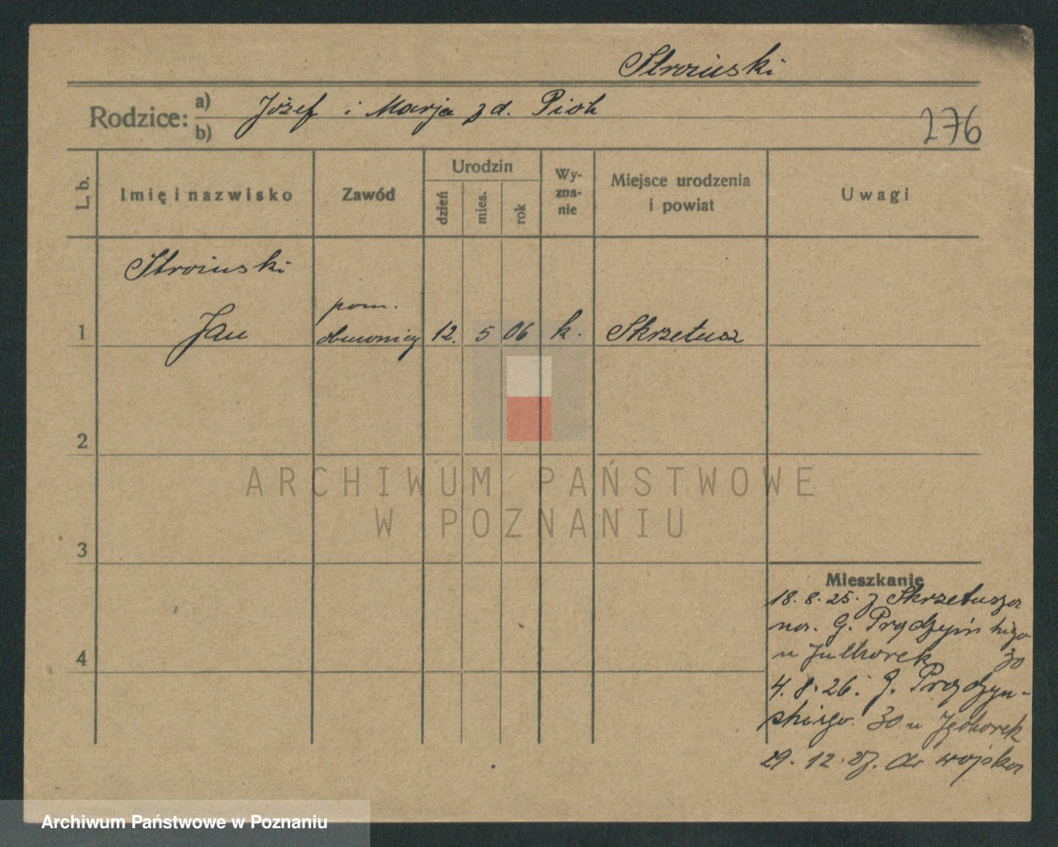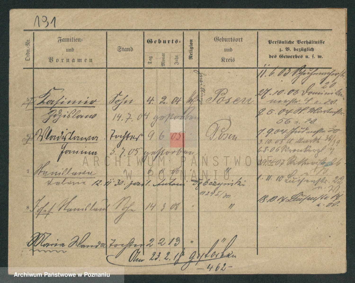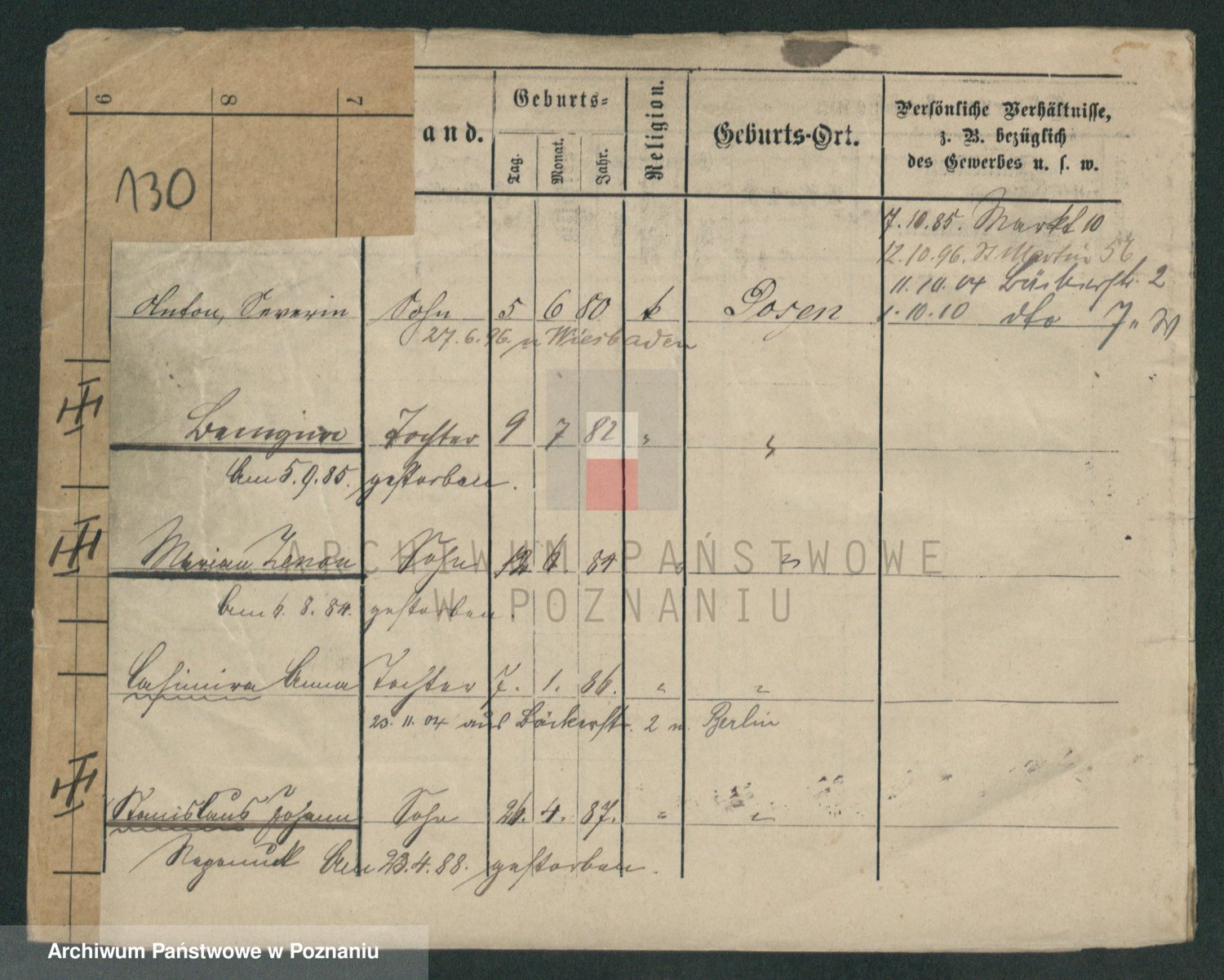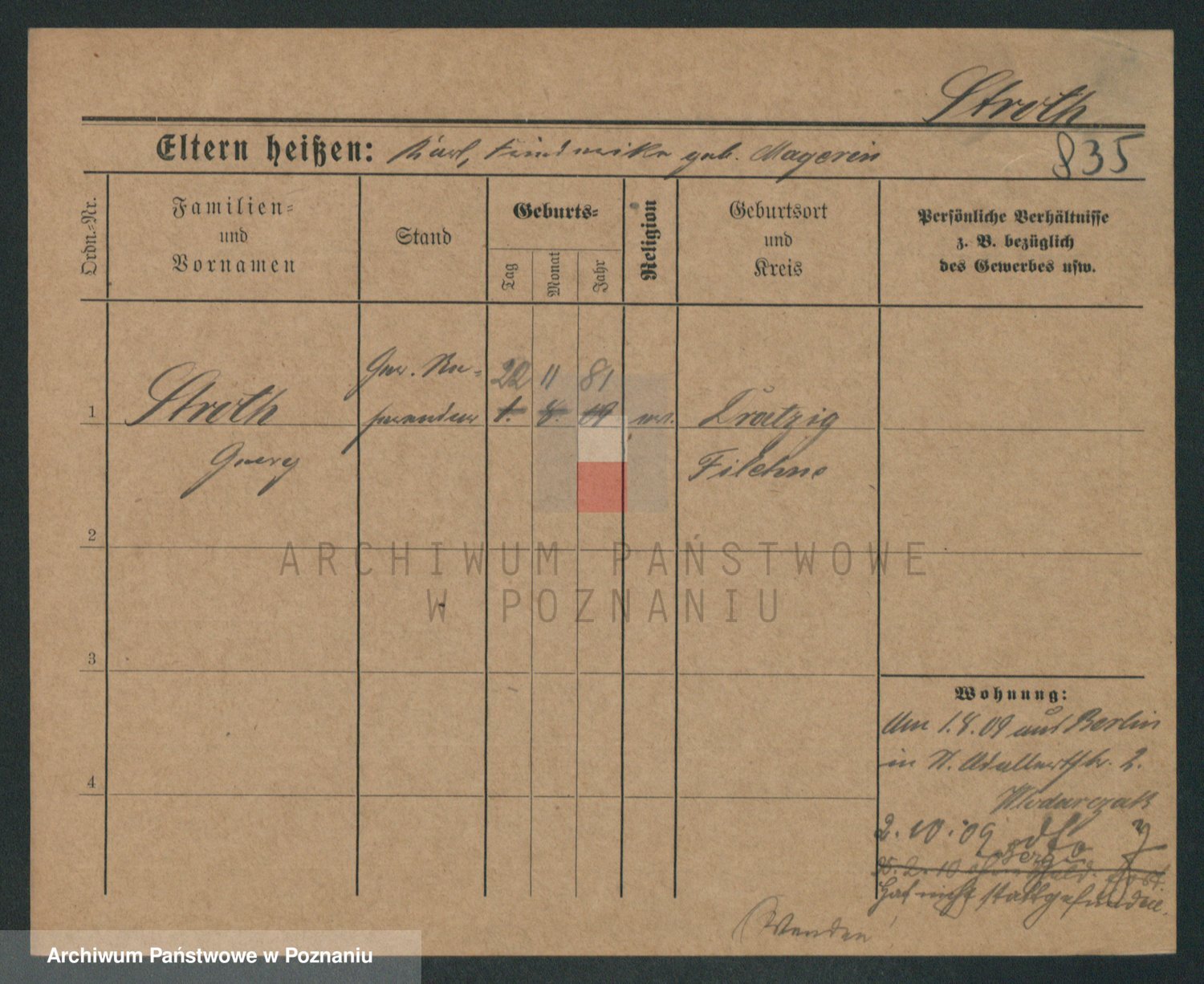 Podgląd karty osobowej dostępny jest po kliknięciu na nazwisko lub ikonkę karty. Można dokonywać powiększenia (ikony na górze) lub przechodzić między kolejnymi skanami (strzałki po bokach).