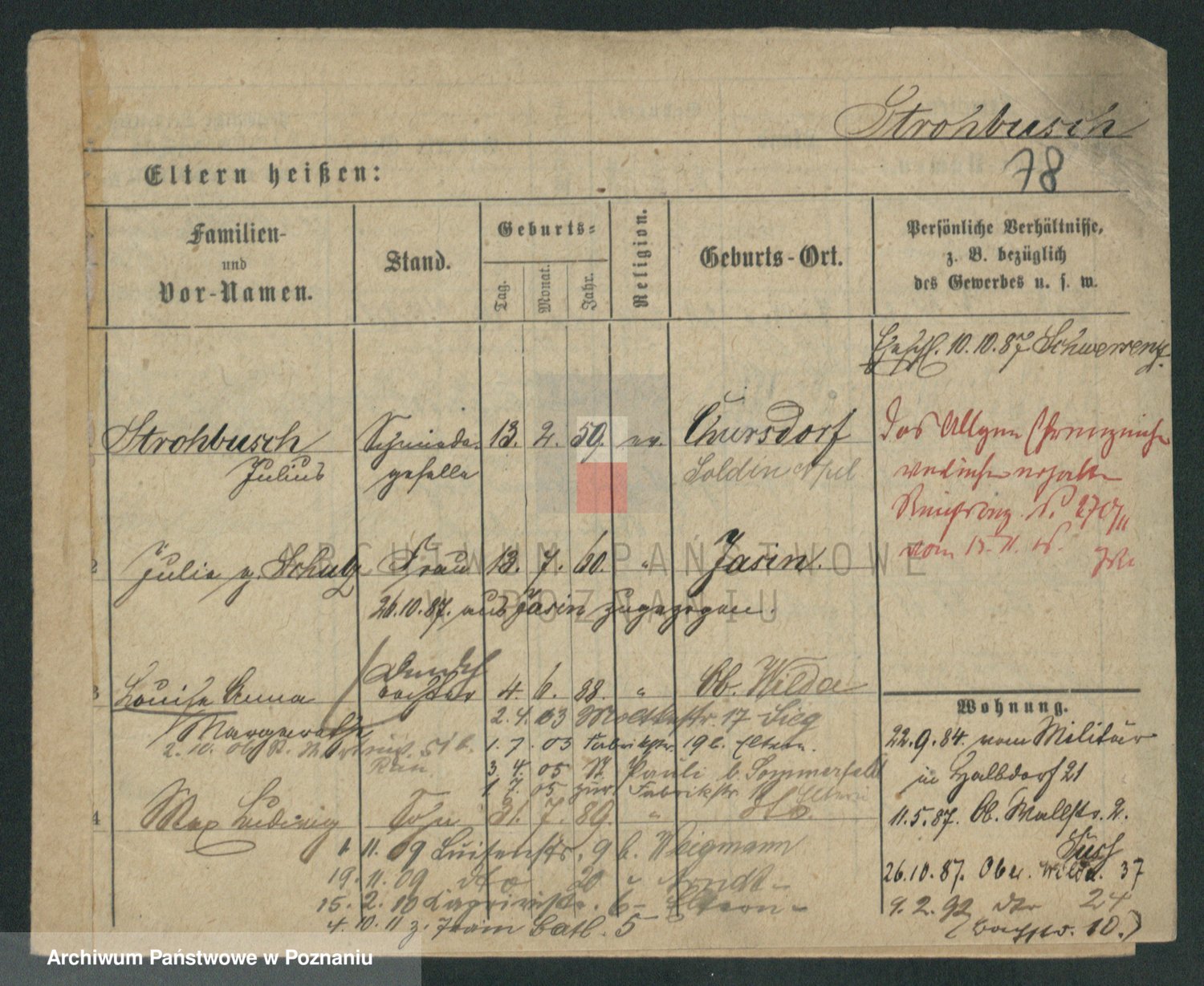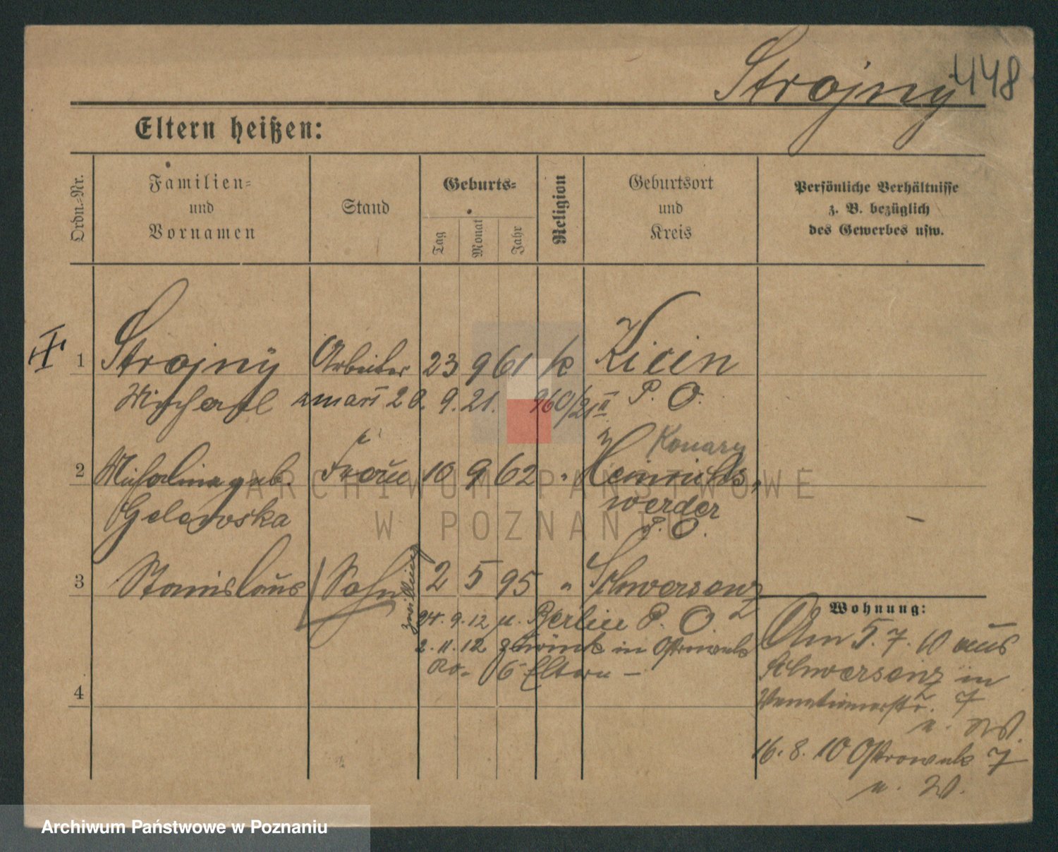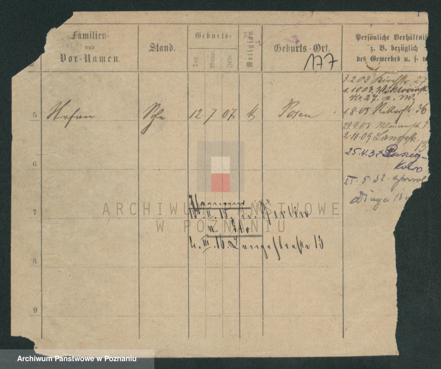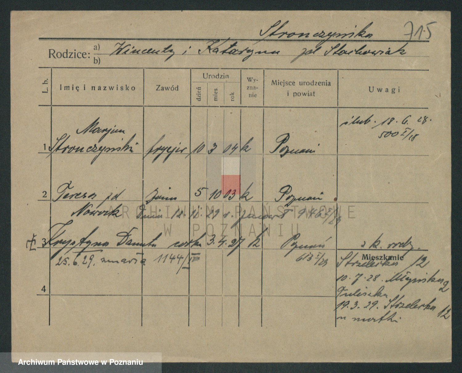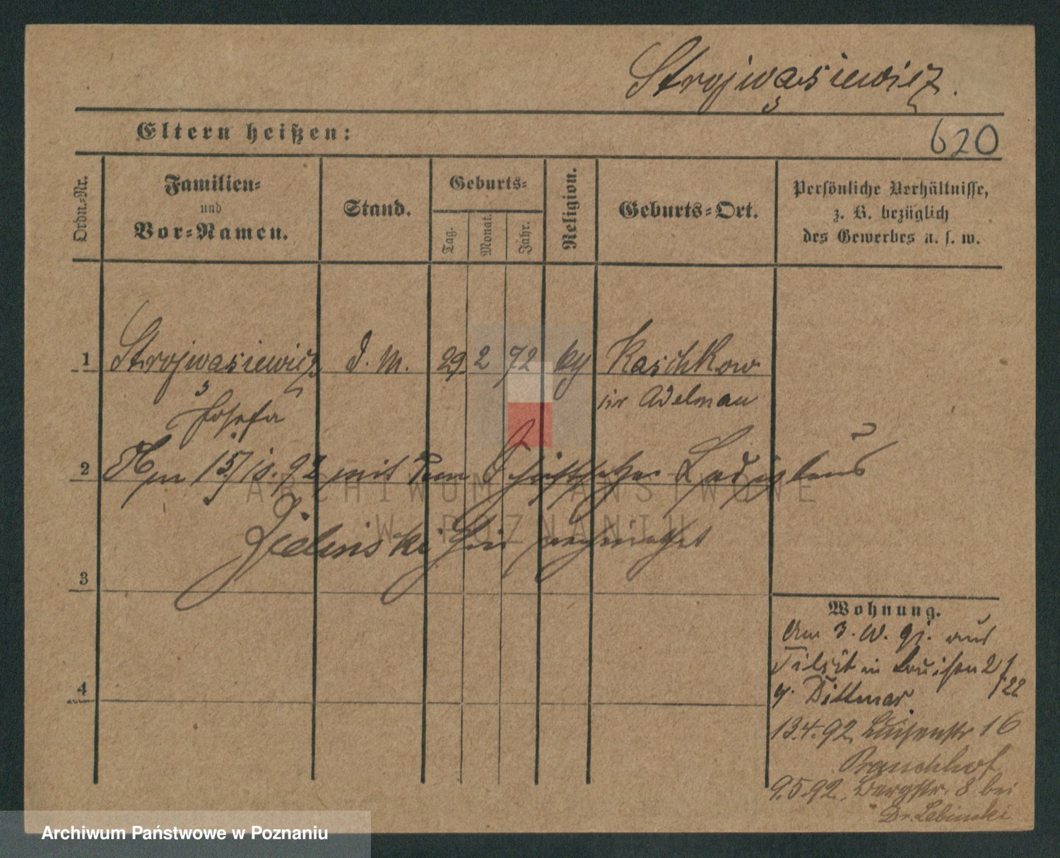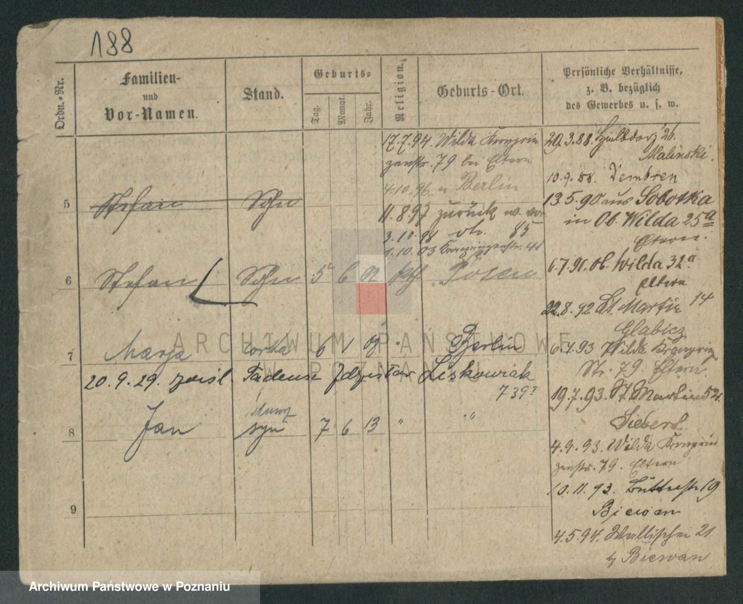 Podgląd karty osobowej dostępny jest po kliknięciu na nazwisko lub ikonkę karty. Można dokonywać powiększenia (ikony na górze) lub przechodzić między kolejnymi skanami (strzałki po bokach).