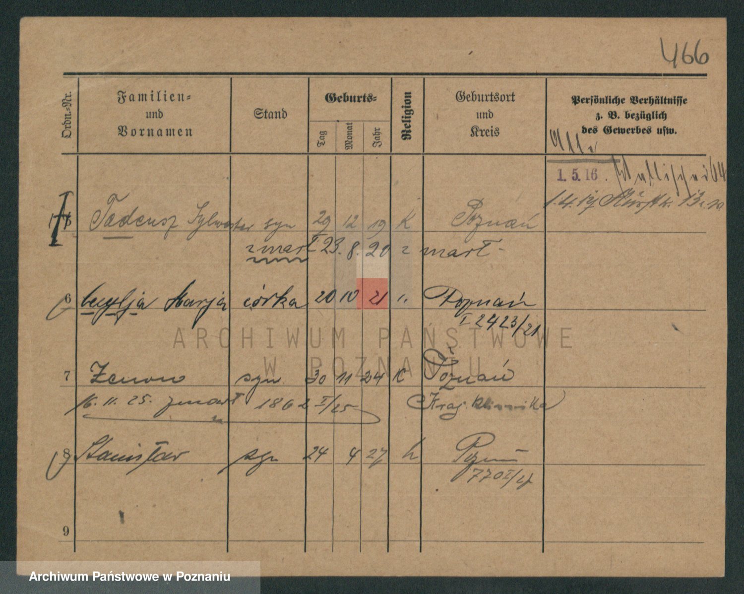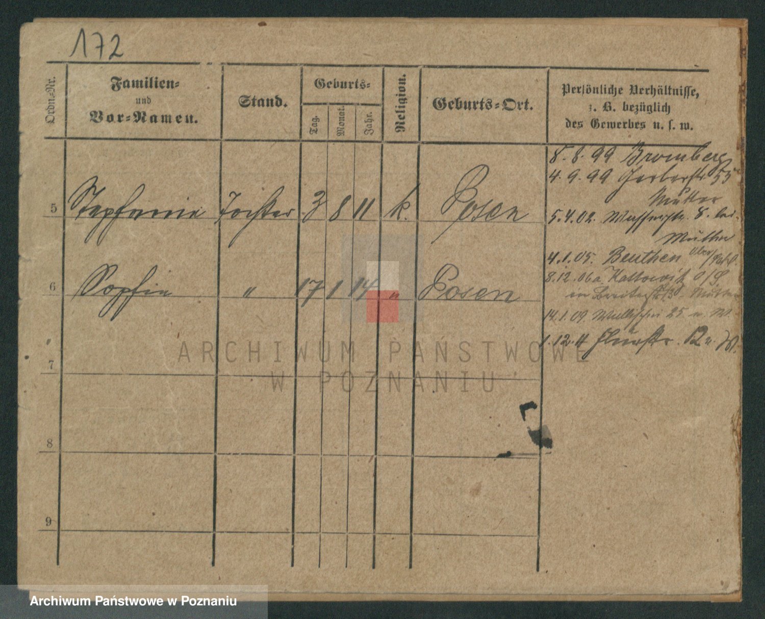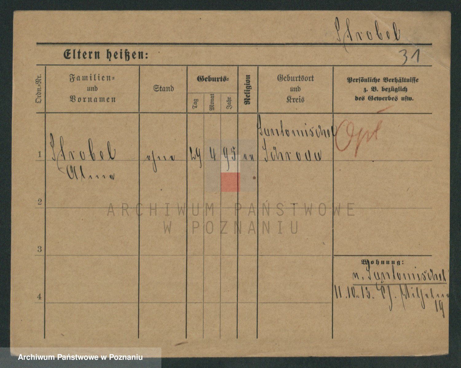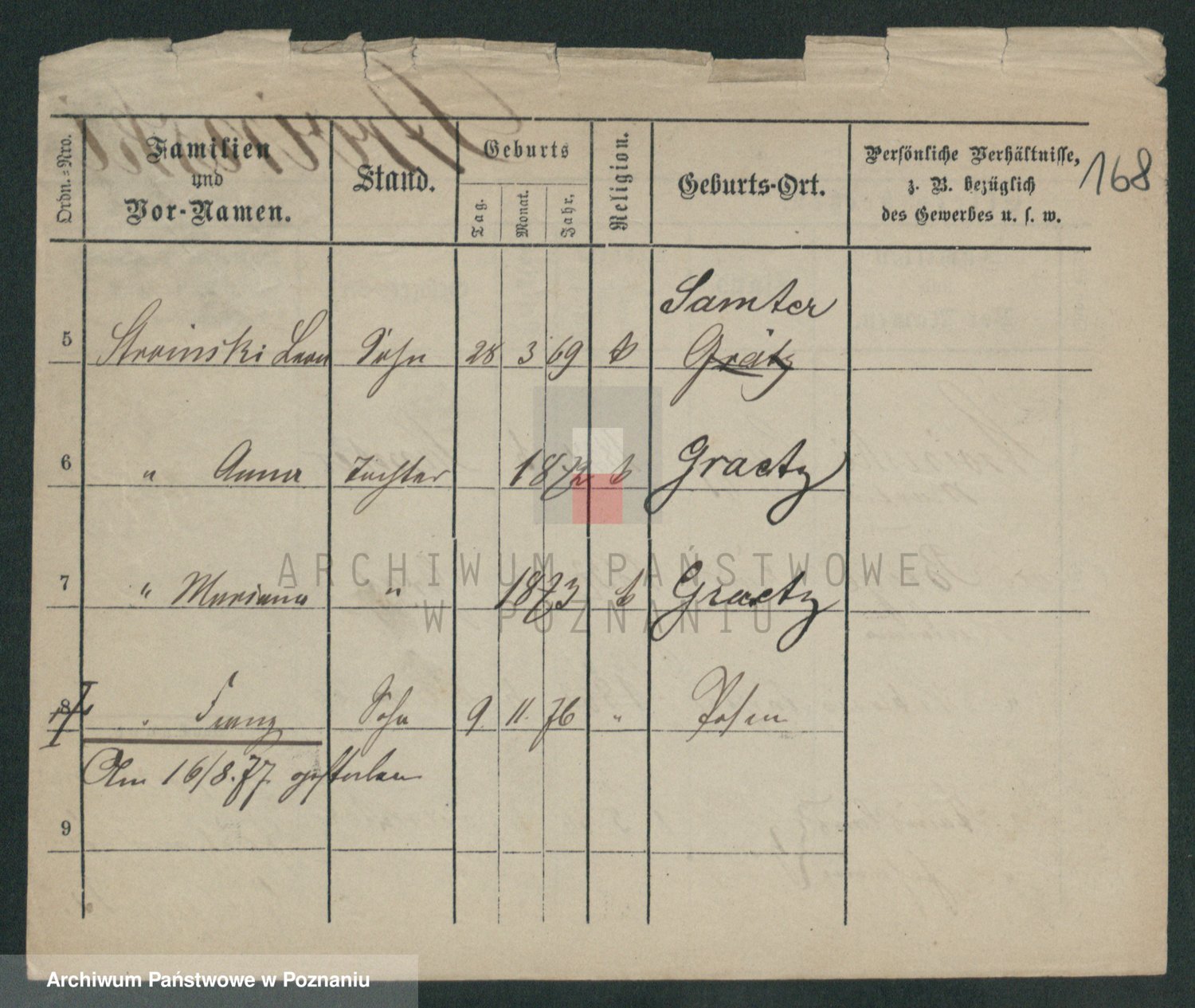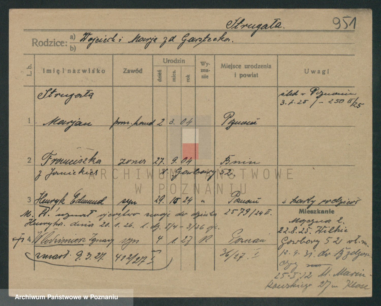 Podgląd karty osobowej dostępny jest po kliknięciu na nazwisko lub ikonkę karty. Można dokonywać powiększenia (ikony na górze) lub przechodzić między kolejnymi skanami (strzałki po bokach).