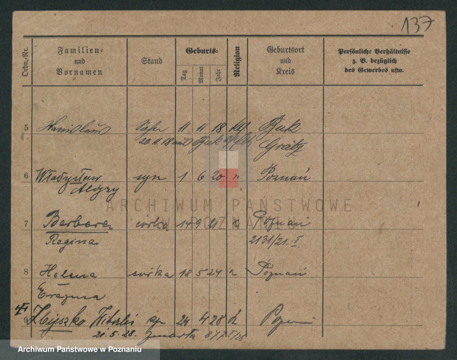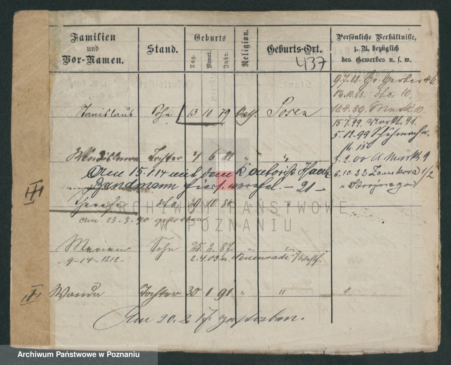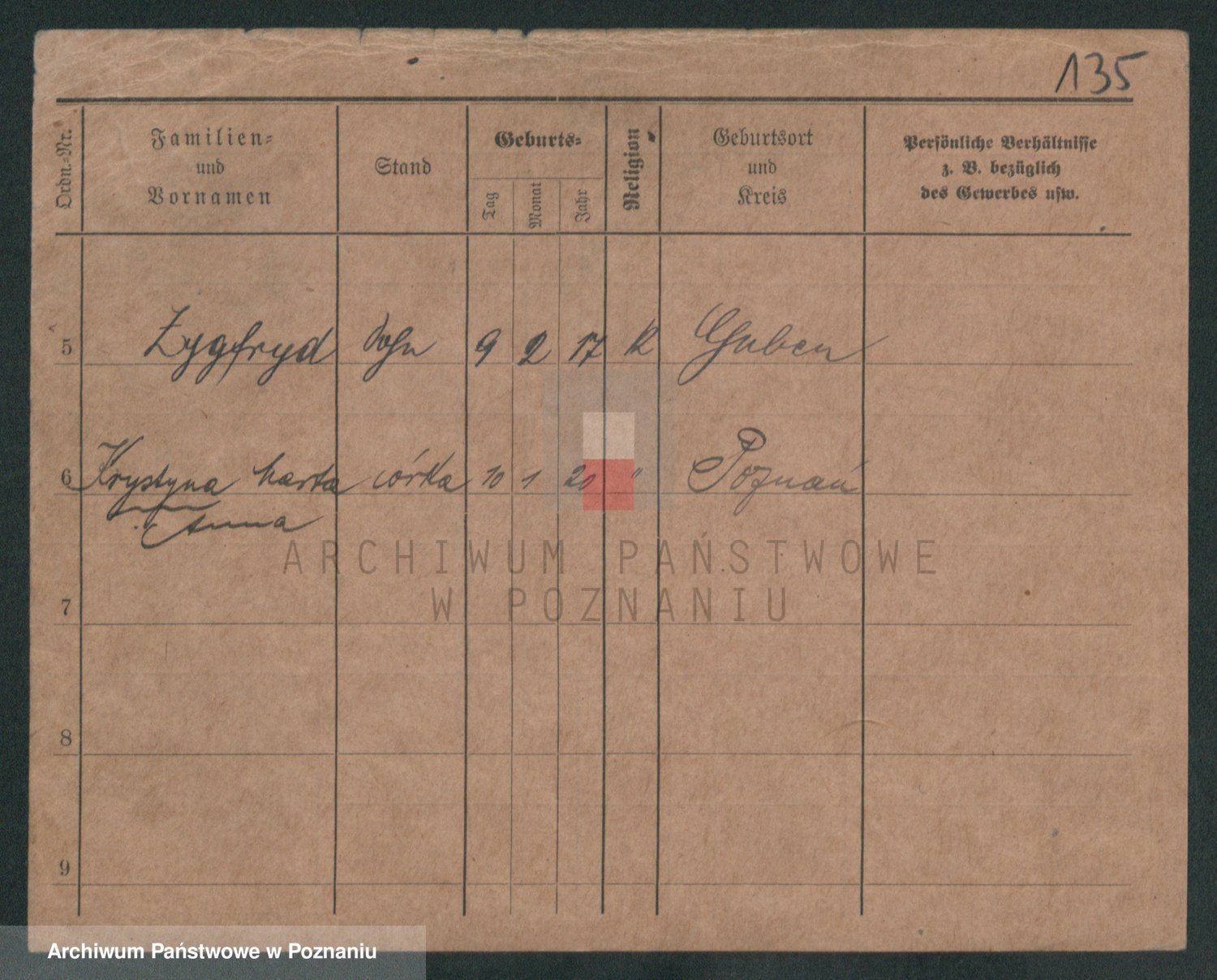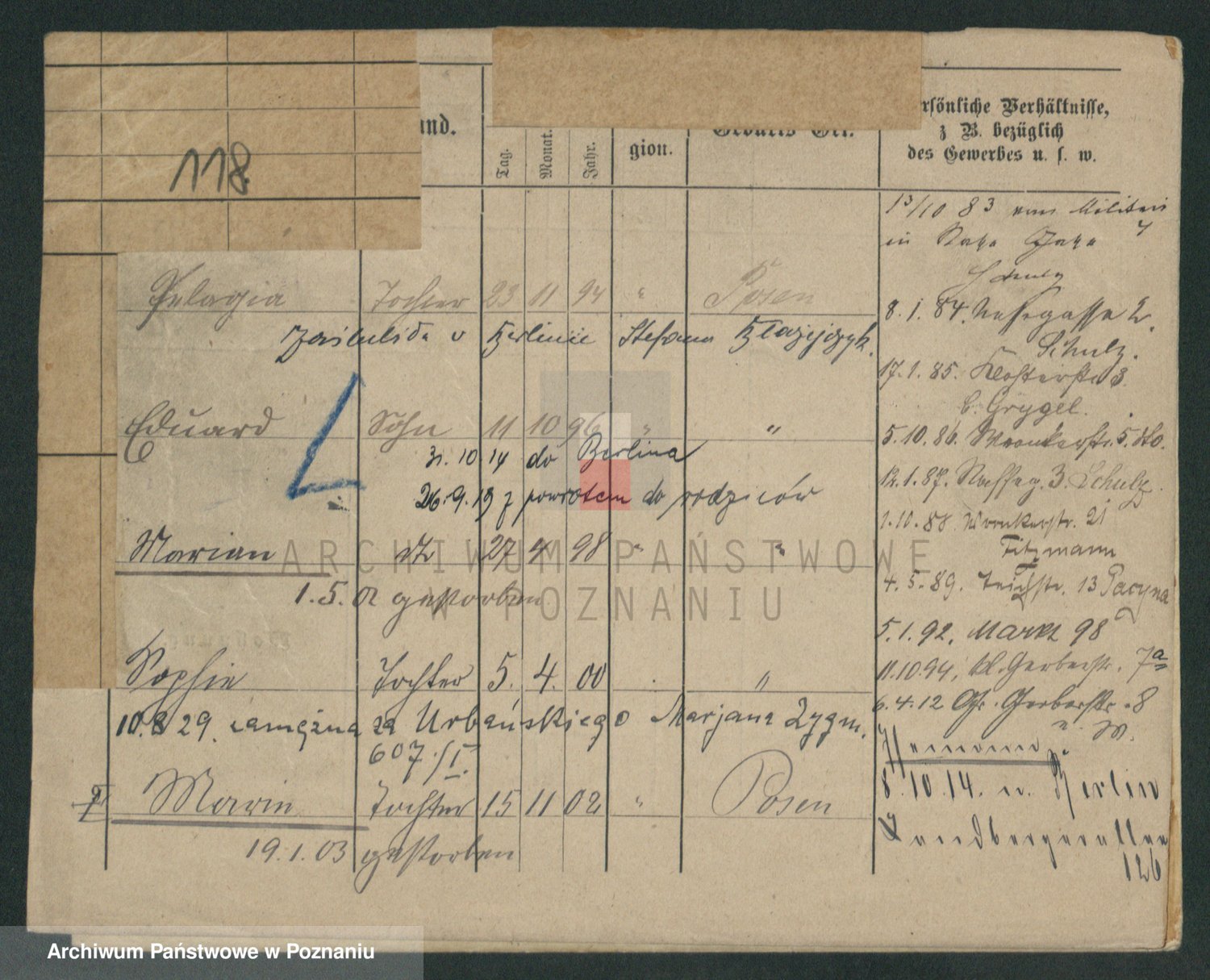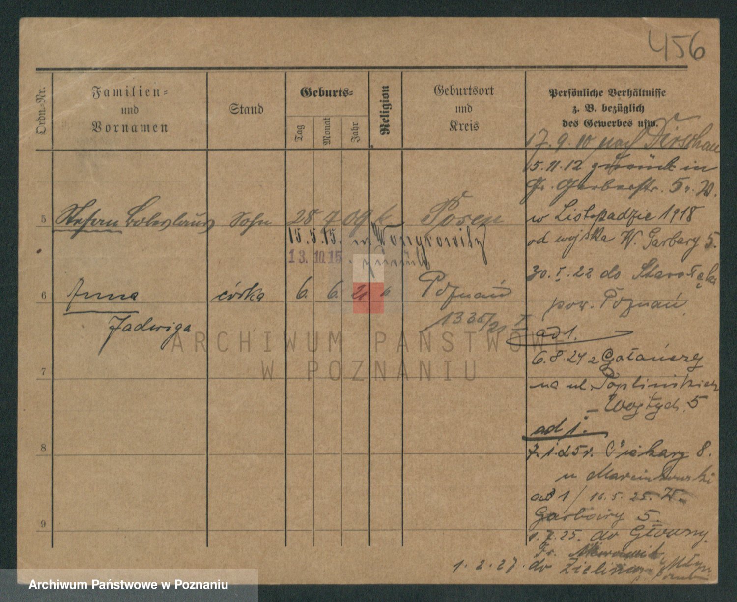 Podgląd karty osobowej dostępny jest po kliknięciu na nazwisko lub ikonkę karty. Można dokonywać powiększenia (ikony na górze) lub przechodzić między kolejnymi skanami (strzałki po bokach).
