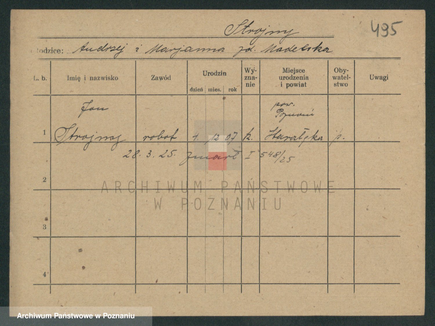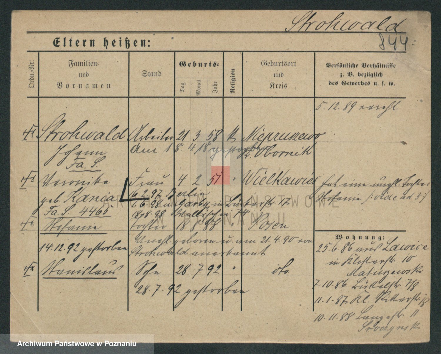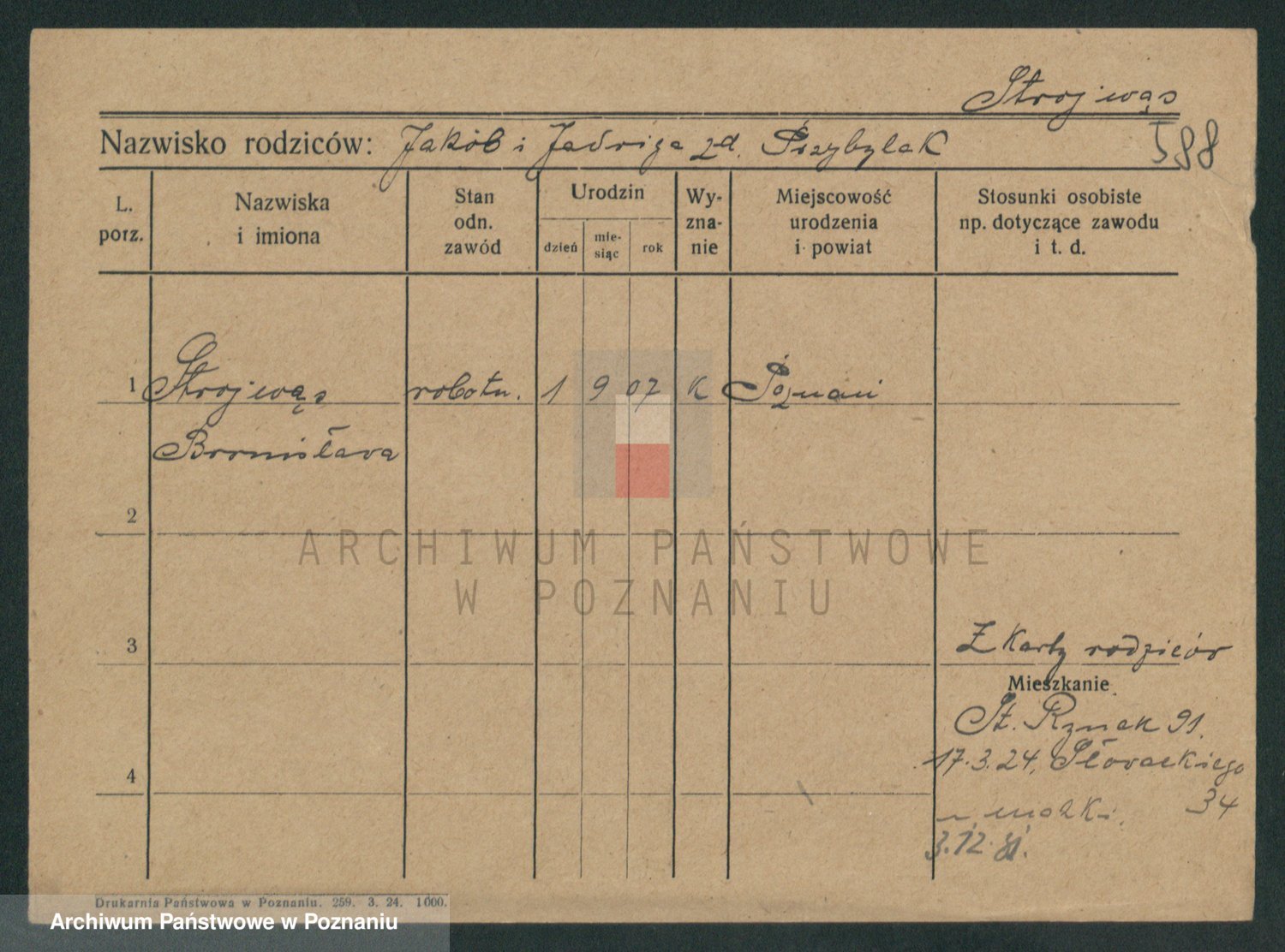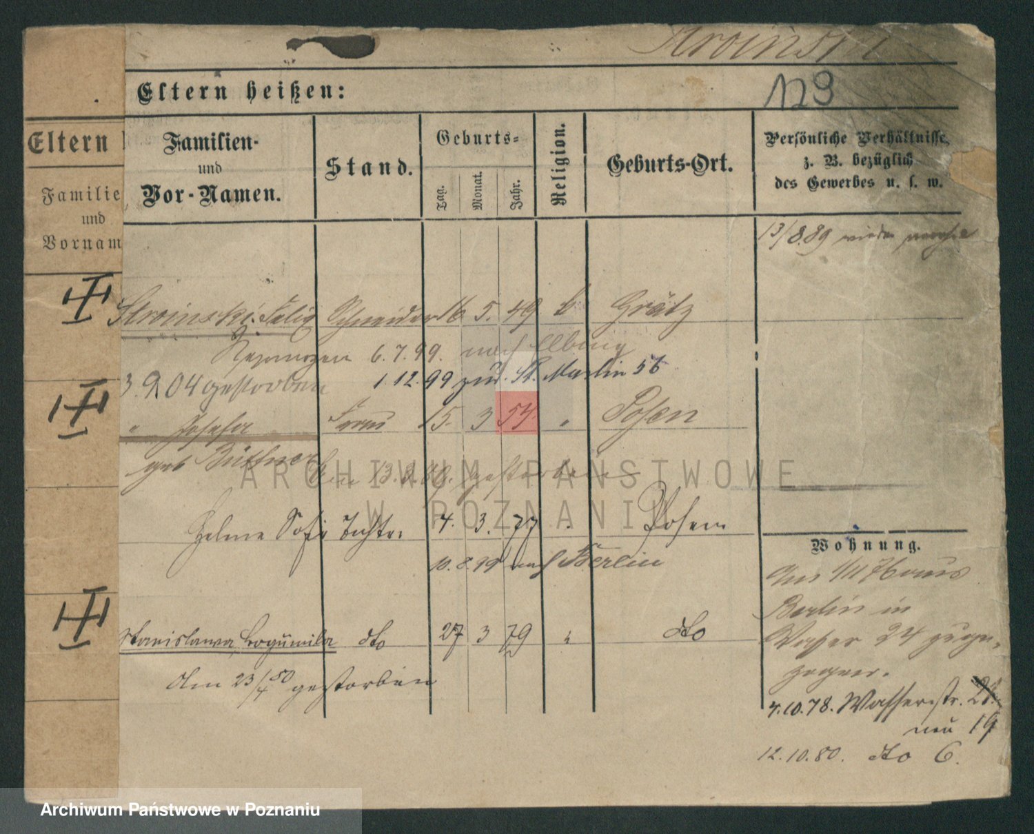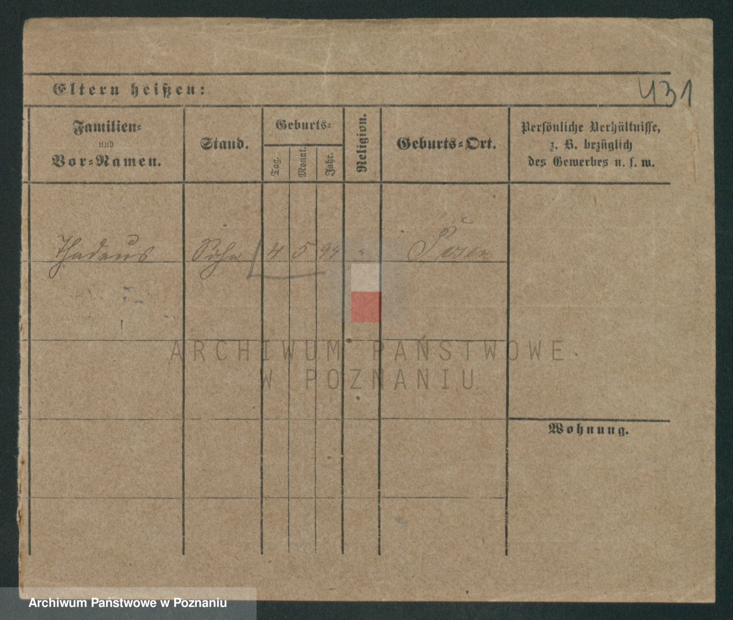 Podgląd karty osobowej dostępny jest po kliknięciu na nazwisko lub ikonkę karty. Można dokonywać powiększenia (ikony na górze) lub przechodzić między kolejnymi skanami (strzałki po bokach).