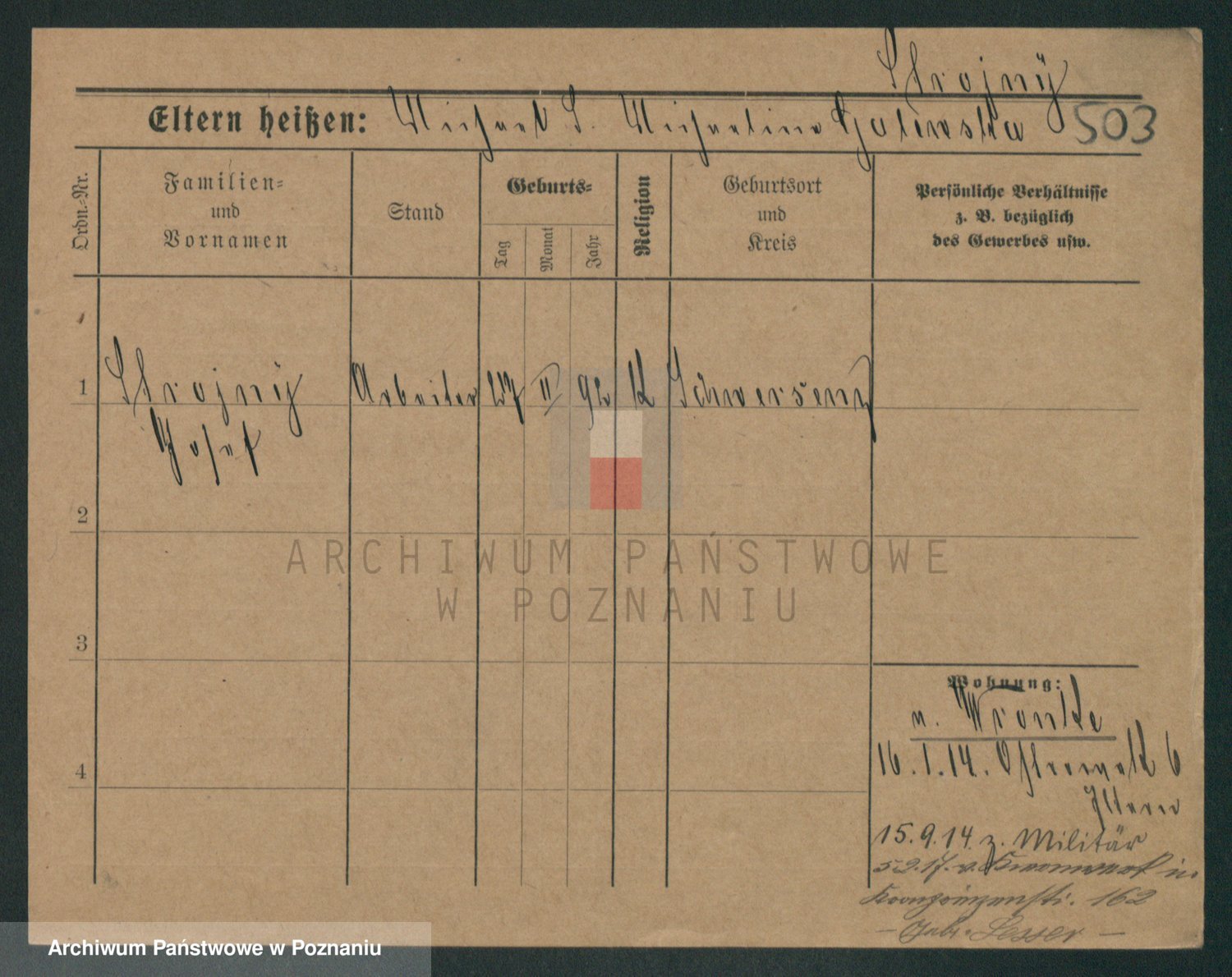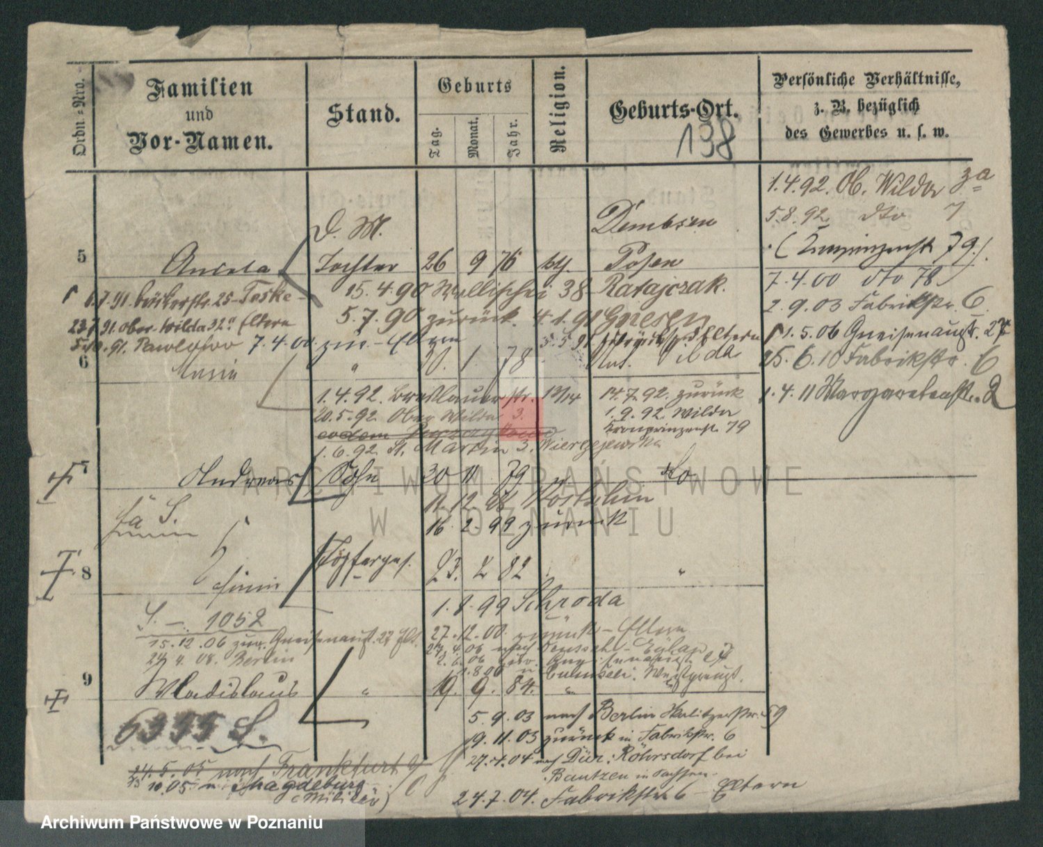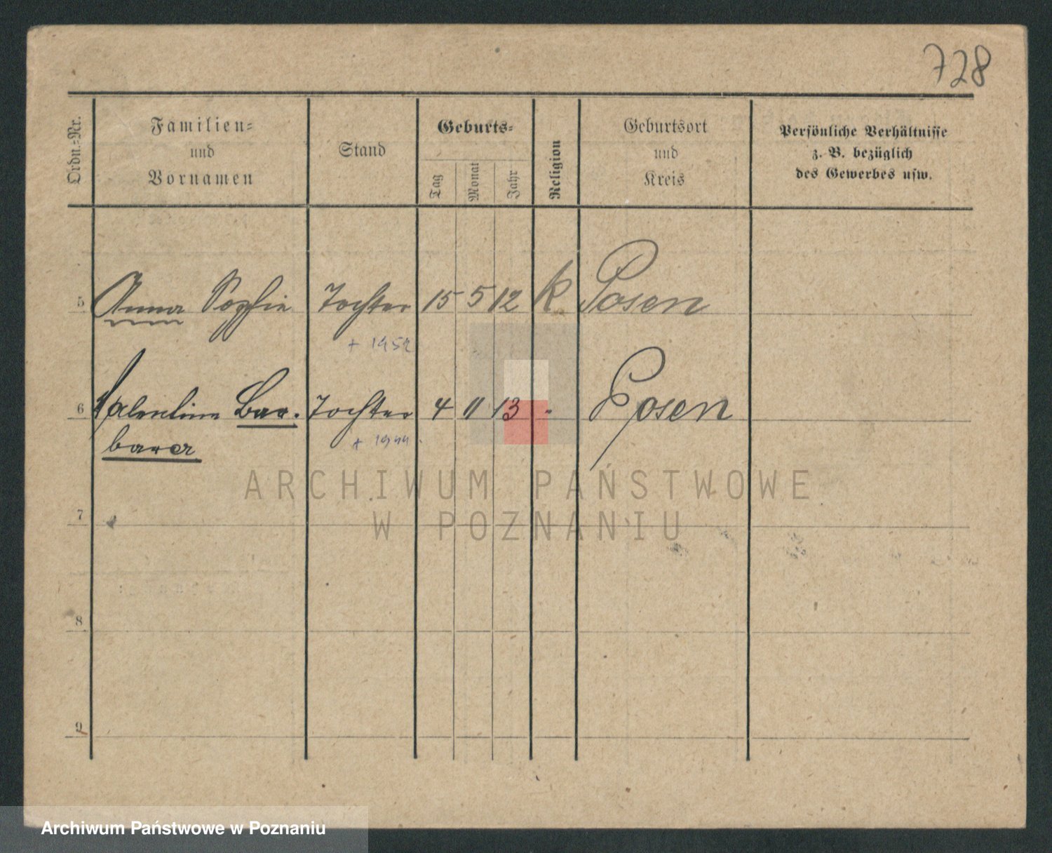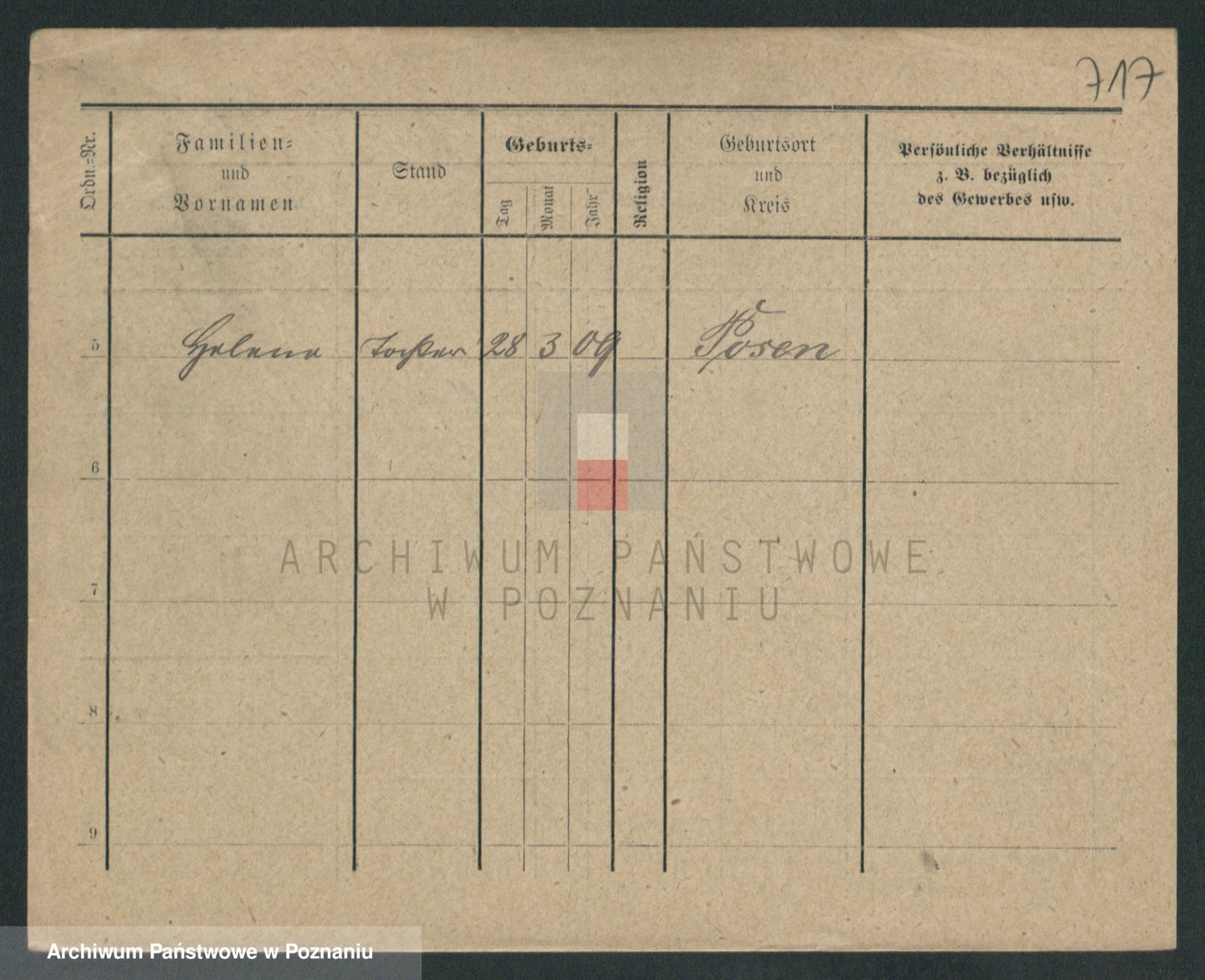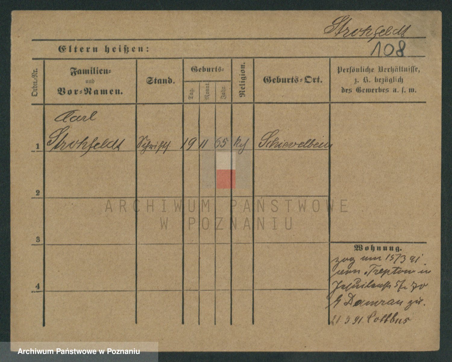Podgląd karty osobowej dostępny jest po kliknięciu na nazwisko lub ikonkę karty. Można dokonywać powiększenia (ikony na górze) lub przechodzić między kolejnymi skanami (strzałki po bokach).