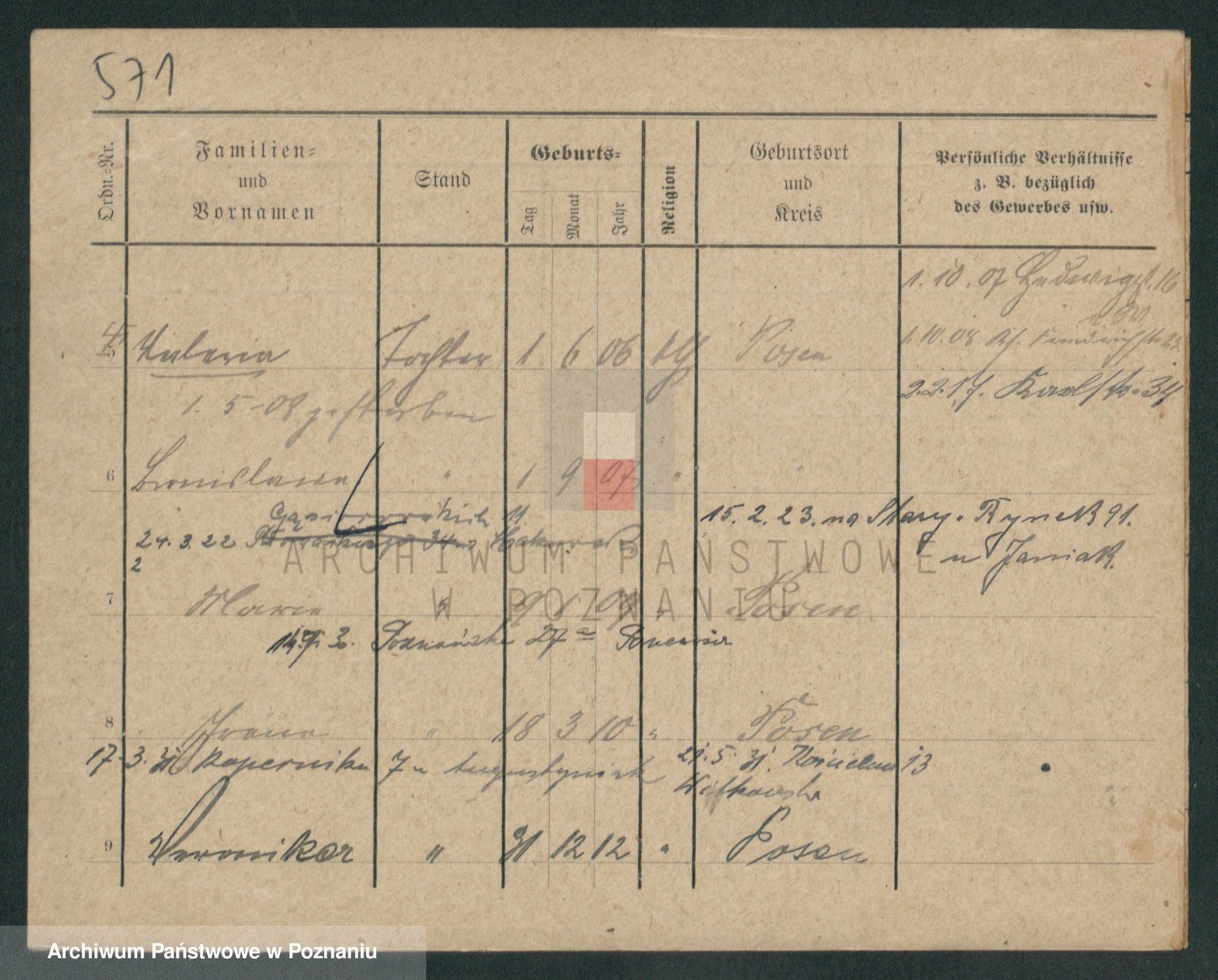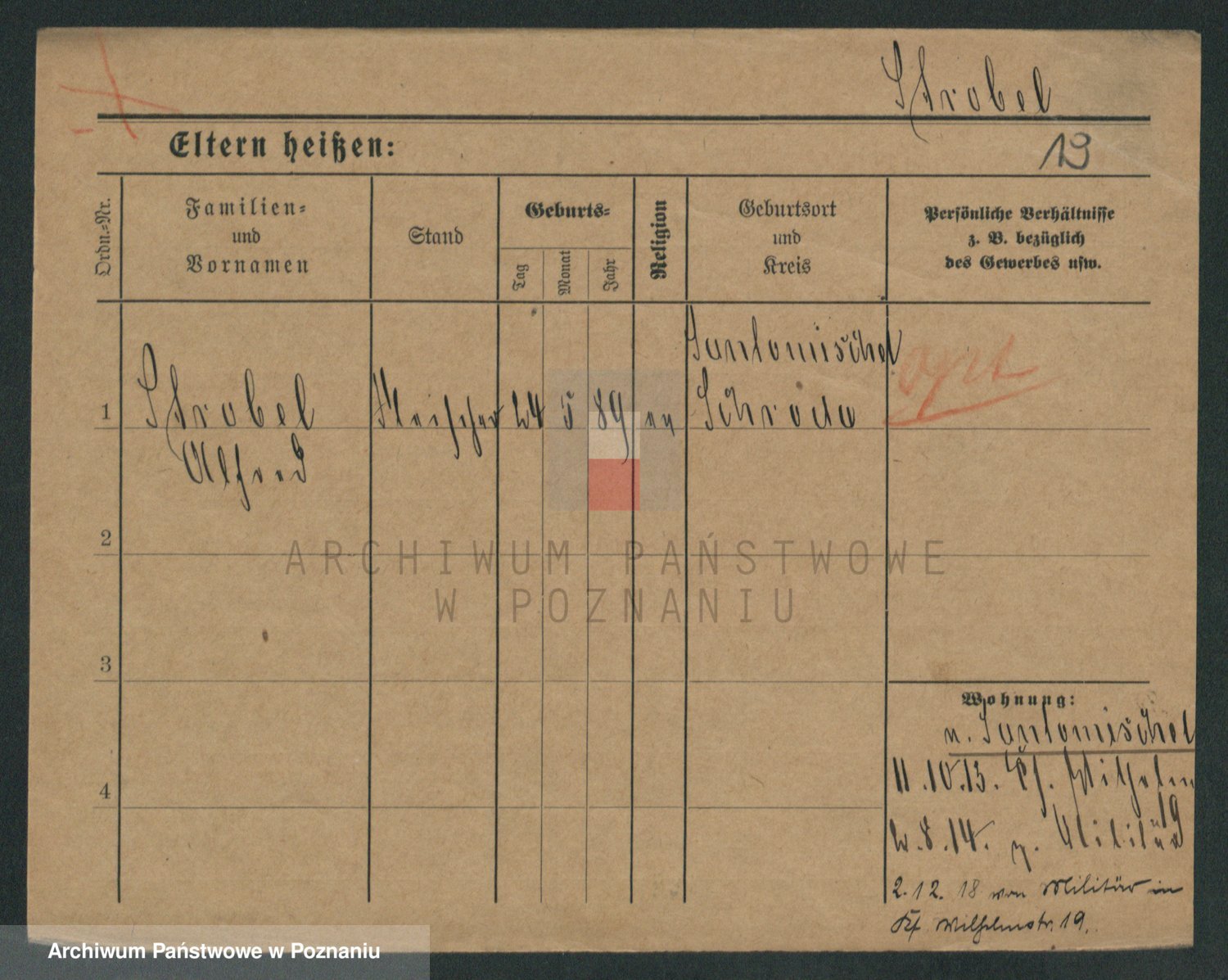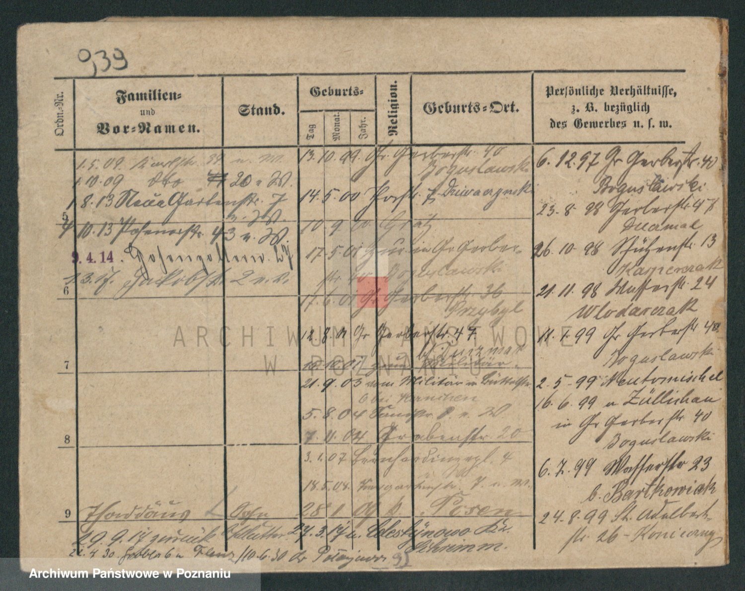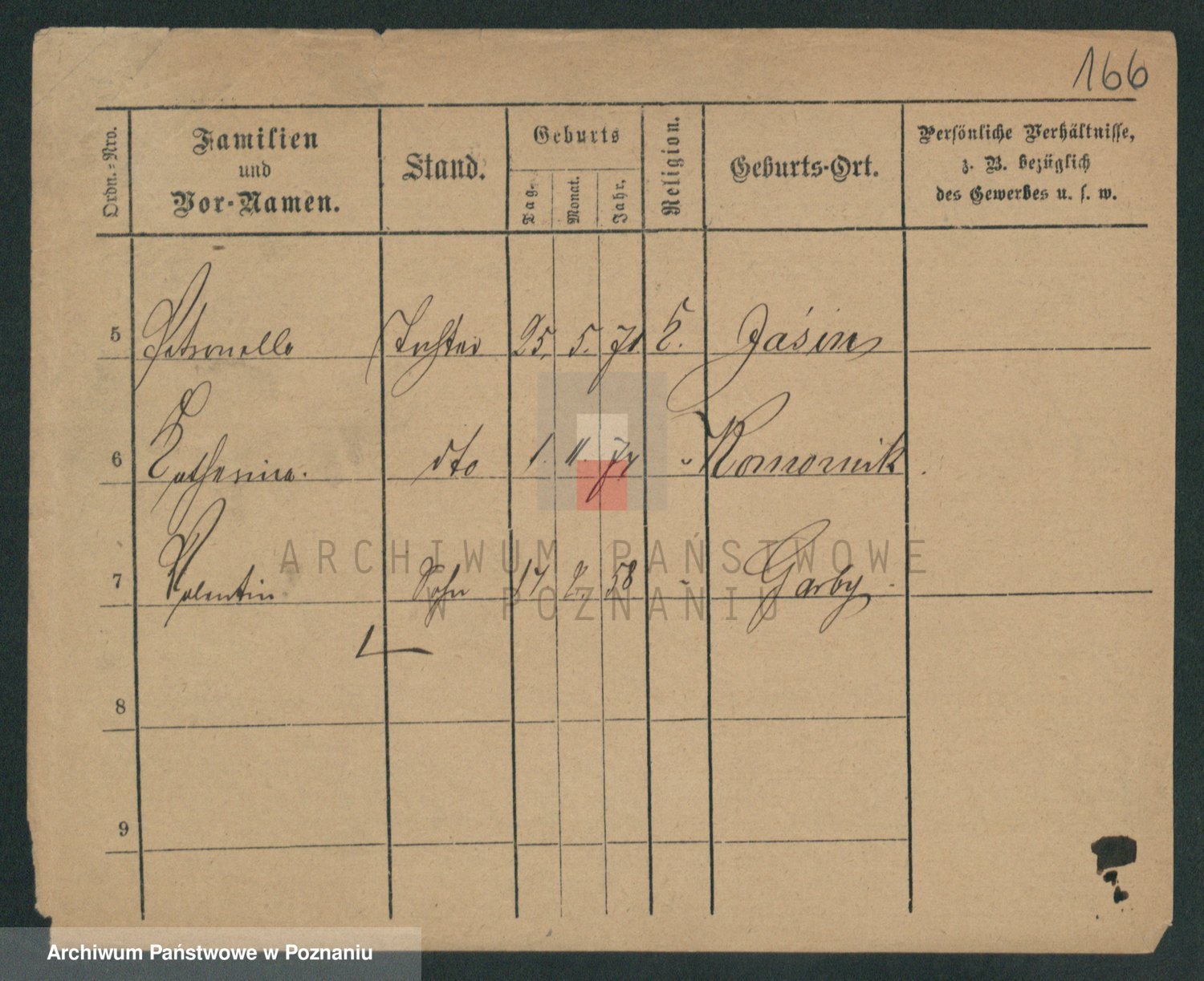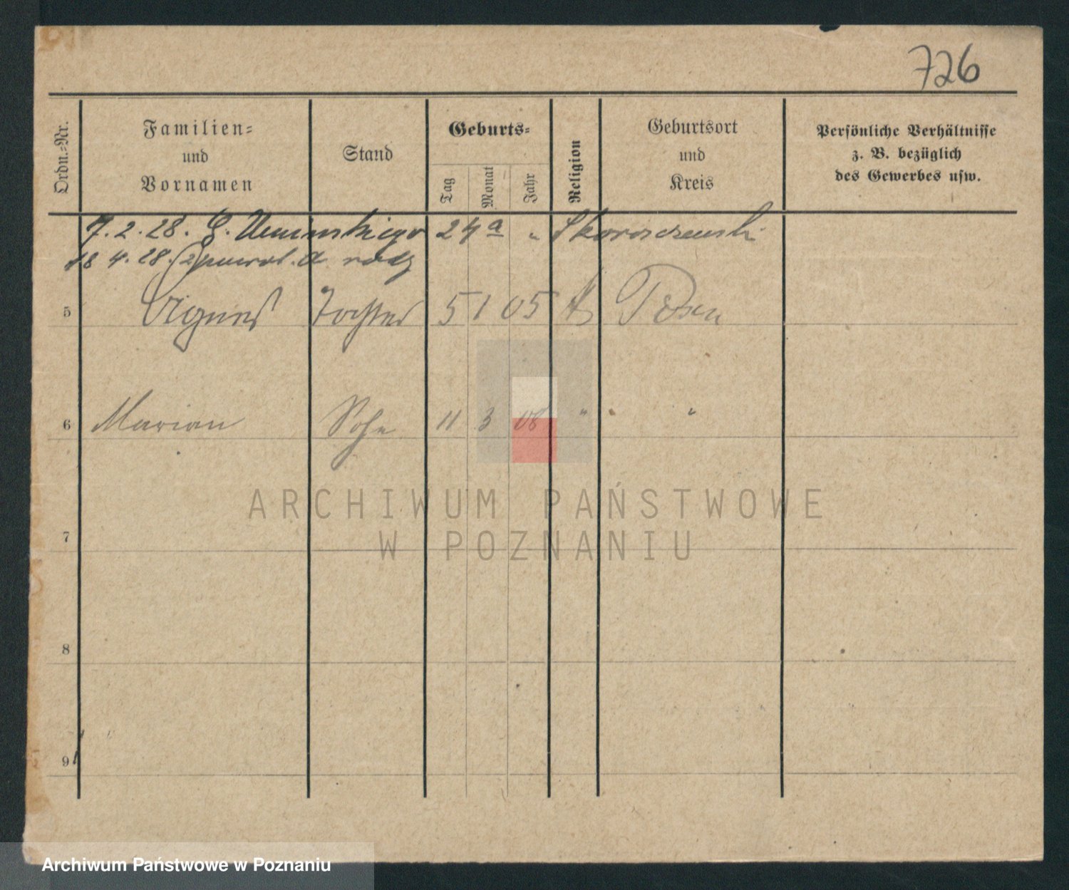 Podgląd karty osobowej dostępny jest po kliknięciu na nazwisko lub ikonkę karty. Można dokonywać powiększenia (ikony na górze) lub przechodzić między kolejnymi skanami (strzałki po bokach).