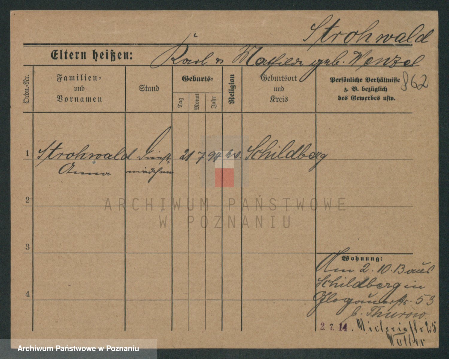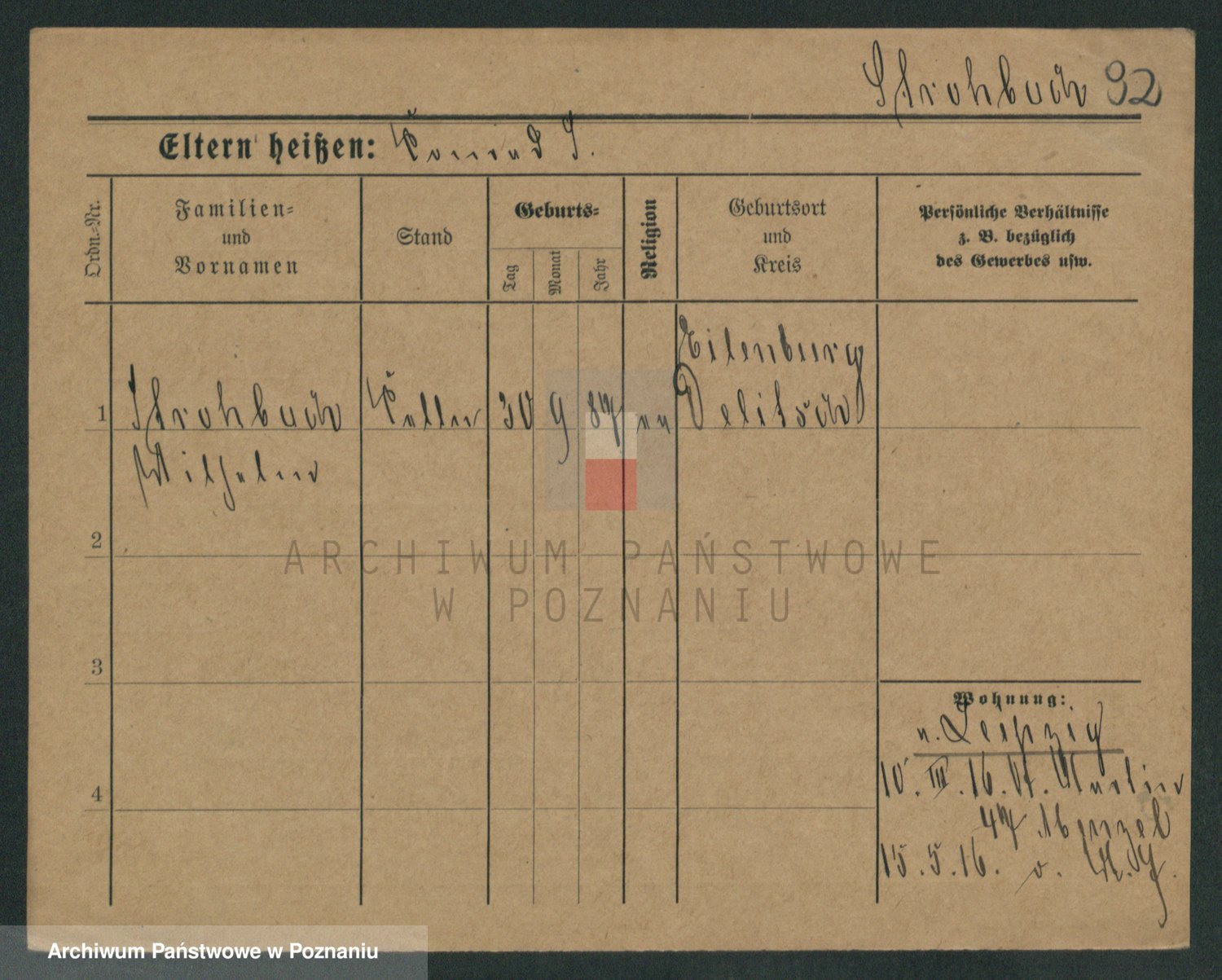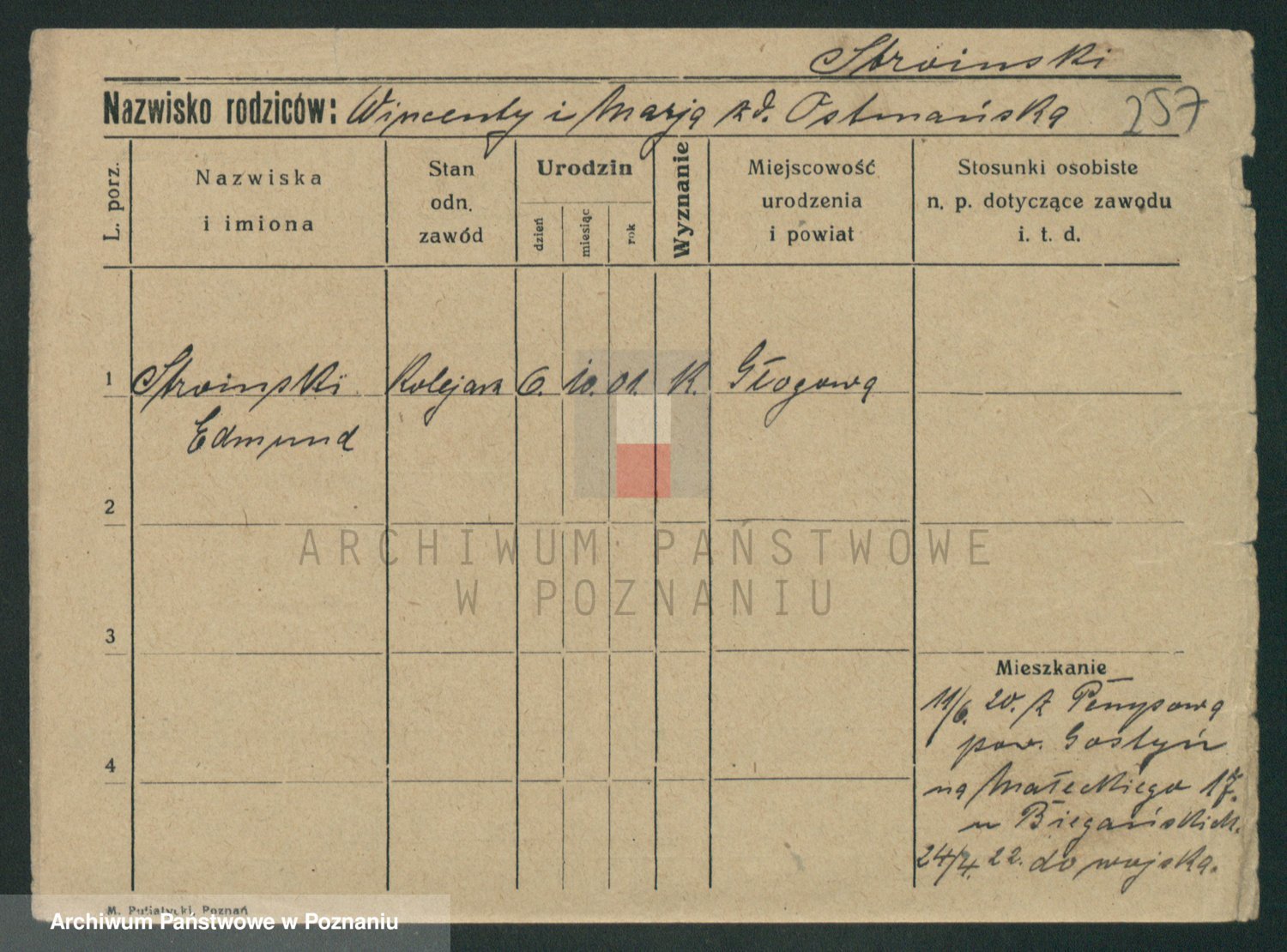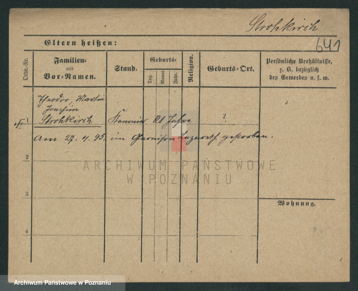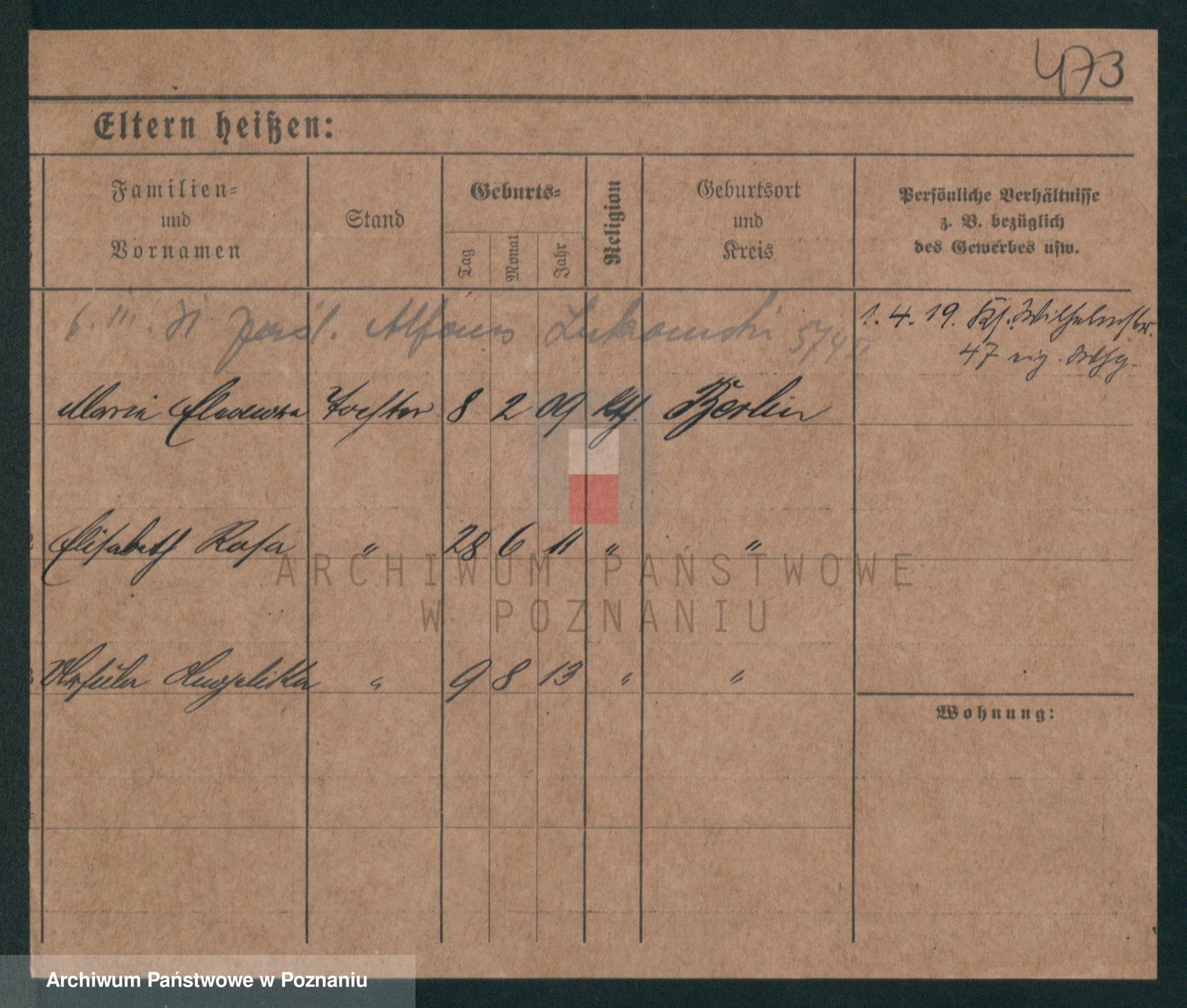 Podgląd karty osobowej dostępny jest po kliknięciu na nazwisko lub ikonkę karty. Można dokonywać powiększenia (ikony na górze) lub przechodzić między kolejnymi skanami (strzałki po bokach).