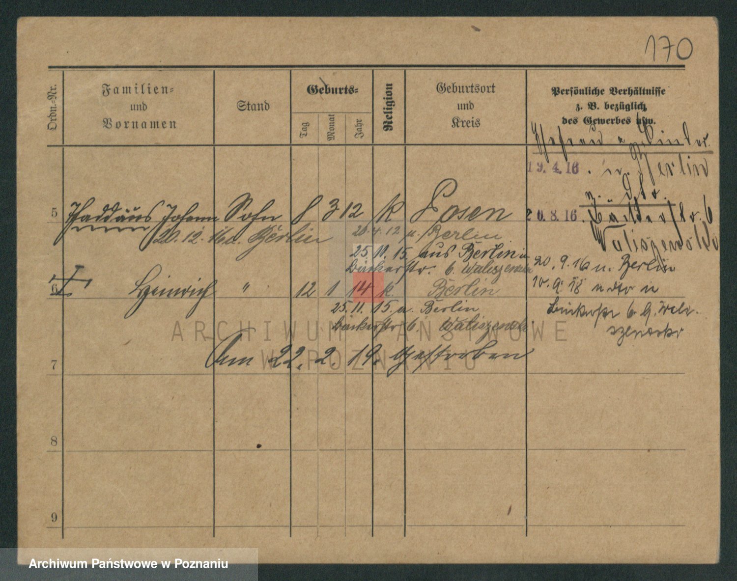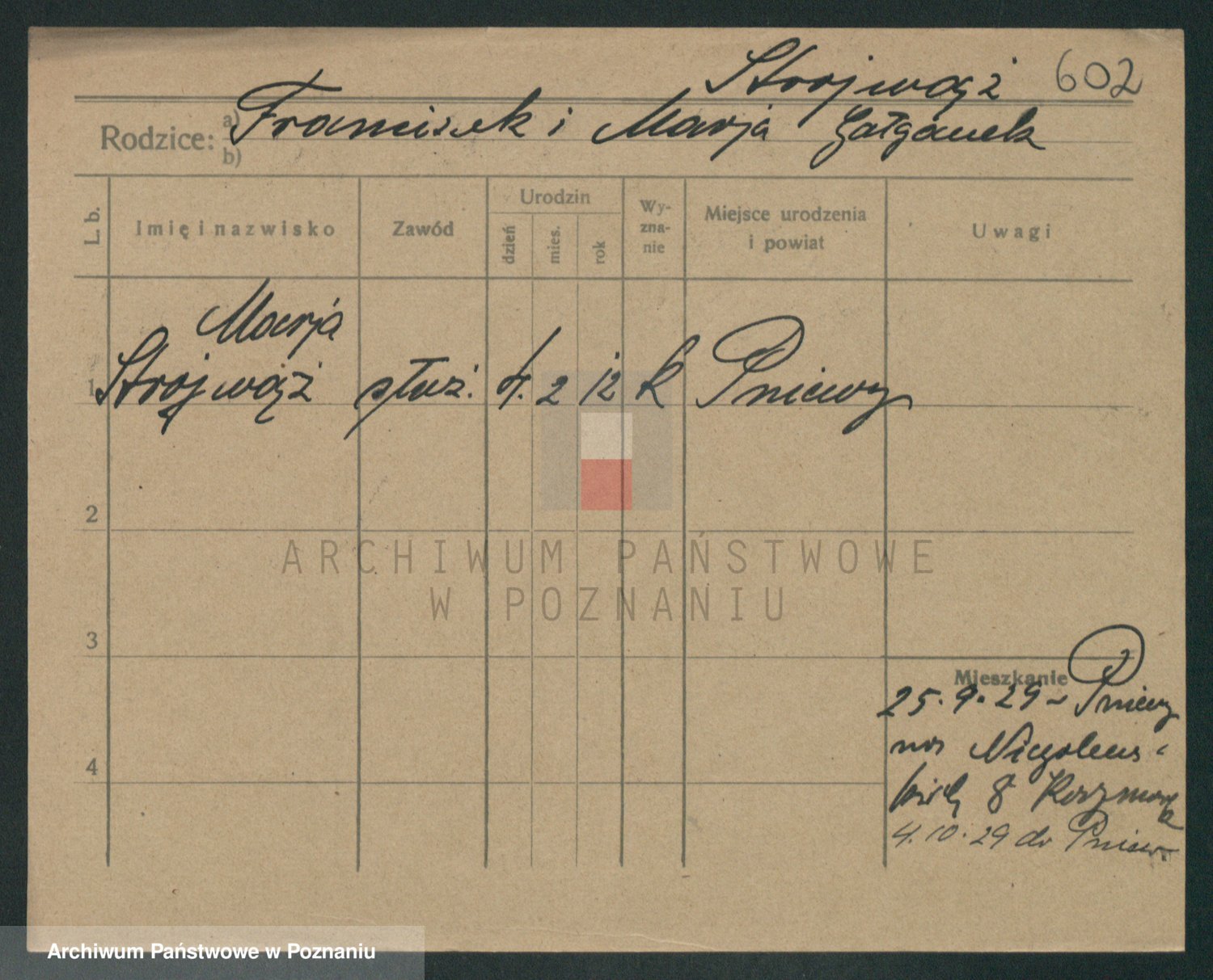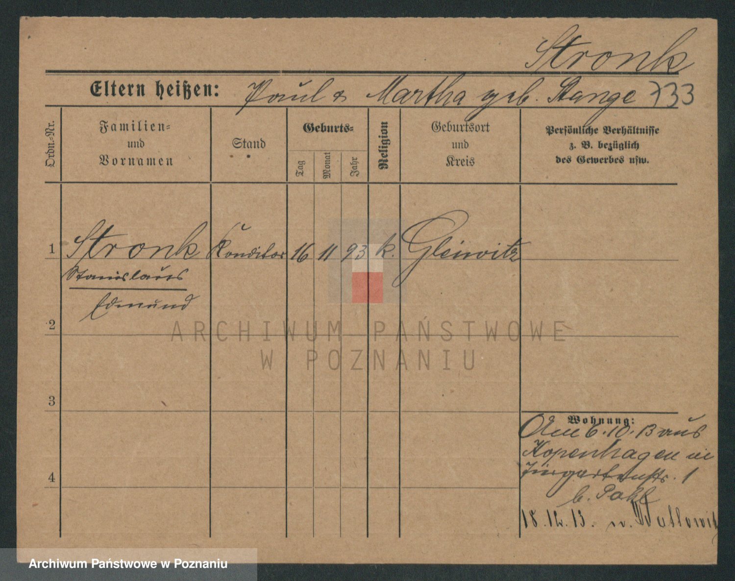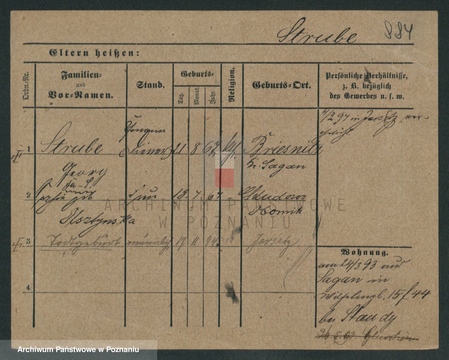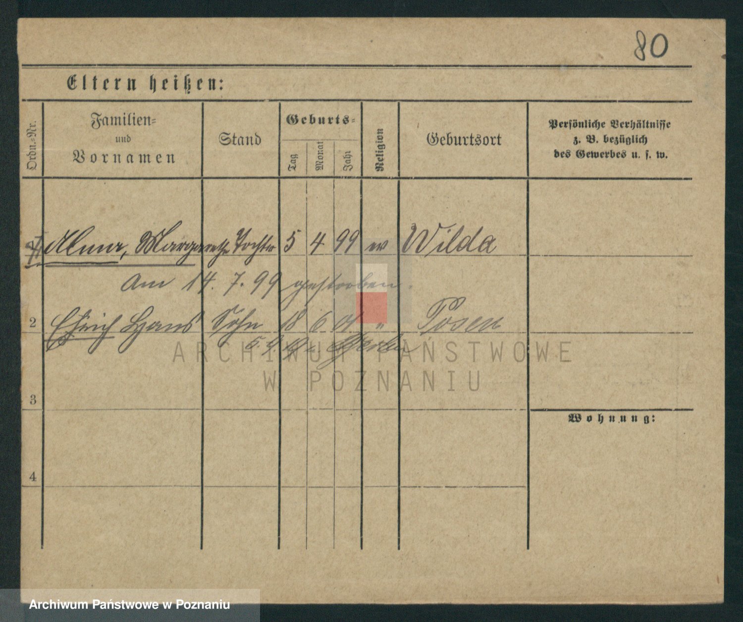 Podgląd karty osobowej dostępny jest po kliknięciu na nazwisko lub ikonkę karty. Można dokonywać powiększenia (ikony na górze) lub przechodzić między kolejnymi skanami (strzałki po bokach).