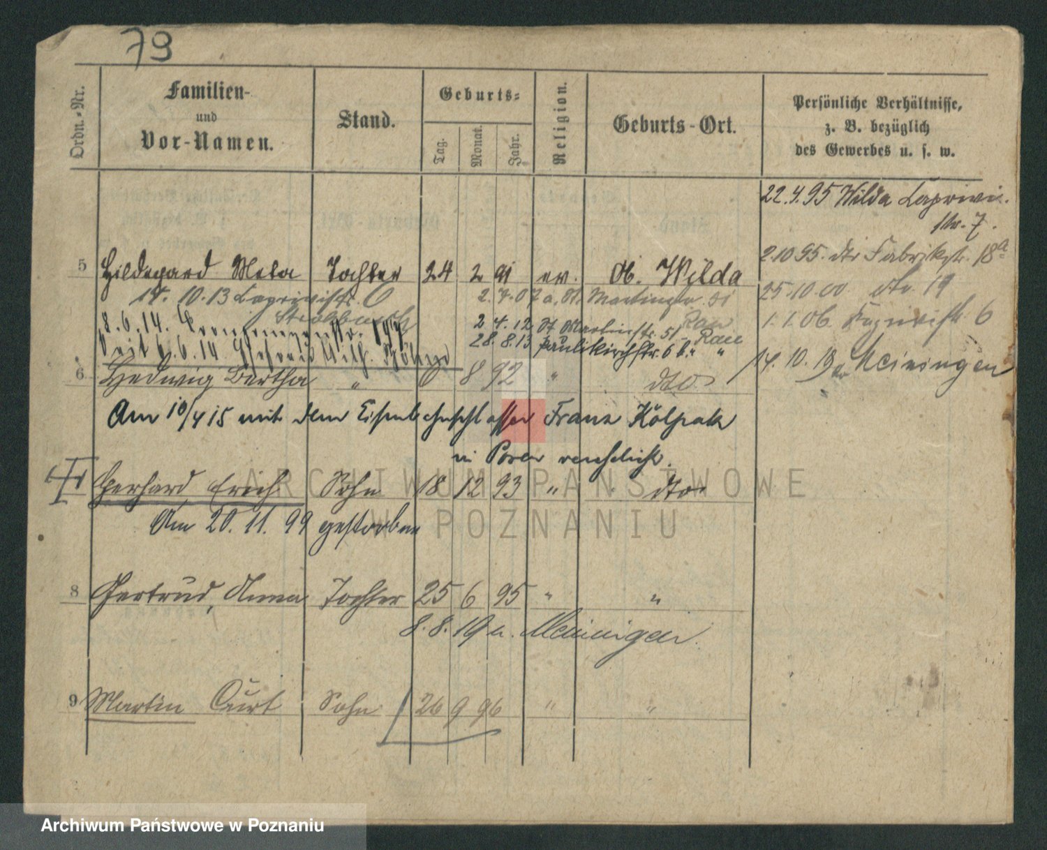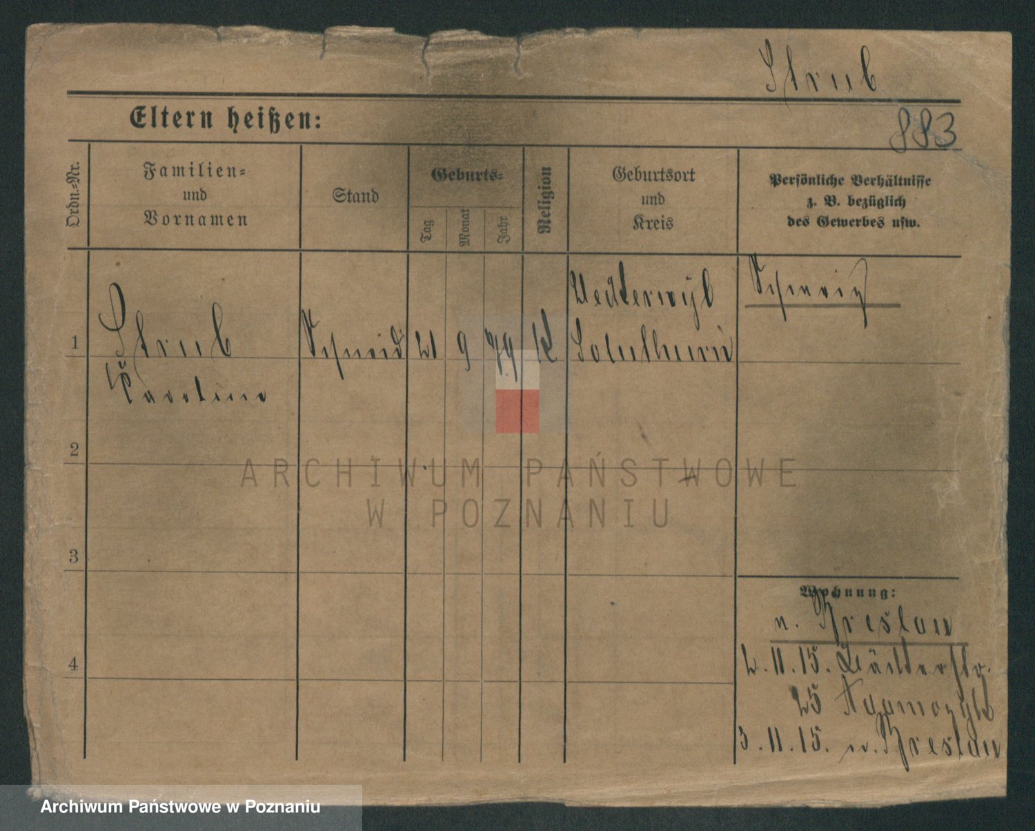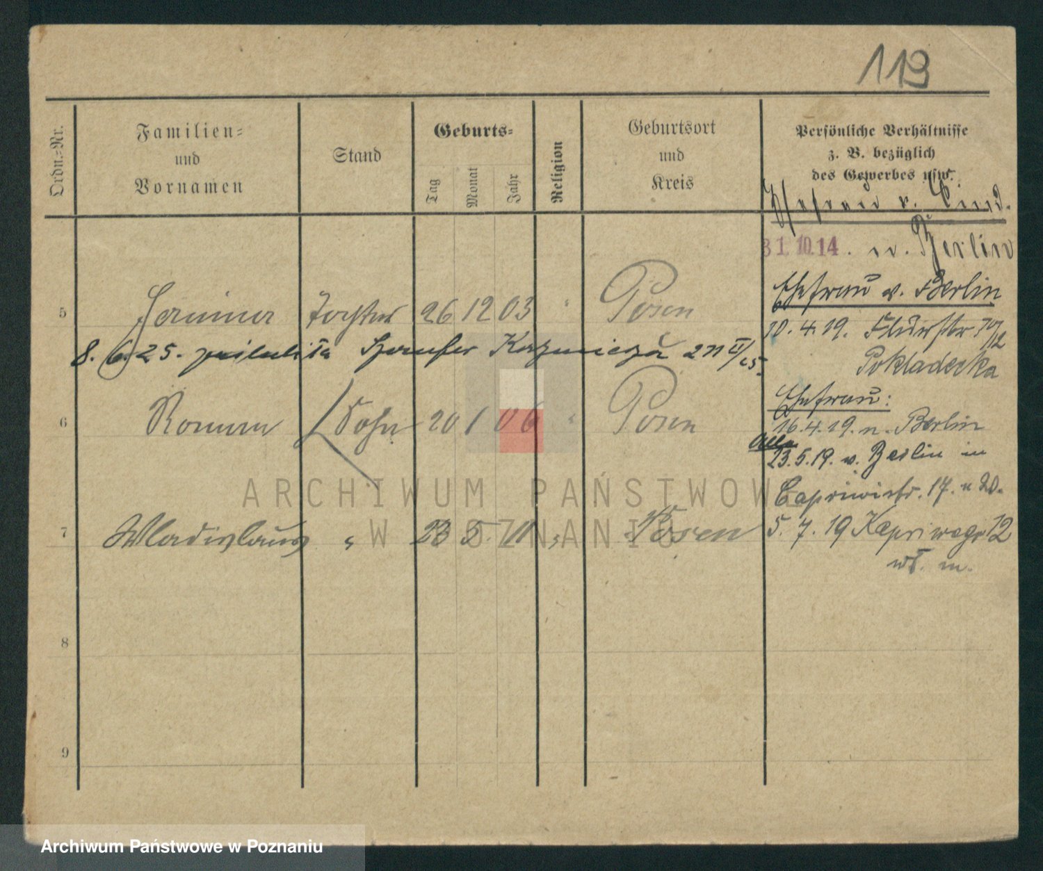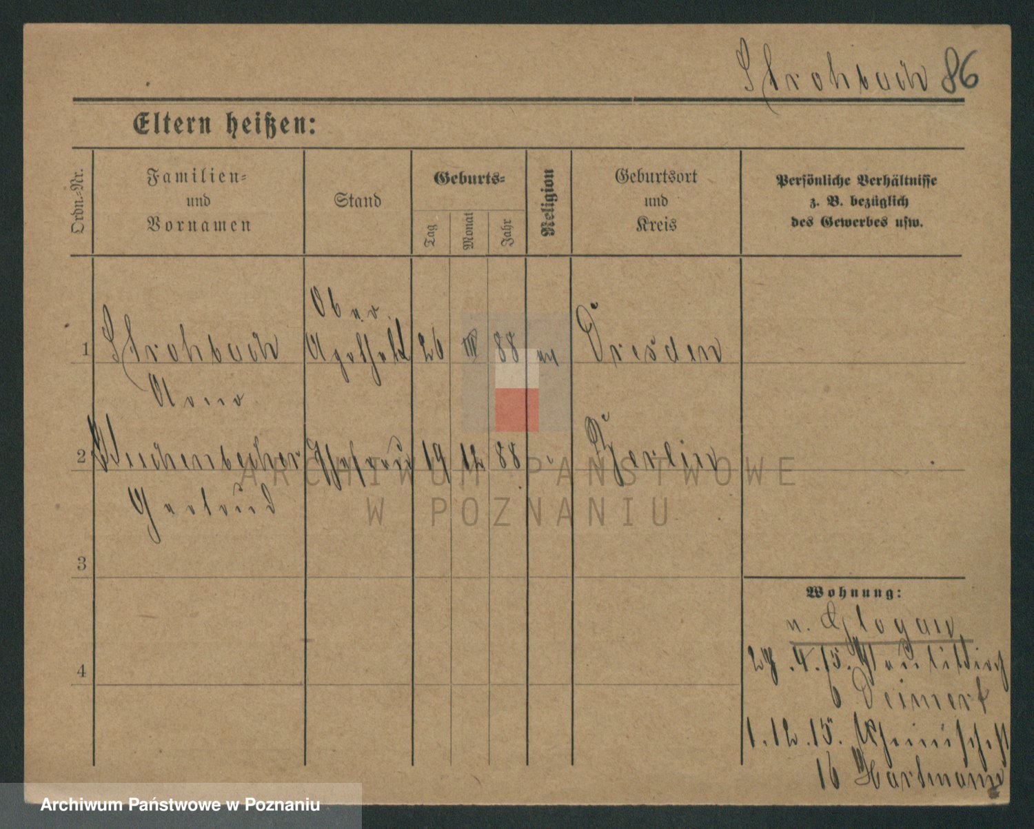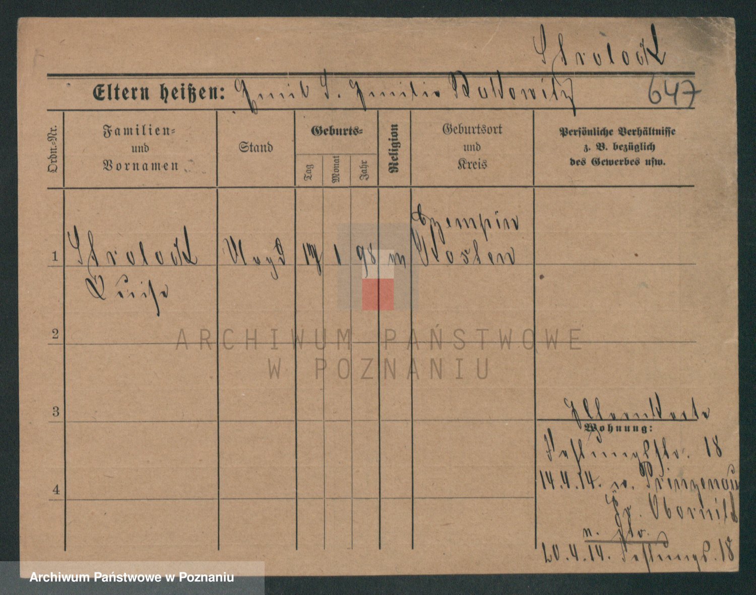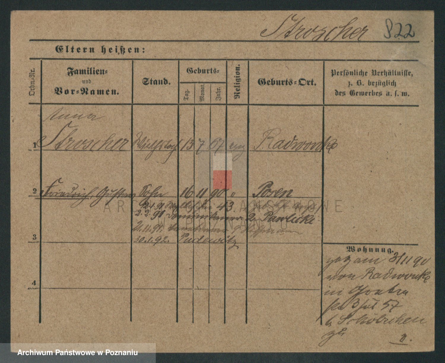 Podgląd karty osobowej dostępny jest po kliknięciu na nazwisko lub ikonkę karty. Można dokonywać powiększenia (ikony na górze) lub przechodzić między kolejnymi skanami (strzałki po bokach).