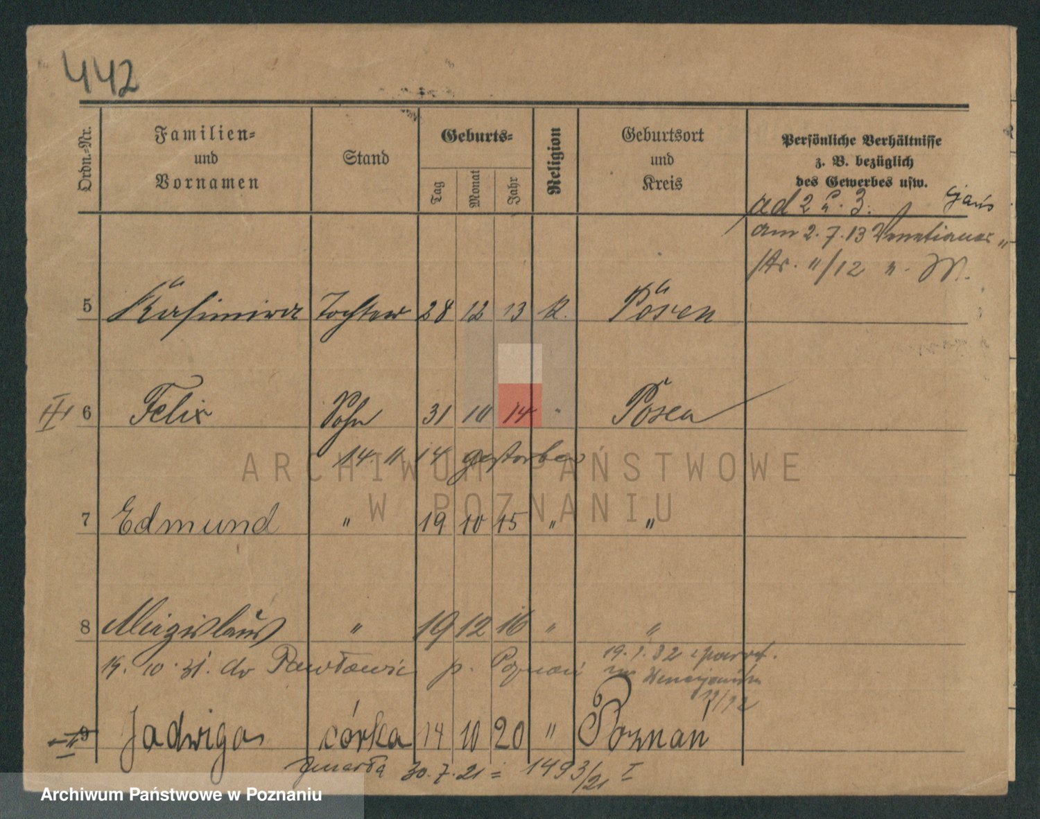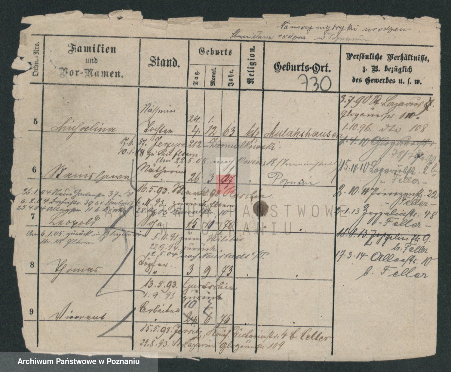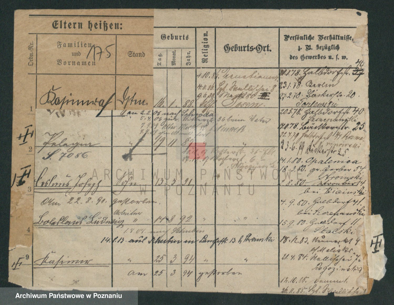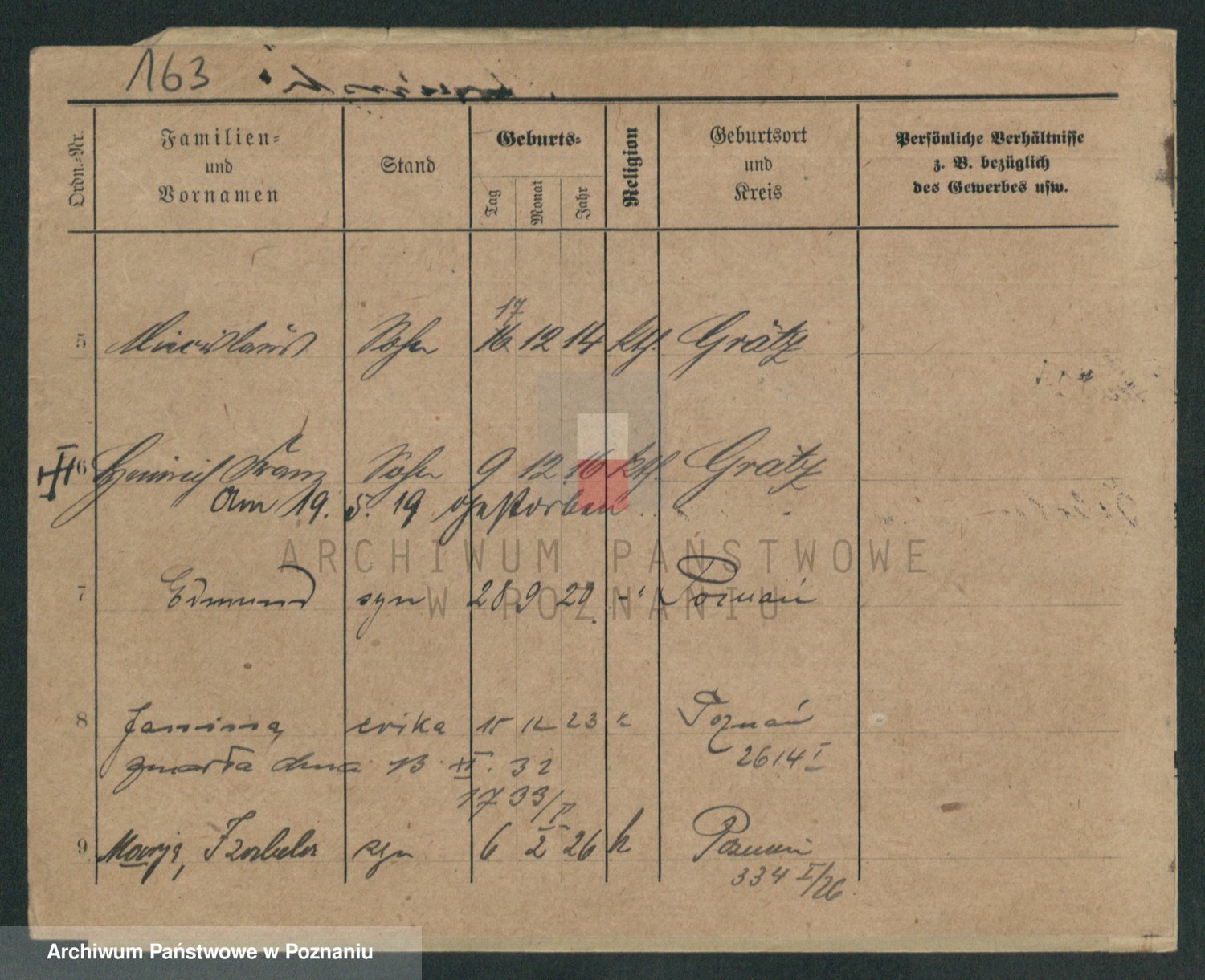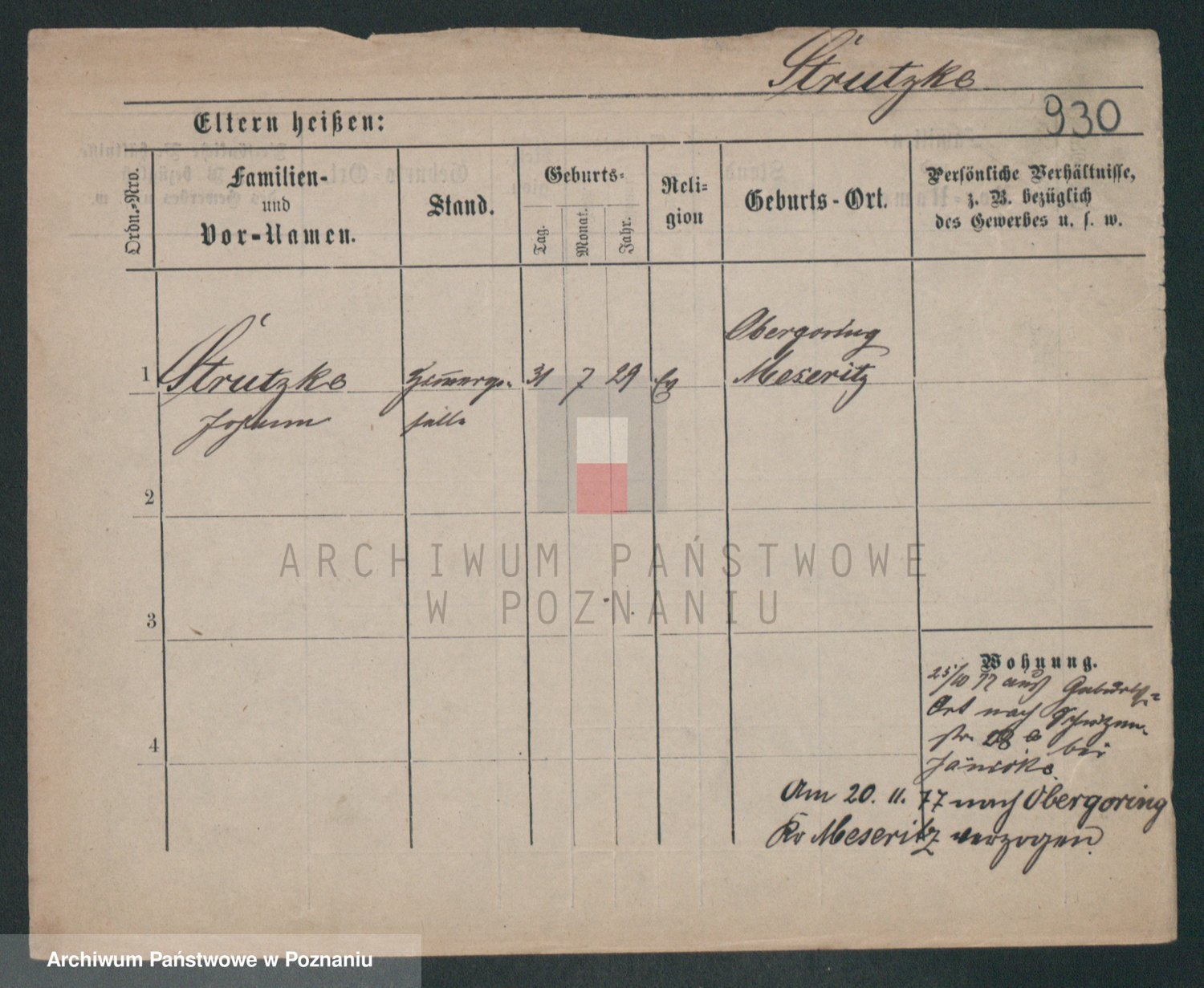 Podgląd karty osobowej dostępny jest po kliknięciu na nazwisko lub ikonkę karty. Można dokonywać powiększenia (ikony na górze) lub przechodzić między kolejnymi skanami (strzałki po bokach).