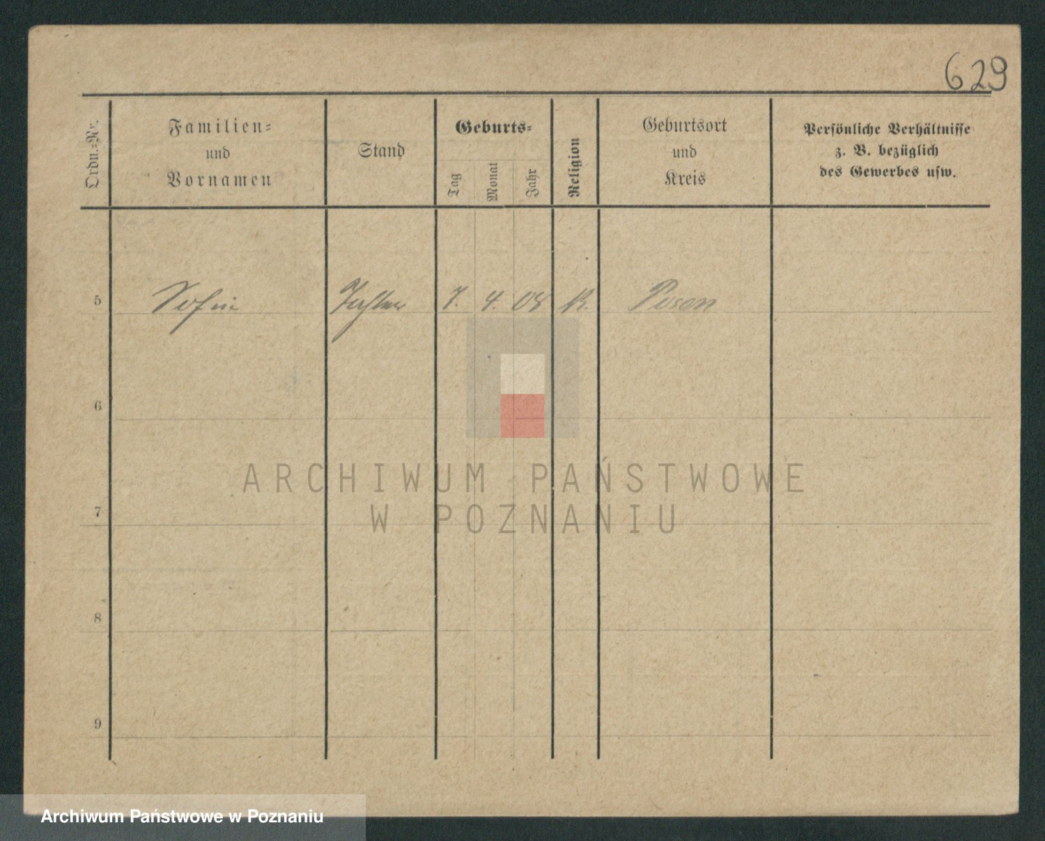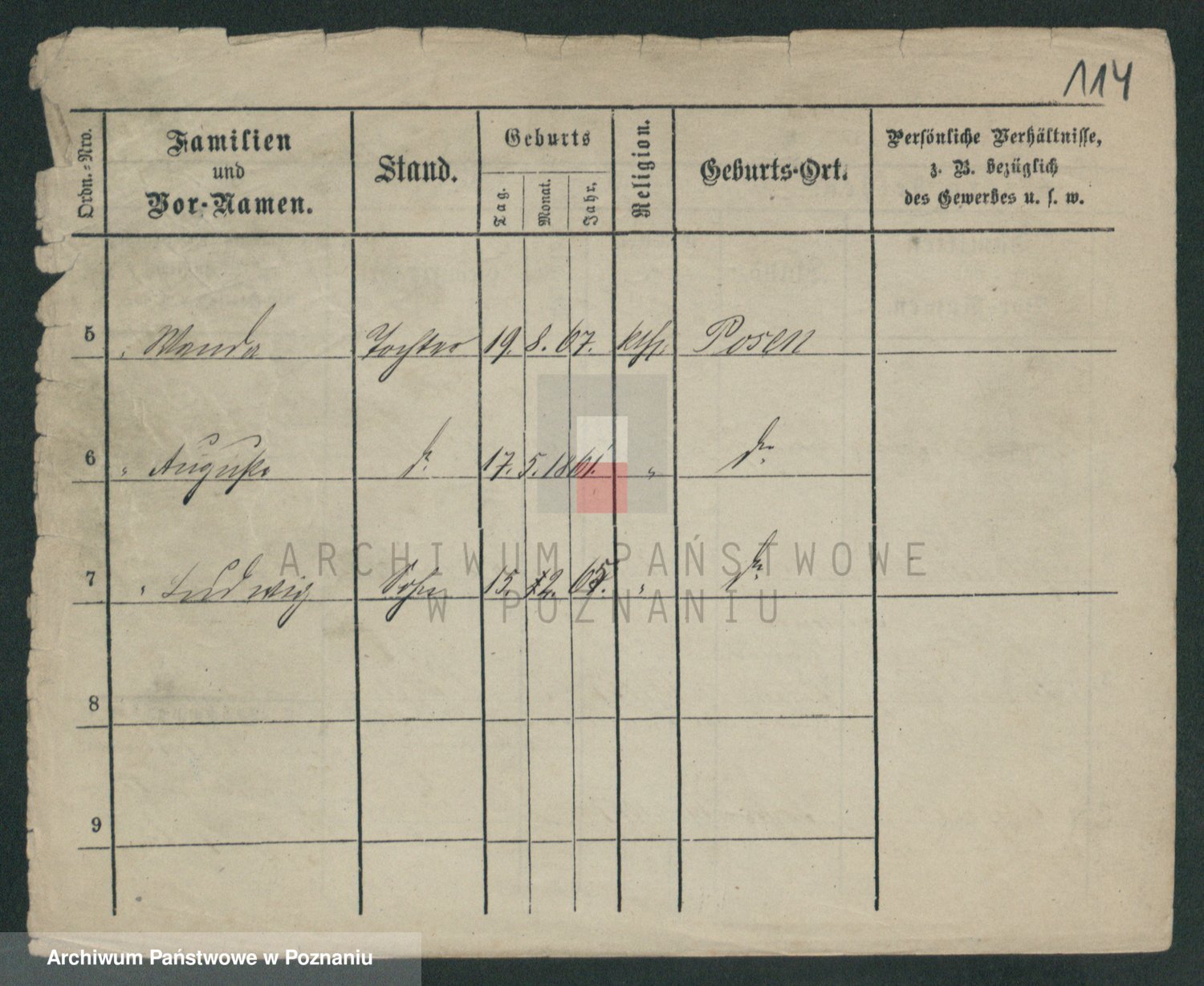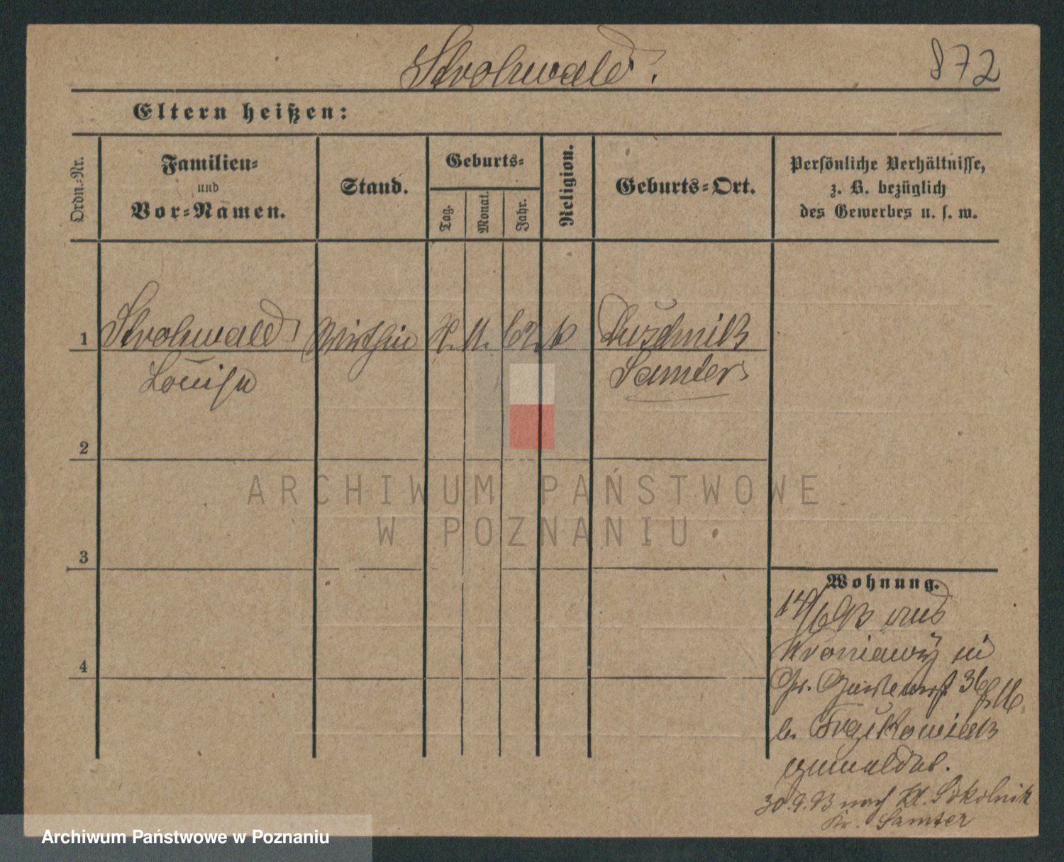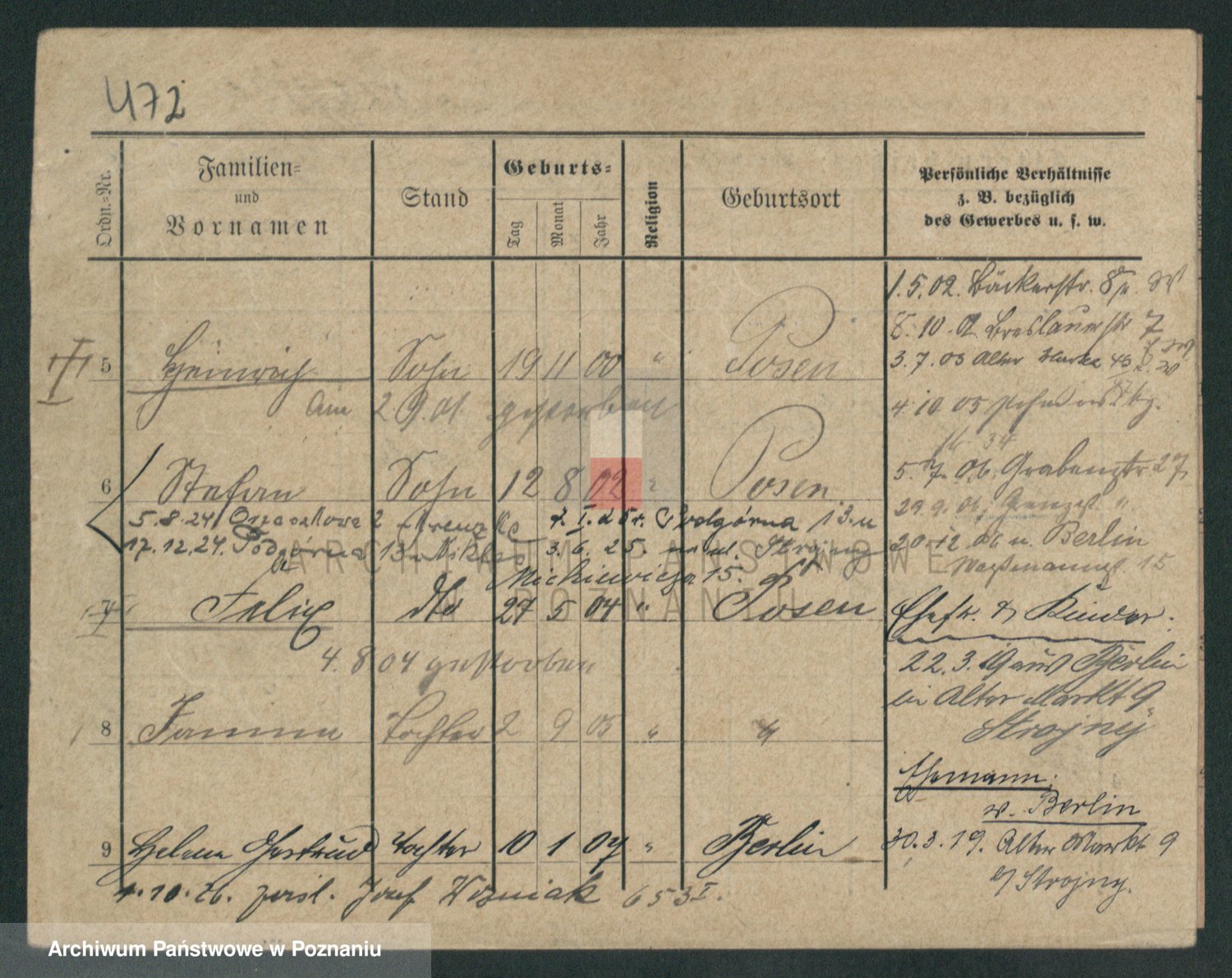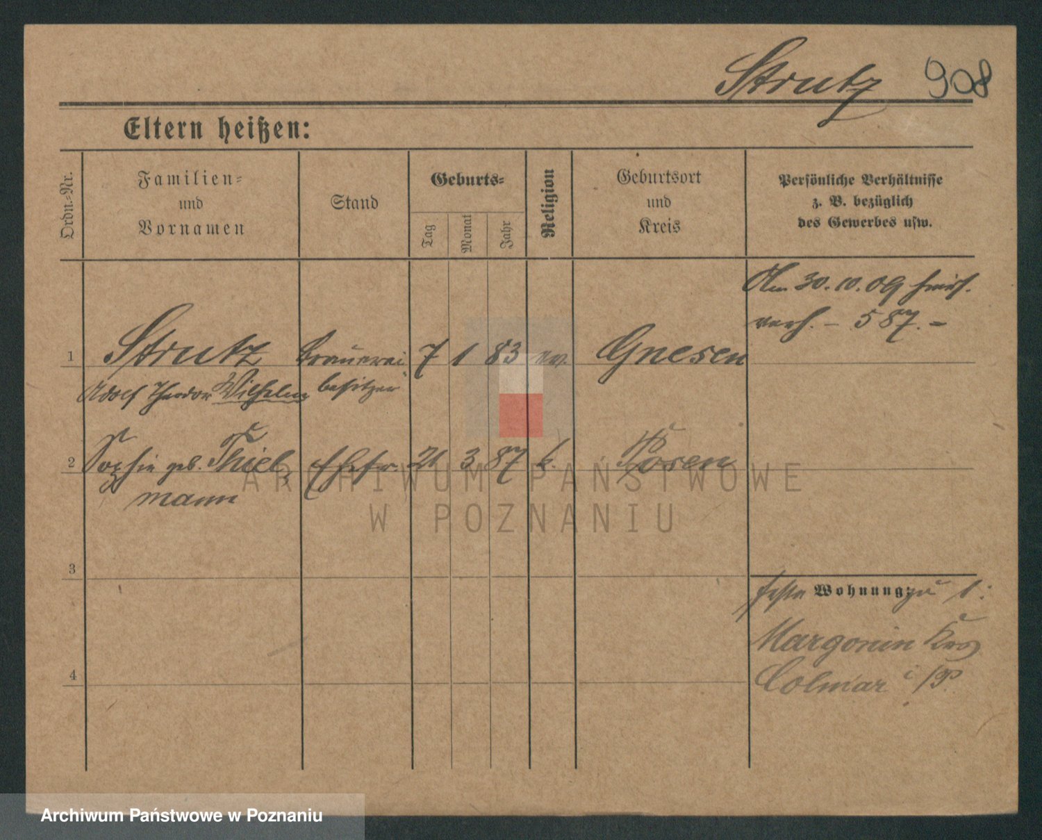 Podgląd karty osobowej dostępny jest po kliknięciu na nazwisko lub ikonkę karty. Można dokonywać powiększenia (ikony na górze) lub przechodzić między kolejnymi skanami (strzałki po bokach).