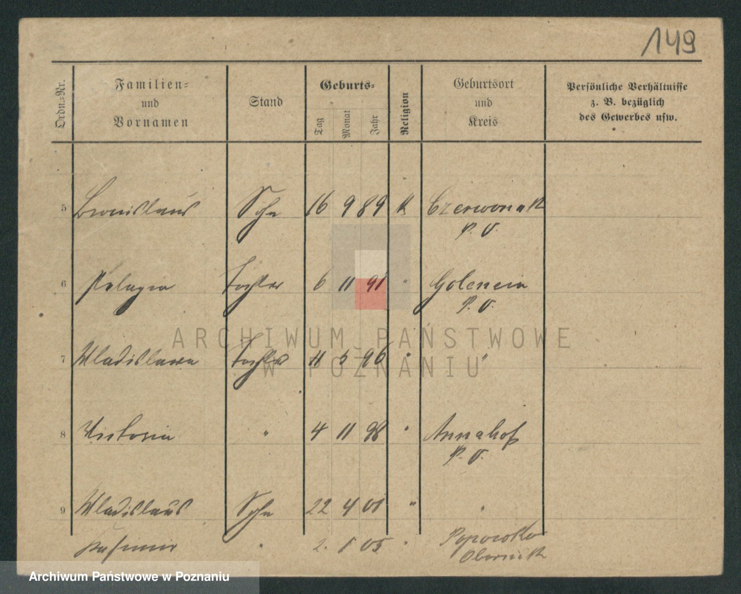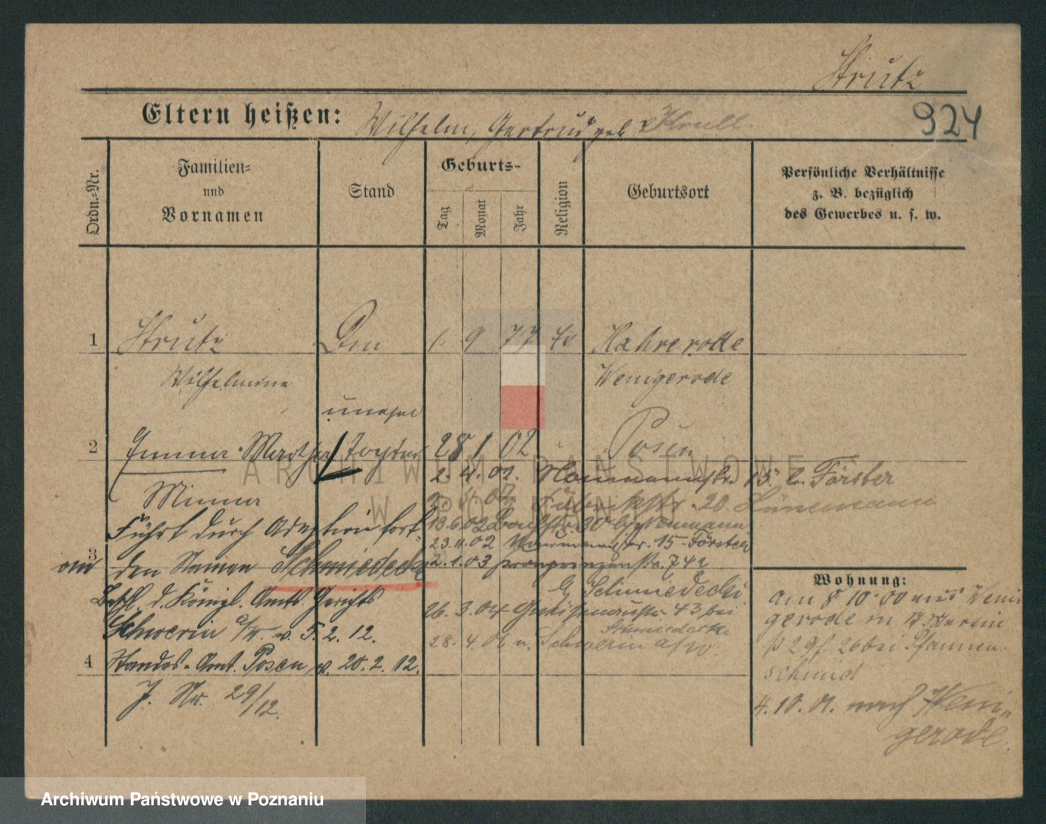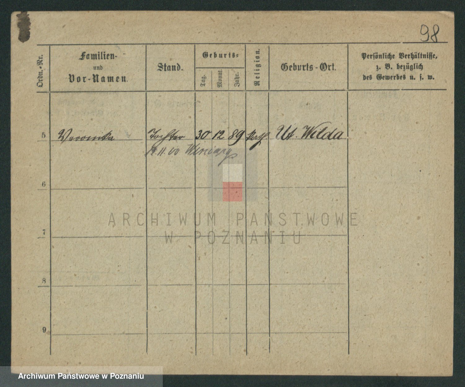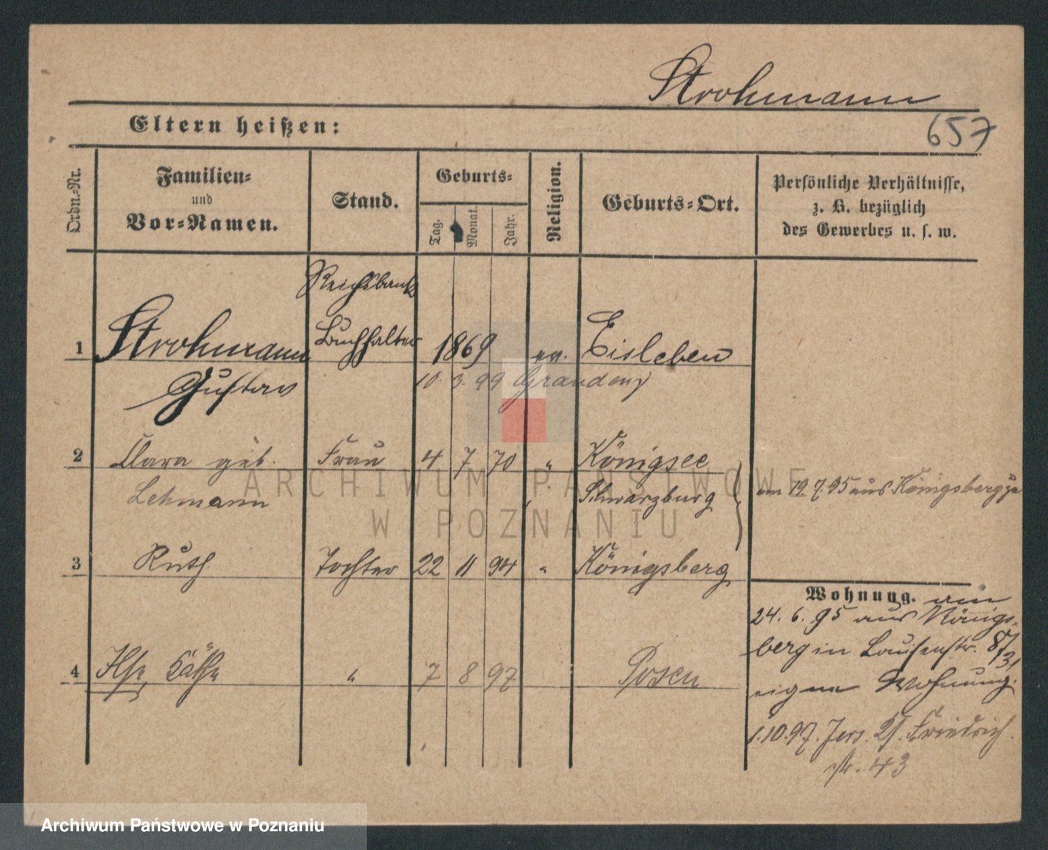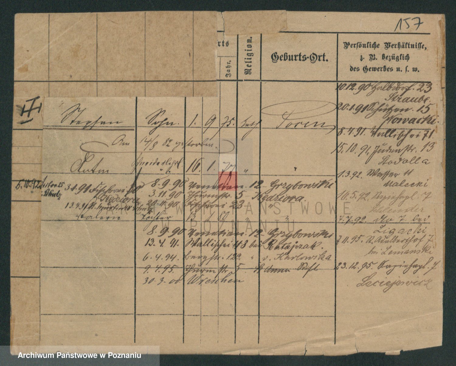 Podgląd karty osobowej dostępny jest po kliknięciu na nazwisko lub ikonkę karty. Można dokonywać powiększenia (ikony na górze) lub przechodzić między kolejnymi skanami (strzałki po bokach).
