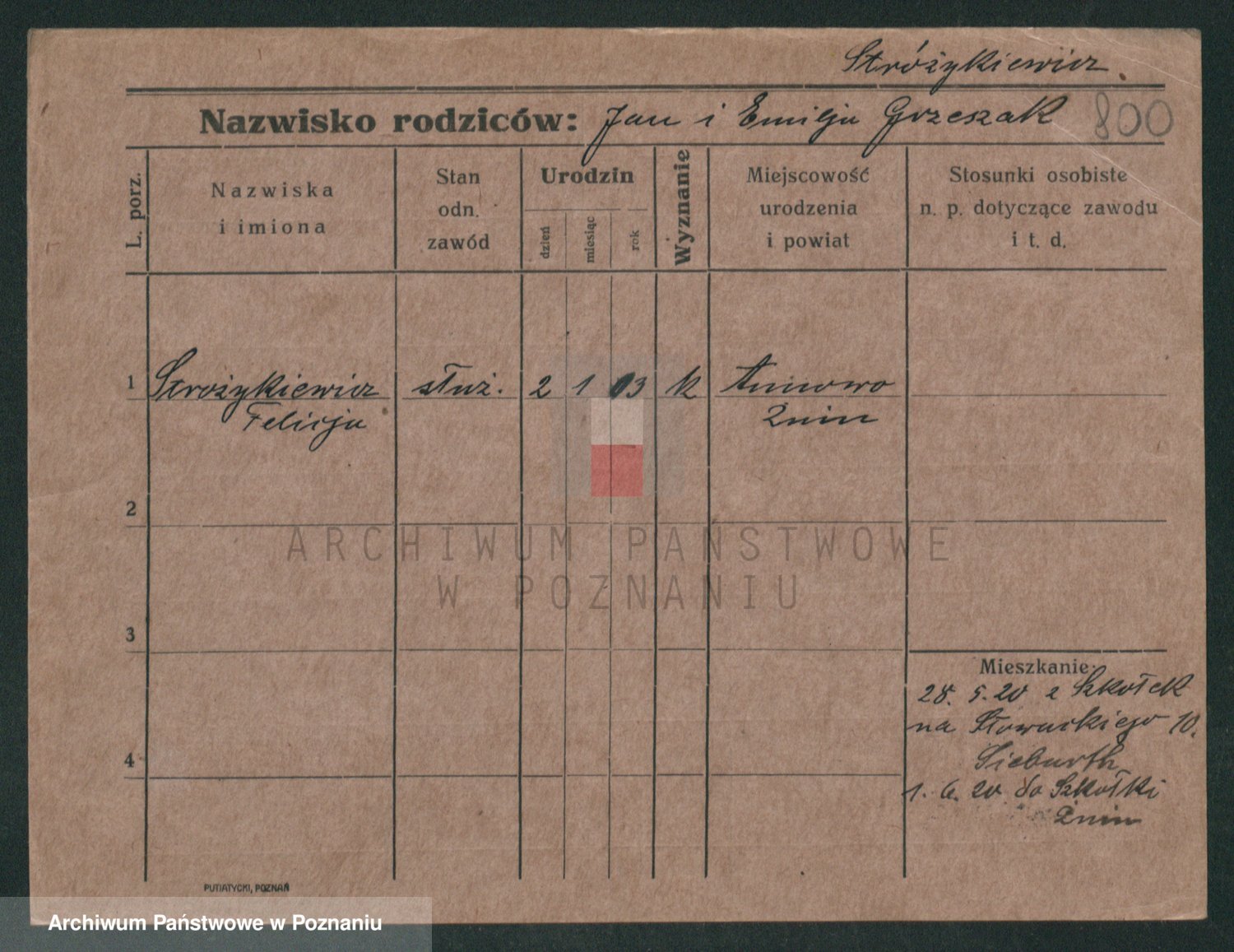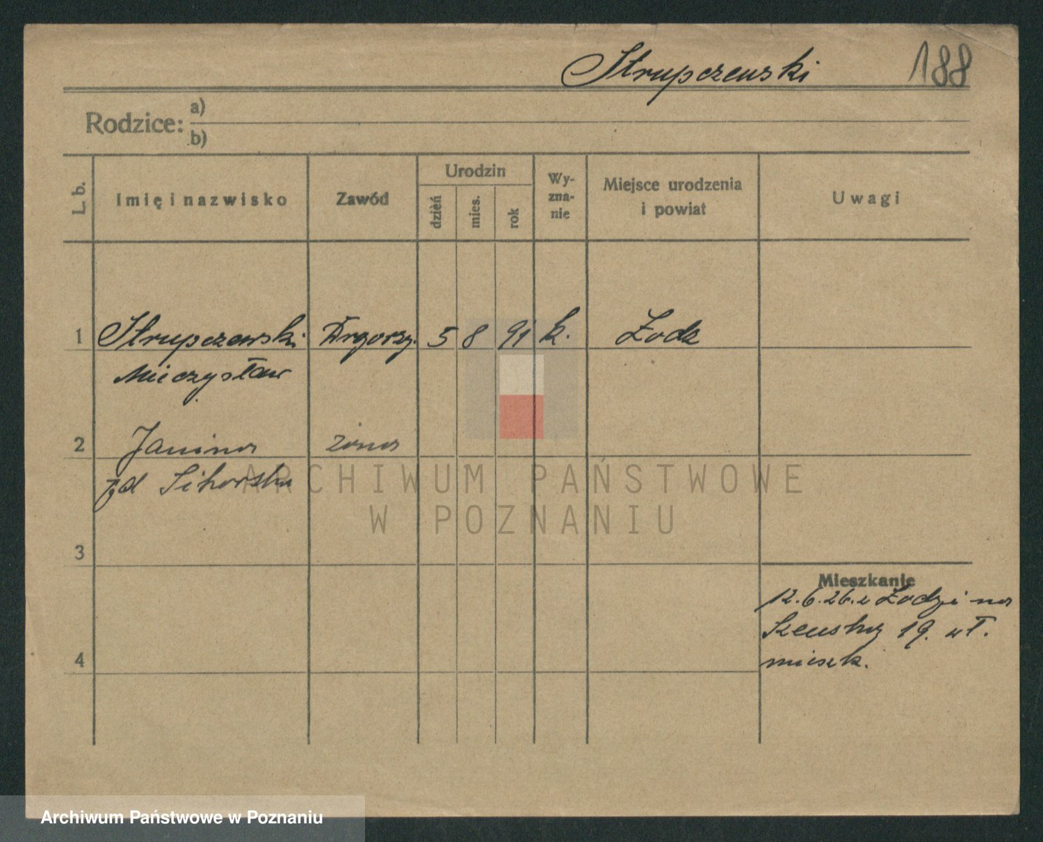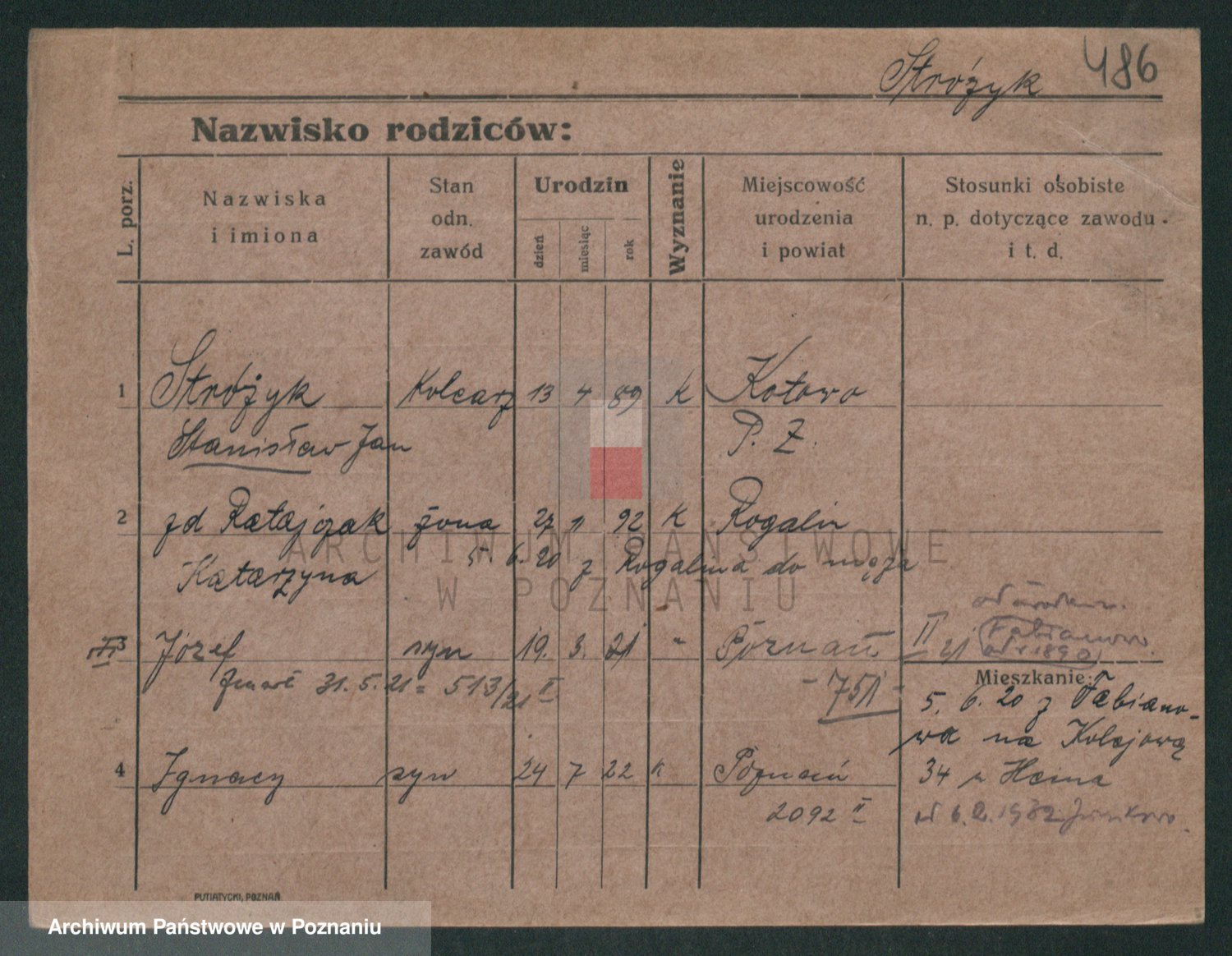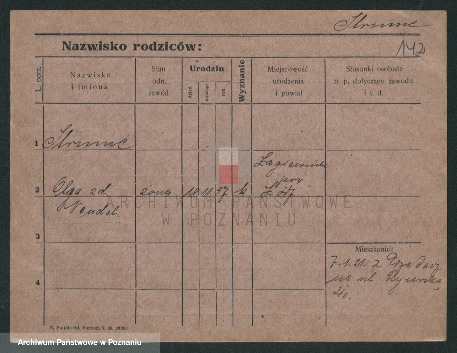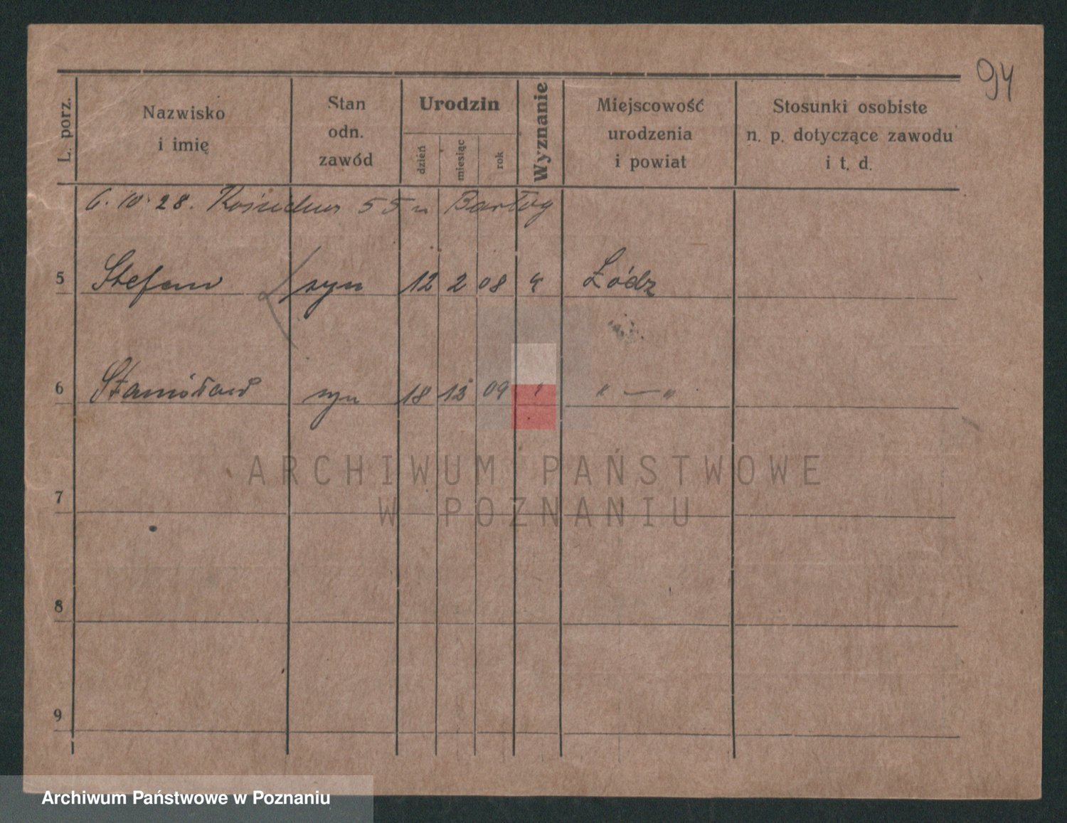 Podgląd karty osobowej dostępny jest po kliknięciu na nazwisko lub ikonkę karty. Można dokonywać powiększenia (ikony na górze) lub przechodzić między kolejnymi skanami (strzałki po bokach).