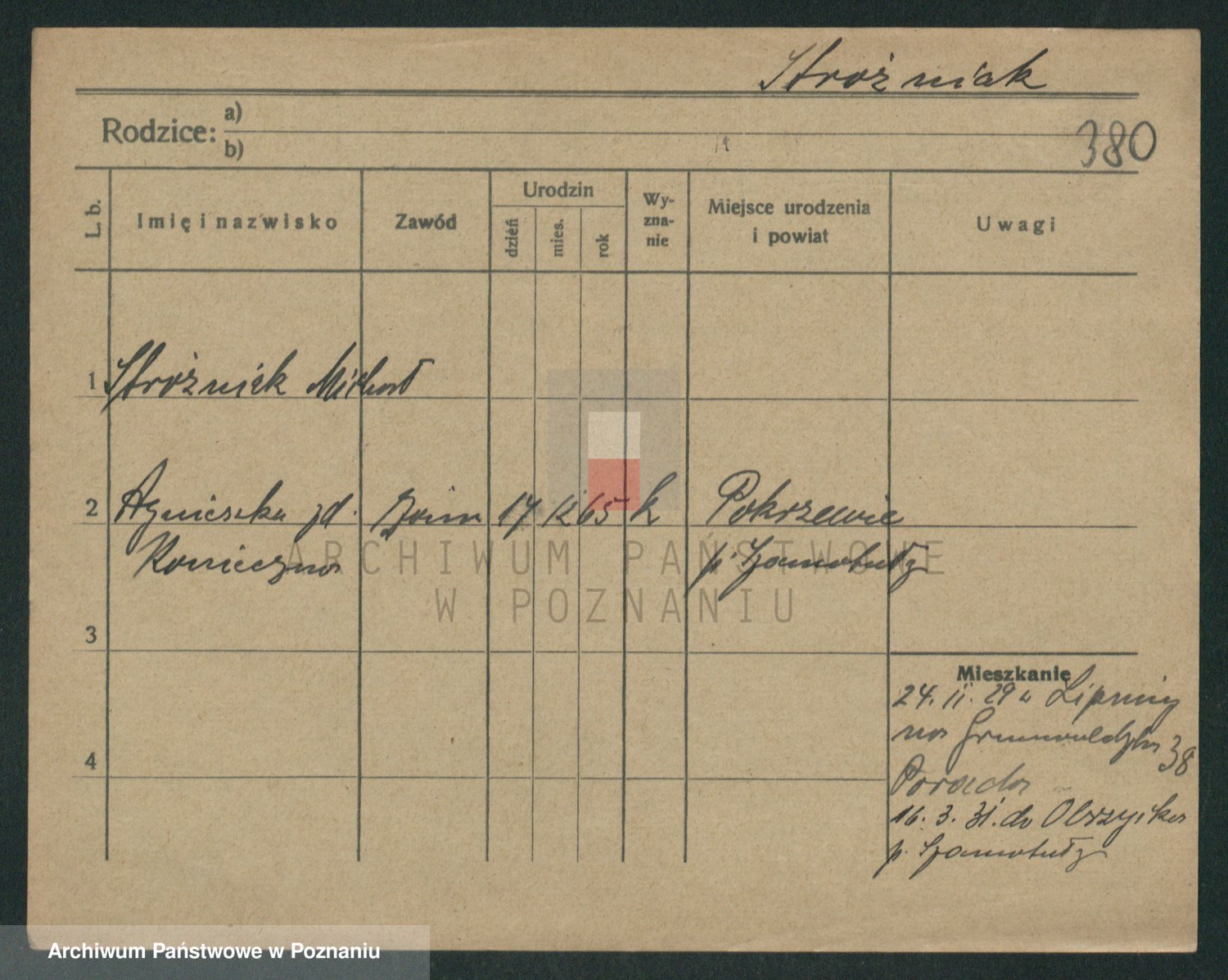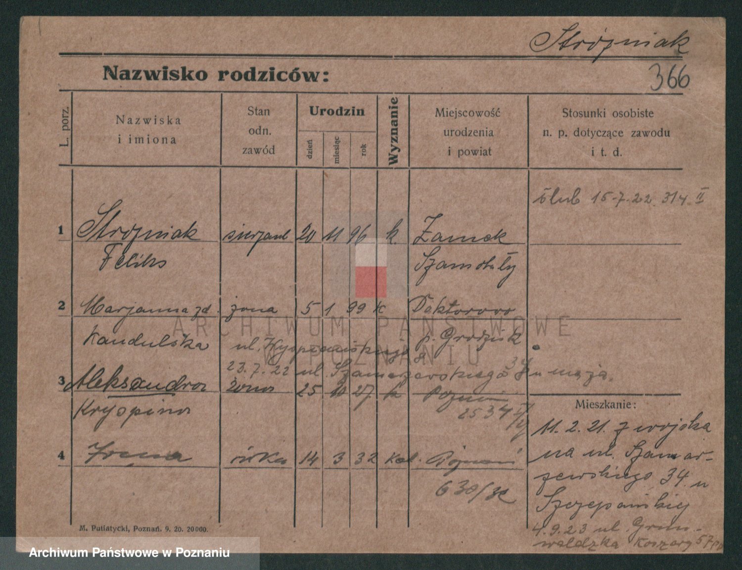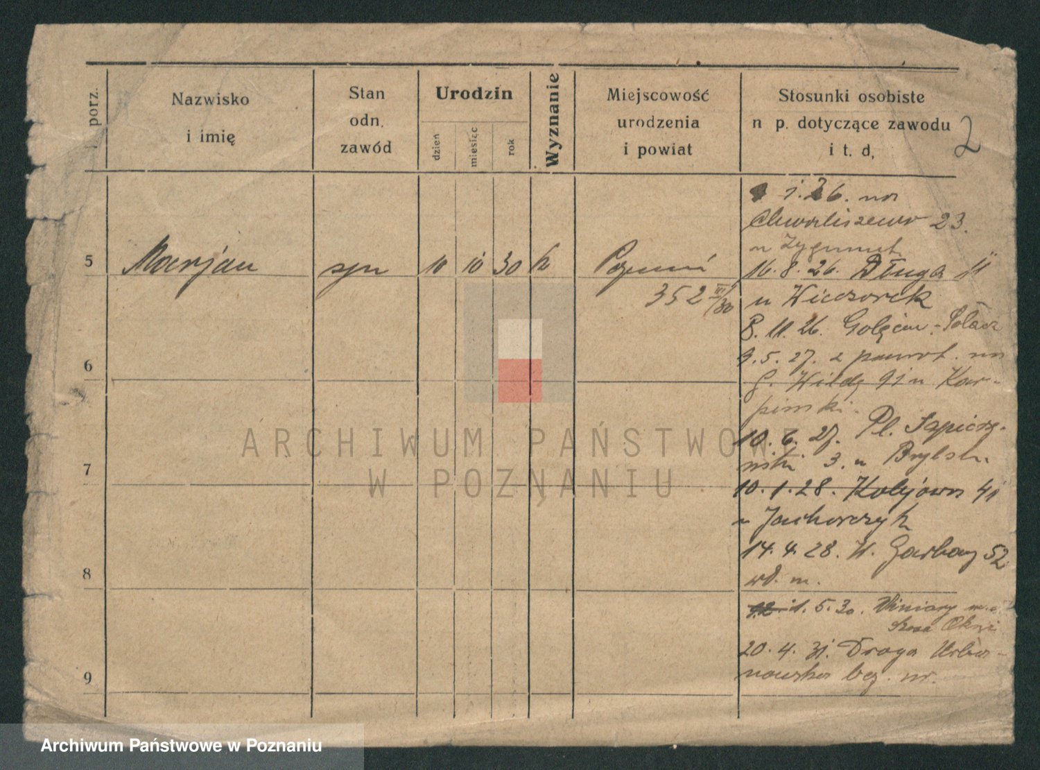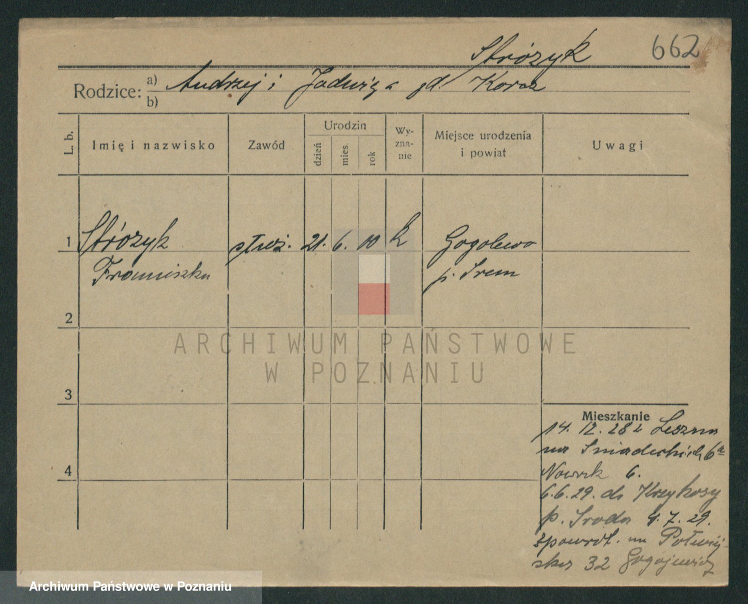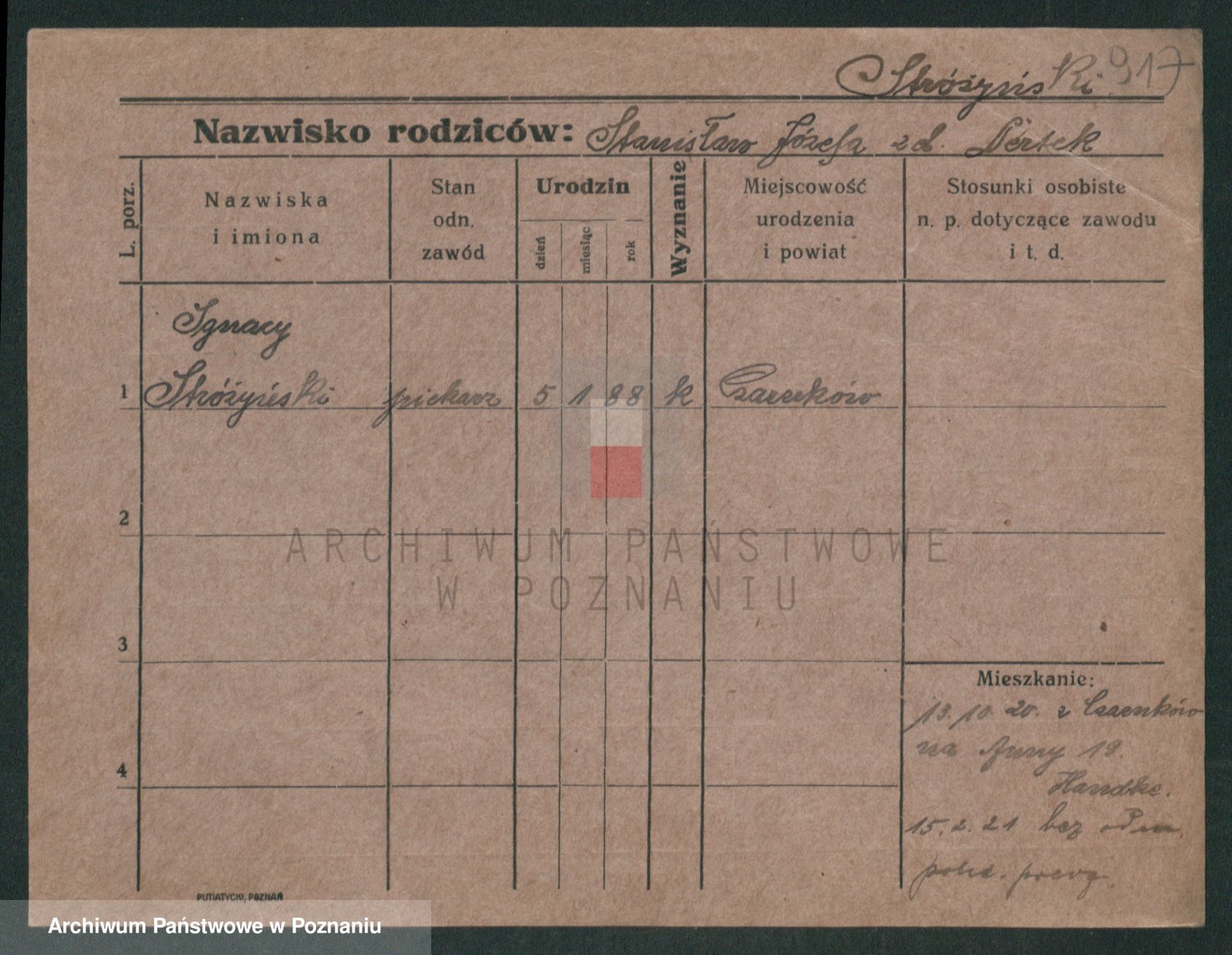 Podgląd karty osobowej dostępny jest po kliknięciu na nazwisko lub ikonkę karty. Można dokonywać powiększenia (ikony na górze) lub przechodzić między kolejnymi skanami (strzałki po bokach).