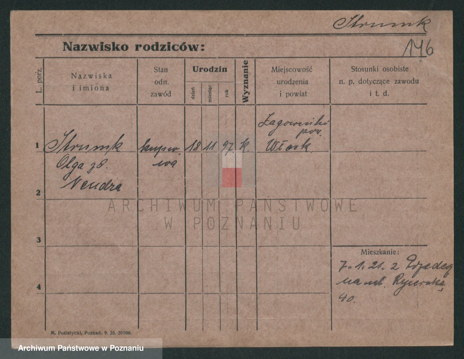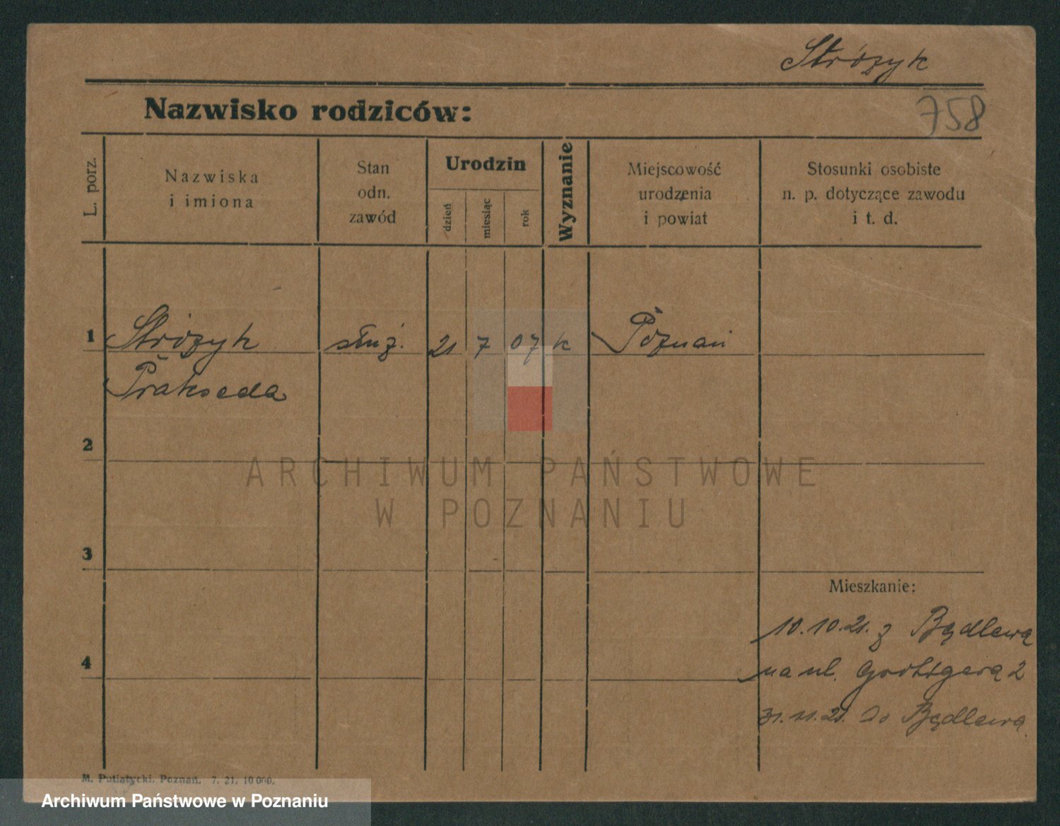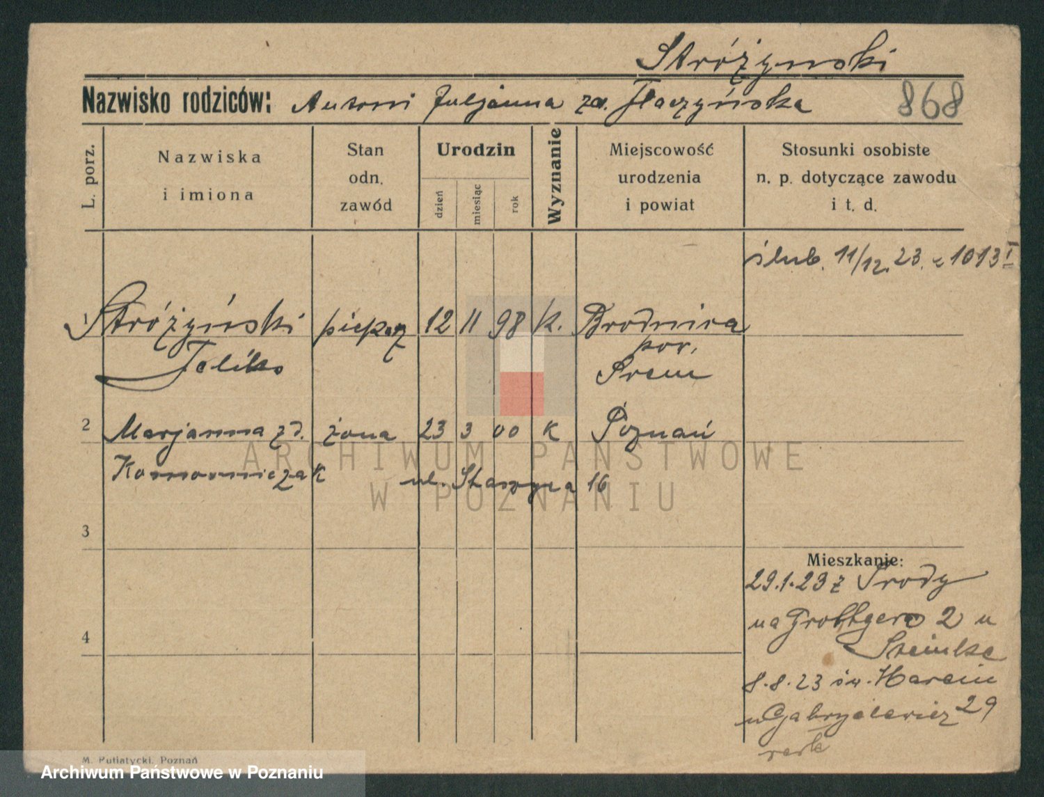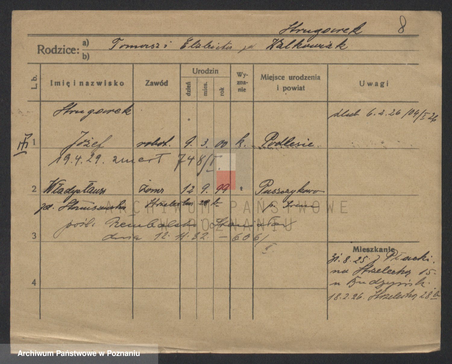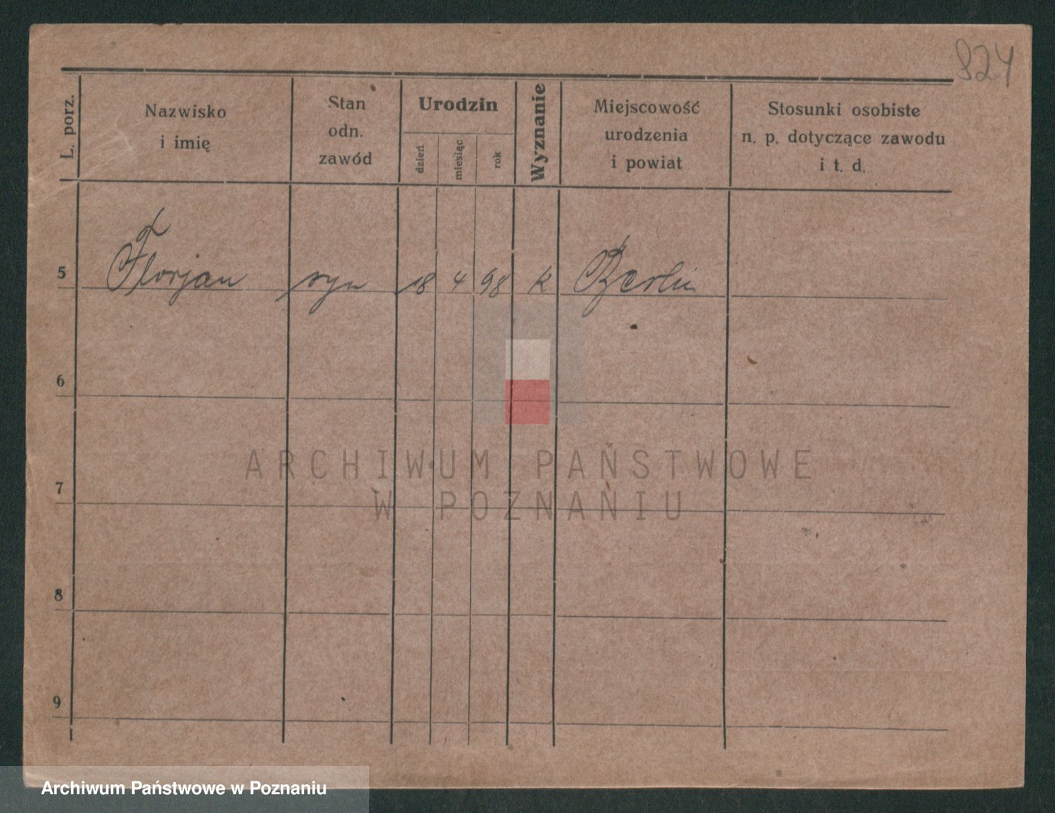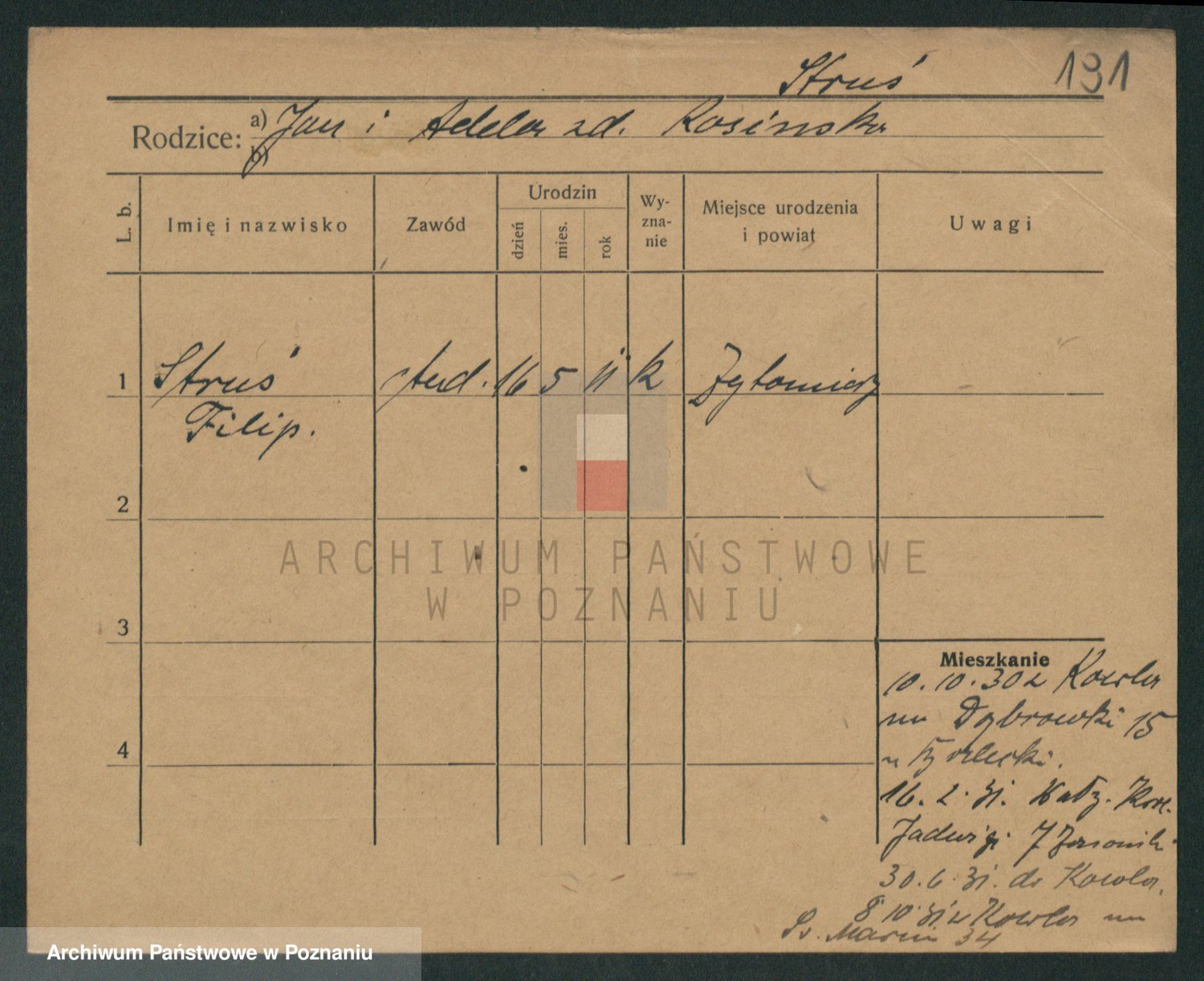 Podgląd karty osobowej dostępny jest po kliknięciu na nazwisko lub ikonkę karty. Można dokonywać powiększenia (ikony na górze) lub przechodzić między kolejnymi skanami (strzałki po bokach).