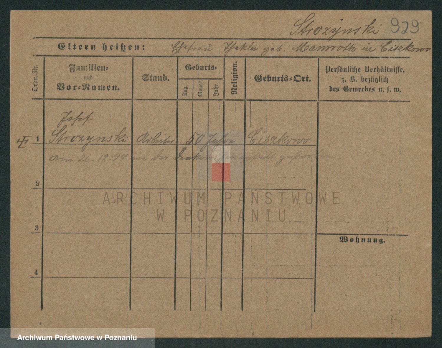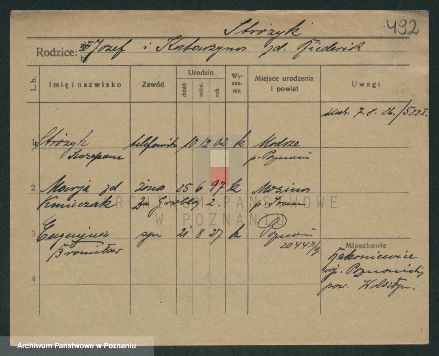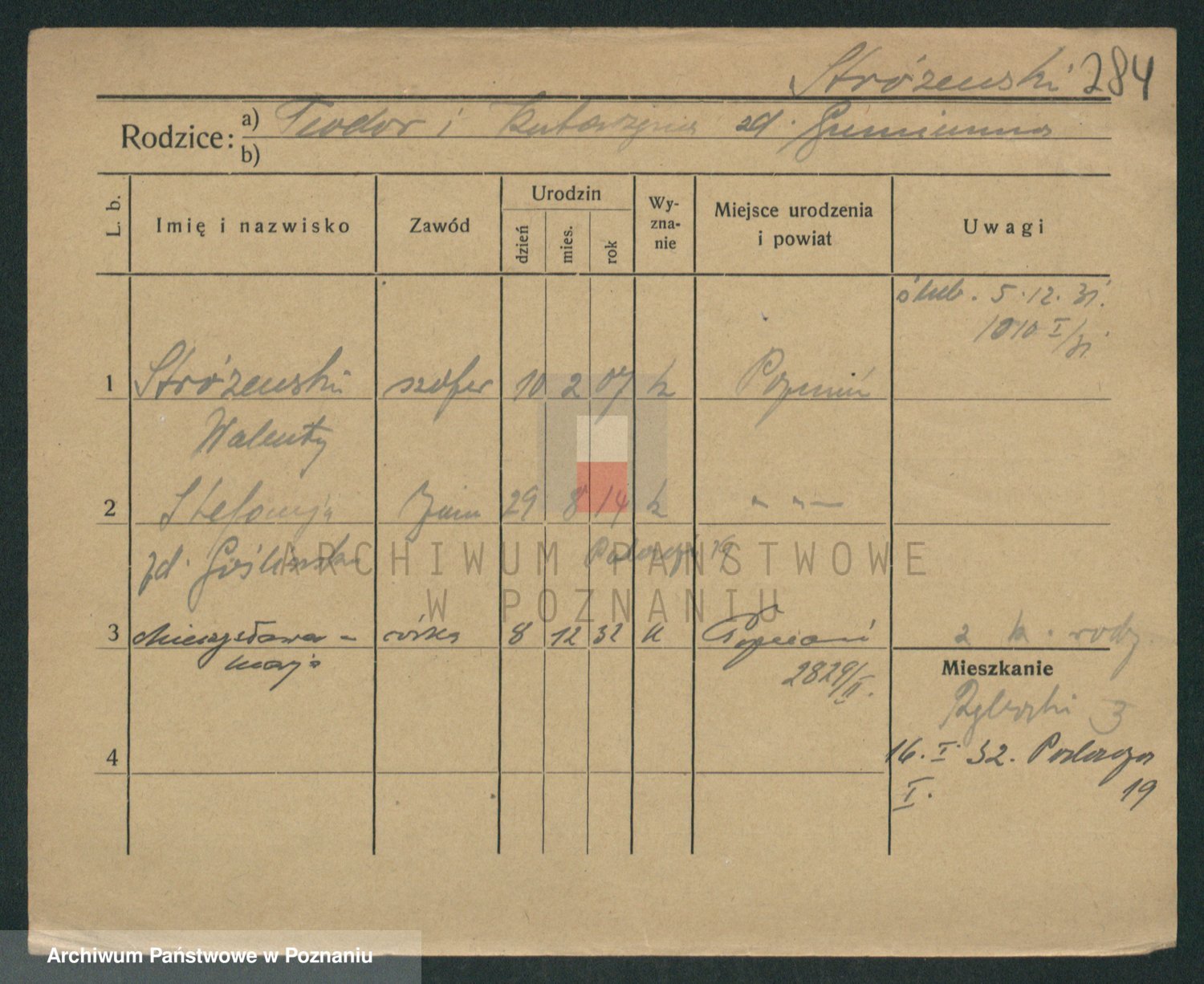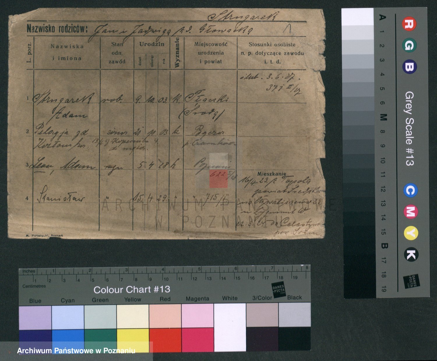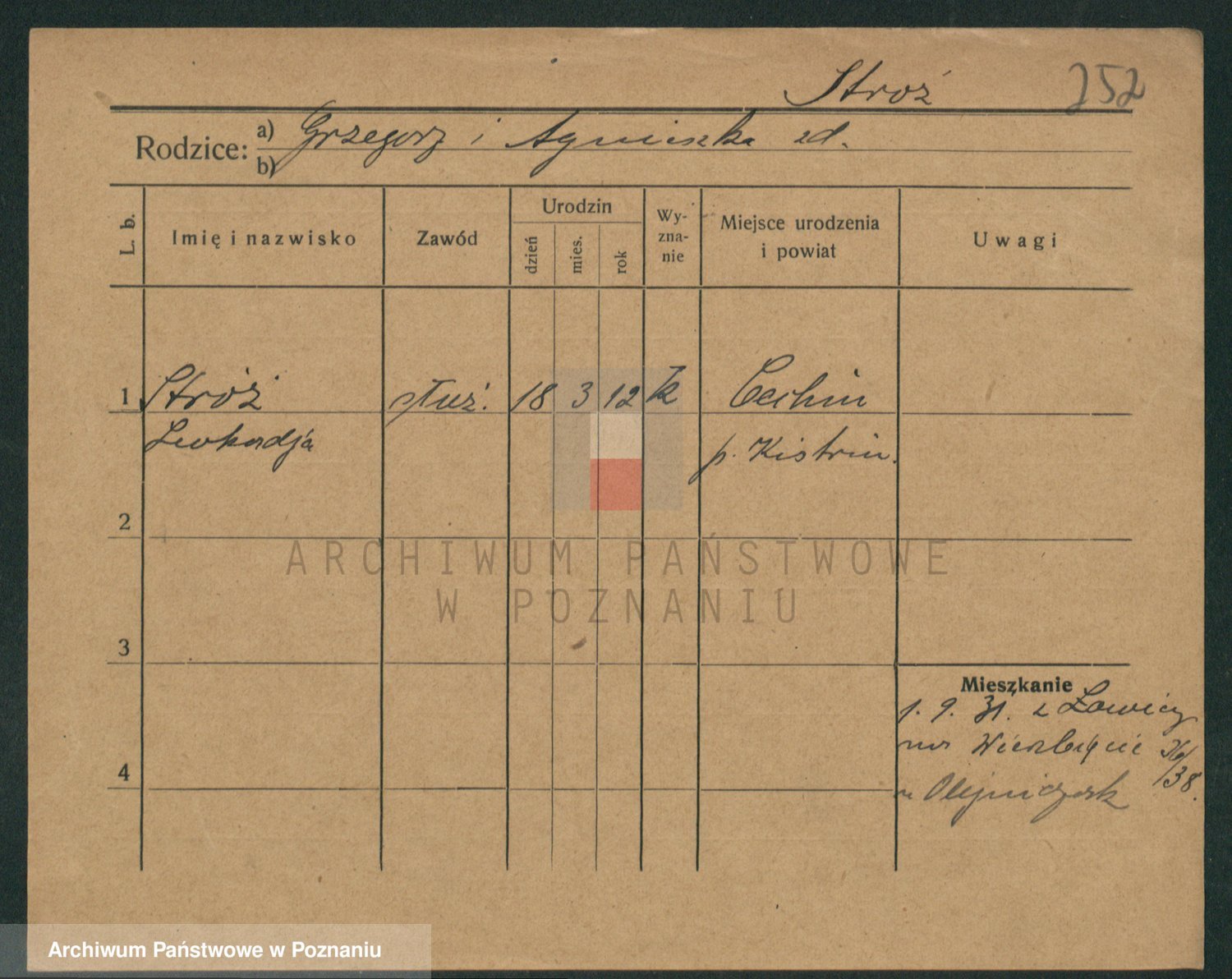 Podgląd karty osobowej dostępny jest po kliknięciu na nazwisko lub ikonkę karty. Można dokonywać powiększenia (ikony na górze) lub przechodzić między kolejnymi skanami (strzałki po bokach).