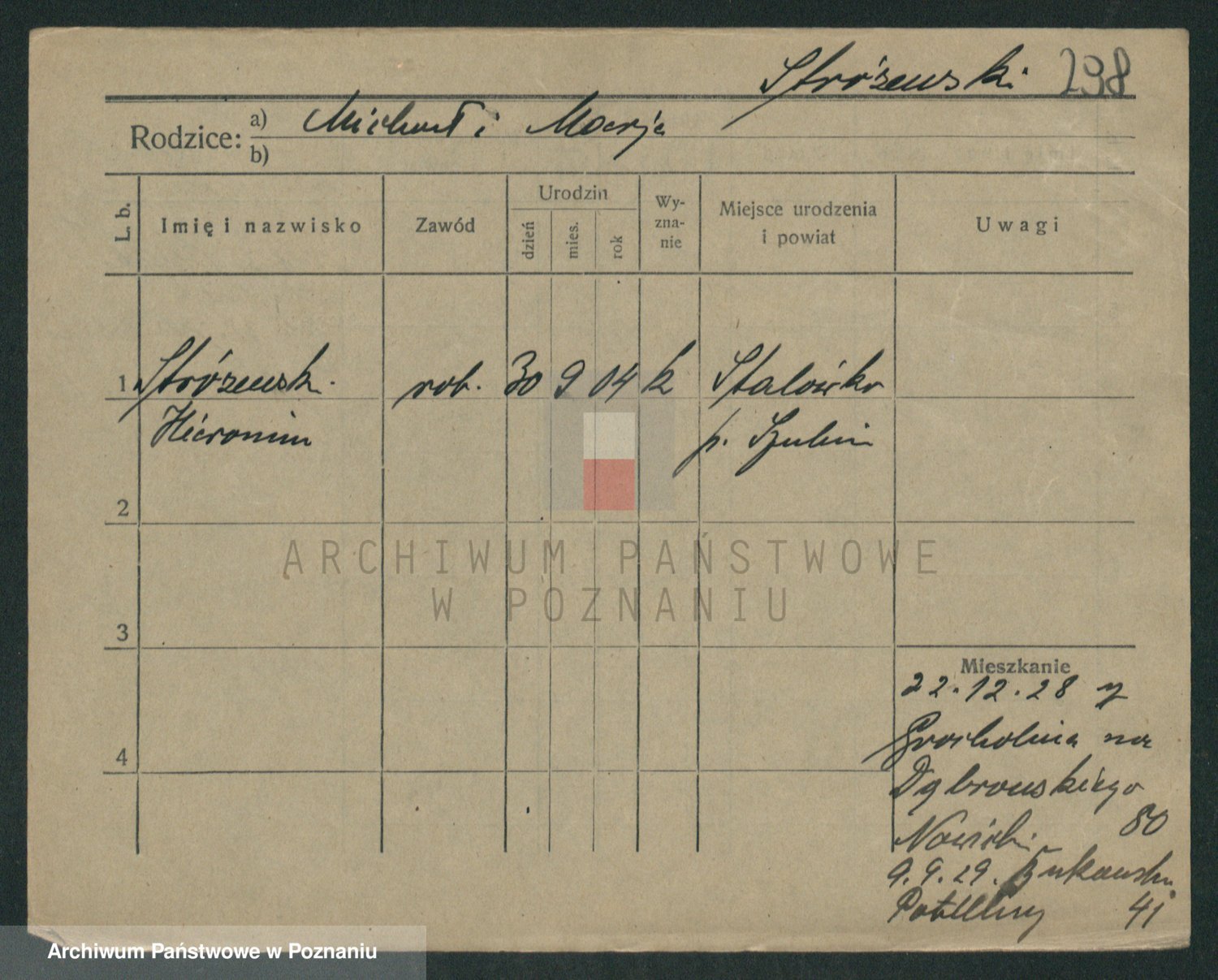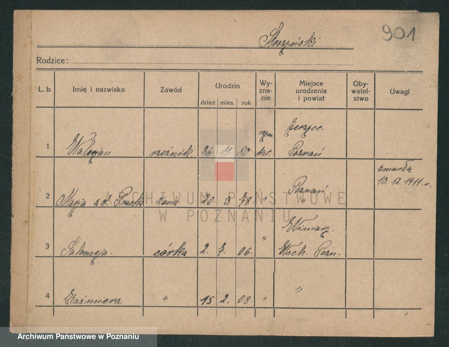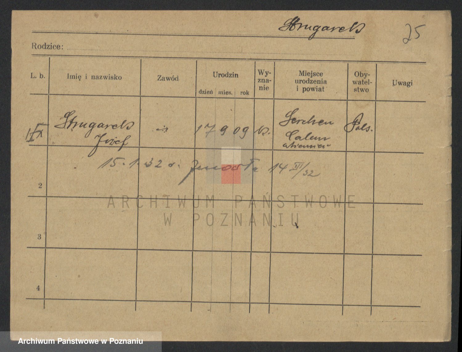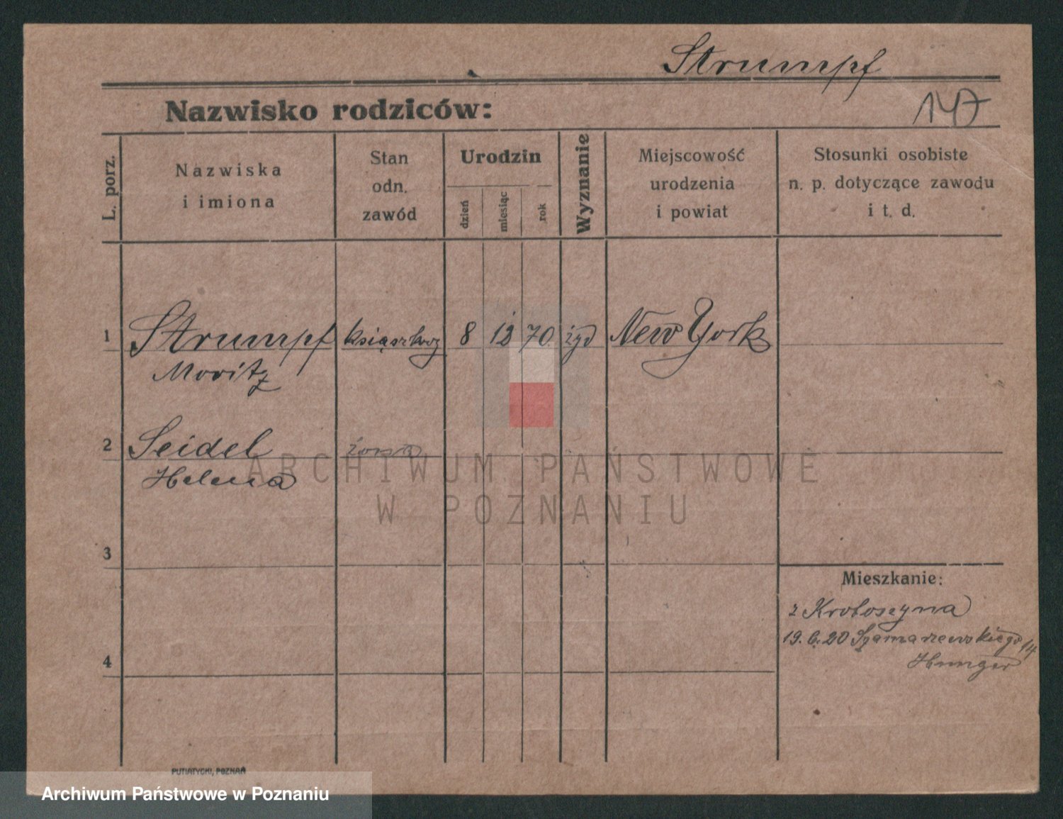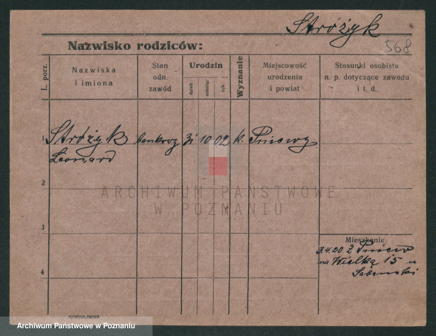 Podgląd karty osobowej dostępny jest po kliknięciu na nazwisko lub ikonkę karty. Można dokonywać powiększenia (ikony na górze) lub przechodzić między kolejnymi skanami (strzałki po bokach).