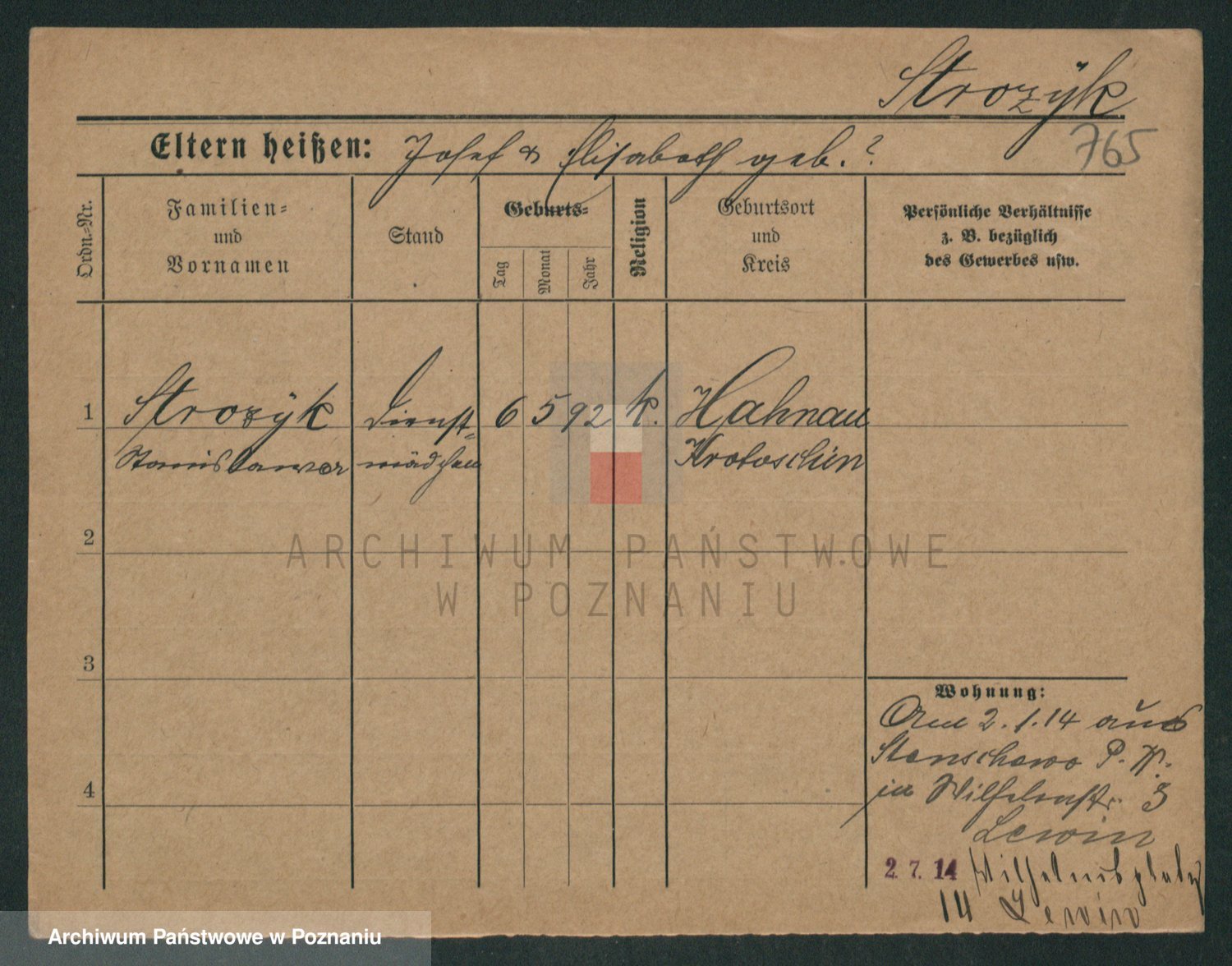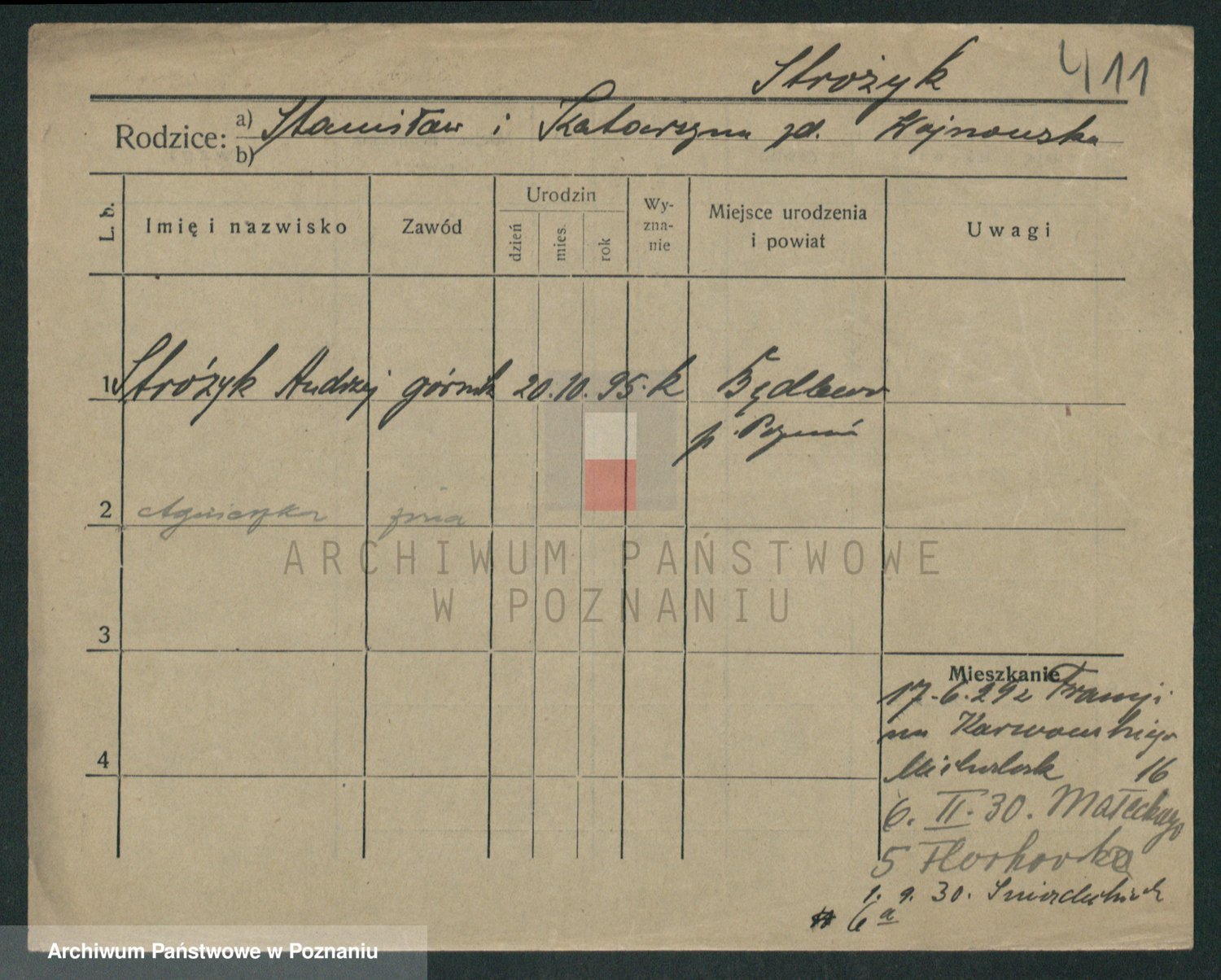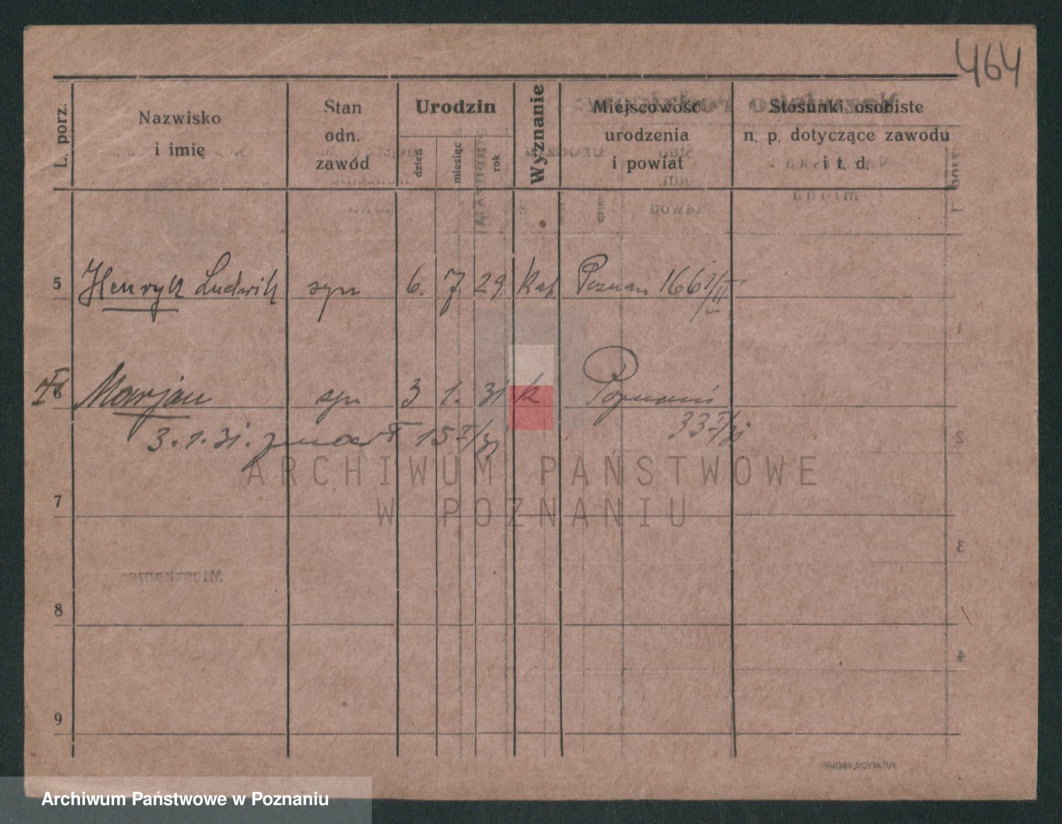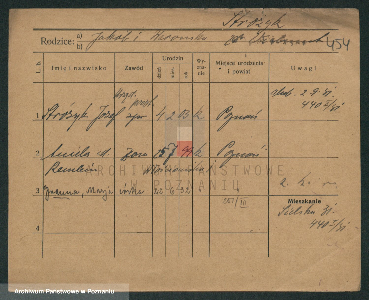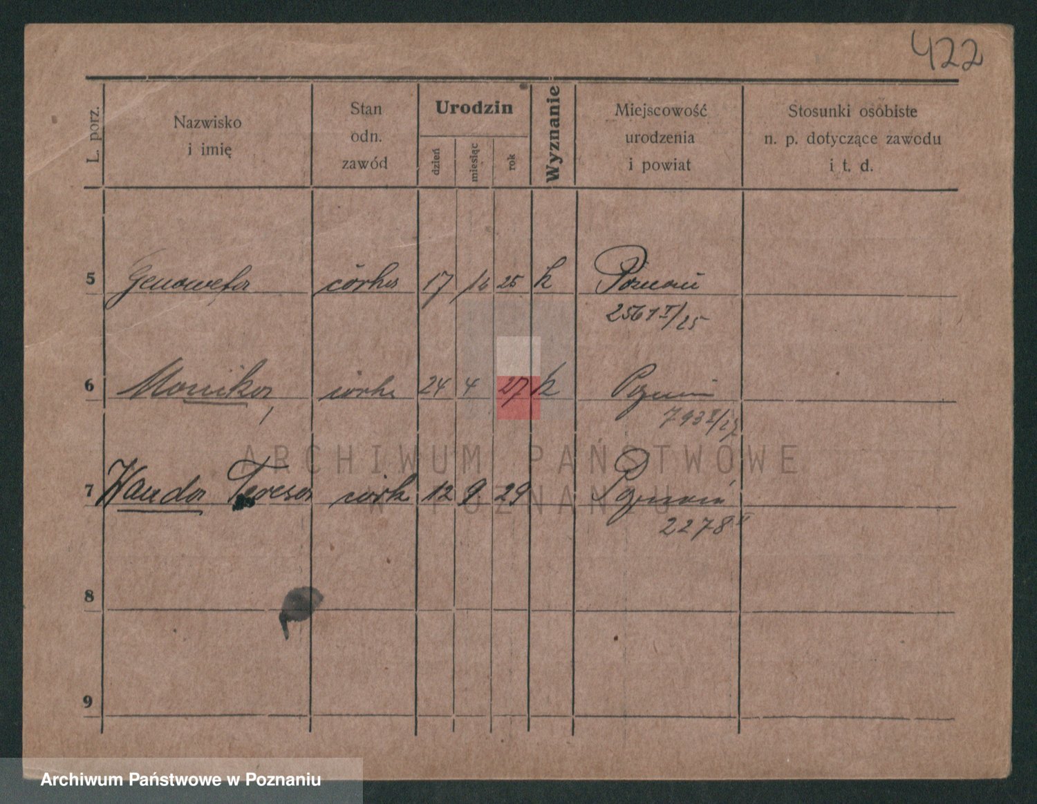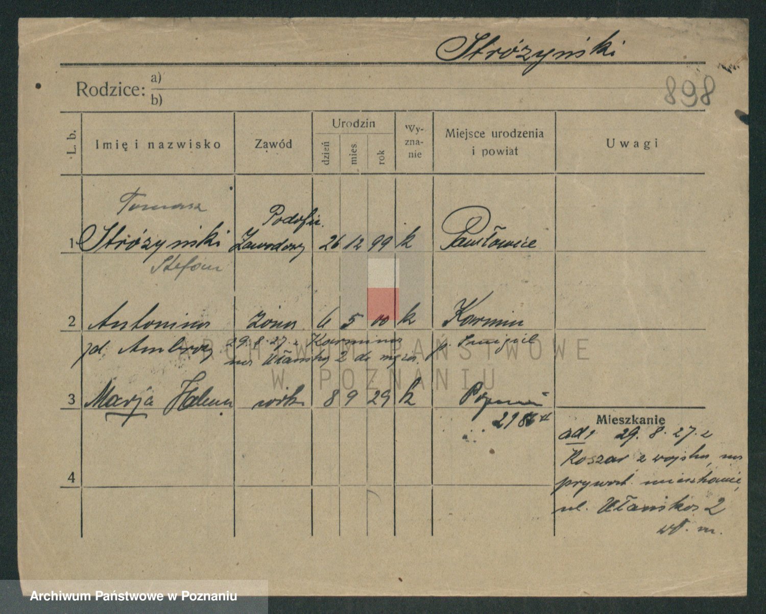Podgląd karty osobowej dostępny jest po kliknięciu na nazwisko lub ikonkę karty. Można dokonywać powiększenia (ikony na górze) lub przechodzić między kolejnymi skanami (strzałki po bokach).