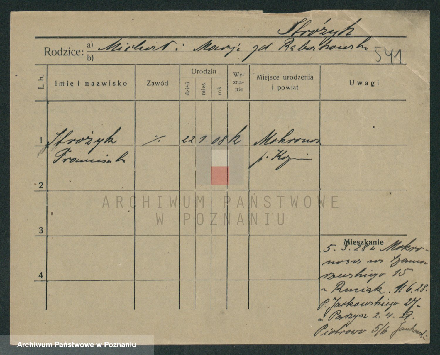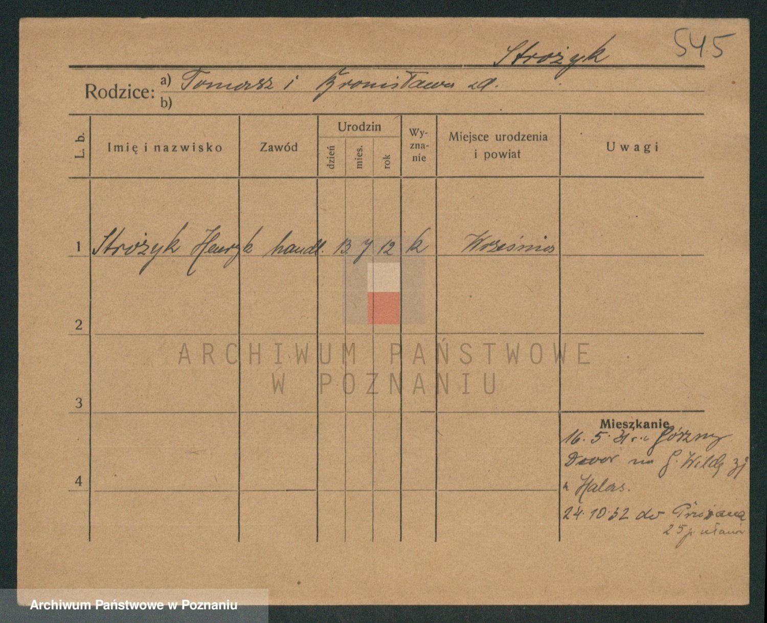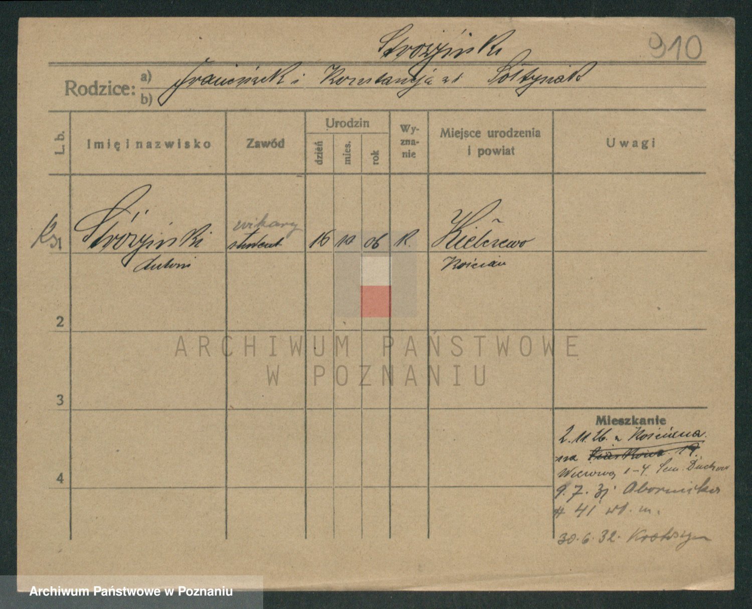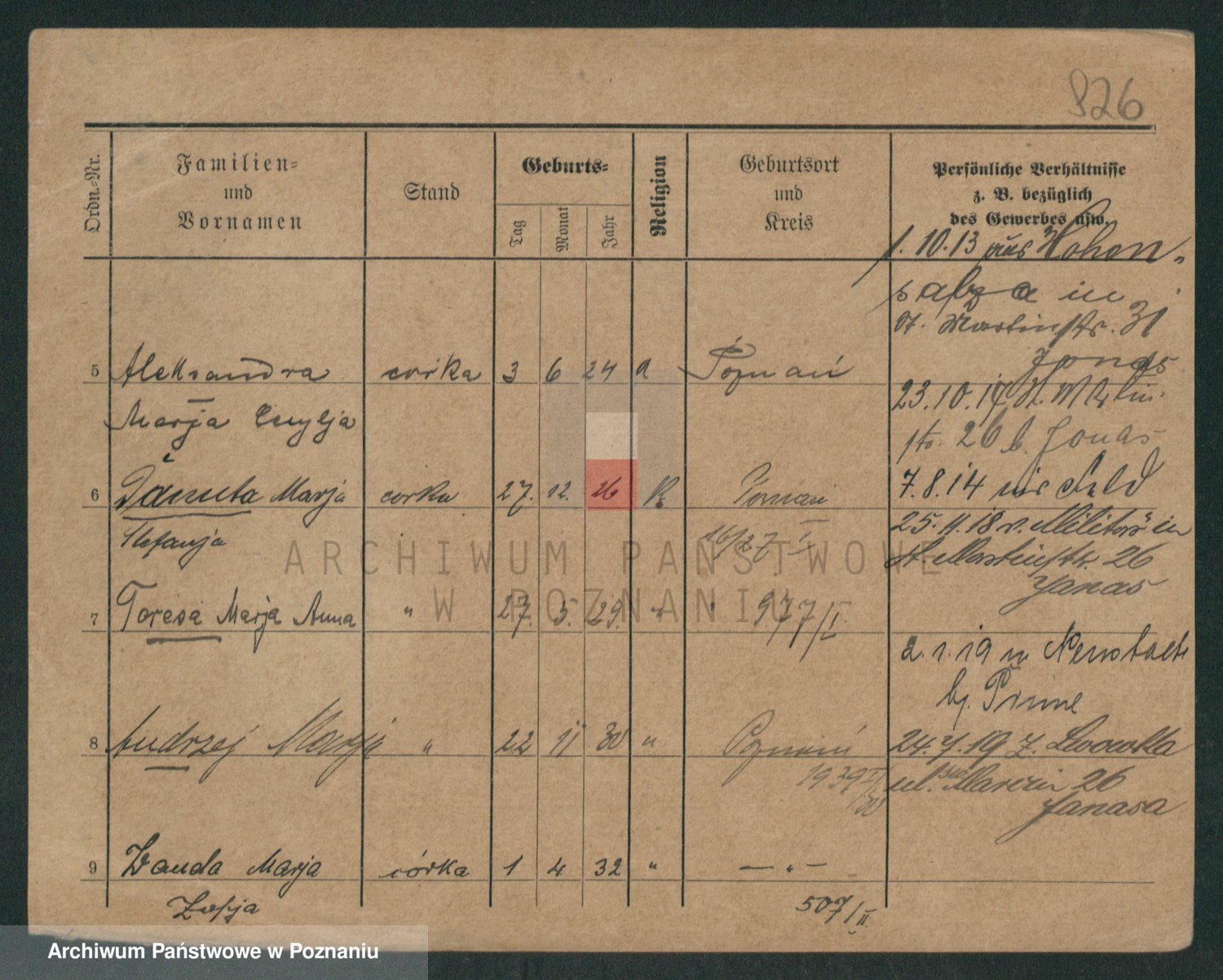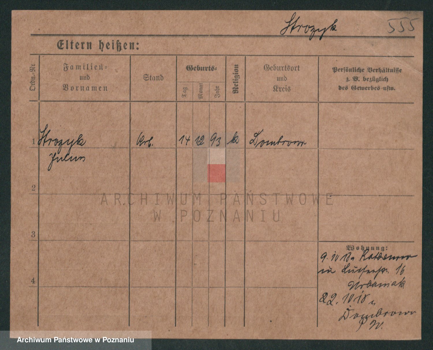 Podgląd karty osobowej dostępny jest po kliknięciu na nazwisko lub ikonkę karty. Można dokonywać powiększenia (ikony na górze) lub przechodzić między kolejnymi skanami (strzałki po bokach).