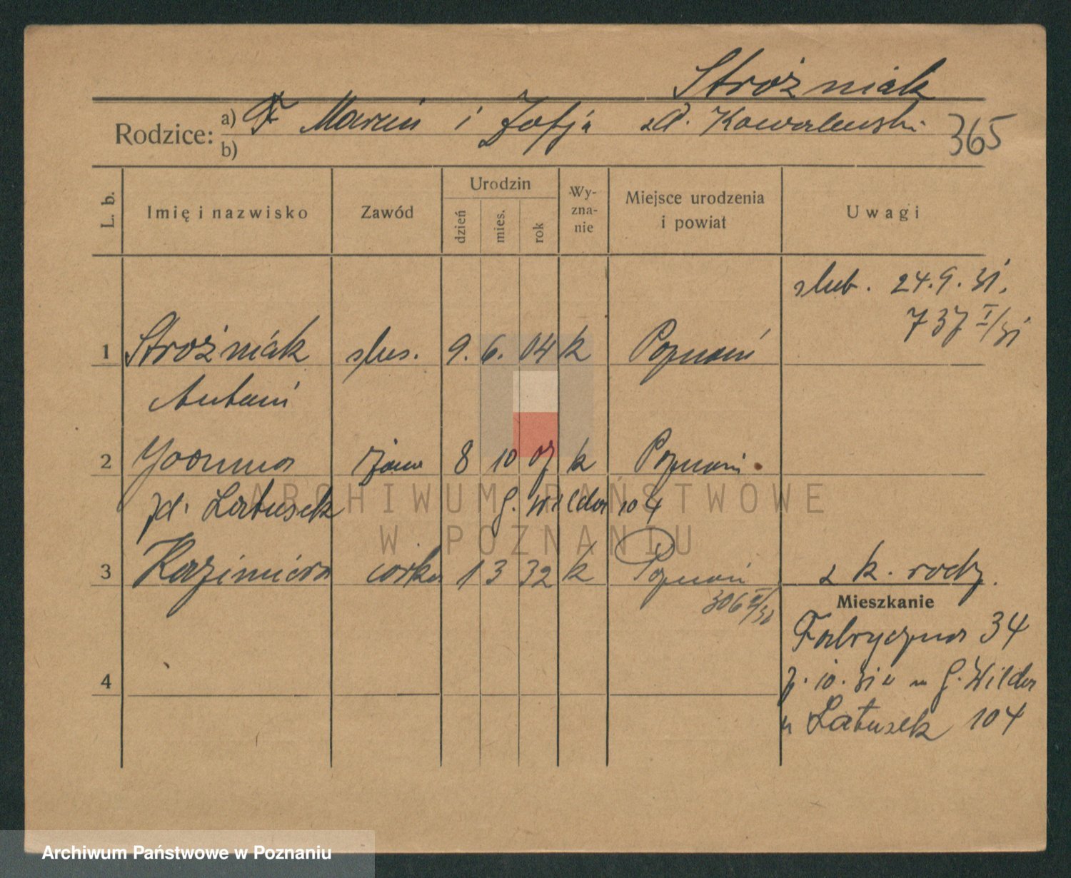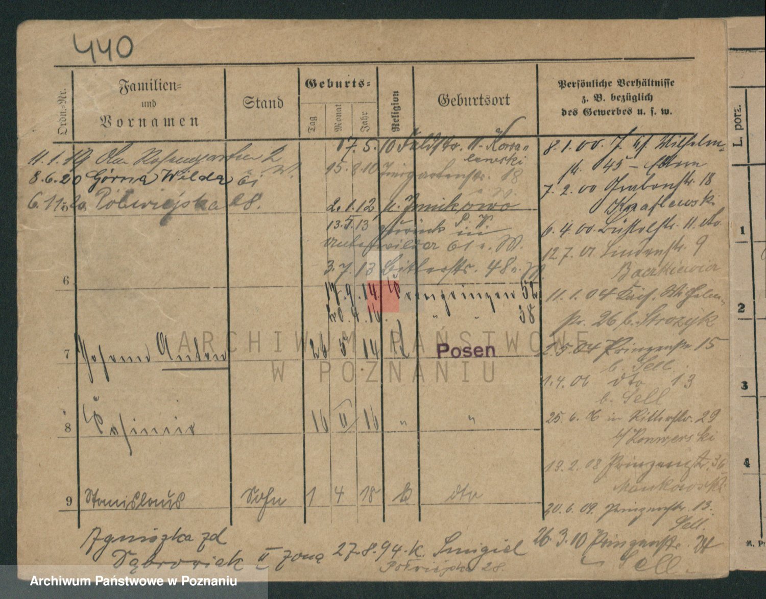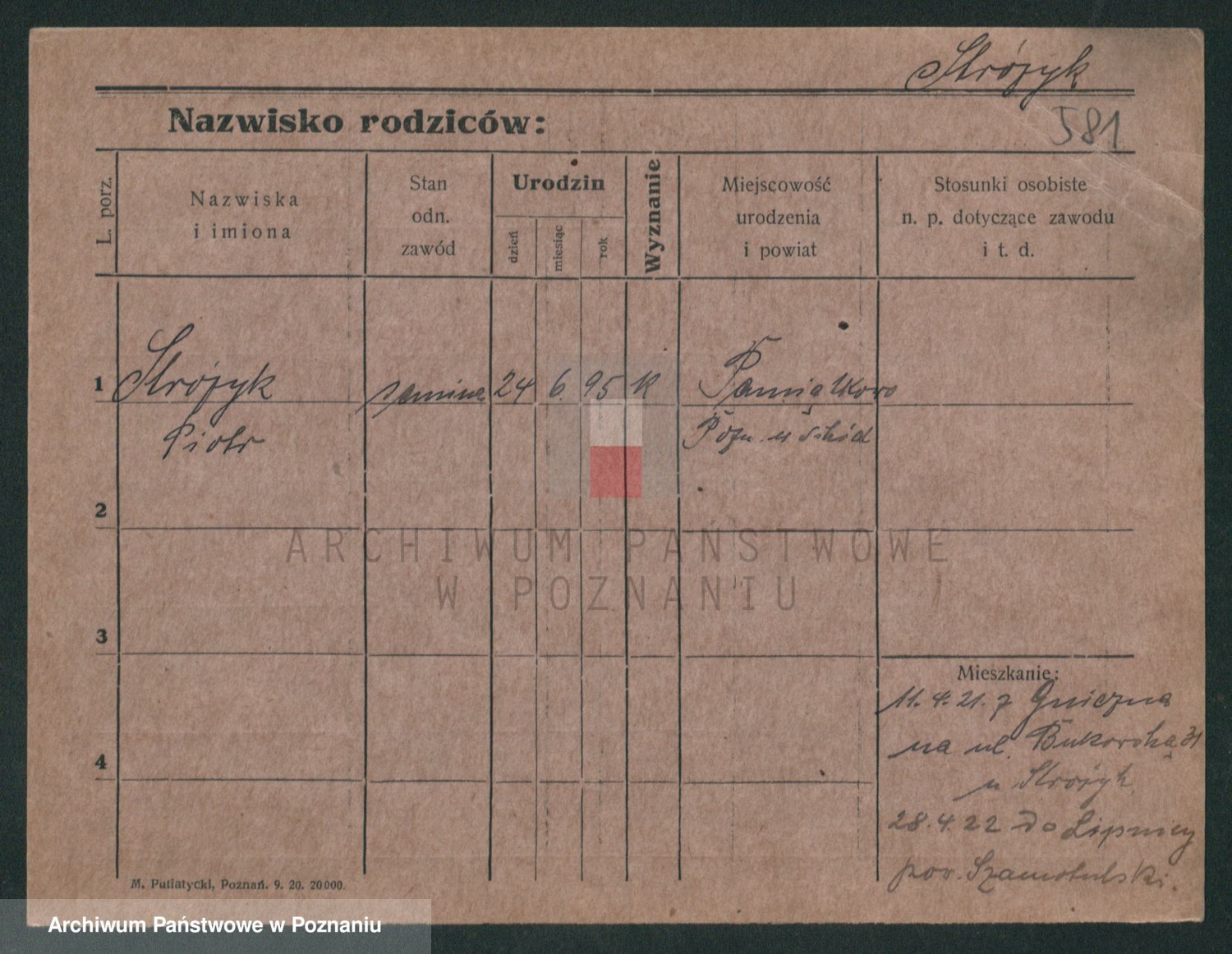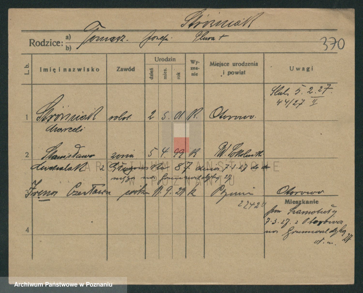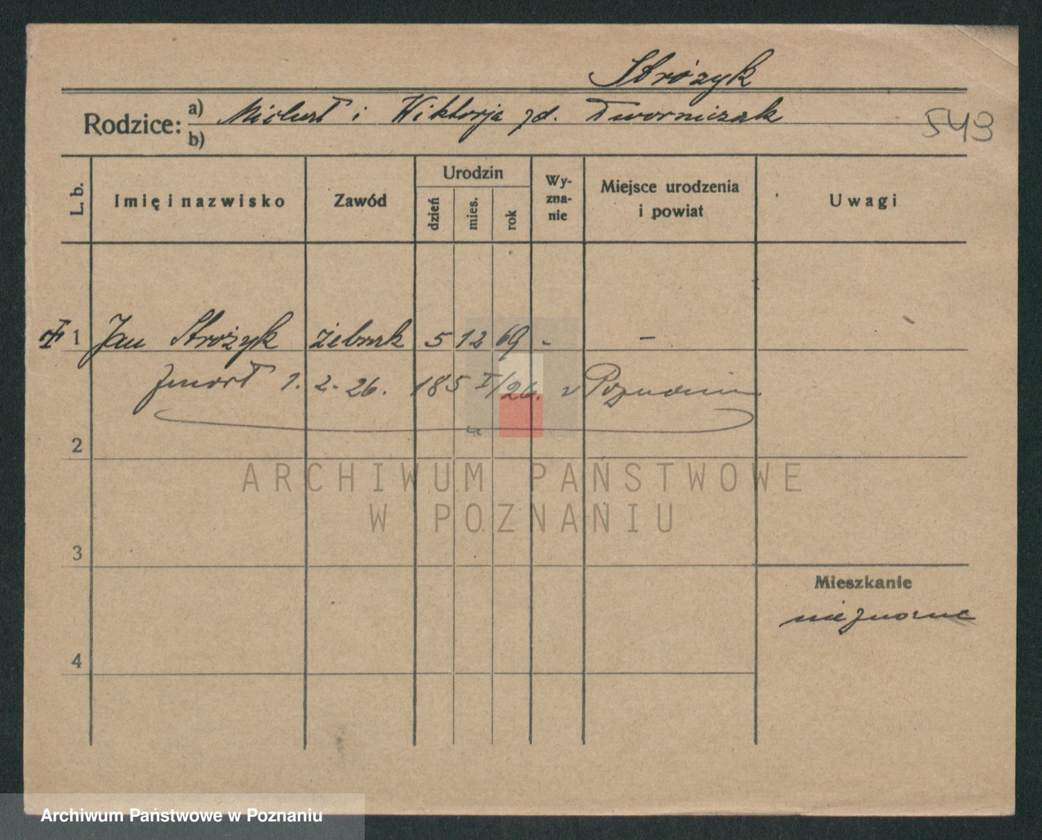 Podgląd karty osobowej dostępny jest po kliknięciu na nazwisko lub ikonkę karty. Można dokonywać powiększenia (ikony na górze) lub przechodzić między kolejnymi skanami (strzałki po bokach).
