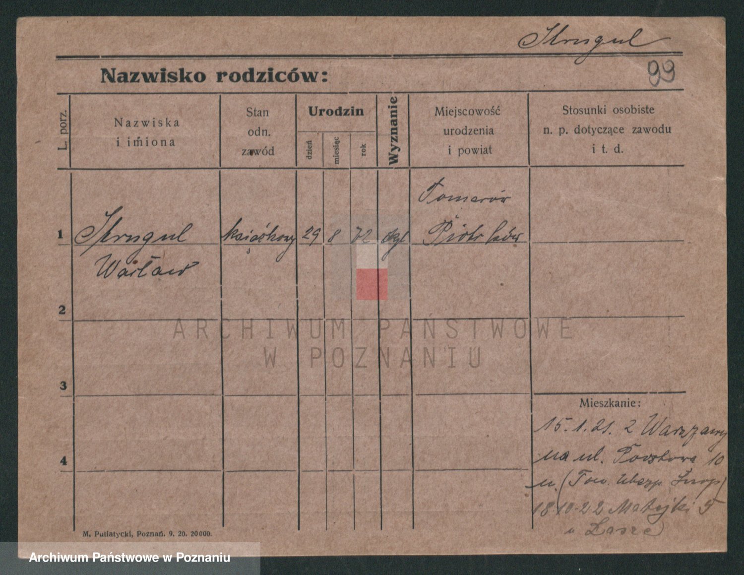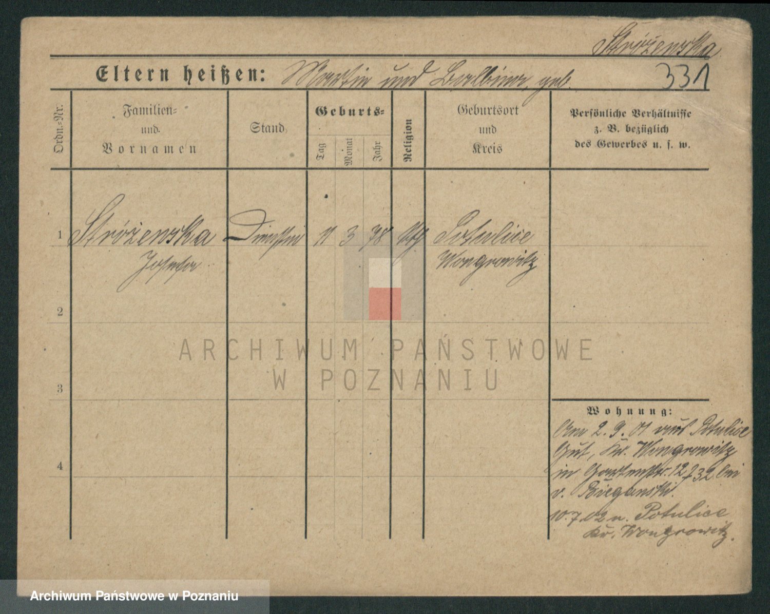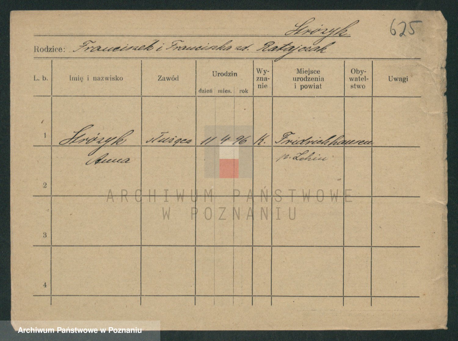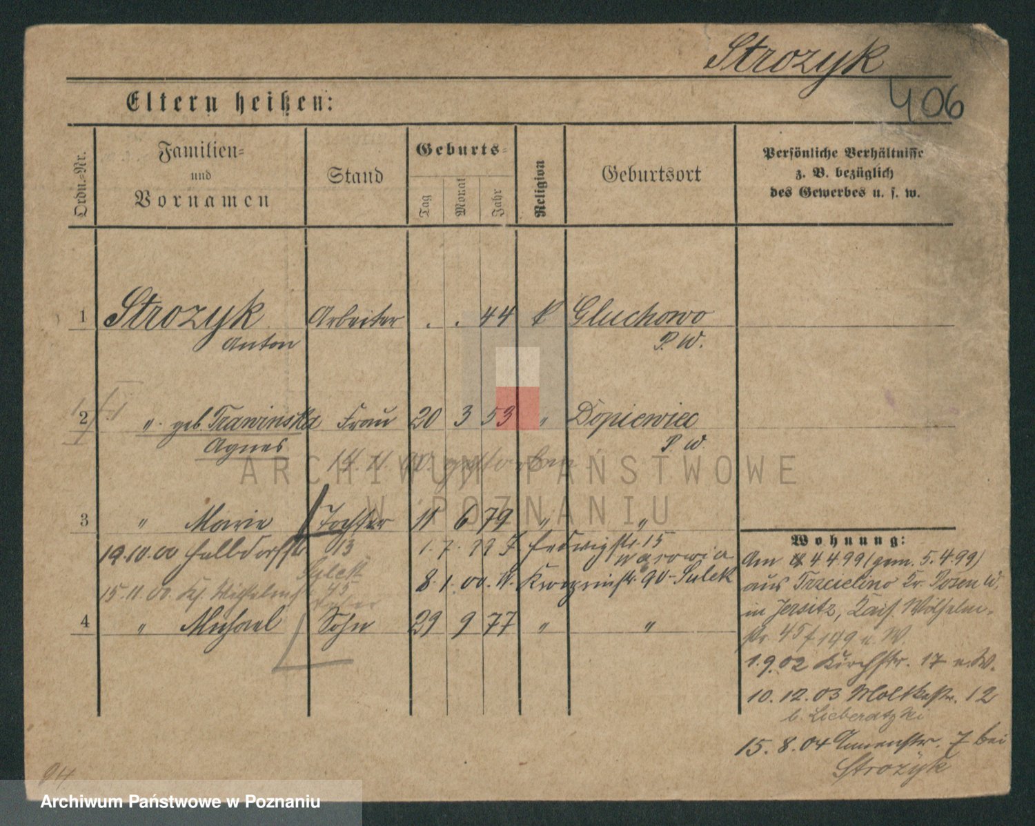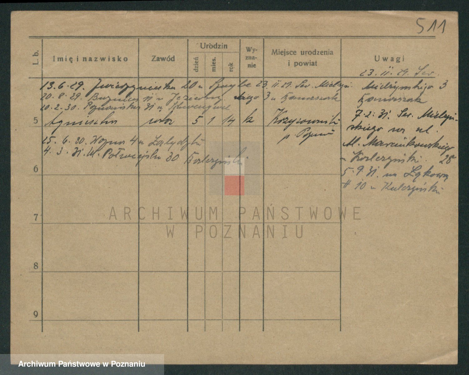 Podgląd karty osobowej dostępny jest po kliknięciu na nazwisko lub ikonkę karty. Można dokonywać powiększenia (ikony na górze) lub przechodzić między kolejnymi skanami (strzałki po bokach).