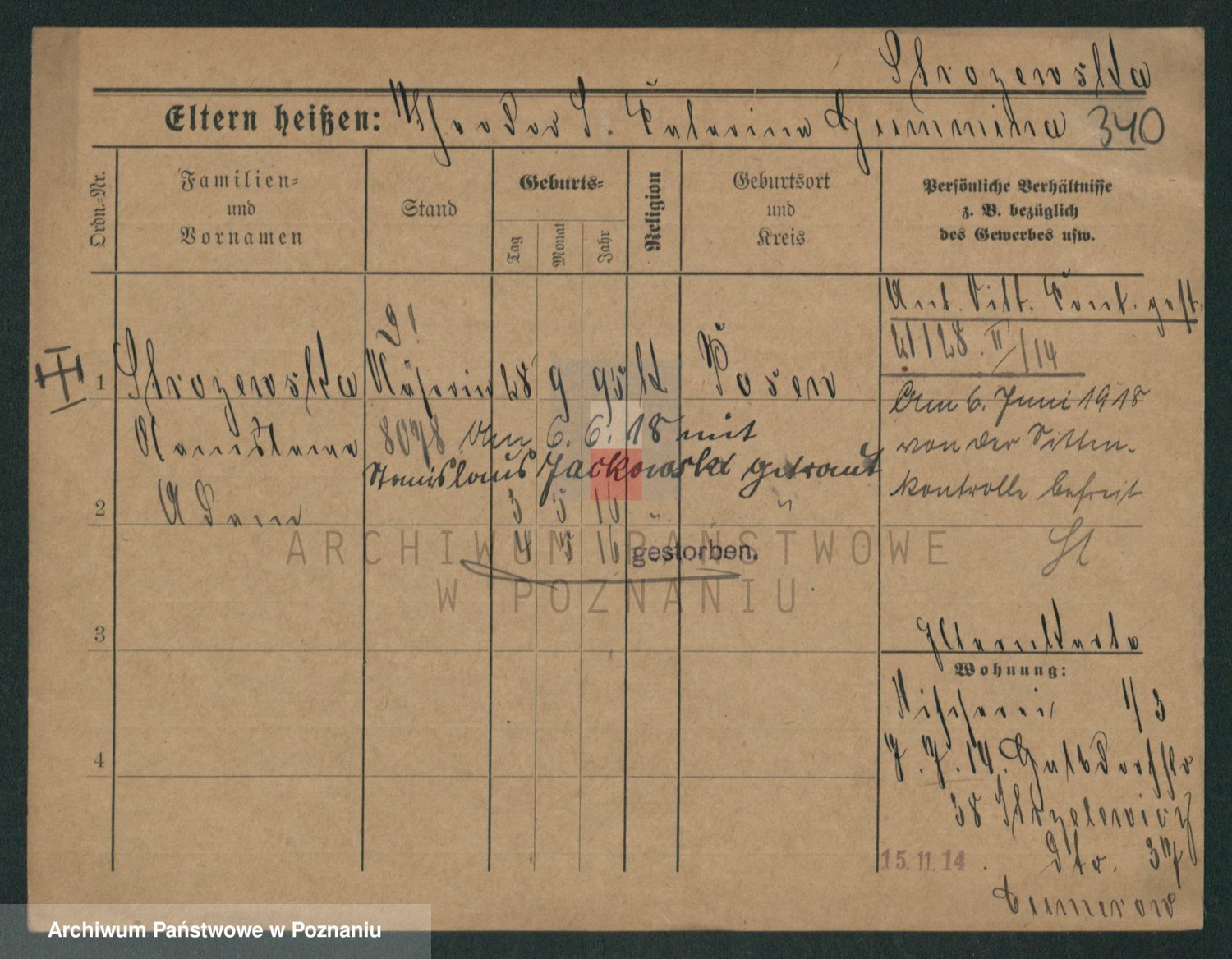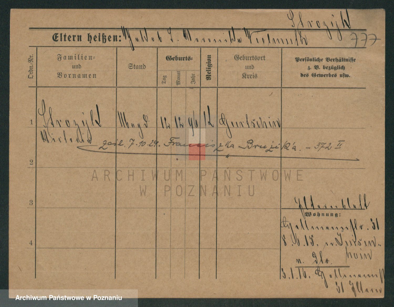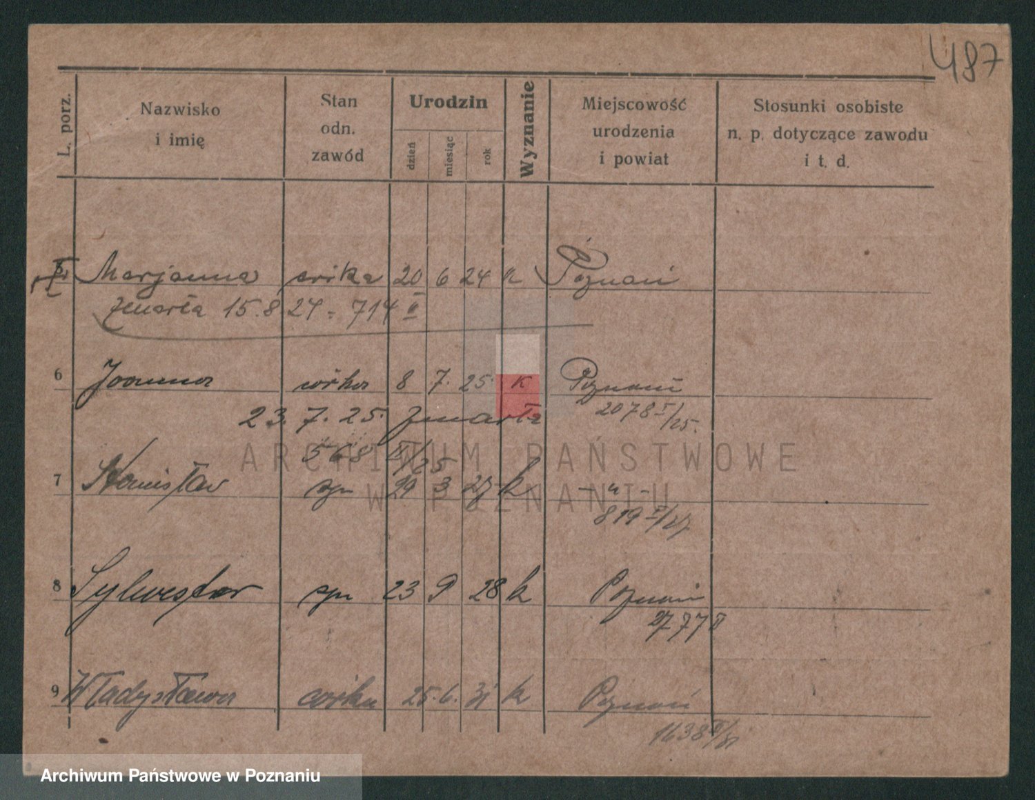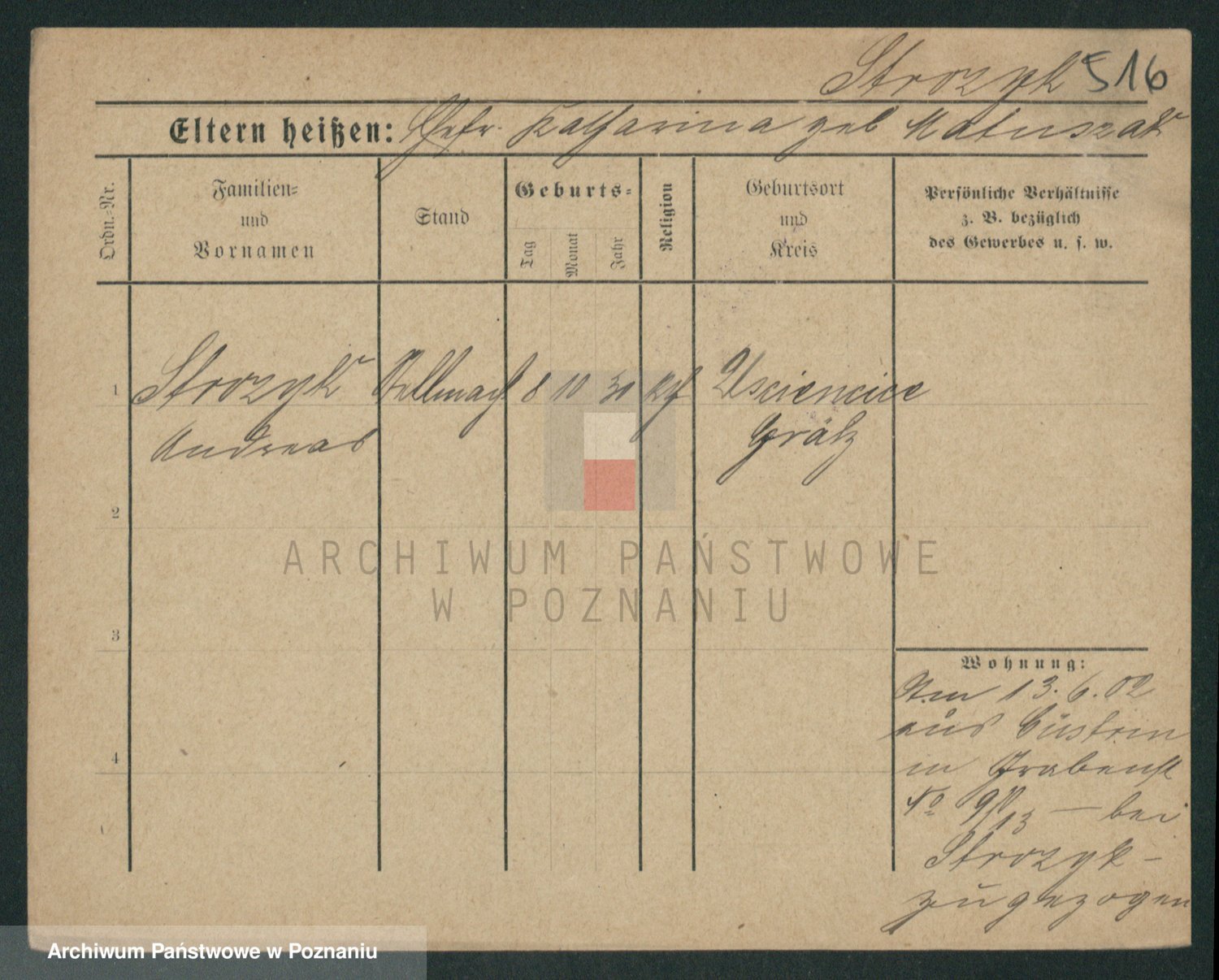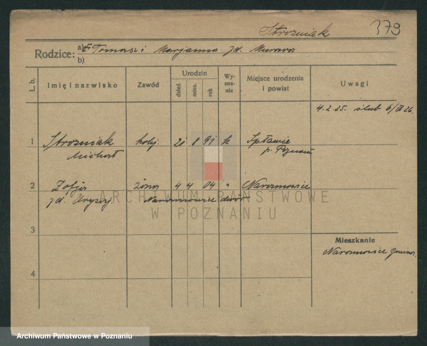 Podgląd karty osobowej dostępny jest po kliknięciu na nazwisko lub ikonkę karty. Można dokonywać powiększenia (ikony na górze) lub przechodzić między kolejnymi skanami (strzałki po bokach).