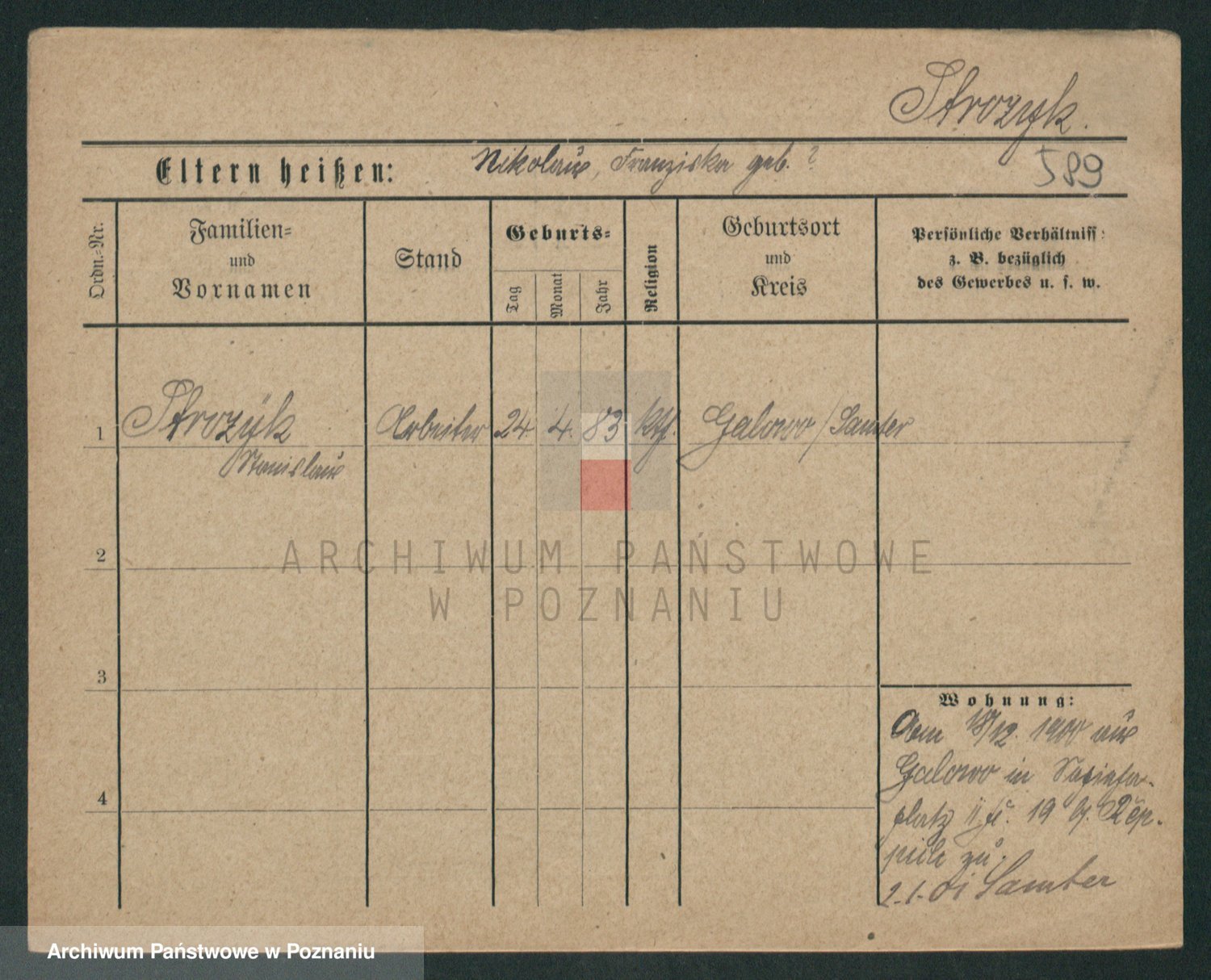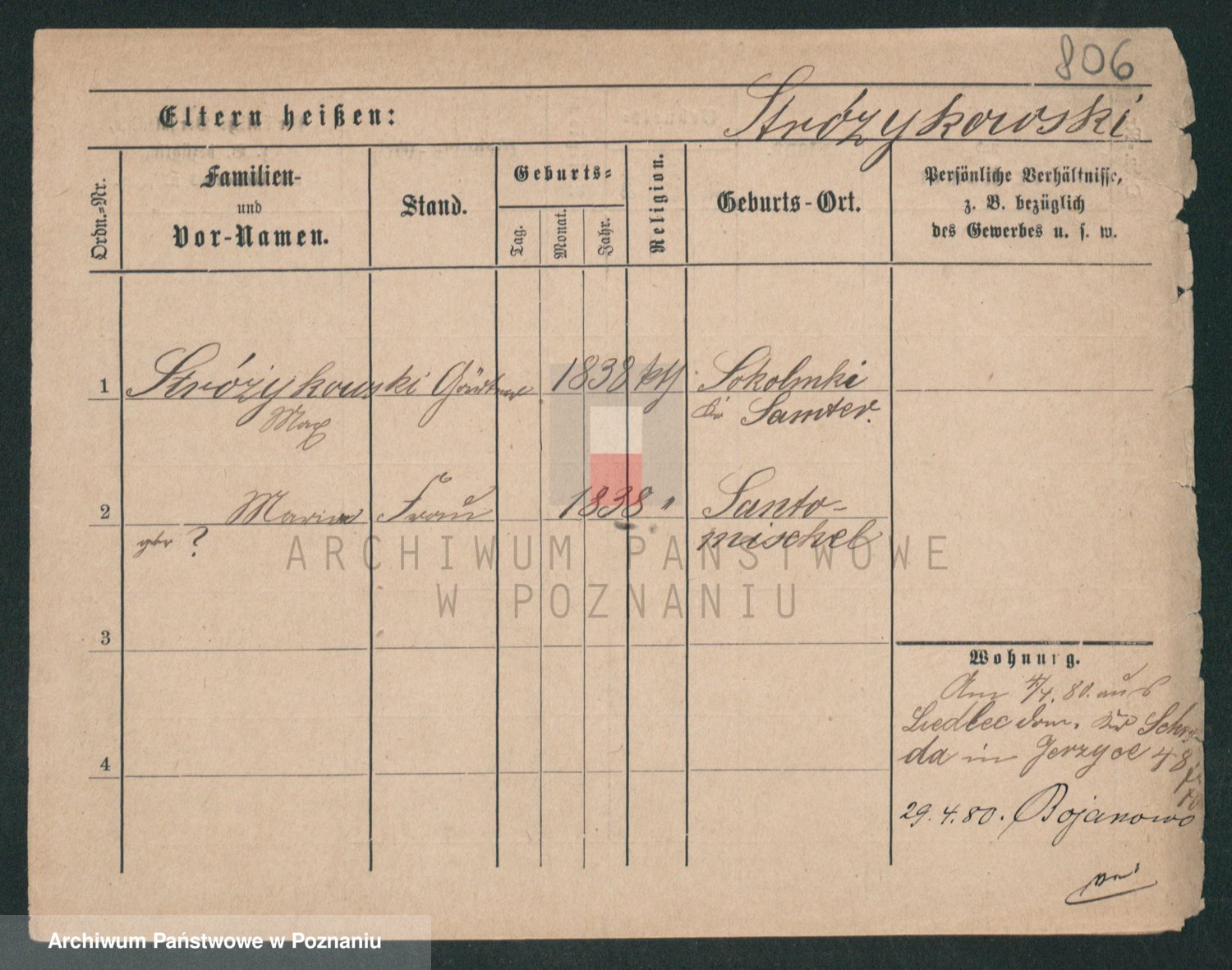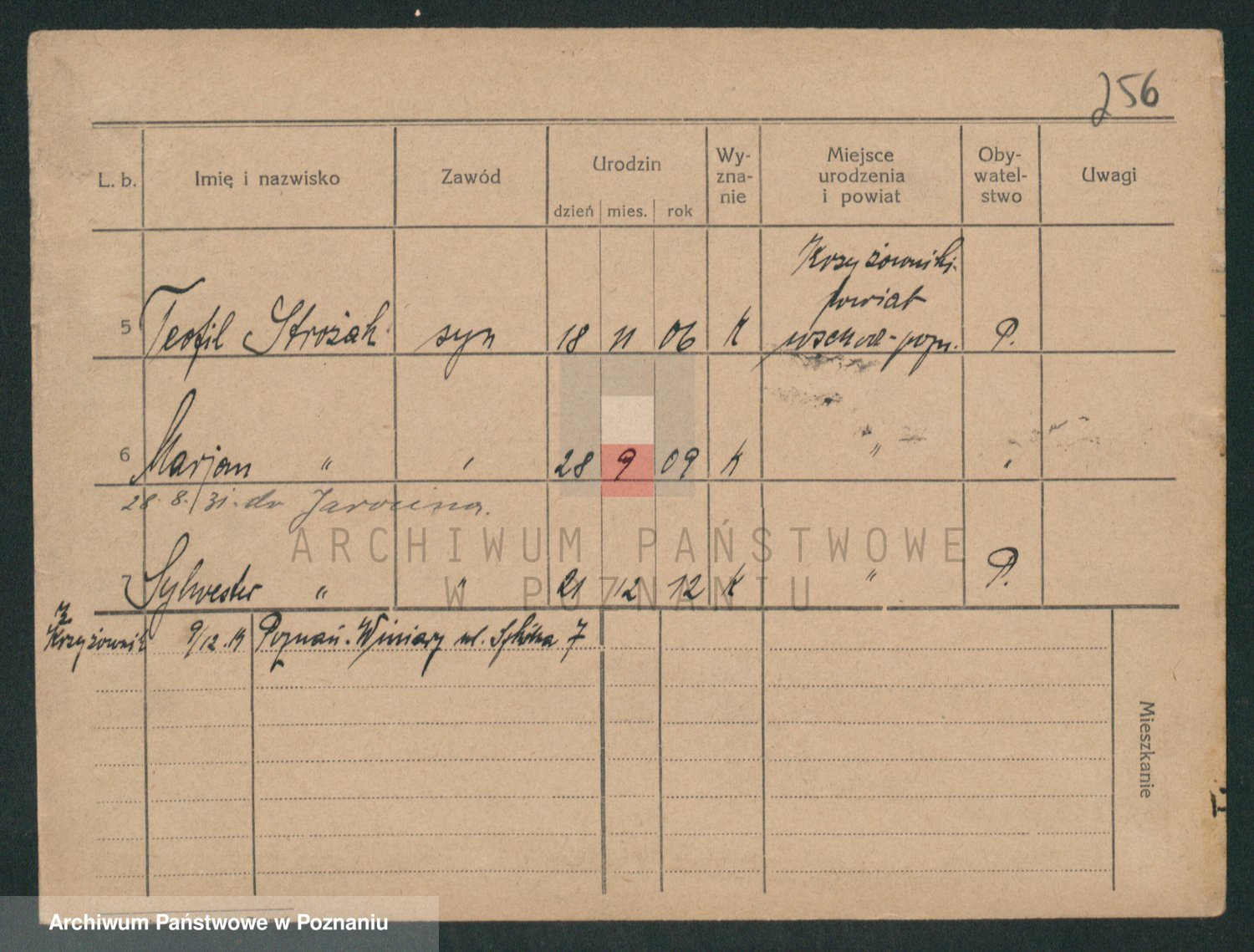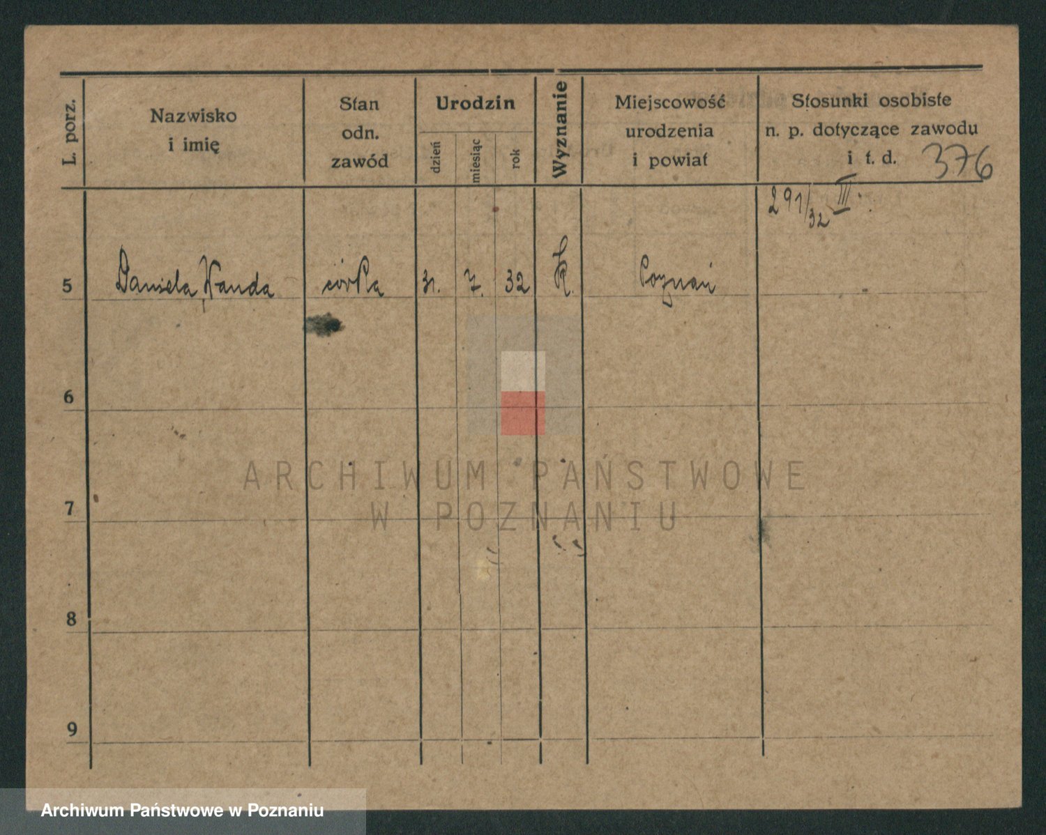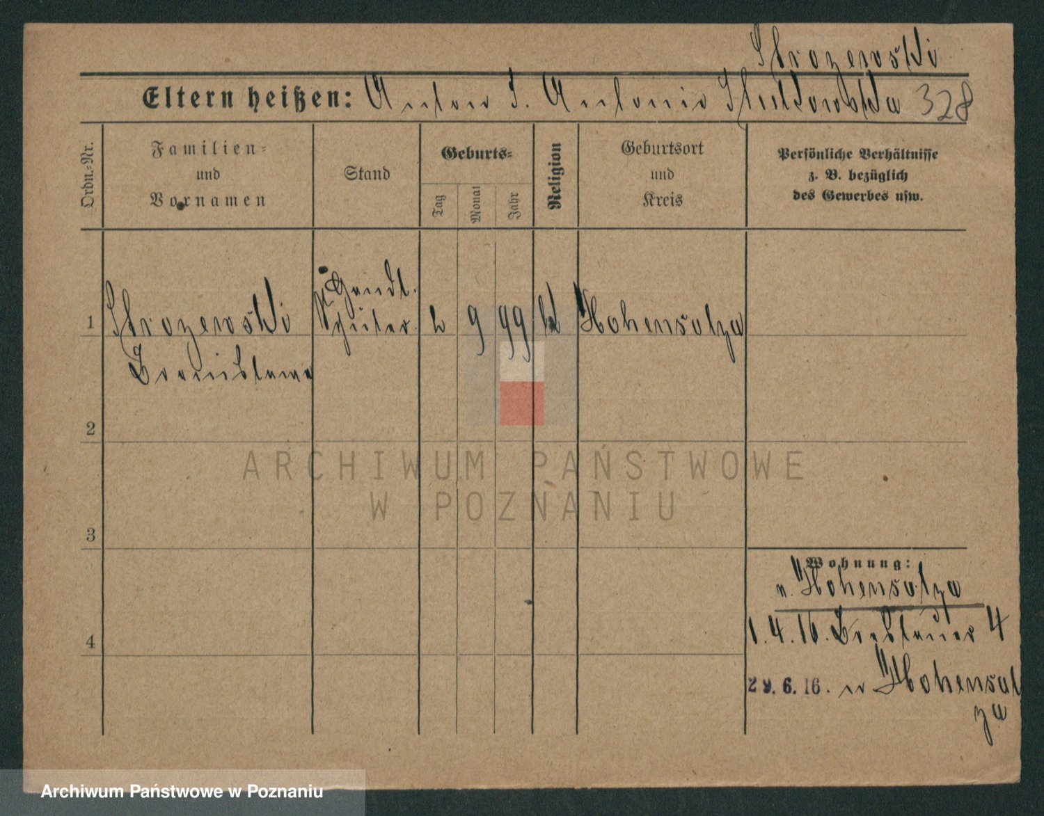 Podgląd karty osobowej dostępny jest po kliknięciu na nazwisko lub ikonkę karty. Można dokonywać powiększenia (ikony na górze) lub przechodzić między kolejnymi skanami (strzałki po bokach).