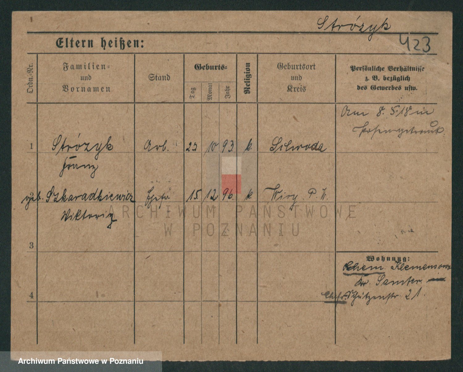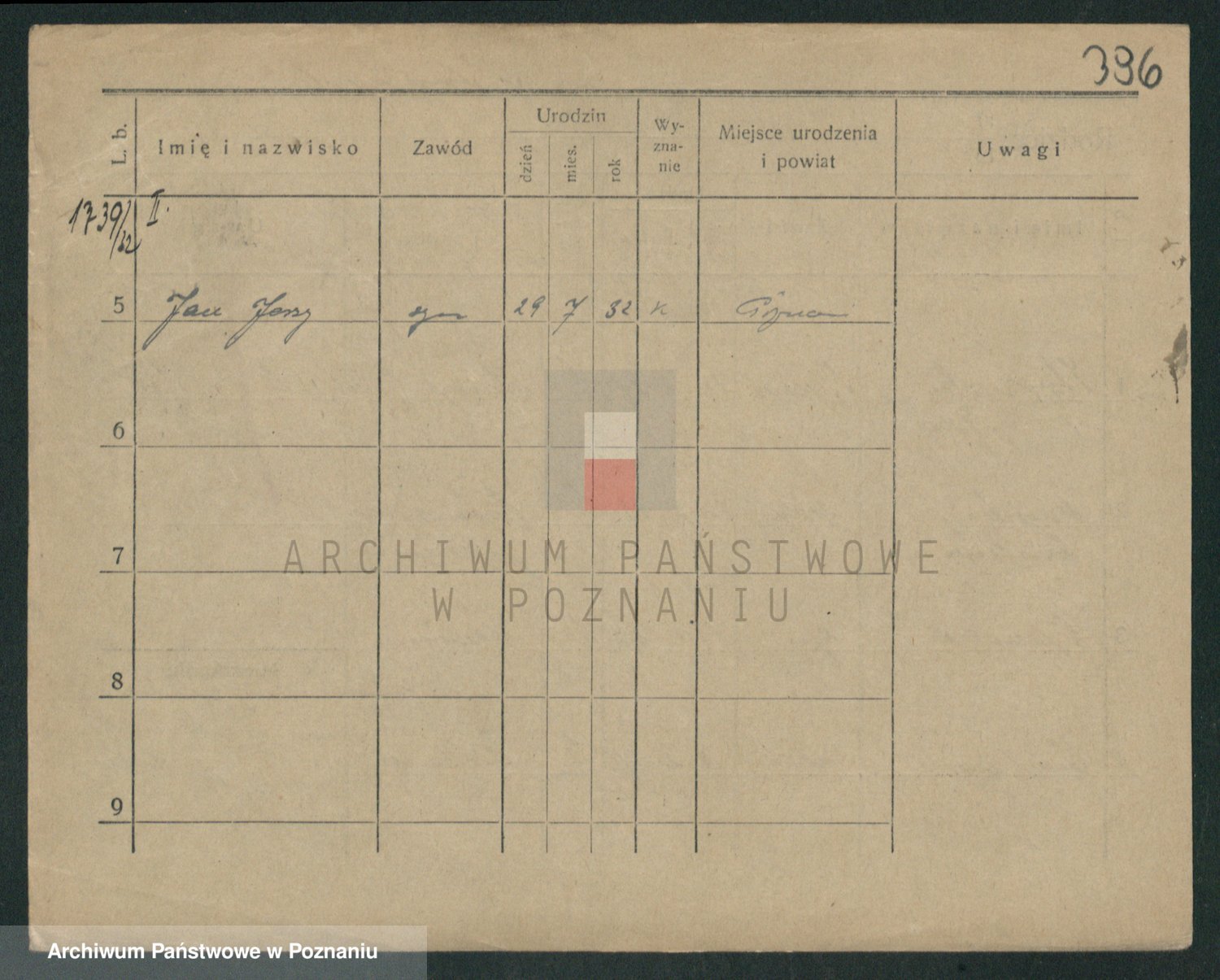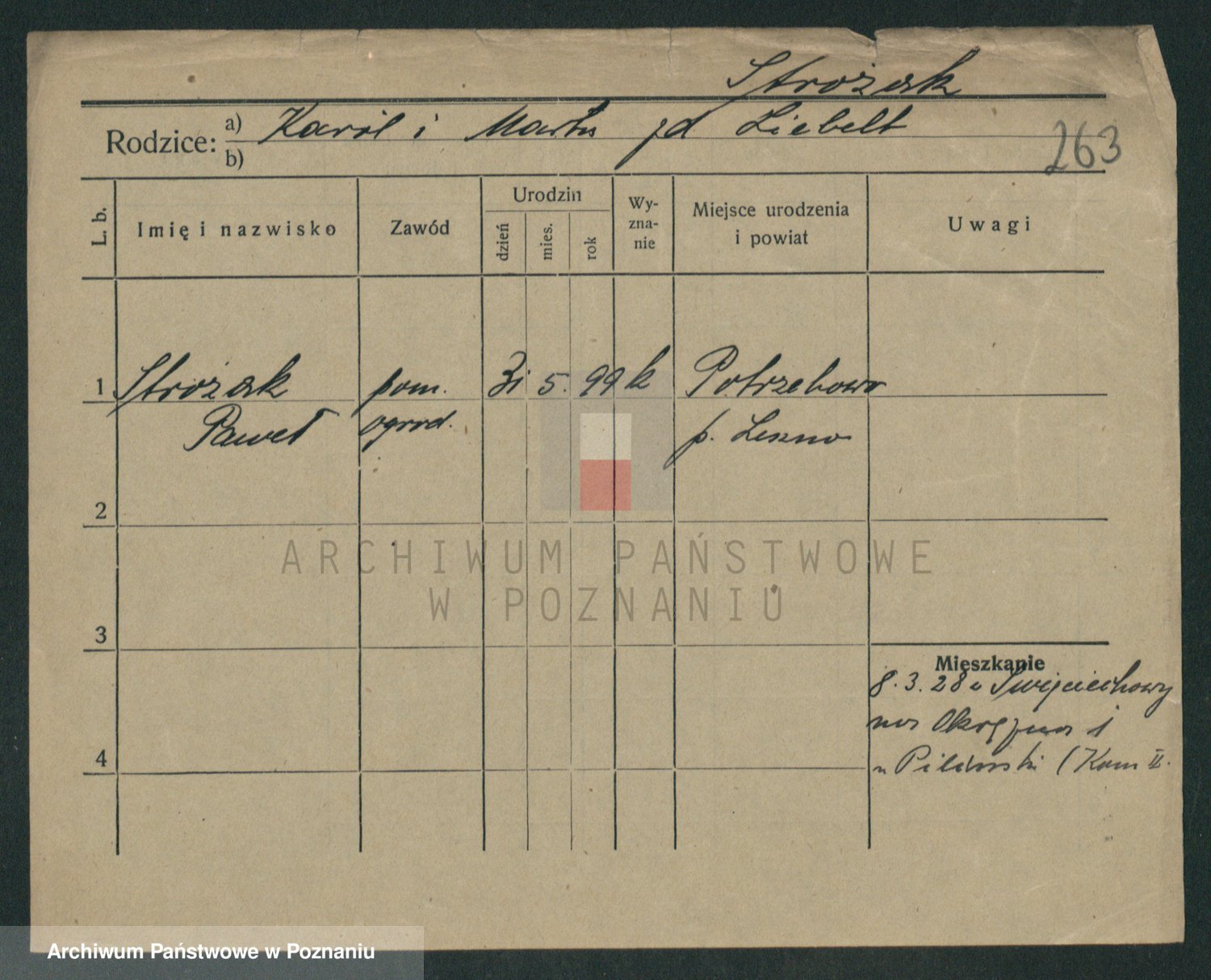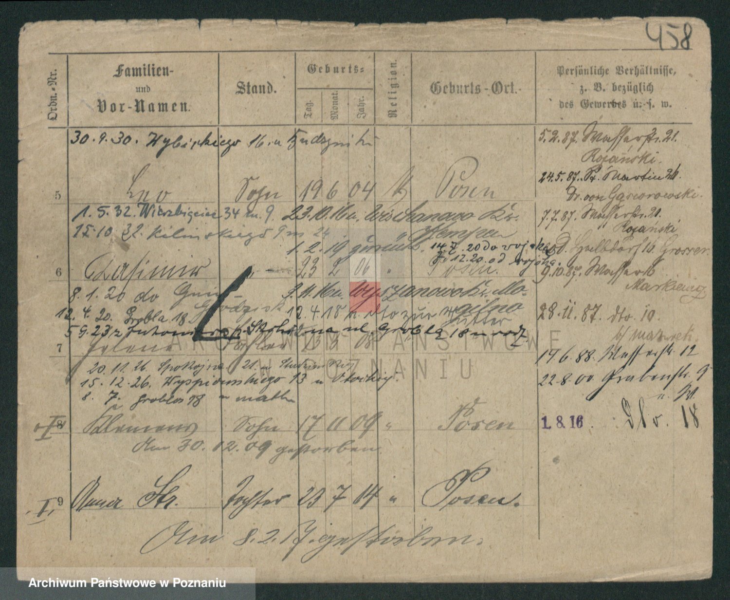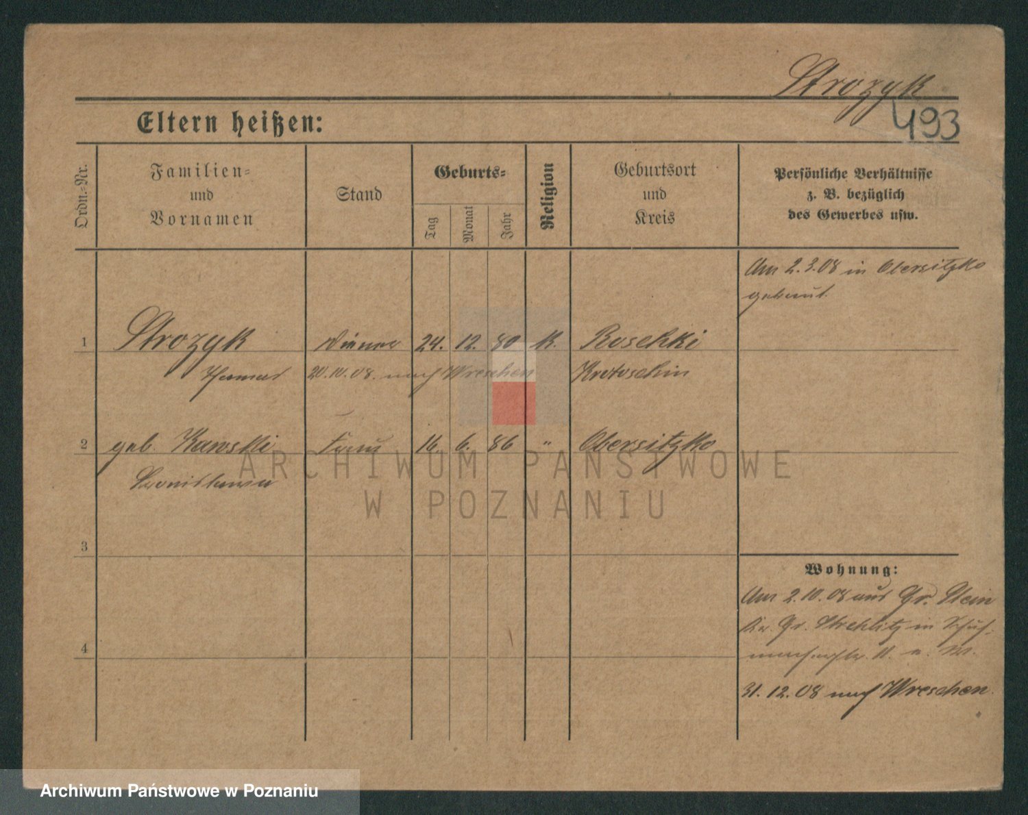 Podgląd karty osobowej dostępny jest po kliknięciu na nazwisko lub ikonkę karty. Można dokonywać powiększenia (ikony na górze) lub przechodzić między kolejnymi skanami (strzałki po bokach).