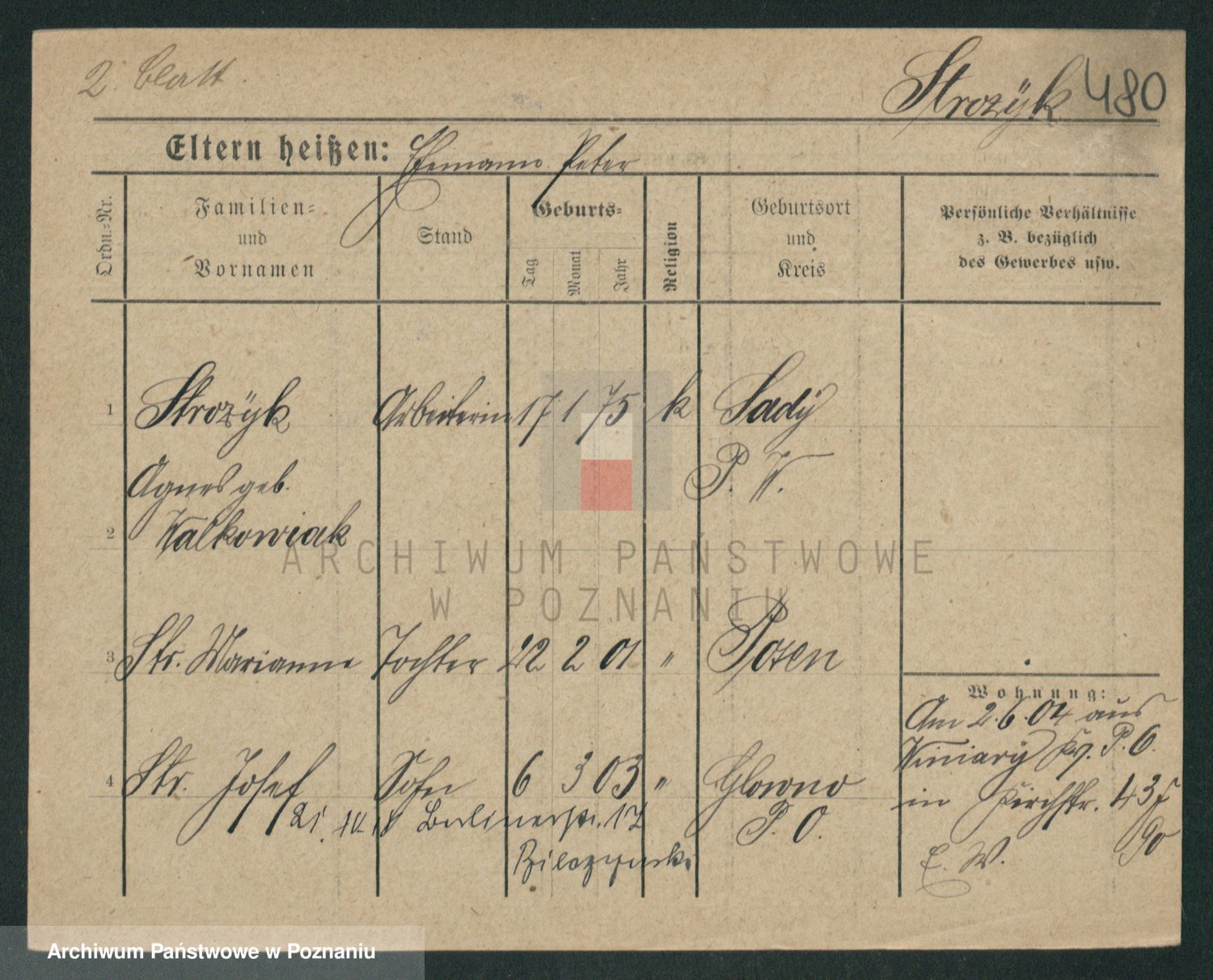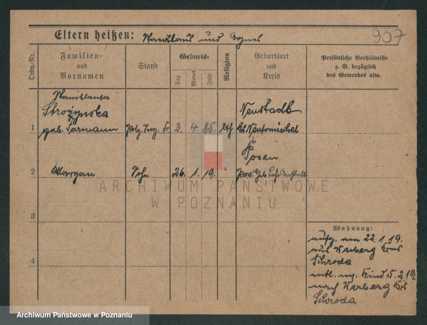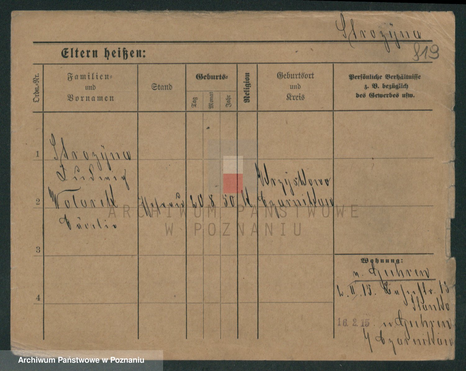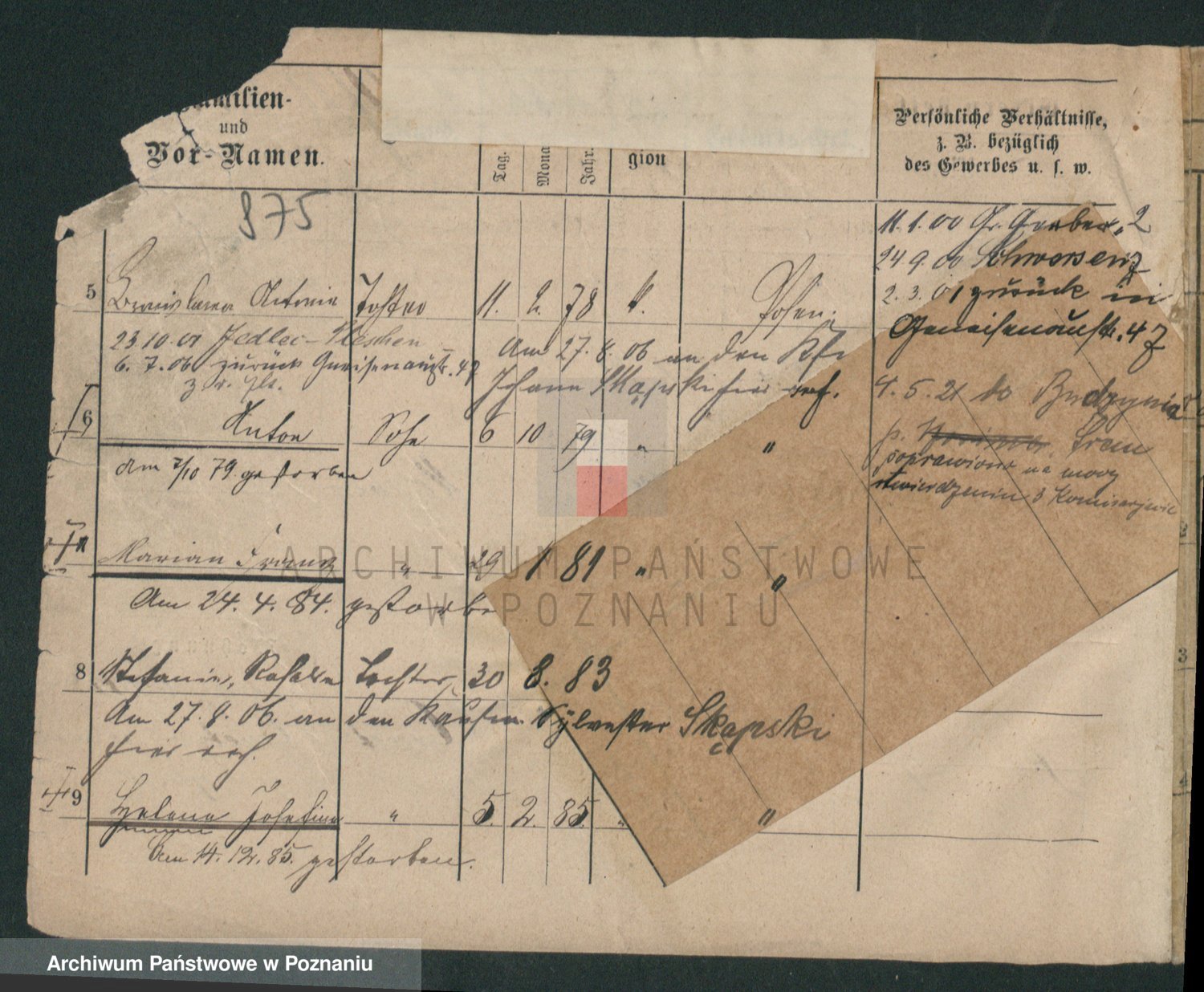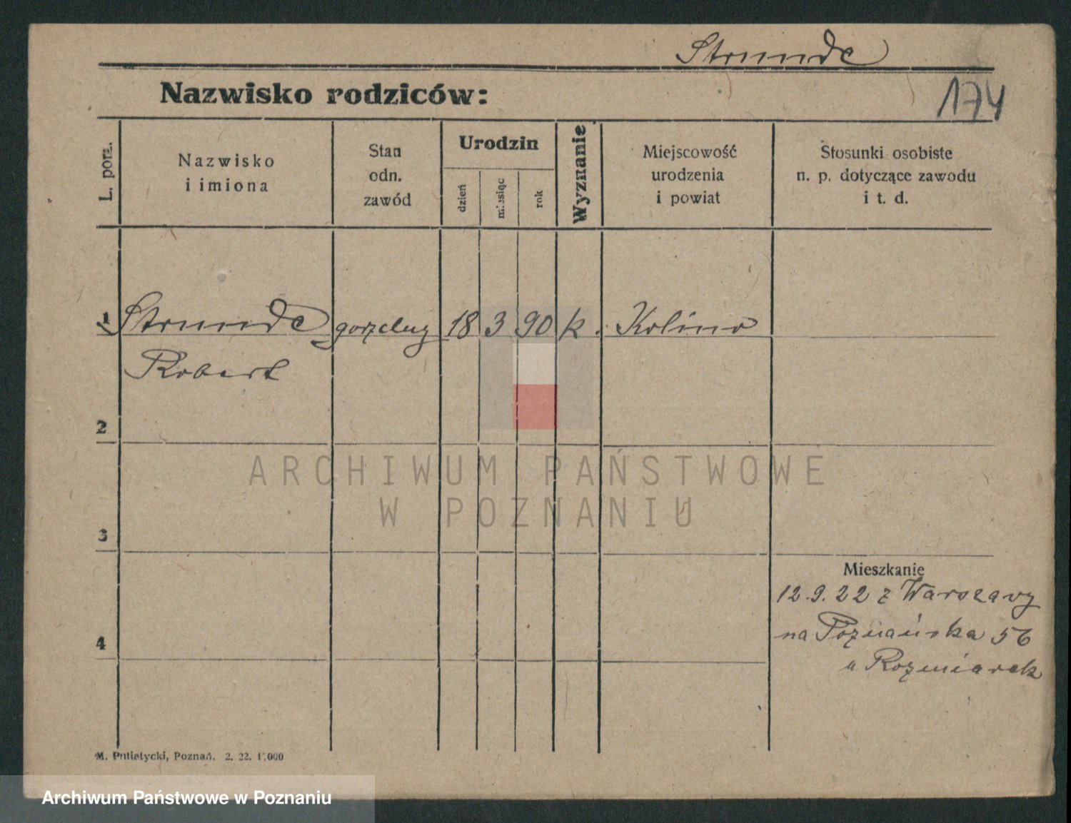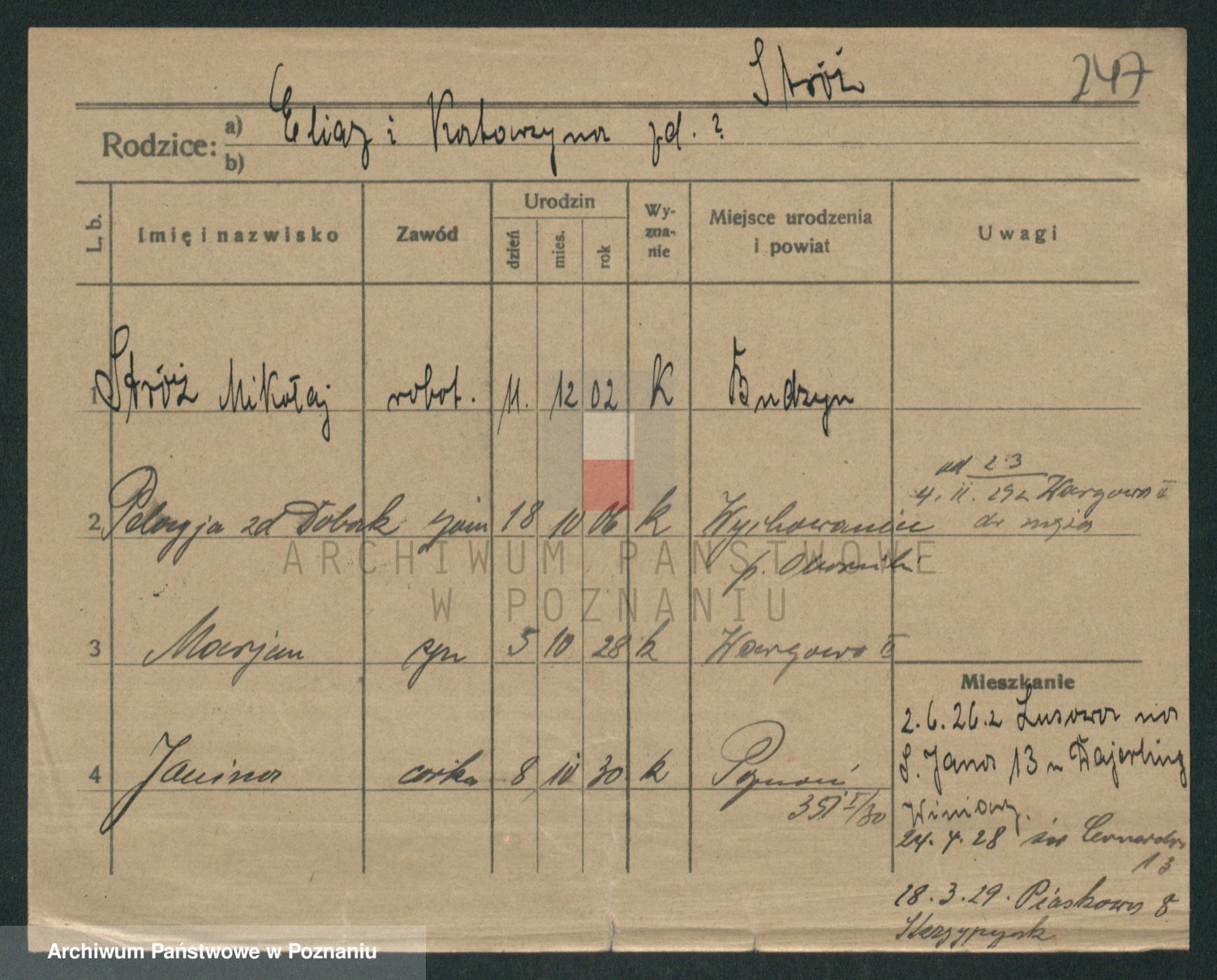 Podgląd karty osobowej dostępny jest po kliknięciu na nazwisko lub ikonkę karty. Można dokonywać powiększenia (ikony na górze) lub przechodzić między kolejnymi skanami (strzałki po bokach).
