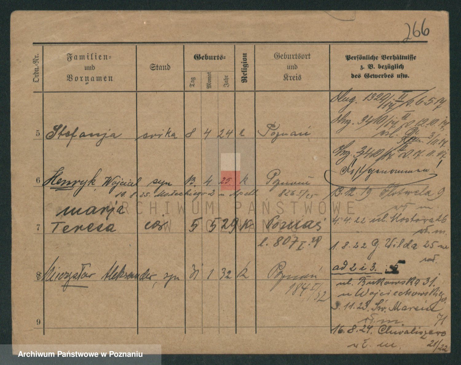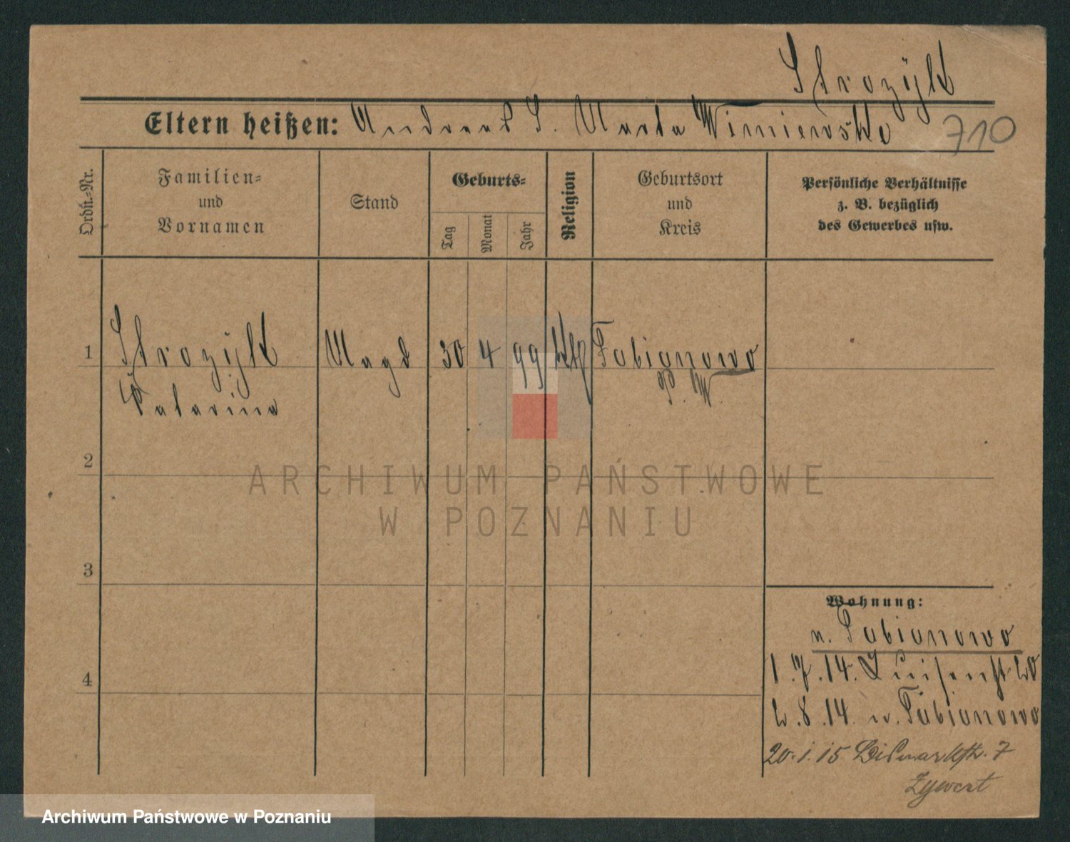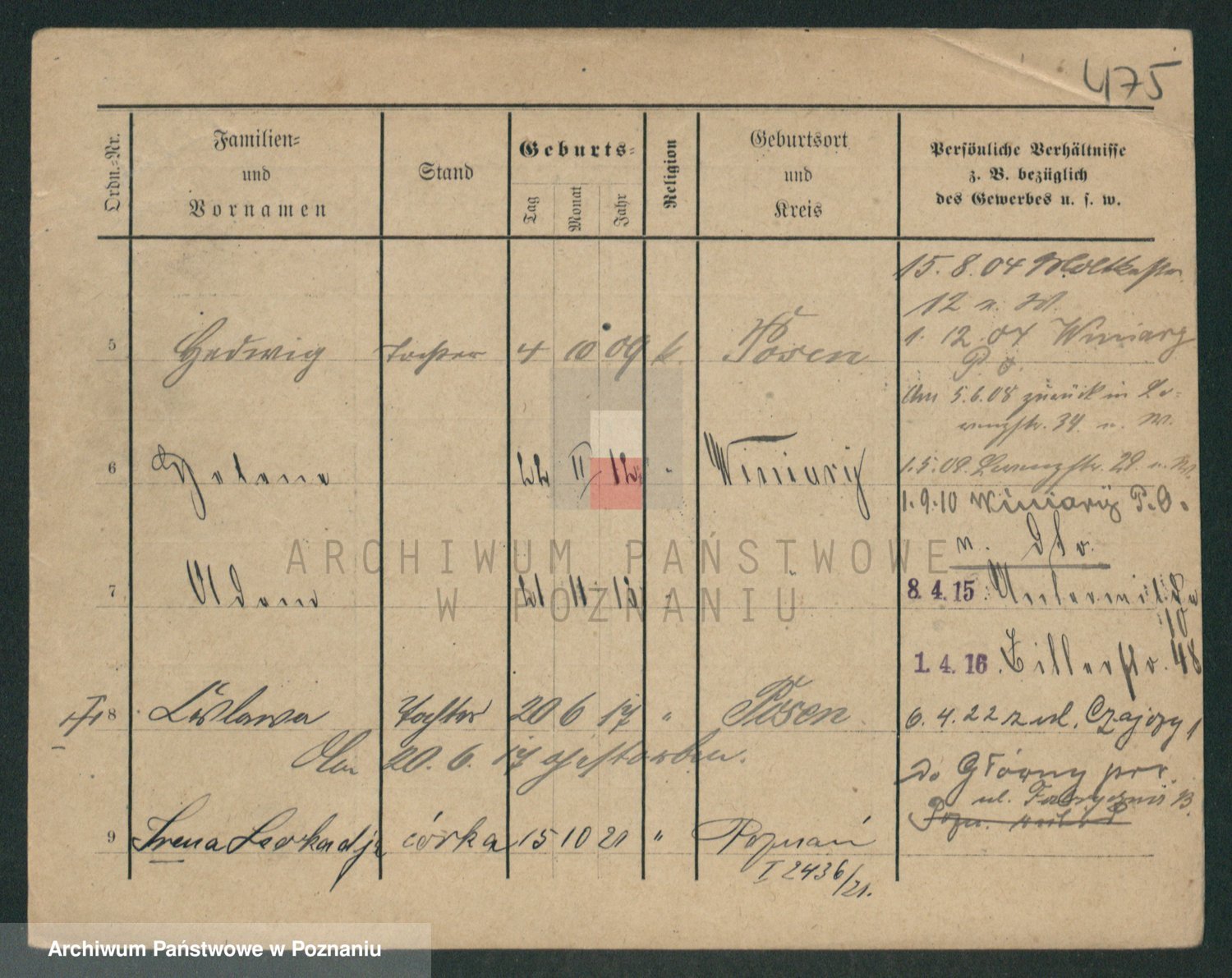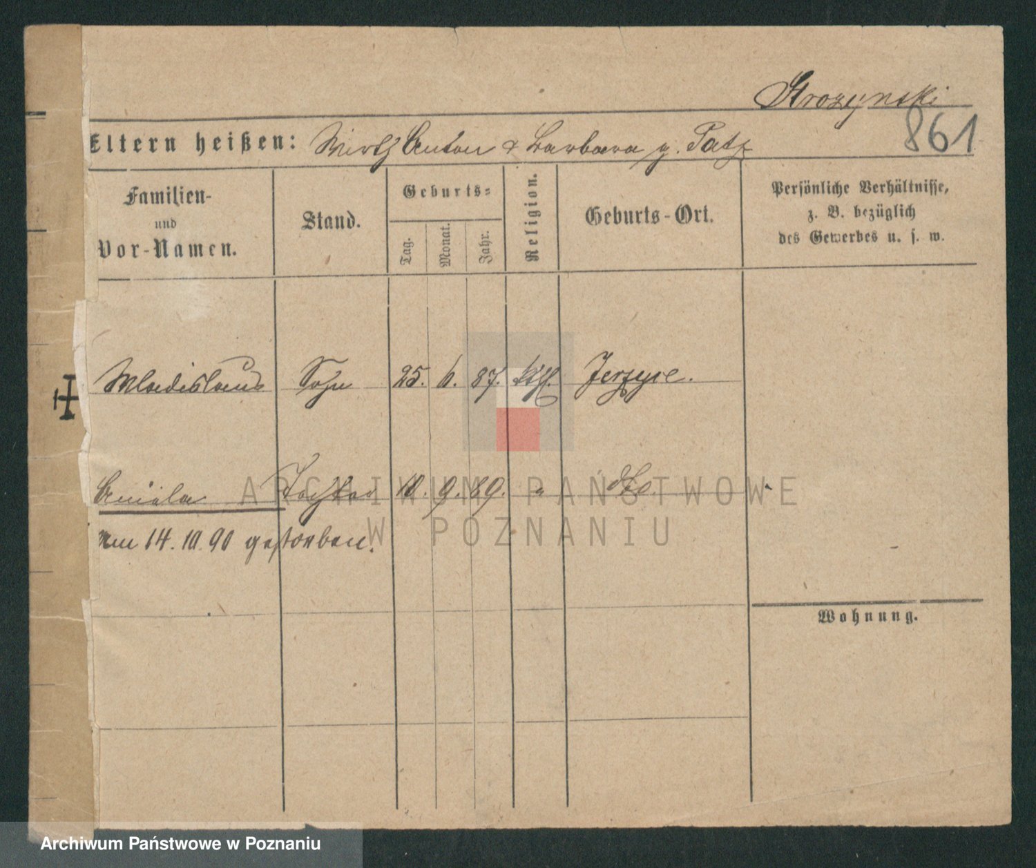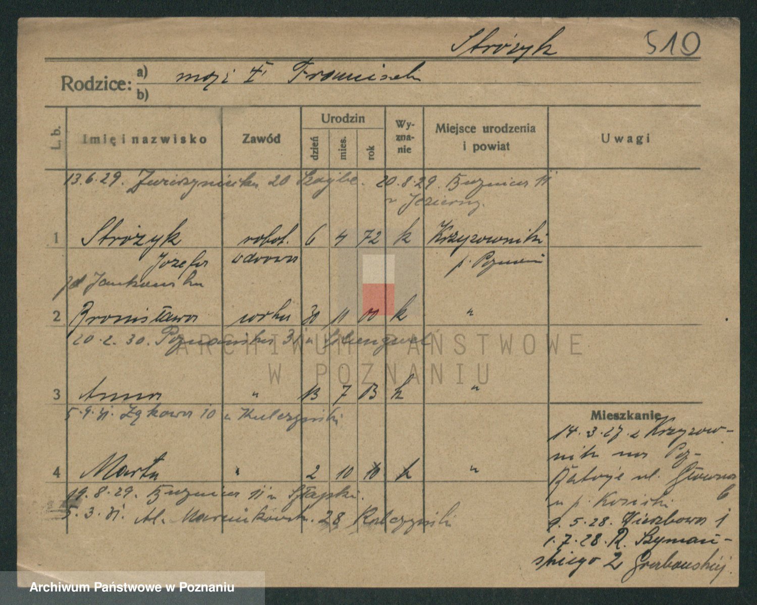 Podgląd karty osobowej dostępny jest po kliknięciu na nazwisko lub ikonkę karty. Można dokonywać powiększenia (ikony na górze) lub przechodzić między kolejnymi skanami (strzałki po bokach).