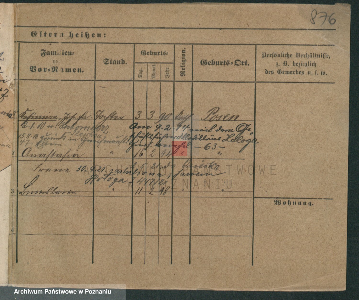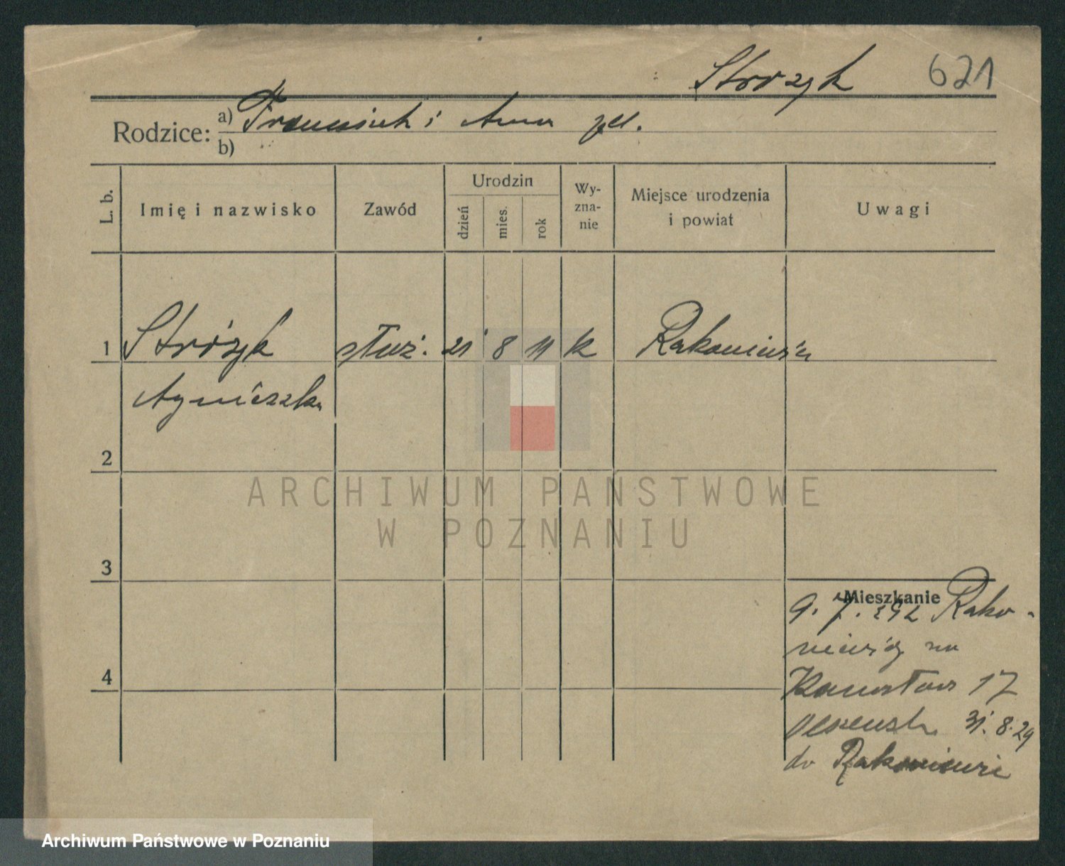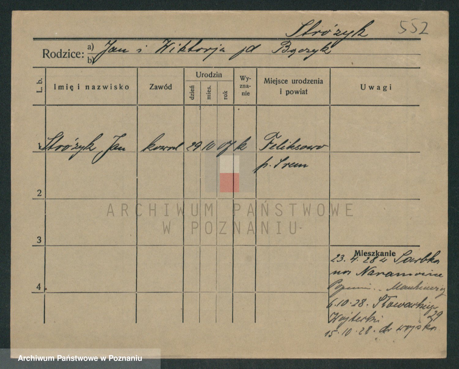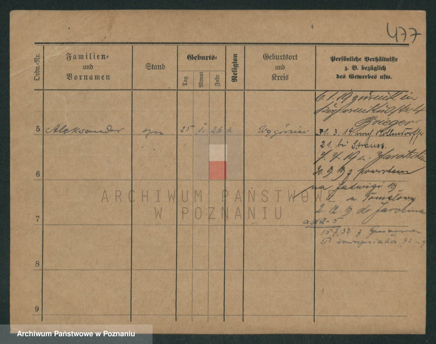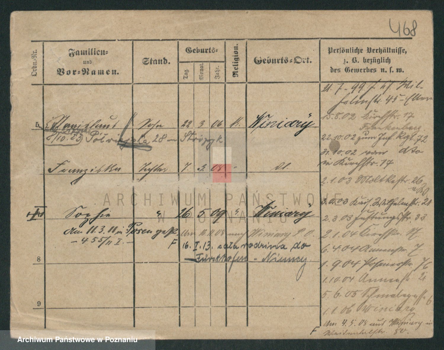 Podgląd karty osobowej dostępny jest po kliknięciu na nazwisko lub ikonkę karty. Można dokonywać powiększenia (ikony na górze) lub przechodzić między kolejnymi skanami (strzałki po bokach).