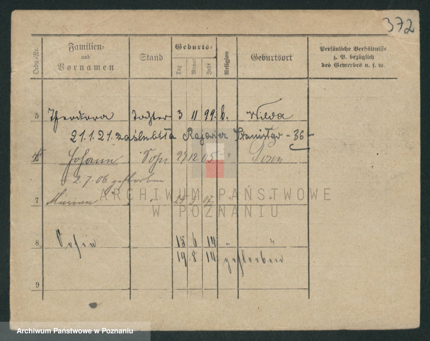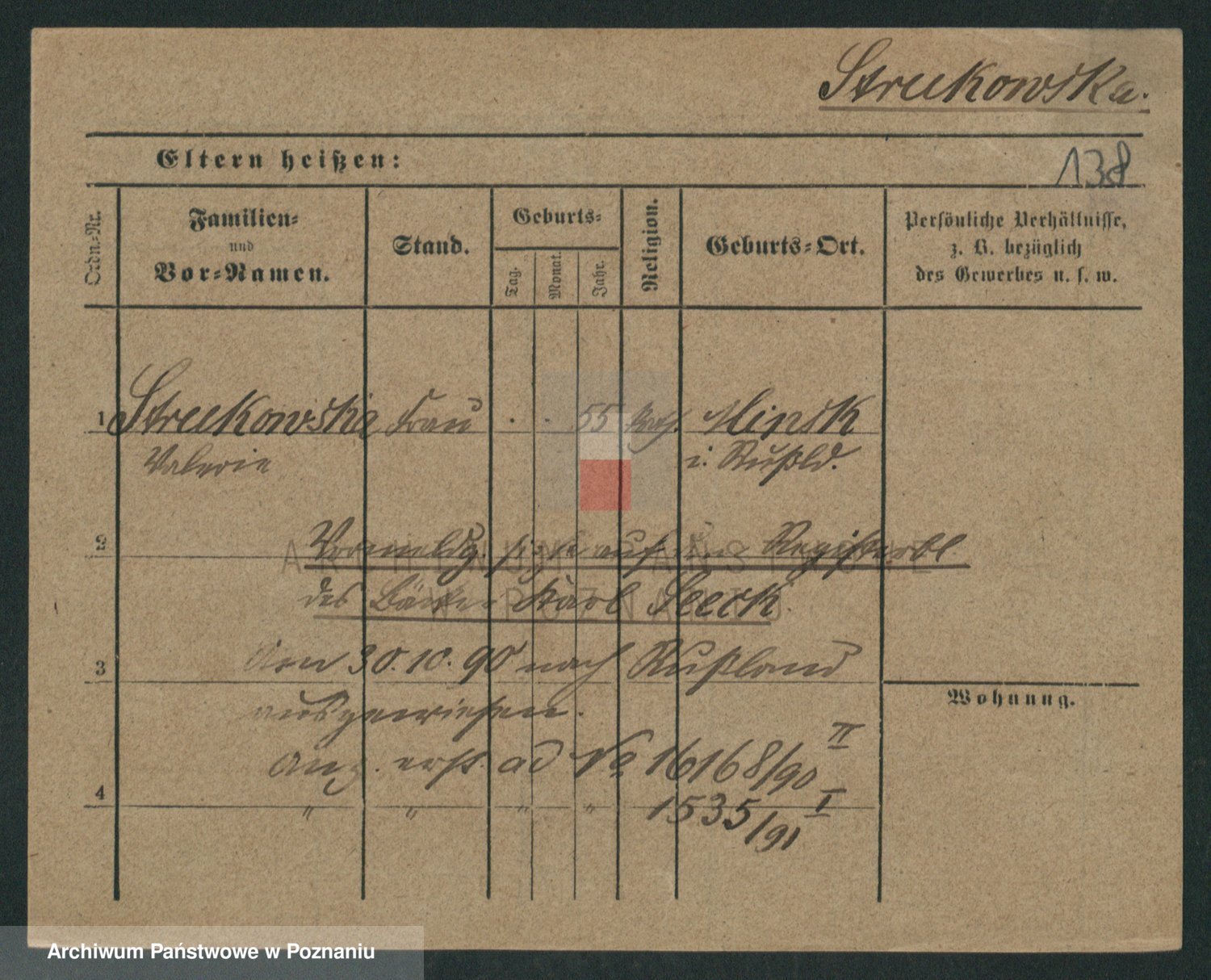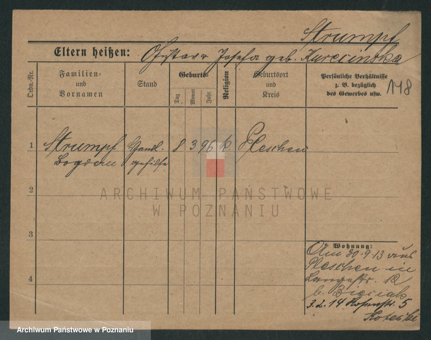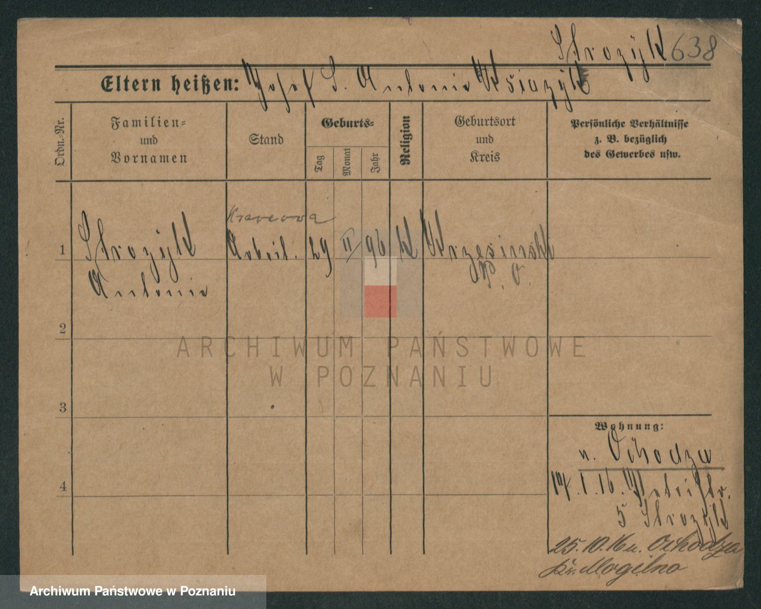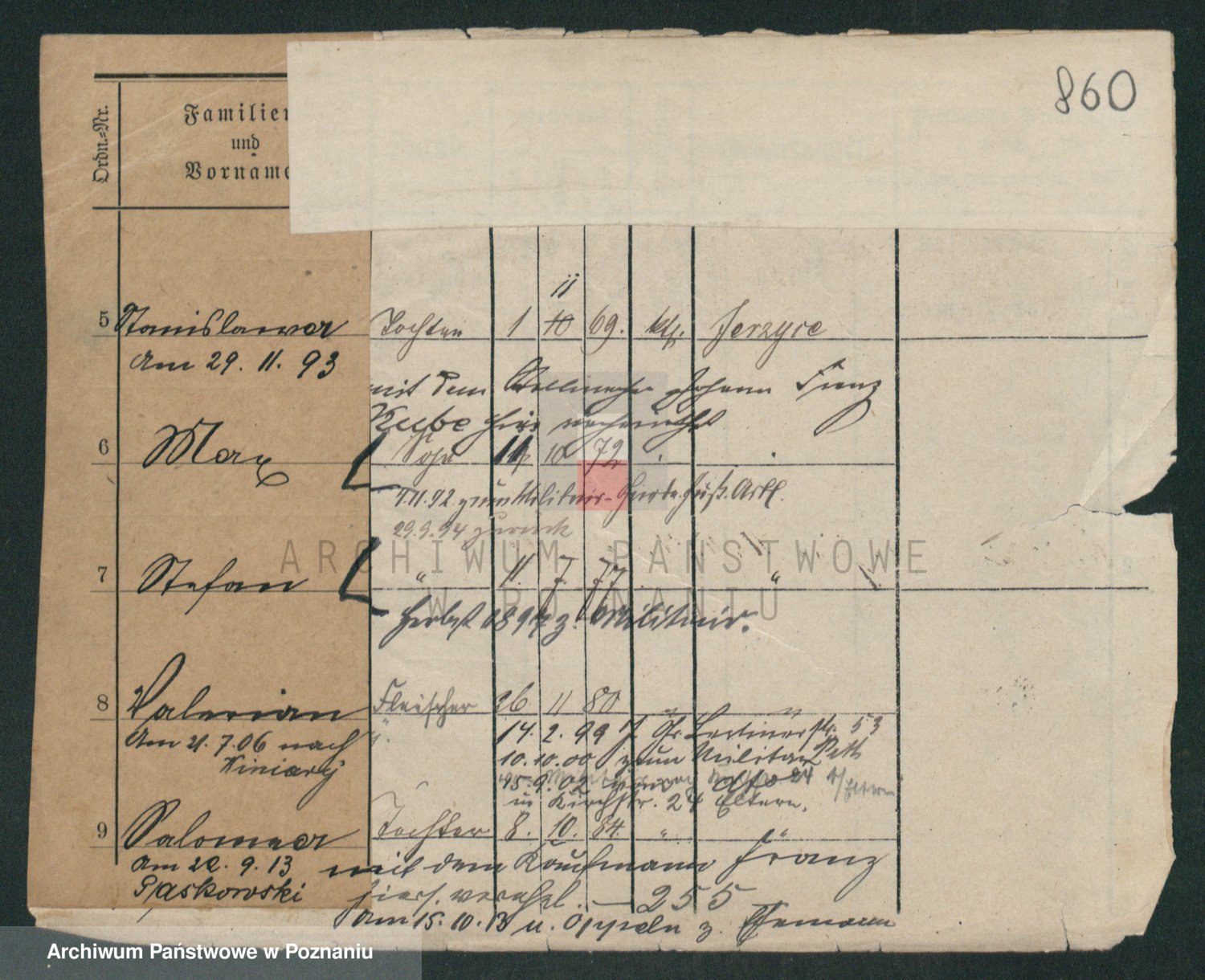 Podgląd karty osobowej dostępny jest po kliknięciu na nazwisko lub ikonkę karty. Można dokonywać powiększenia (ikony na górze) lub przechodzić między kolejnymi skanami (strzałki po bokach).