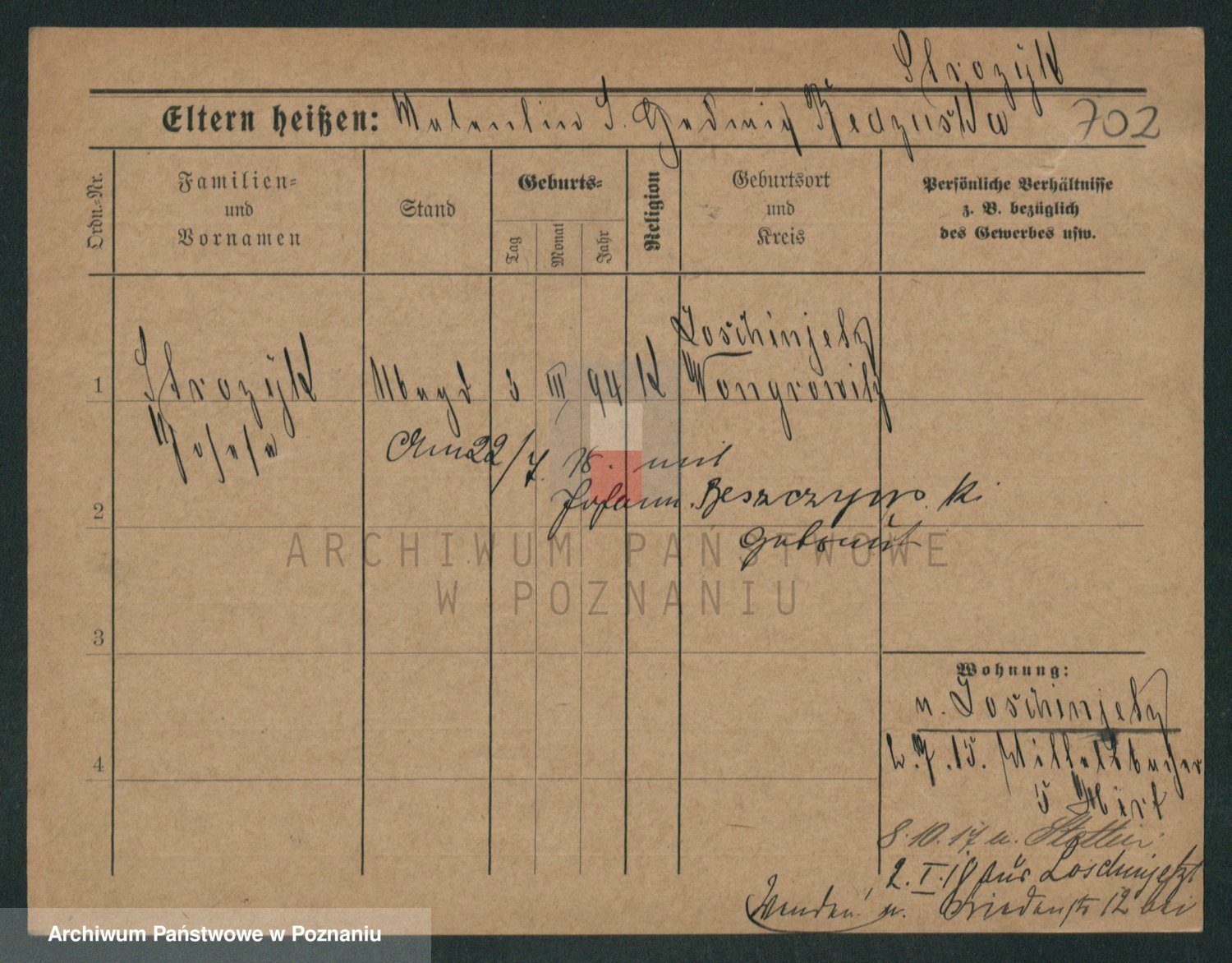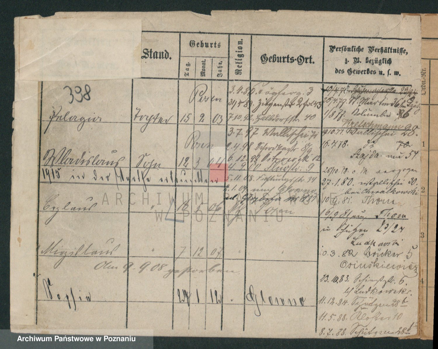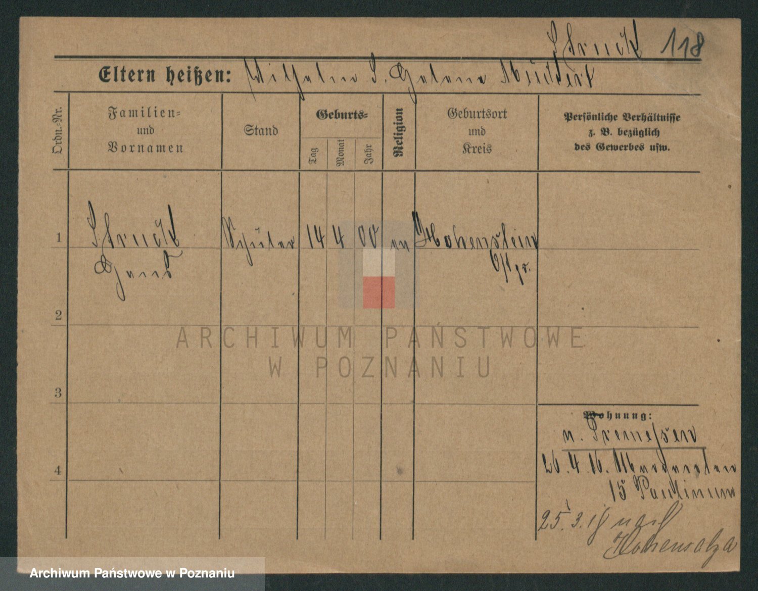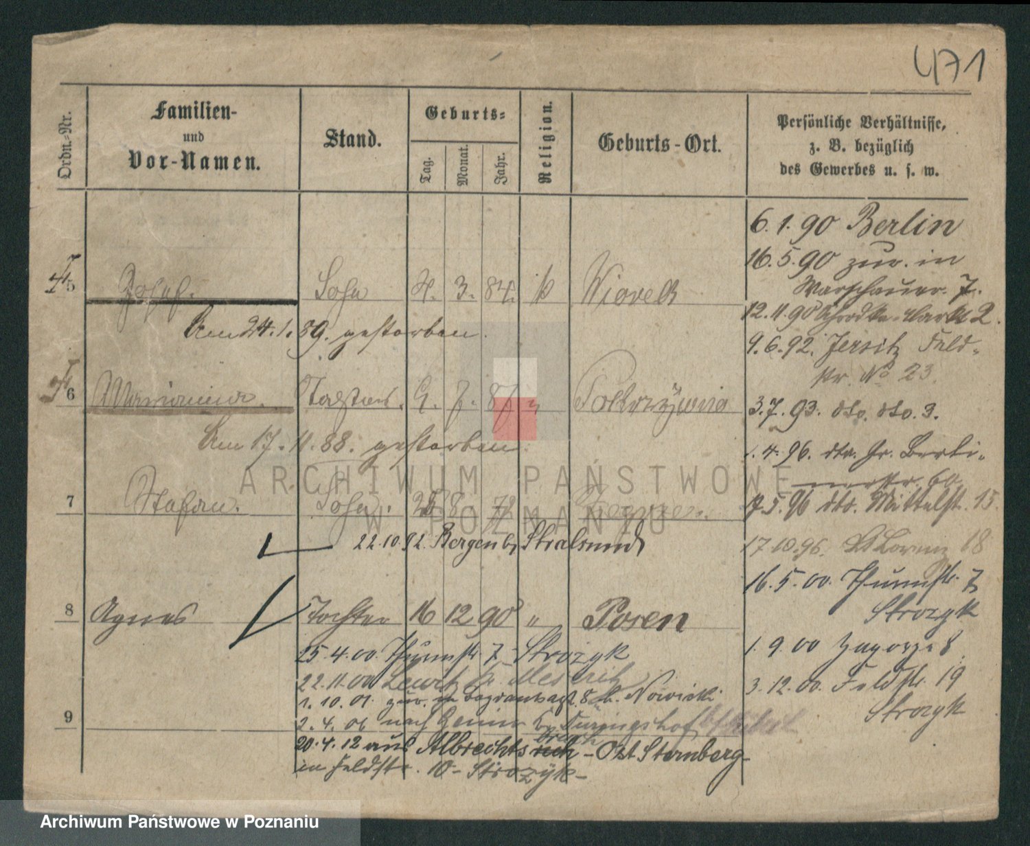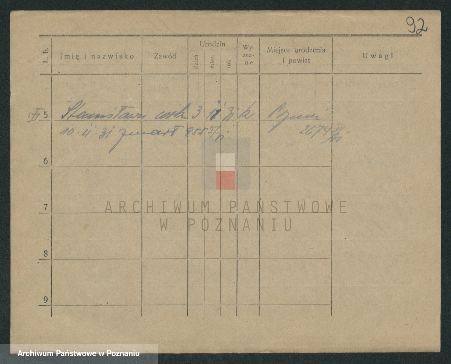 Podgląd karty osobowej dostępny jest po kliknięciu na nazwisko lub ikonkę karty. Można dokonywać powiększenia (ikony na górze) lub przechodzić między kolejnymi skanami (strzałki po bokach).