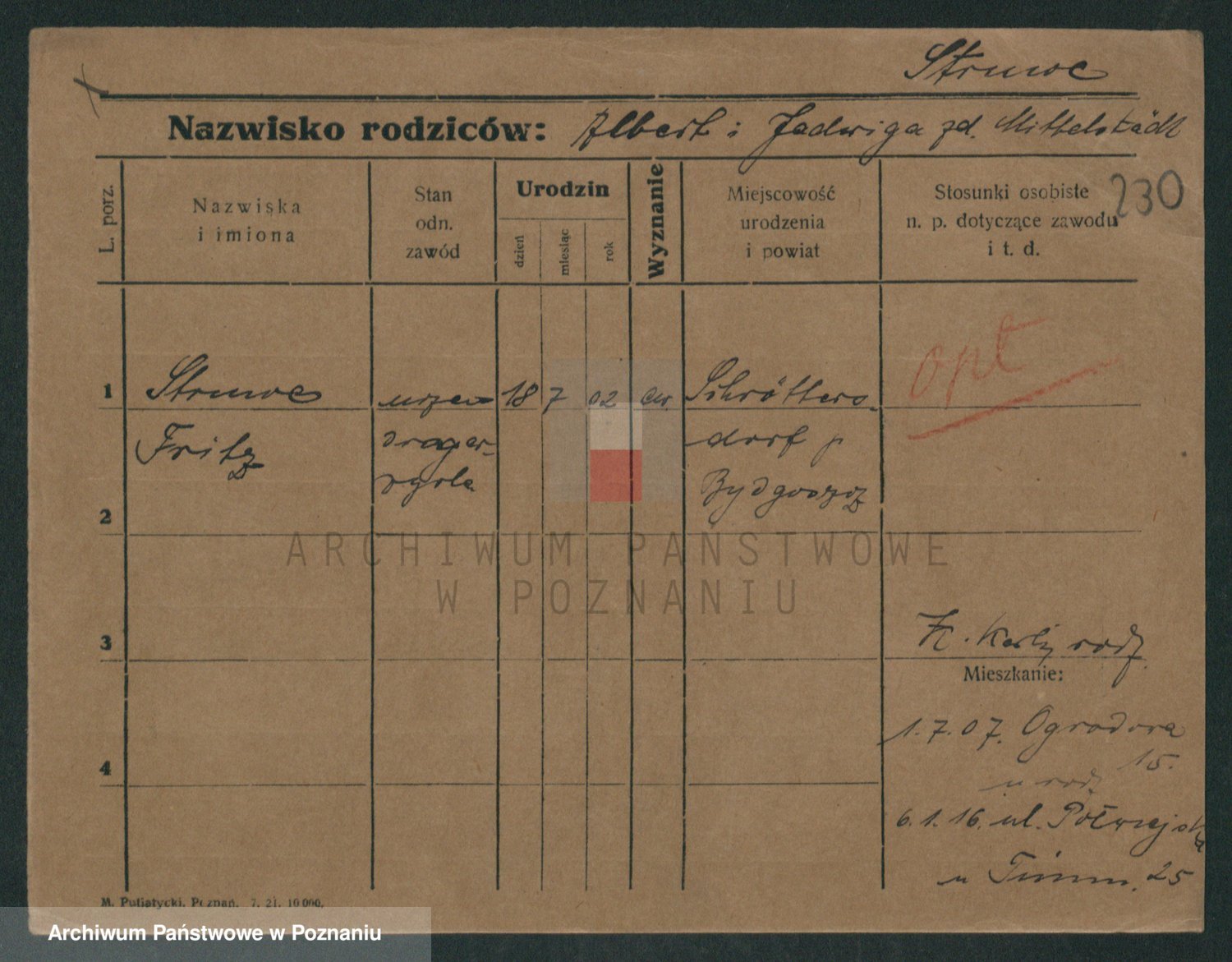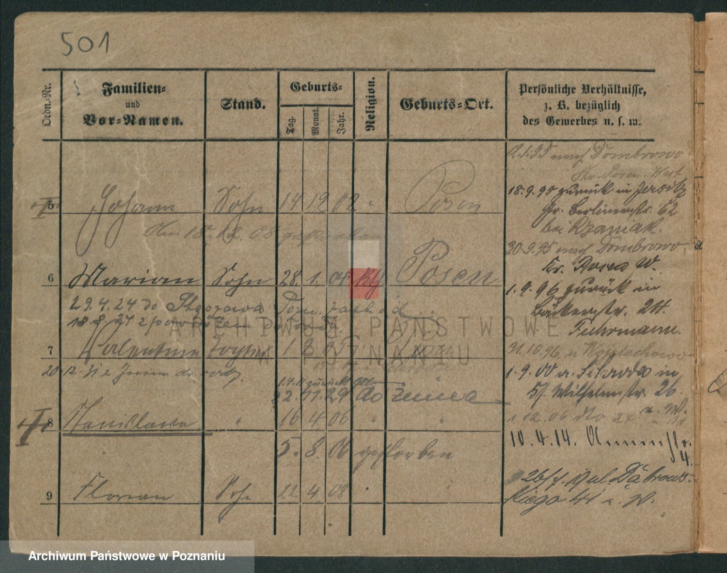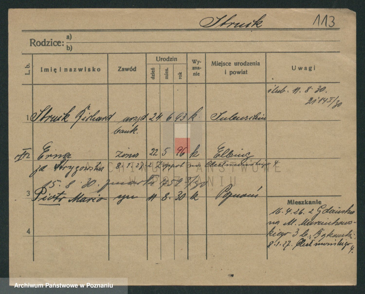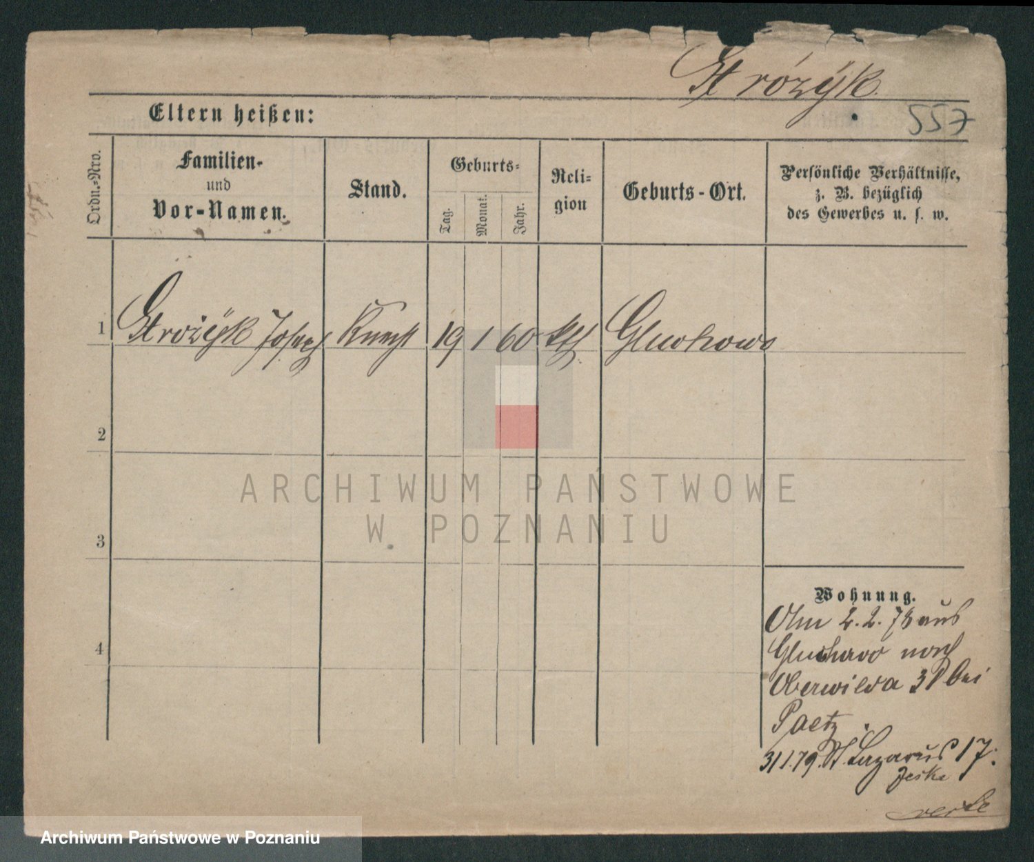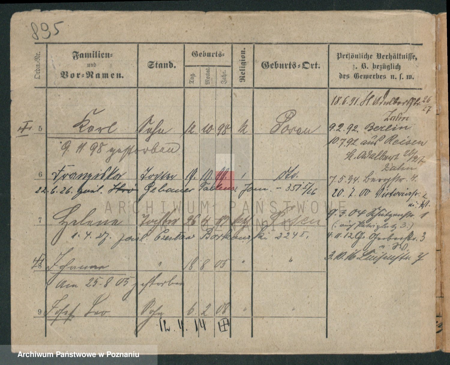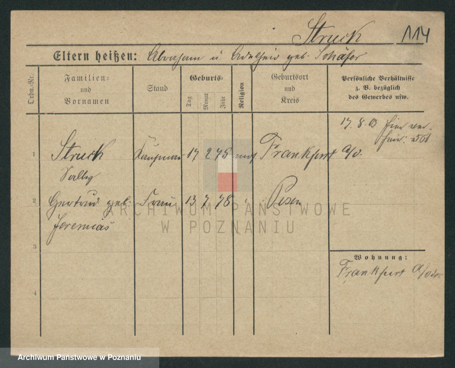 Podgląd karty osobowej dostępny jest po kliknięciu na nazwisko lub ikonkę karty. Można dokonywać powiększenia (ikony na górze) lub przechodzić między kolejnymi skanami (strzałki po bokach).