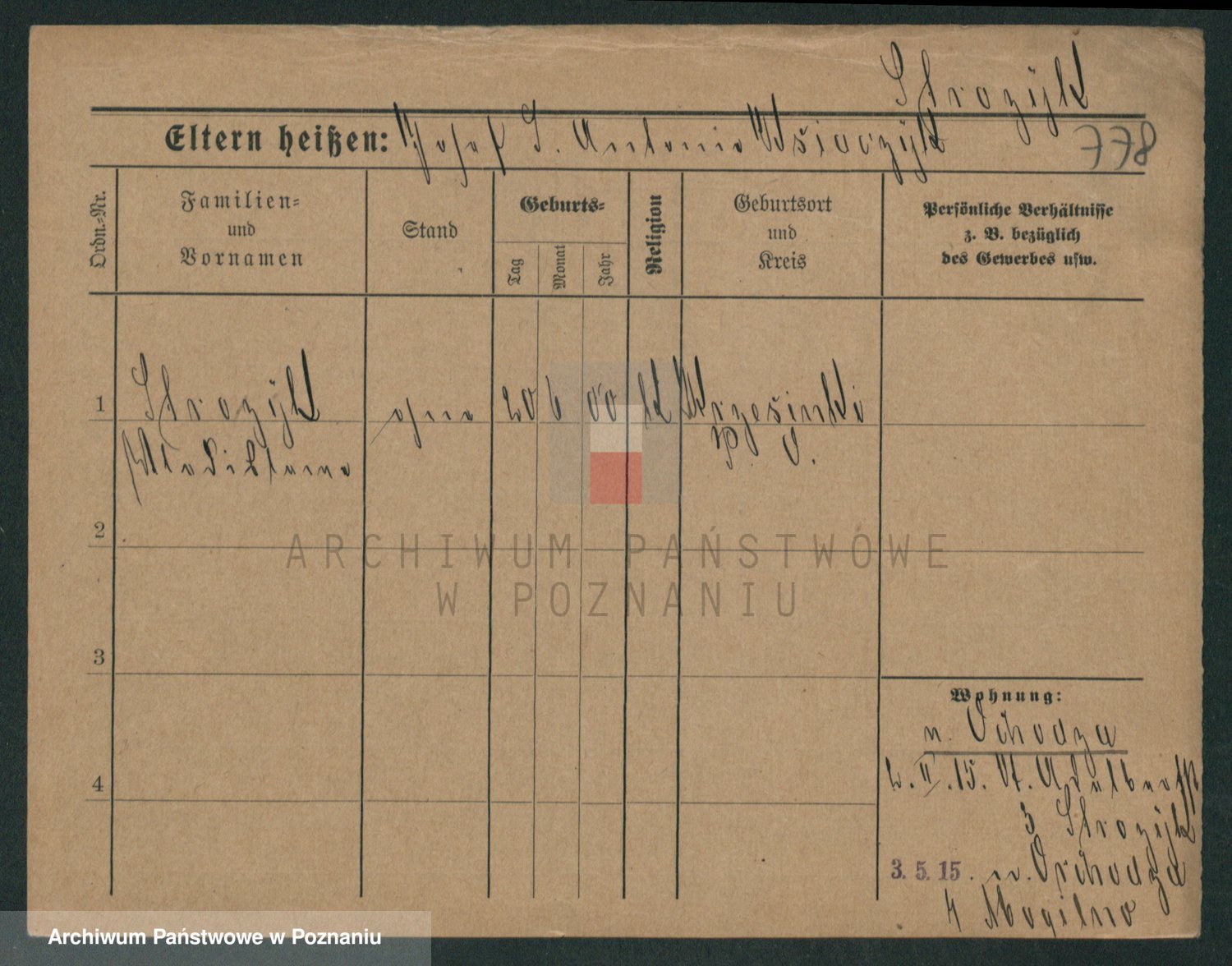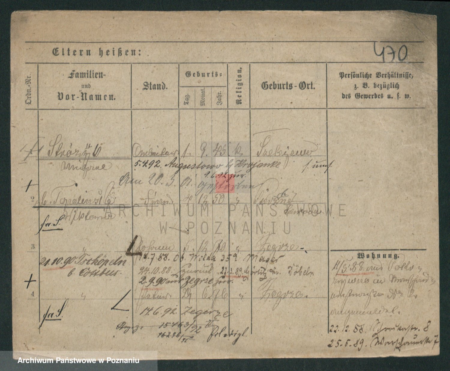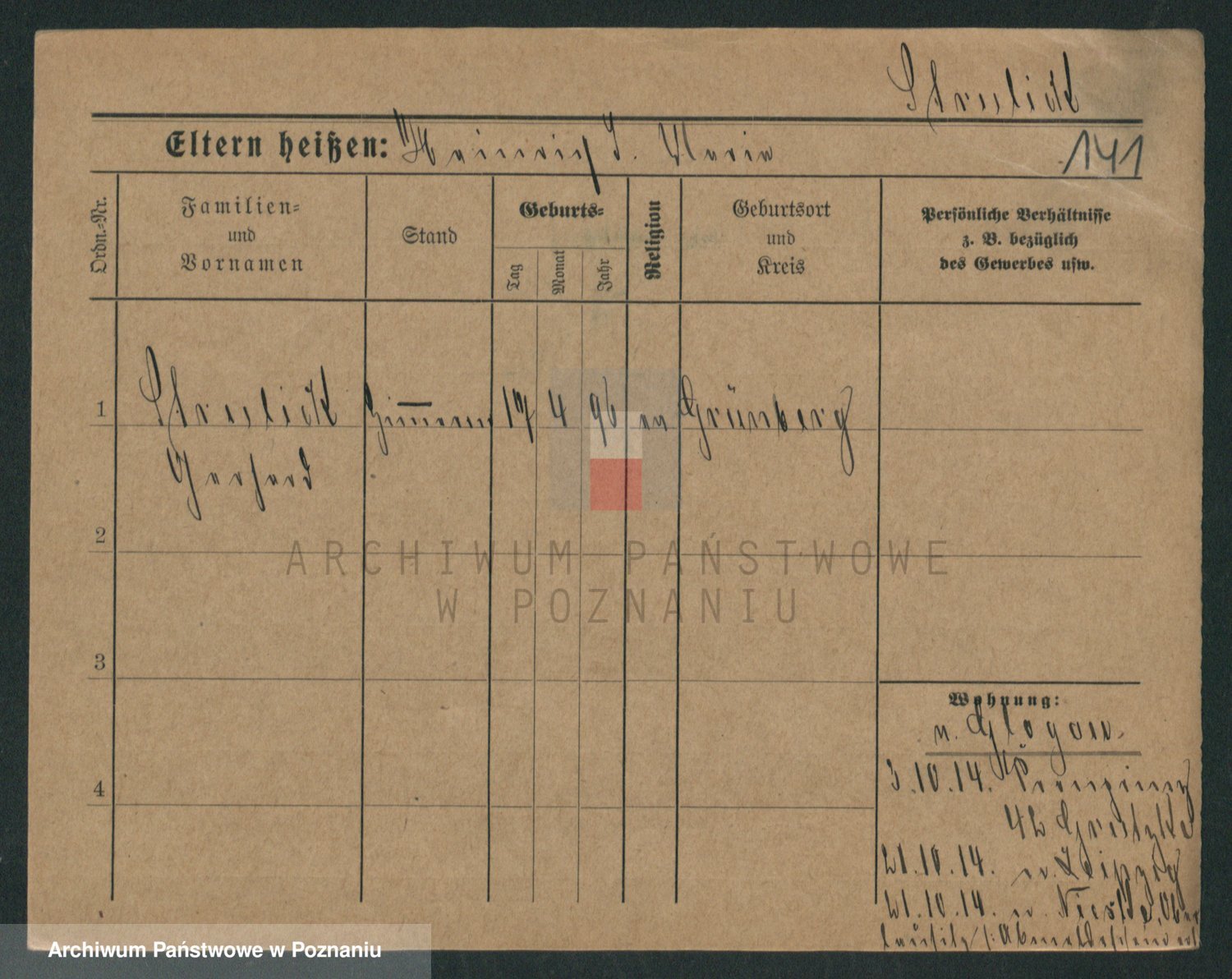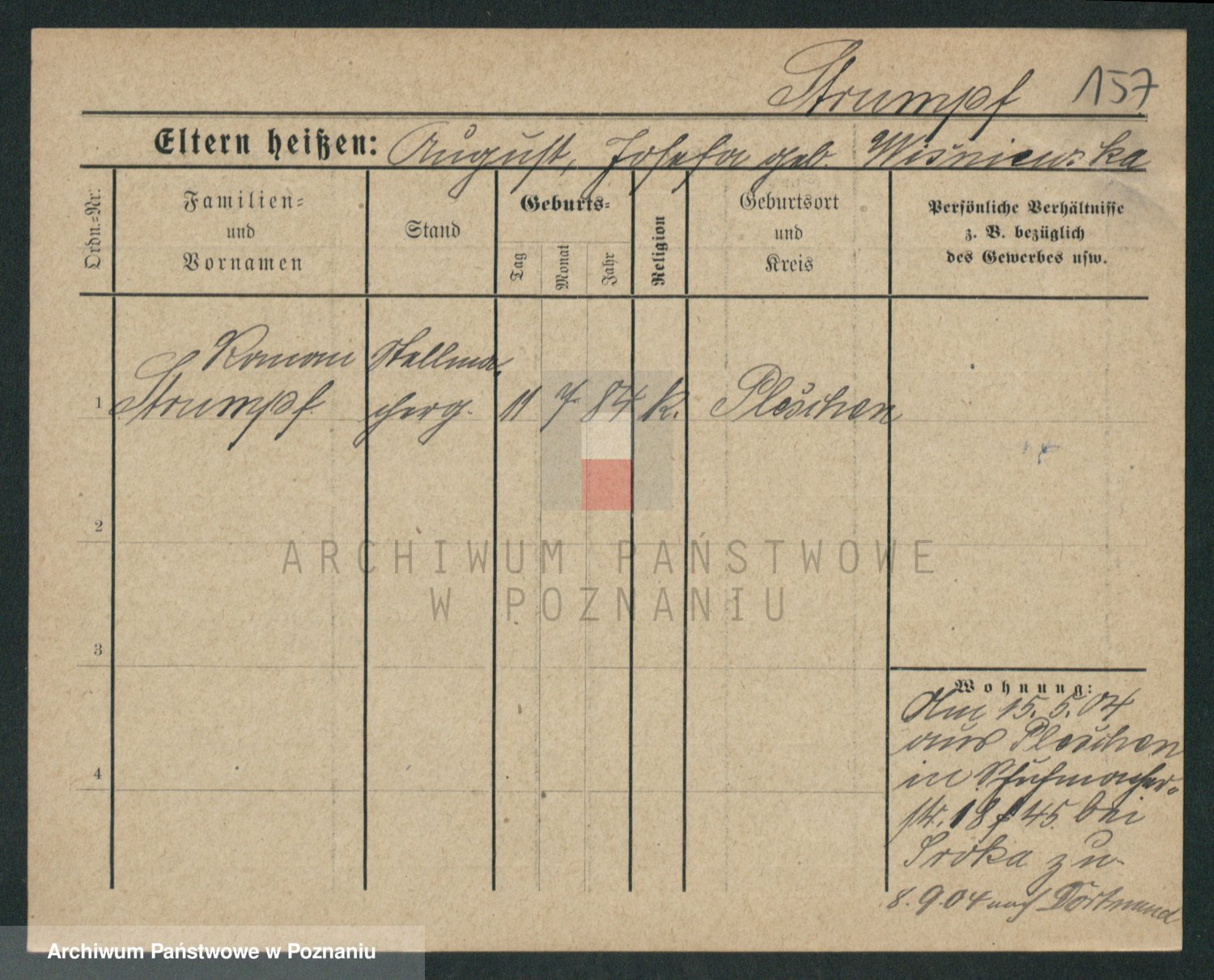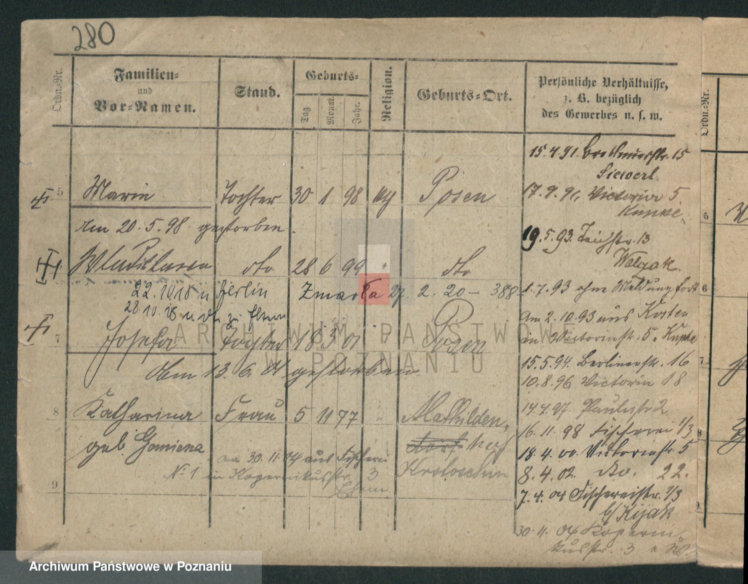 Podgląd karty osobowej dostępny jest po kliknięciu na nazwisko lub ikonkę karty. Można dokonywać powiększenia (ikony na górze) lub przechodzić między kolejnymi skanami (strzałki po bokach).