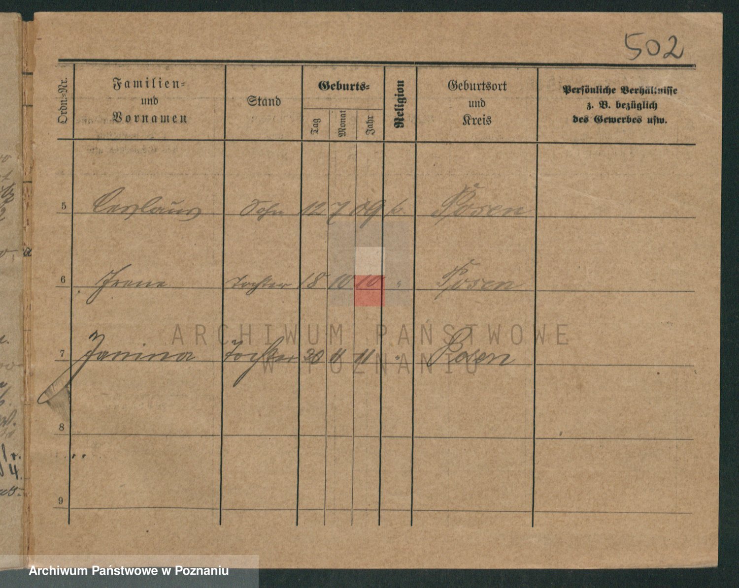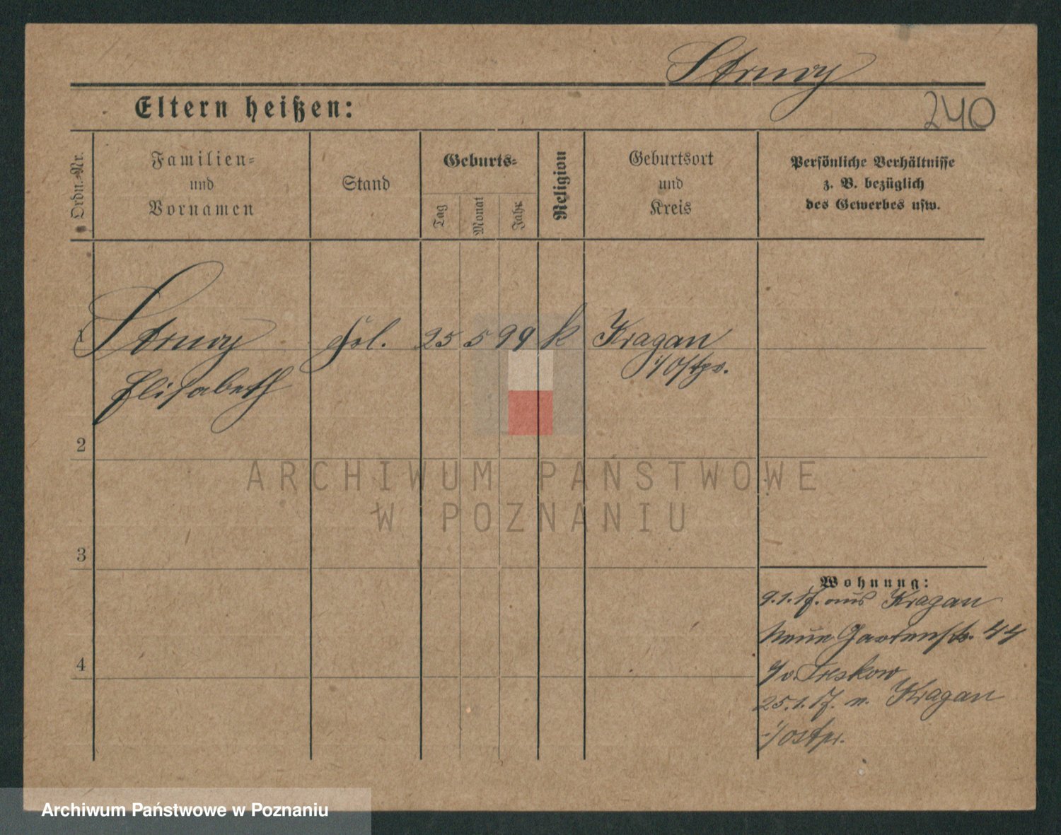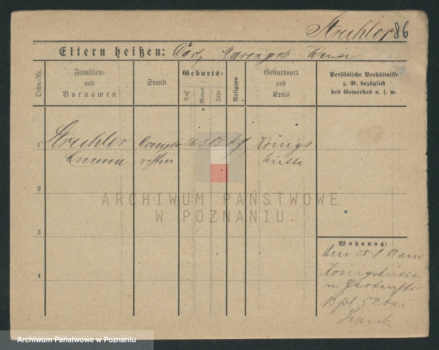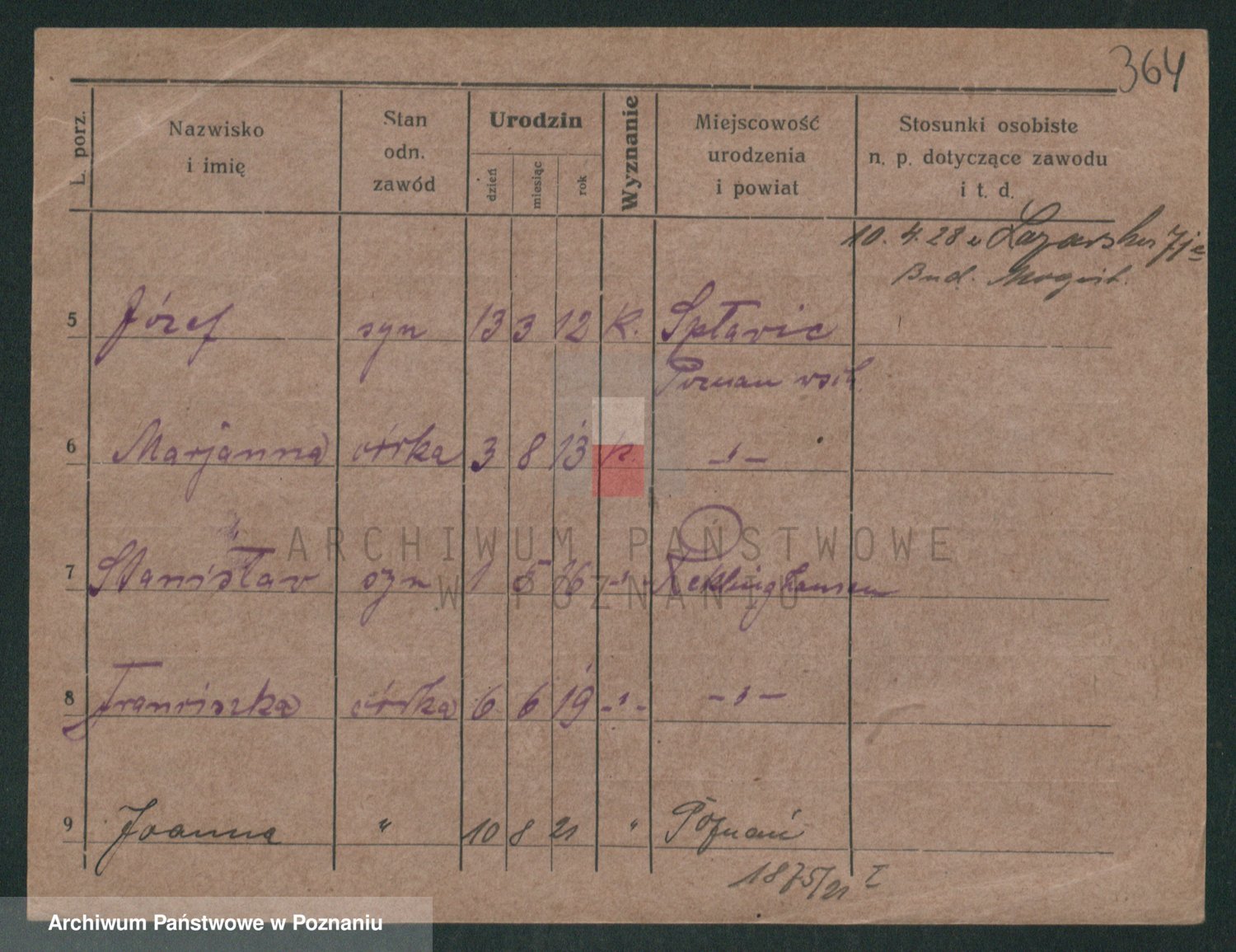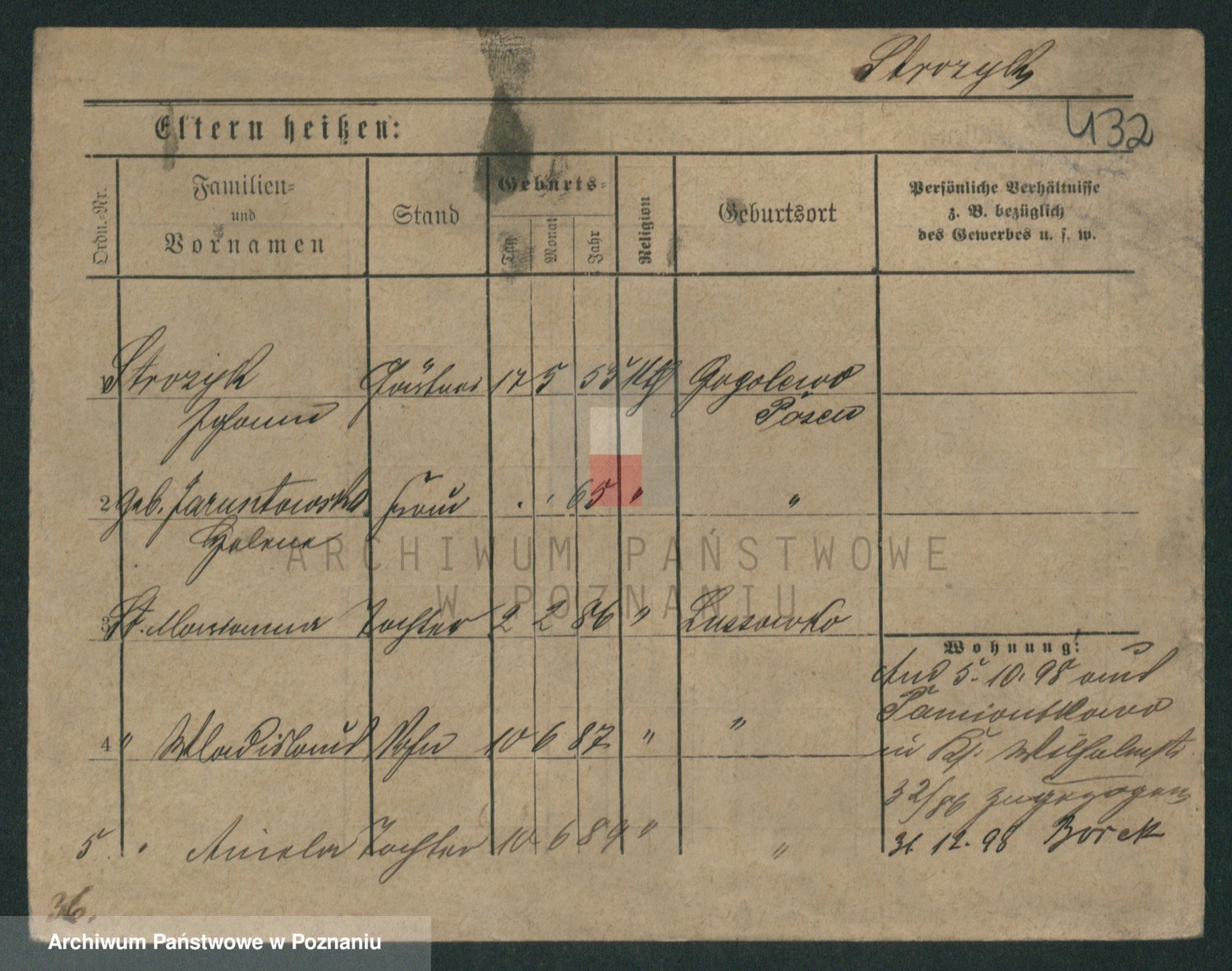 Podgląd karty osobowej dostępny jest po kliknięciu na nazwisko lub ikonkę karty. Można dokonywać powiększenia (ikony na górze) lub przechodzić między kolejnymi skanami (strzałki po bokach).