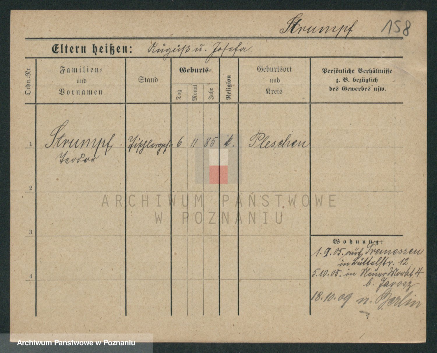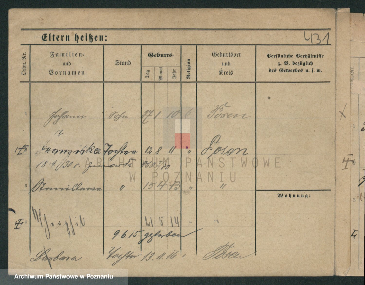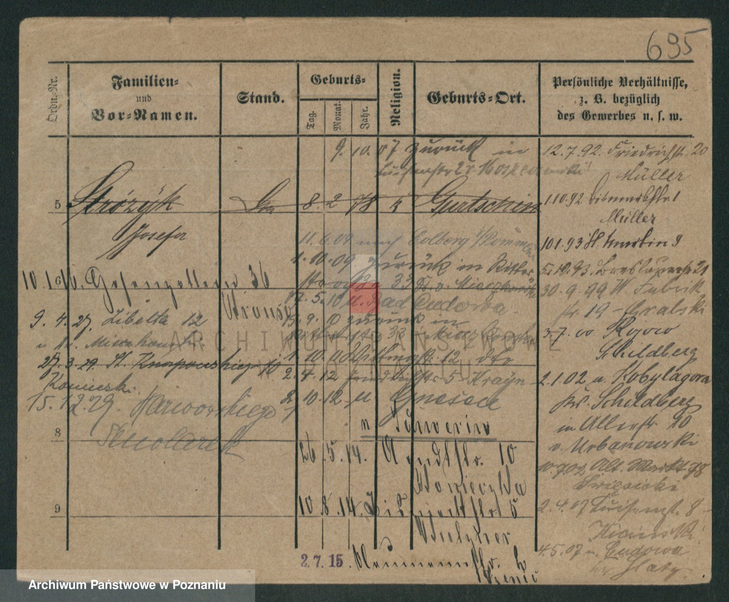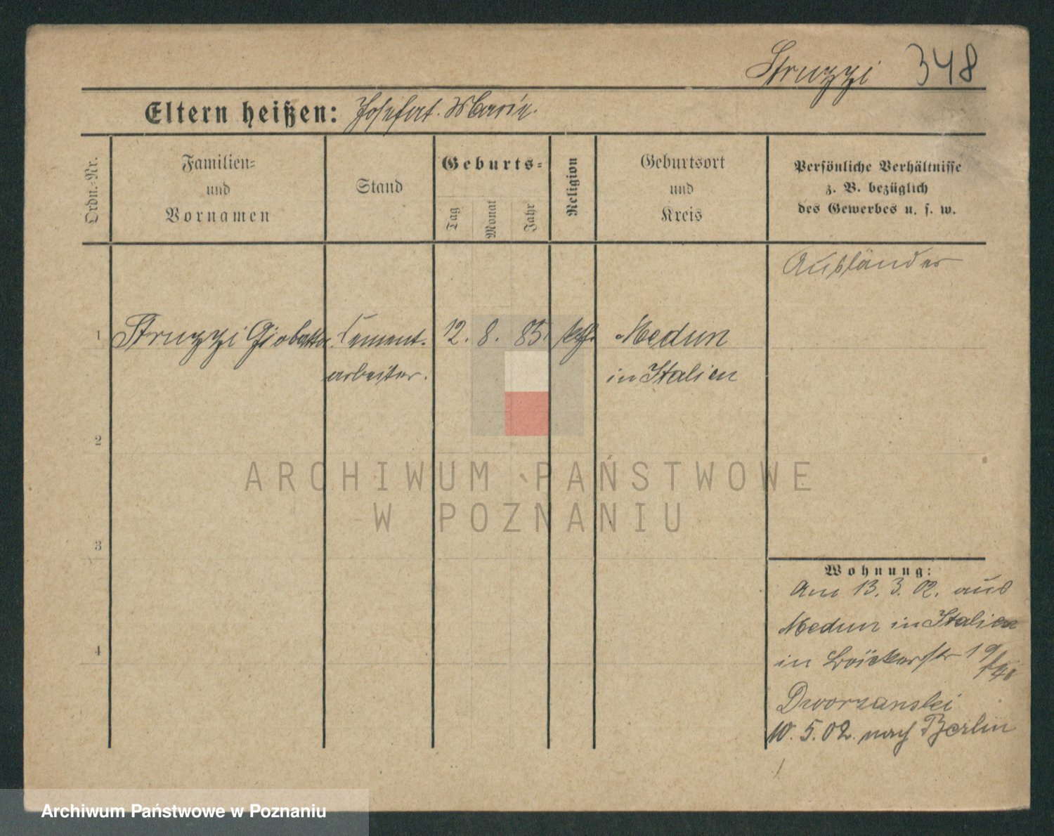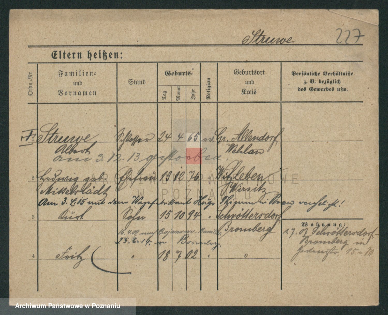 Podgląd karty osobowej dostępny jest po kliknięciu na nazwisko lub ikonkę karty. Można dokonywać powiększenia (ikony na górze) lub przechodzić między kolejnymi skanami (strzałki po bokach).