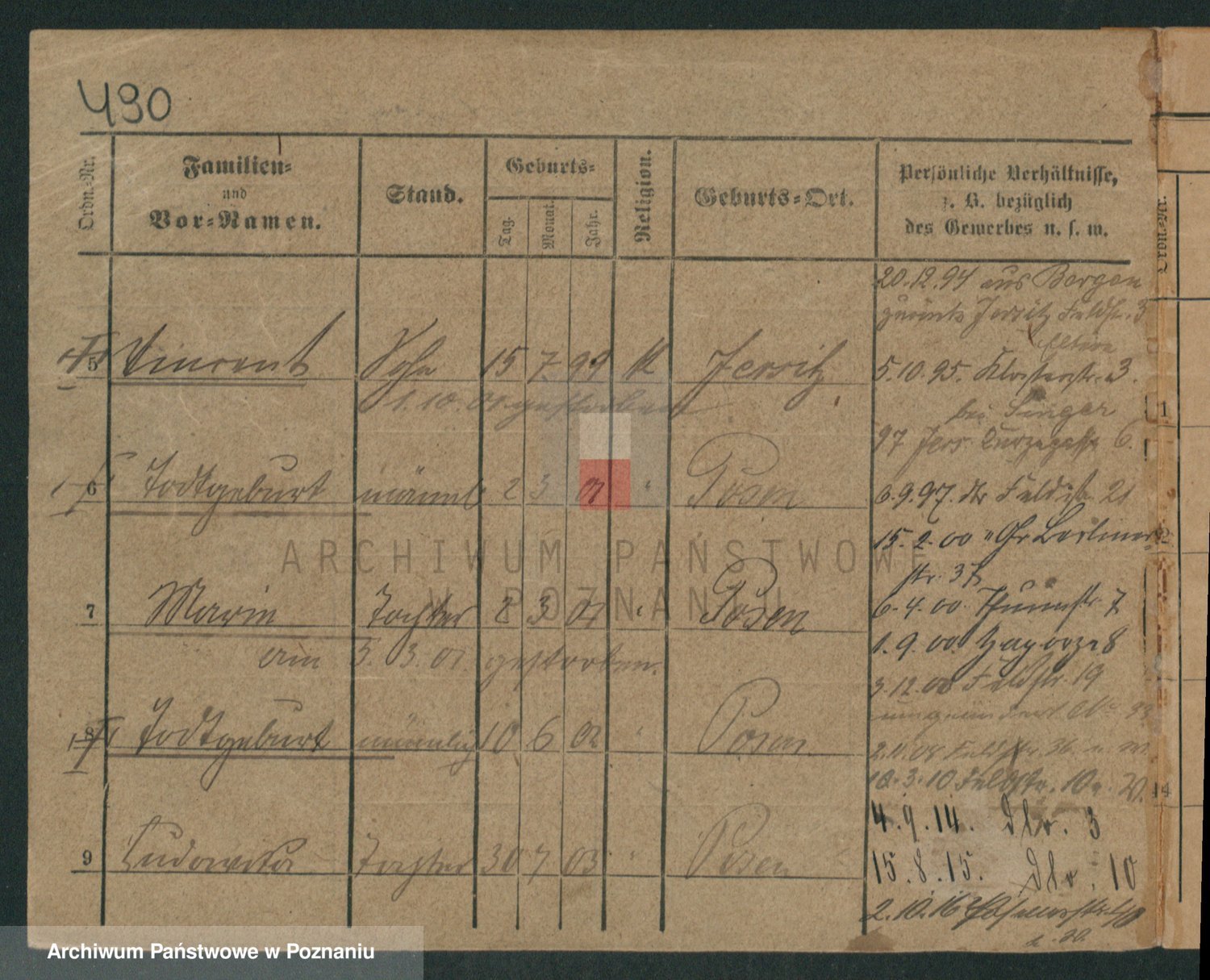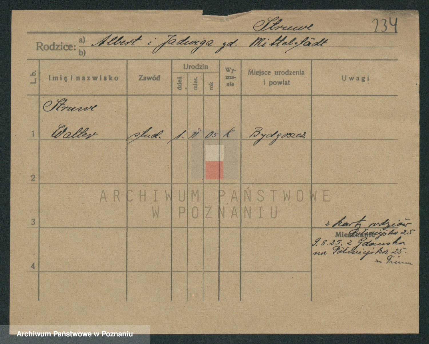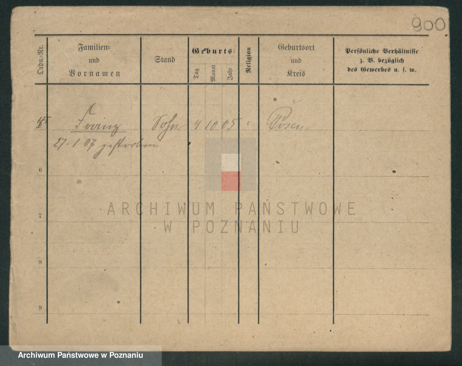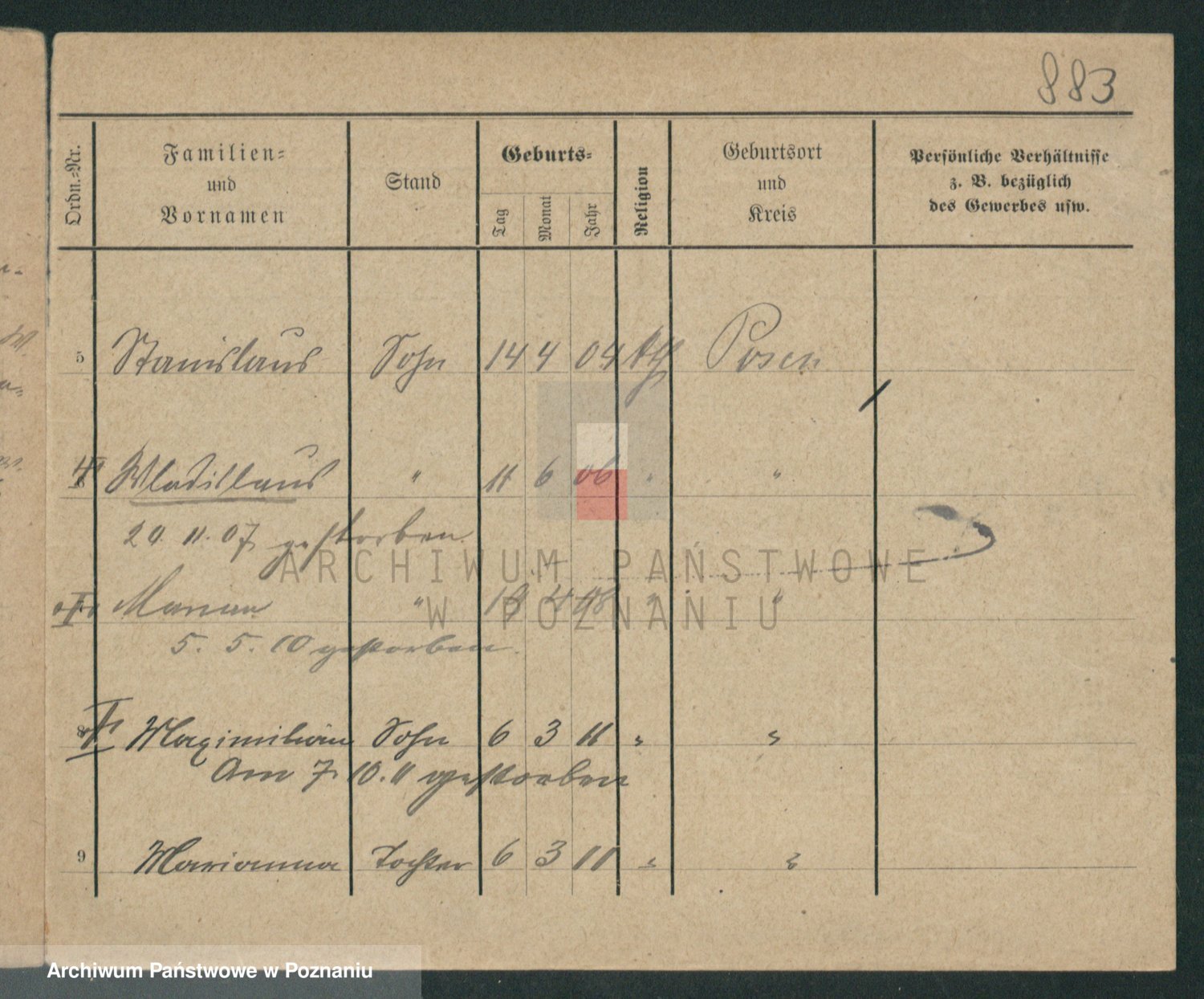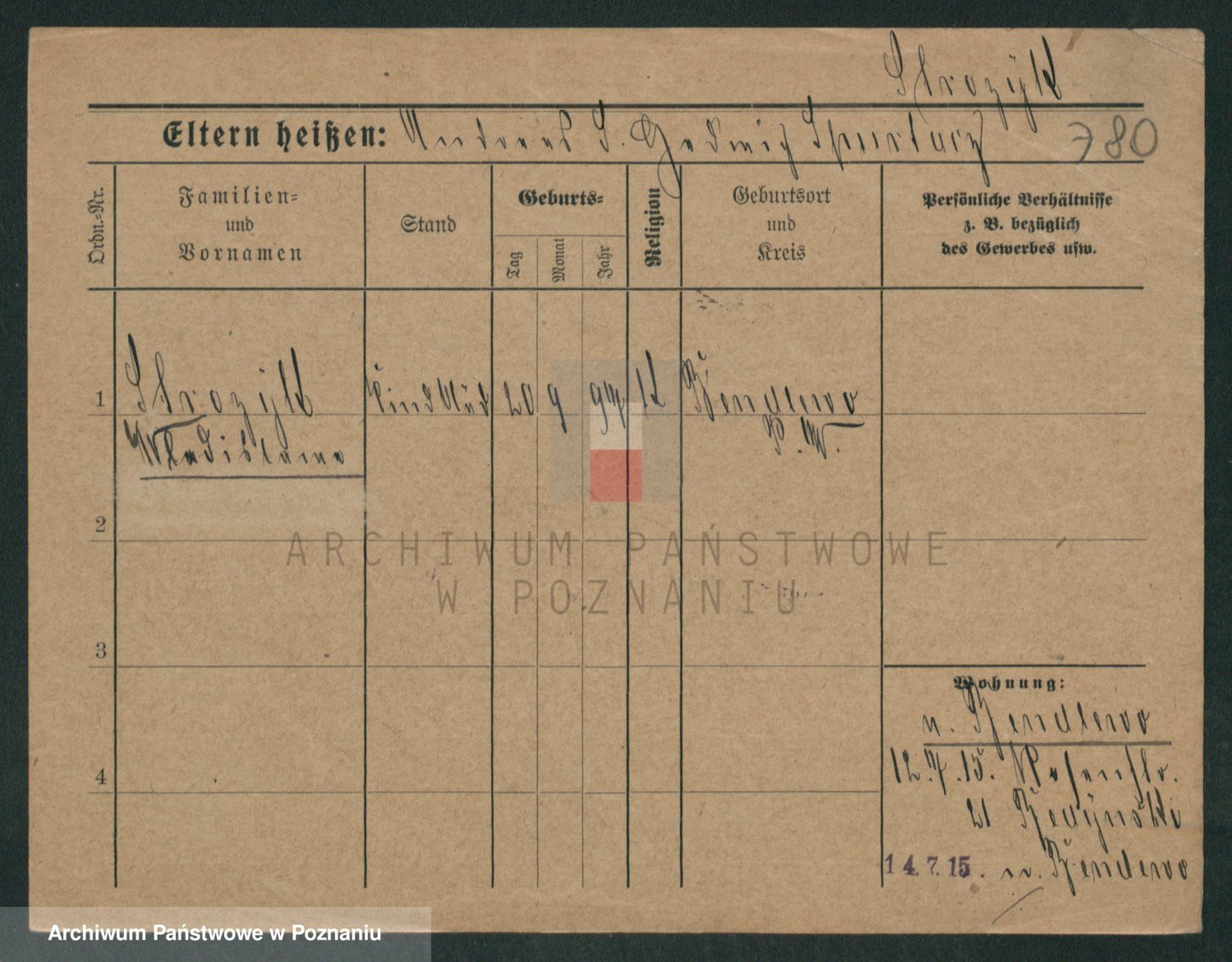 Podgląd karty osobowej dostępny jest po kliknięciu na nazwisko lub ikonkę karty. Można dokonywać powiększenia (ikony na górze) lub przechodzić między kolejnymi skanami (strzałki po bokach).