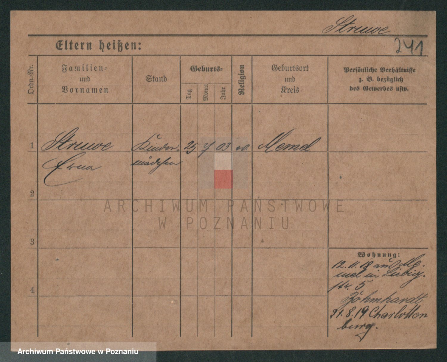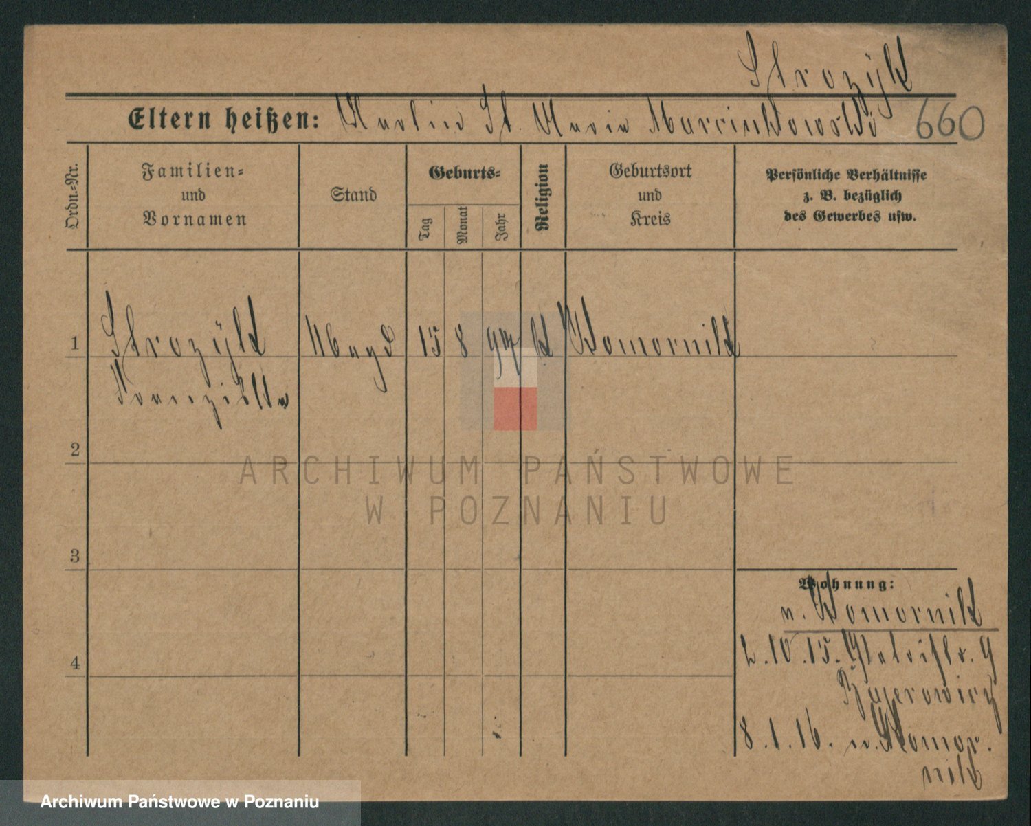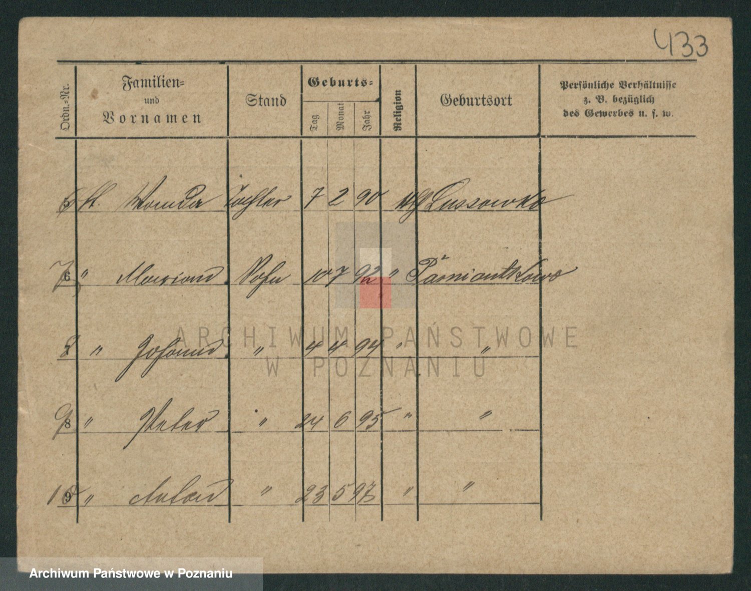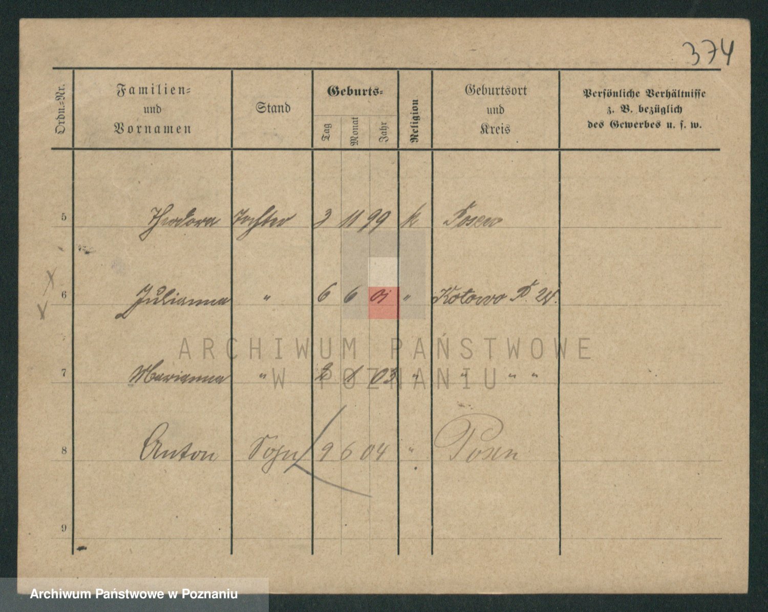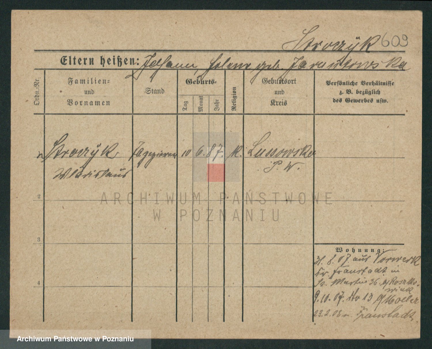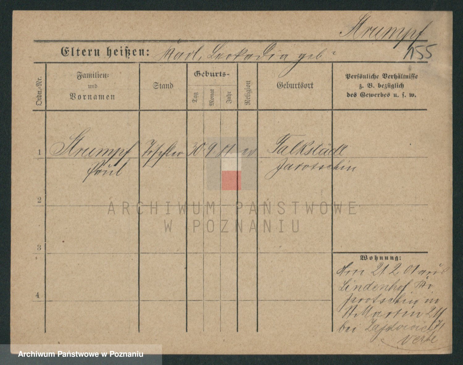 Podgląd karty osobowej dostępny jest po kliknięciu na nazwisko lub ikonkę karty. Można dokonywać powiększenia (ikony na górze) lub przechodzić między kolejnymi skanami (strzałki po bokach).