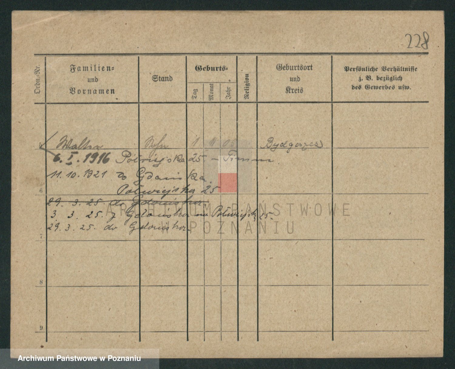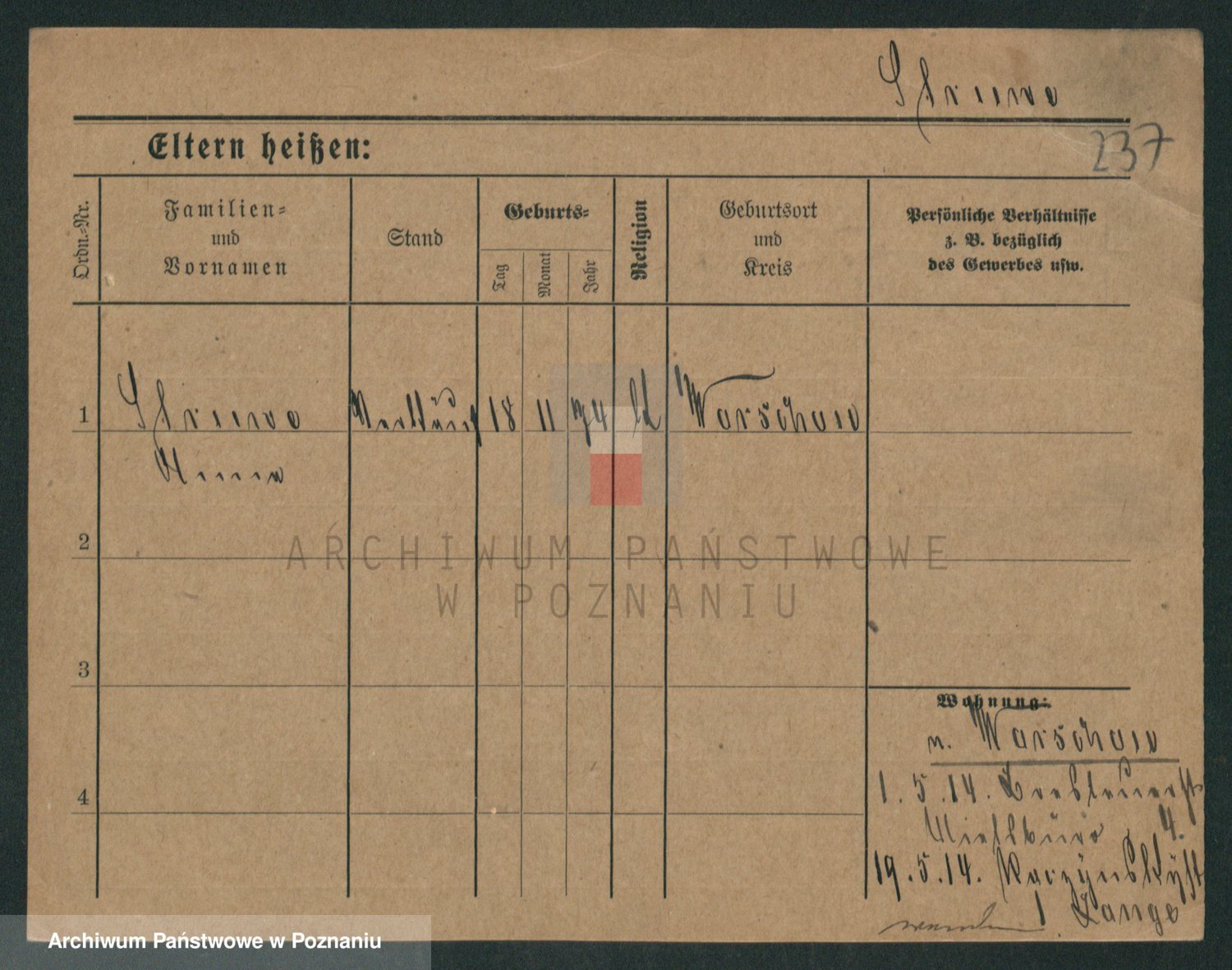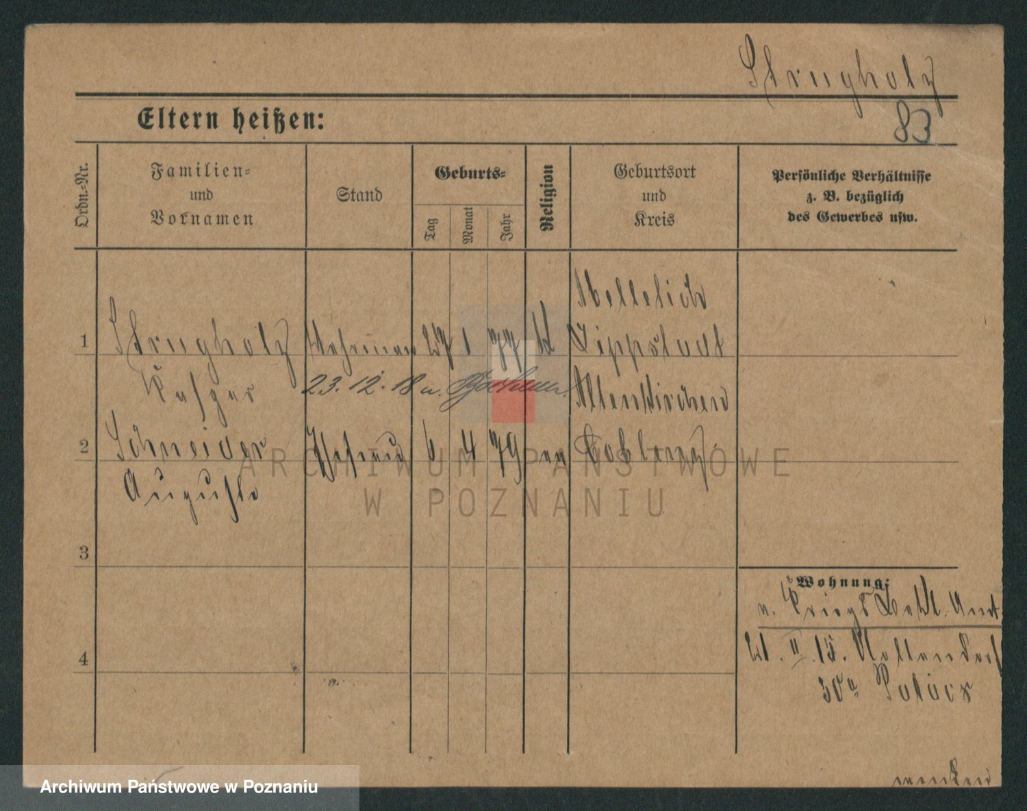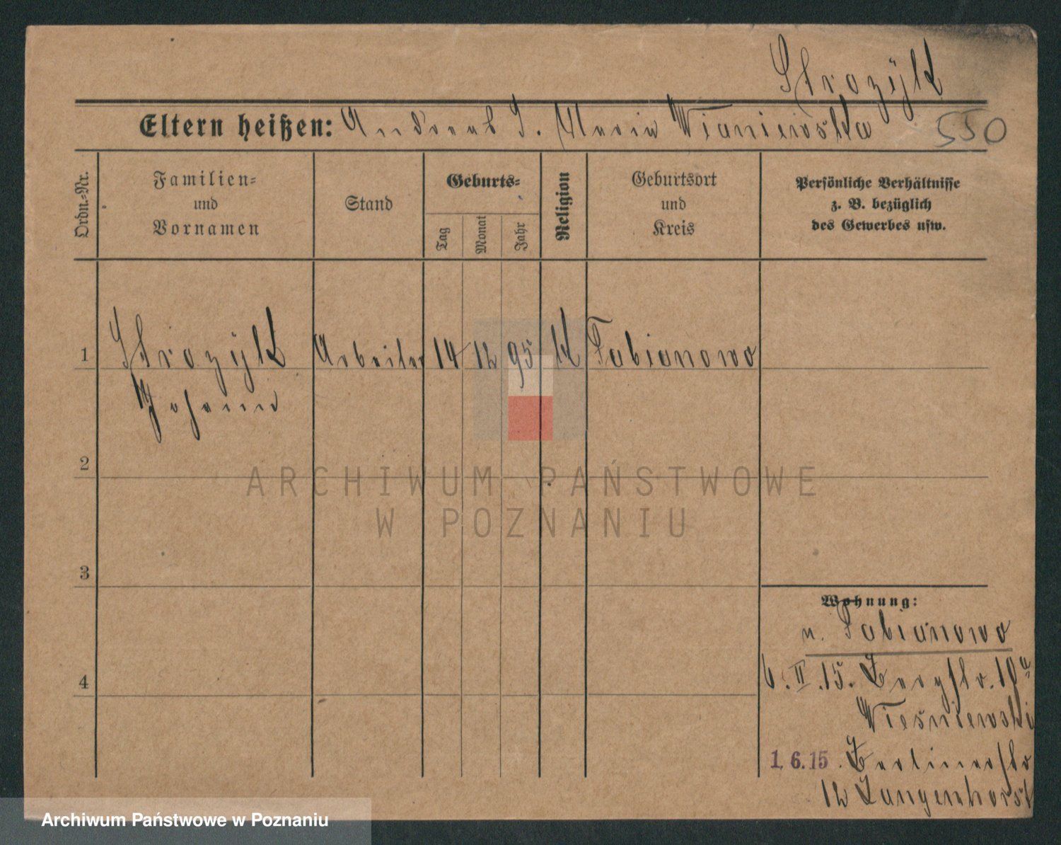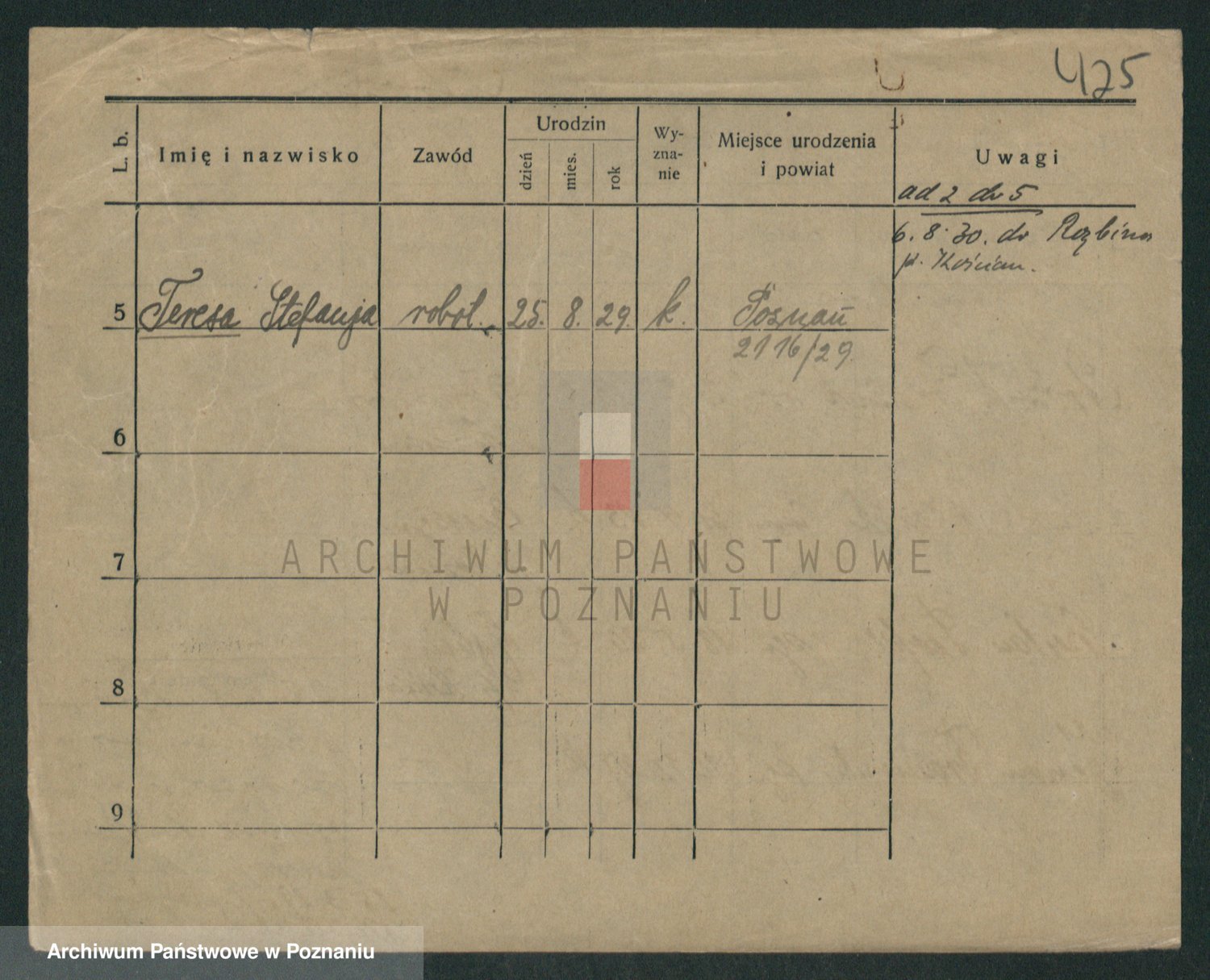 Podgląd karty osobowej dostępny jest po kliknięciu na nazwisko lub ikonkę karty. Można dokonywać powiększenia (ikony na górze) lub przechodzić między kolejnymi skanami (strzałki po bokach).